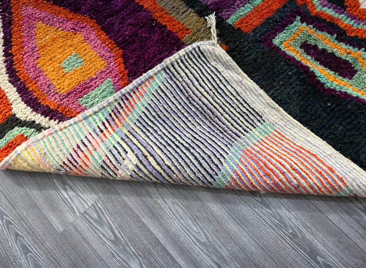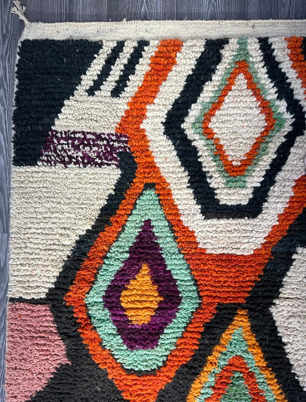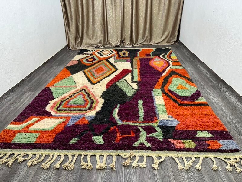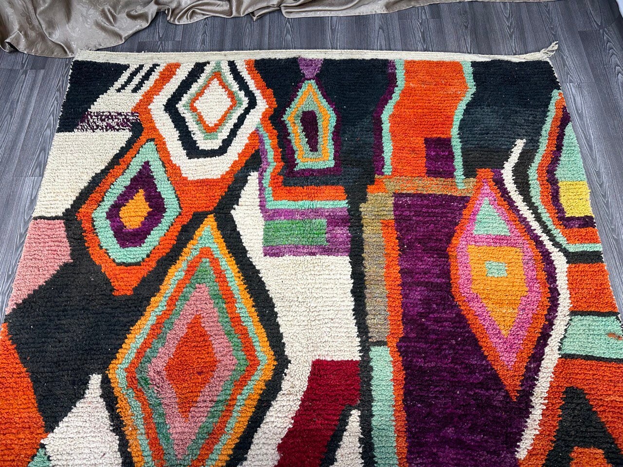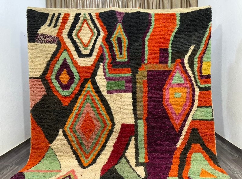 This unique Handwoven Moroccan Boujaad wool rug is one of a kind. A unique rare artistic handmade art, a beautiful combination of colors. which makes it the best choice whether for your house or your showroom. The famous Boujaad rug is now on the cover of the world’s leading home decoration magazines. This rug with character goes perfectly with all interior styles, Bohemian, Modern, Minimalist, Scandinavian, Traditional, which makes it the best choice for your needs.