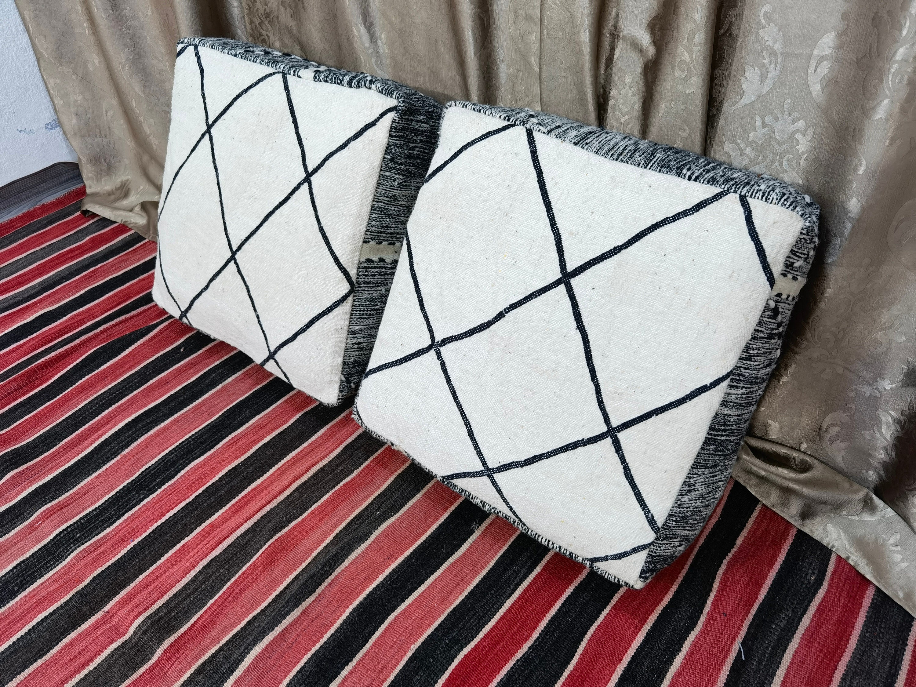 We take pride in crafting your order with utmost care, using only pure, natural wool and employing the age-old technique of handcrafting. As a result, slight variations in pattern and size, typically within a range of less than 10%, are to be expected. These subtle differences bestow upon each pillow a truly distinctive character. In Morocco, they refer to this phenomenon as the enchanting allure of the artisan's touch.