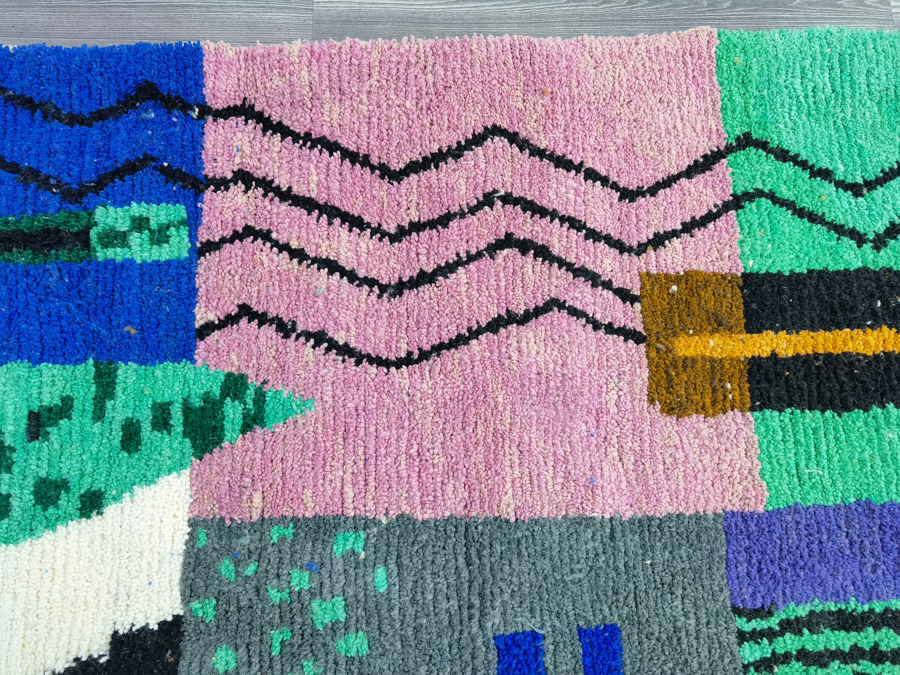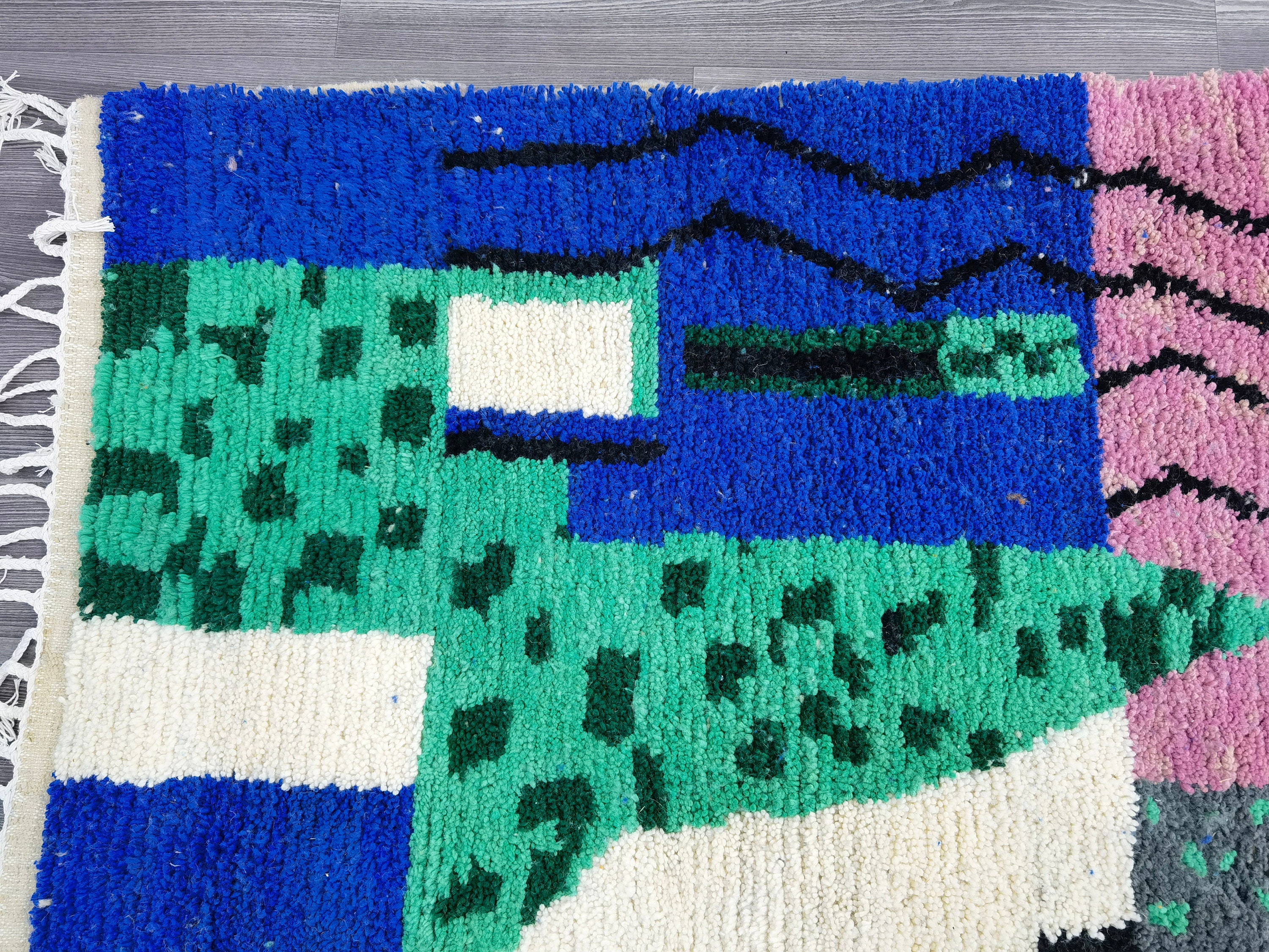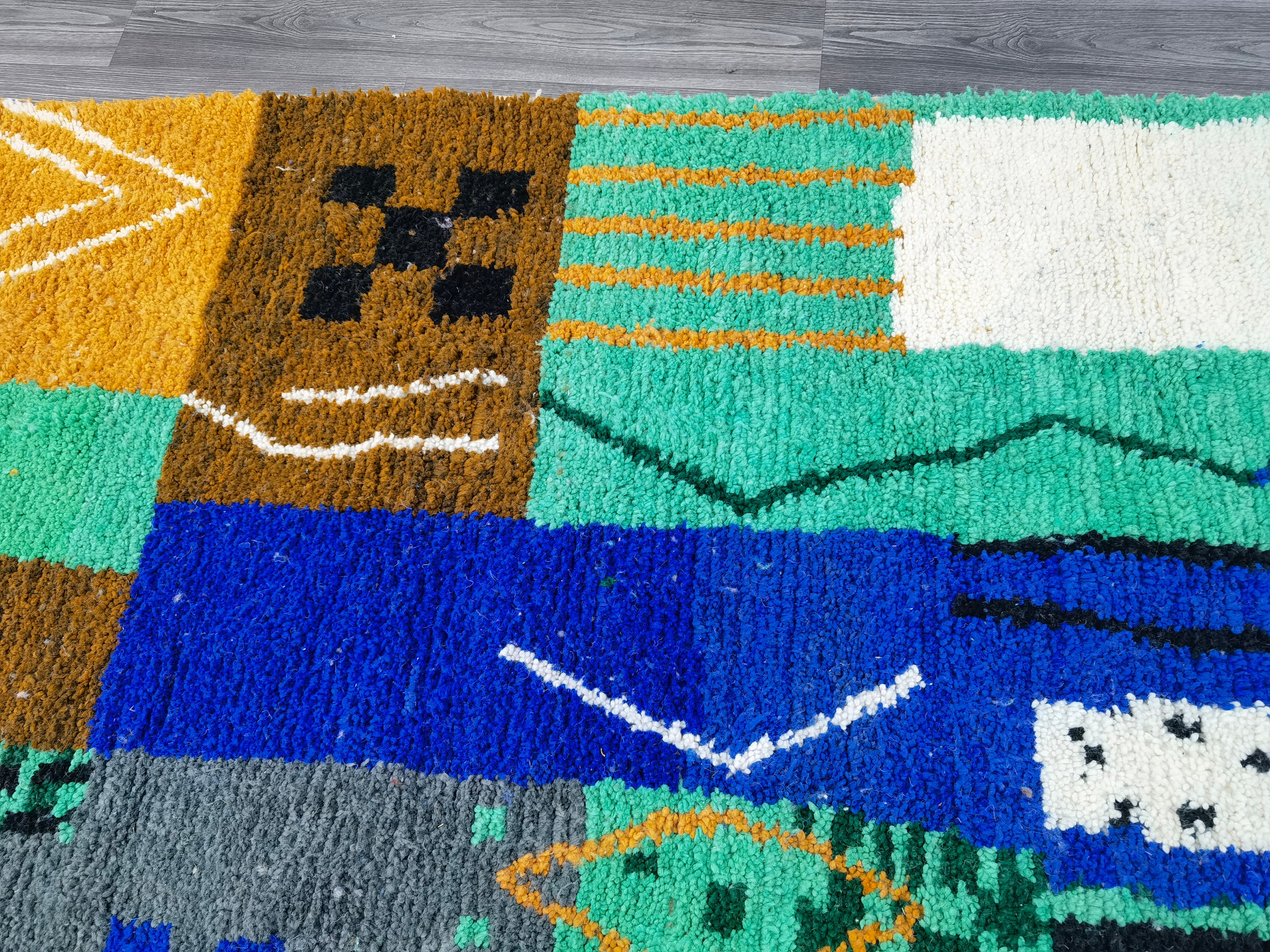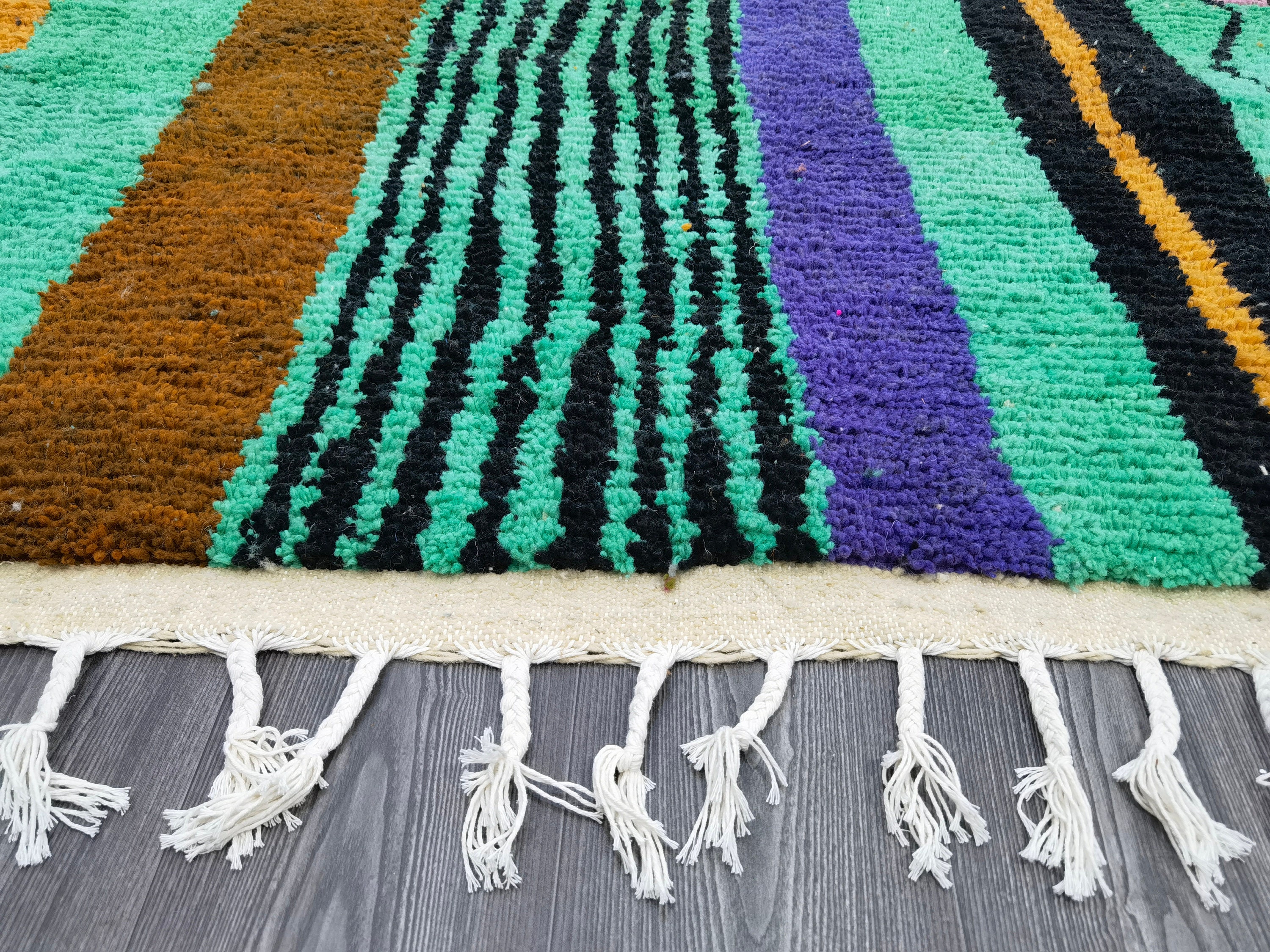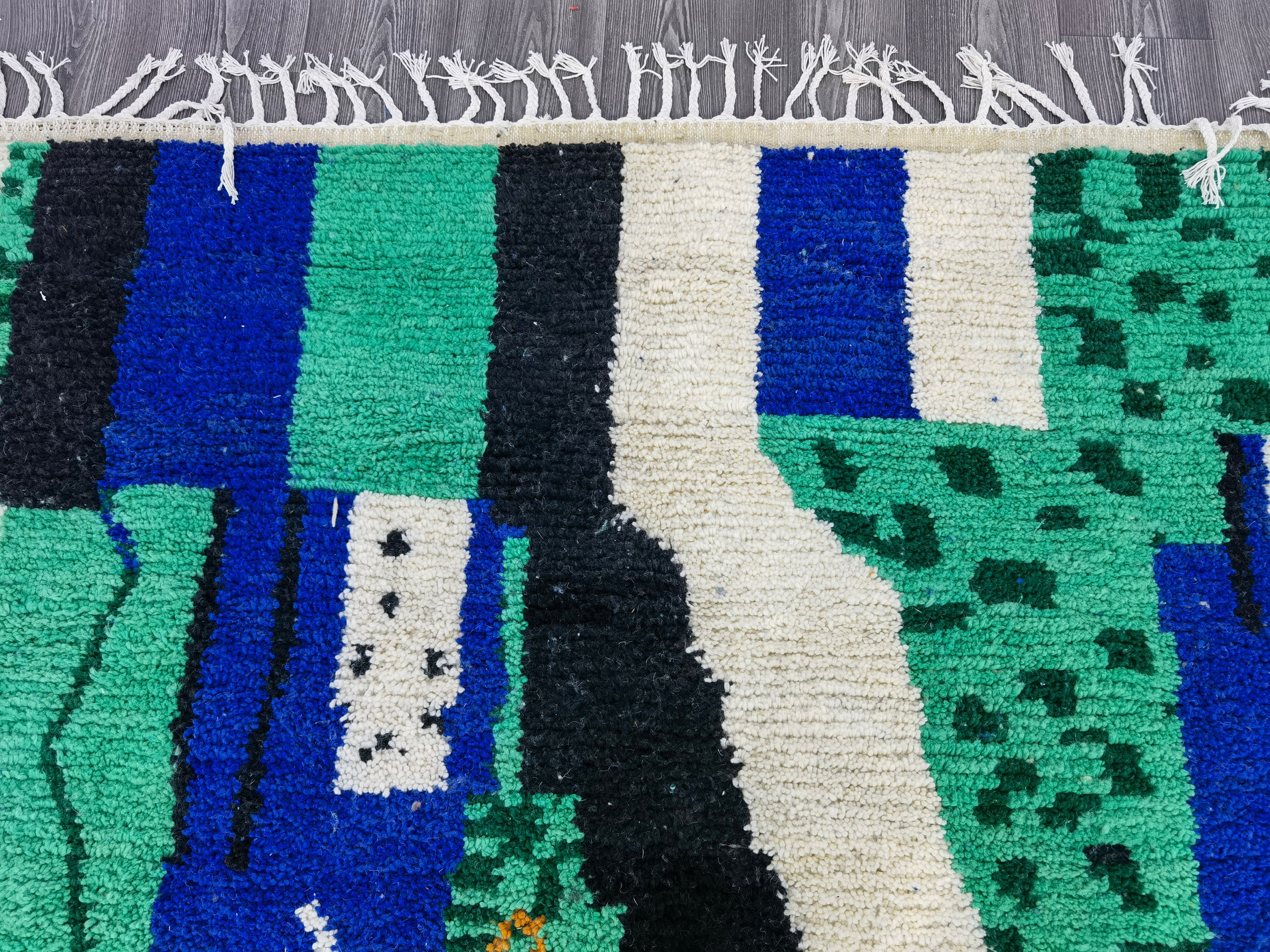 Amazing Minimalistic Rug - Gorgeous Boujaad Green Rug- Abstract Multicolored Carpet - Handmade Moroccan Rug - Beniourain Sofa Rug