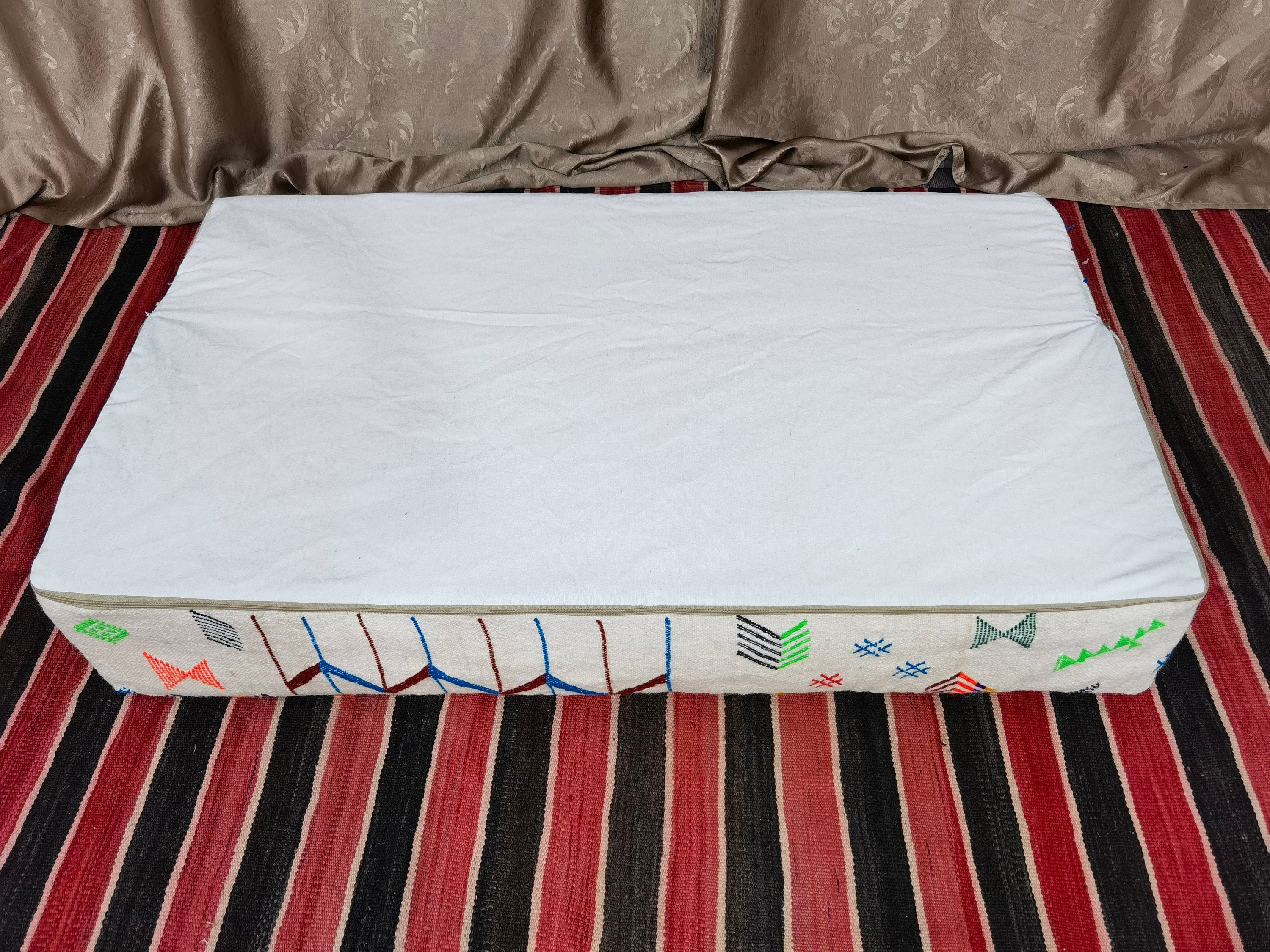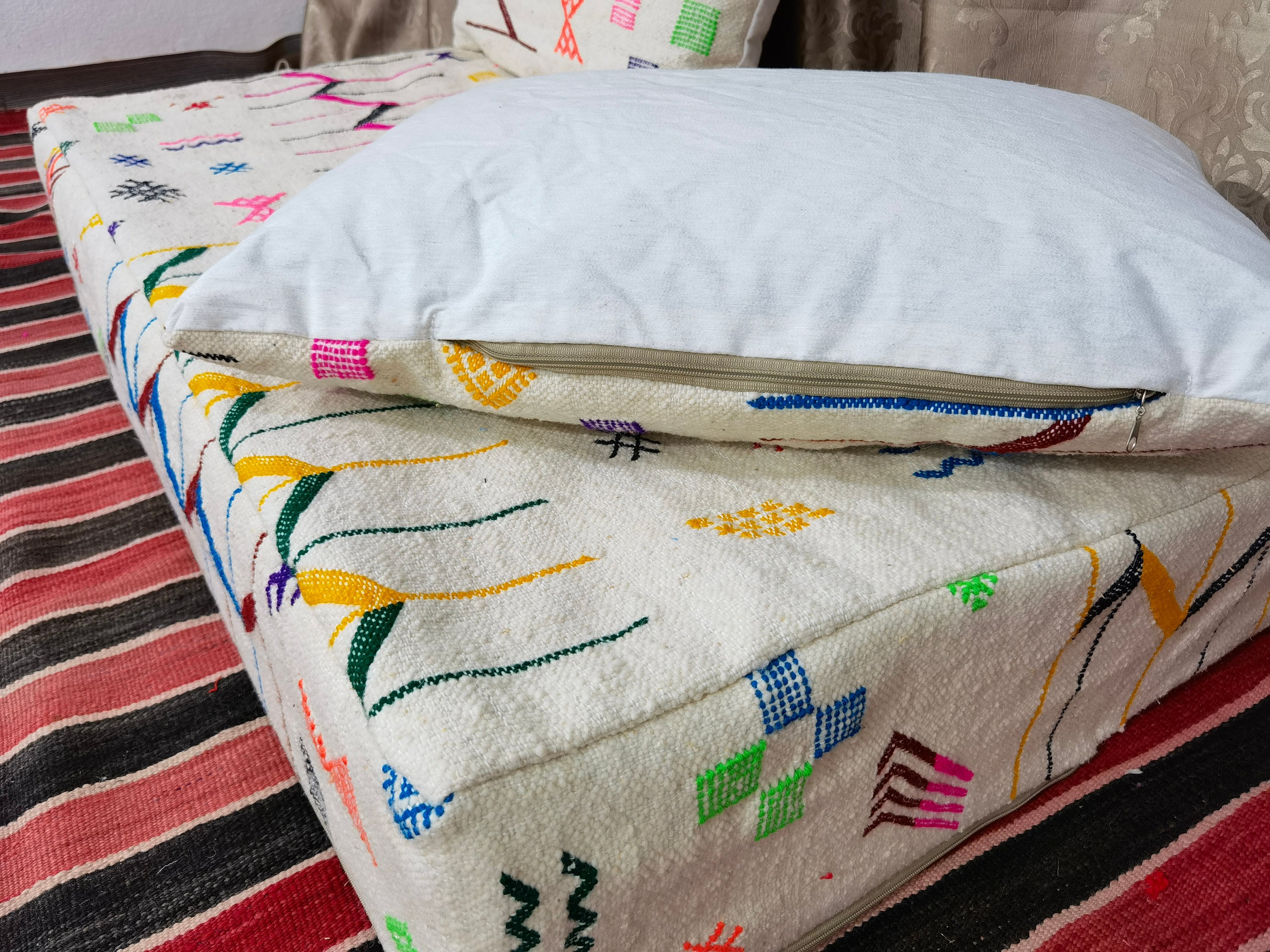 Moroccan Sofa , Unstuffed Complete set Long Floor Cushion 4/5/6/7 ft (120/150/180/210 x70x20 cm) + 2 Back Pillows .