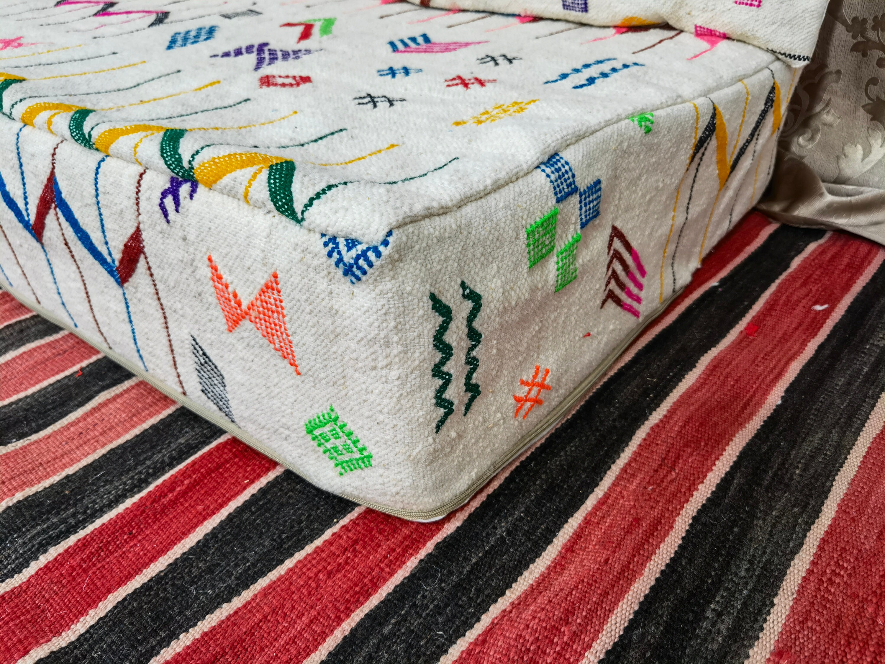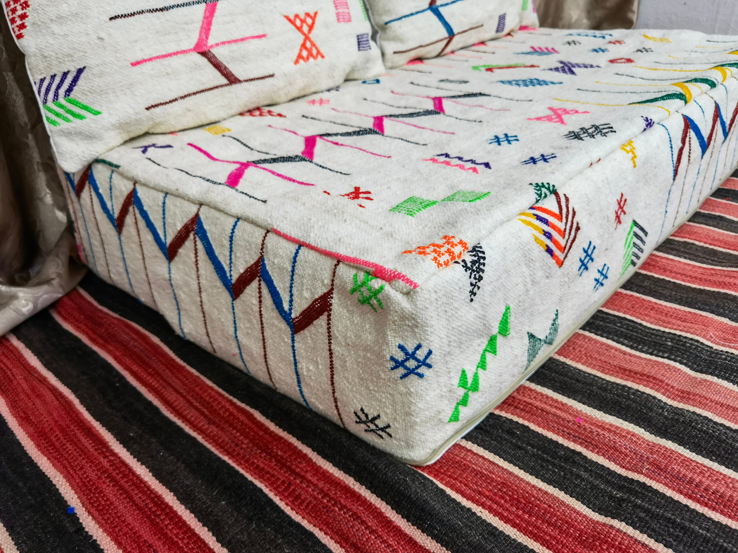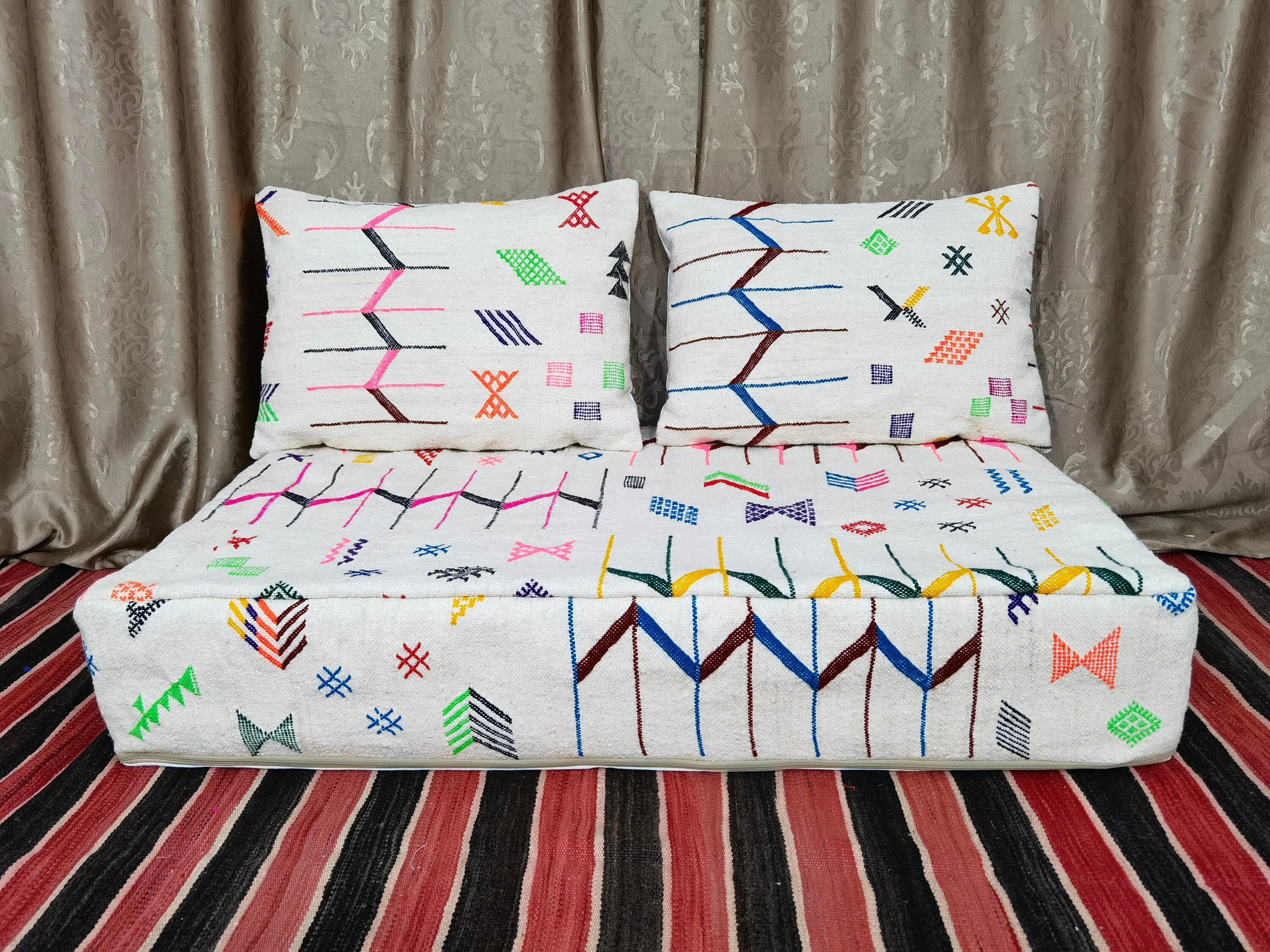 Welcome to a World of Splendor: Immerse yourself in the allure of Morocco with our exclusive handmade rug sofa, a true masterpiece that fuses tradition and artistry!
