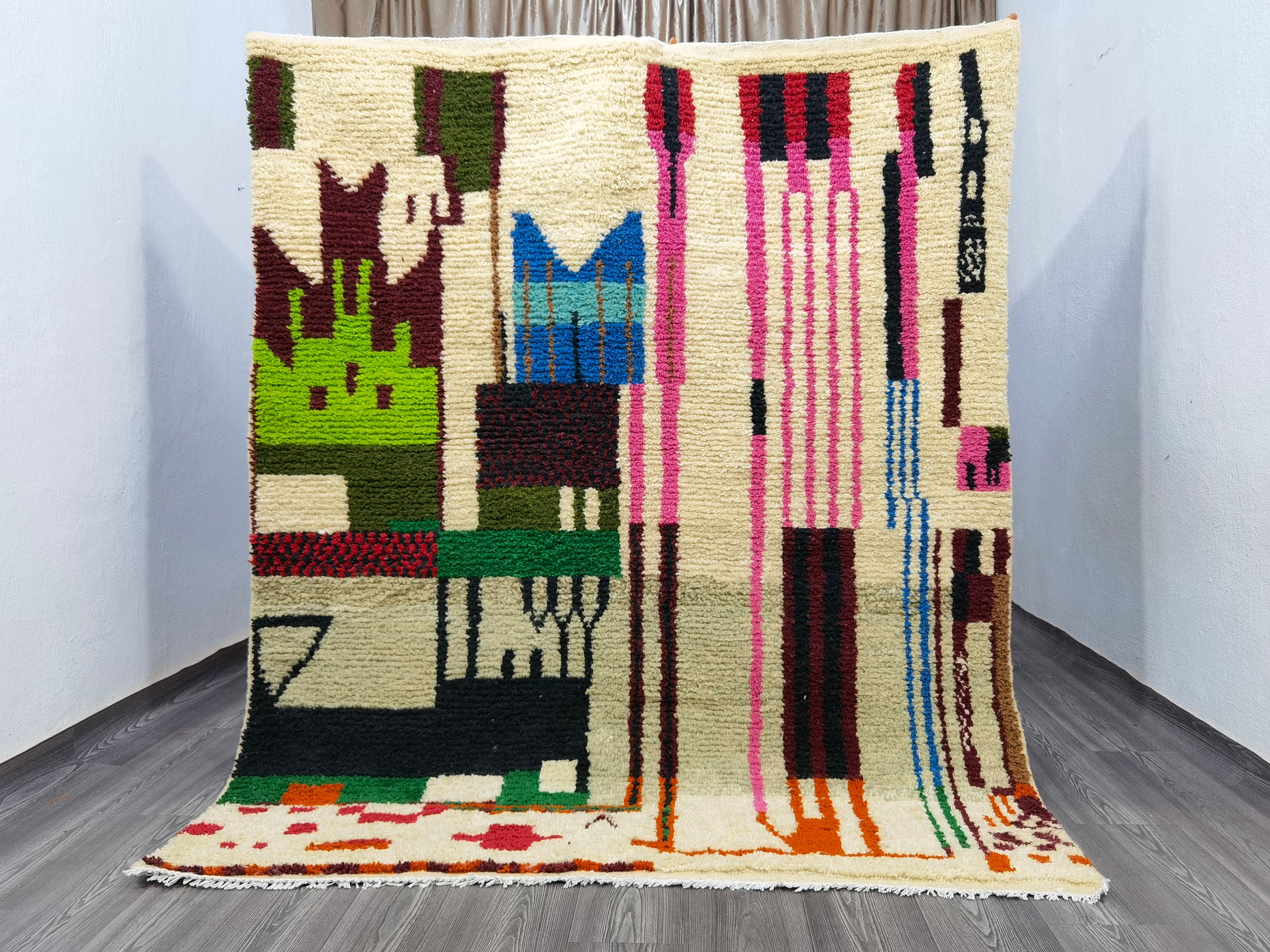 Moroccan Area Rug - Handmade Wool - Bohemian Rug - Home Design - Hand Knotted Rug - Soft Rug - Rugs For Living Room - Abstract Rug