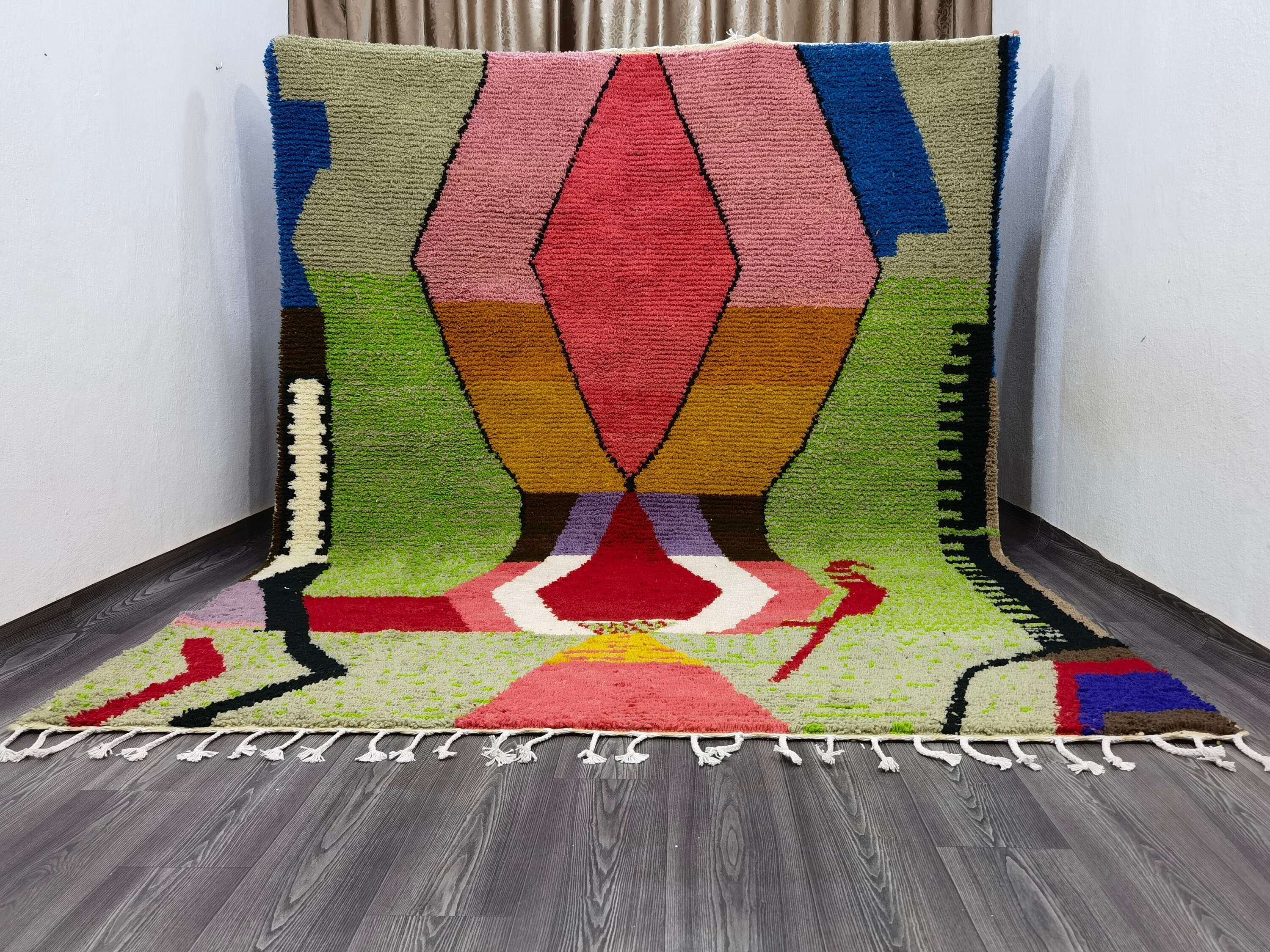 Custom Rugs For Living Room - Boujaad Moroccan Rug - Green Rug Modern Decor - Handmade Home Decor - Morrocan Rug Bohemian - Soft Area Rug