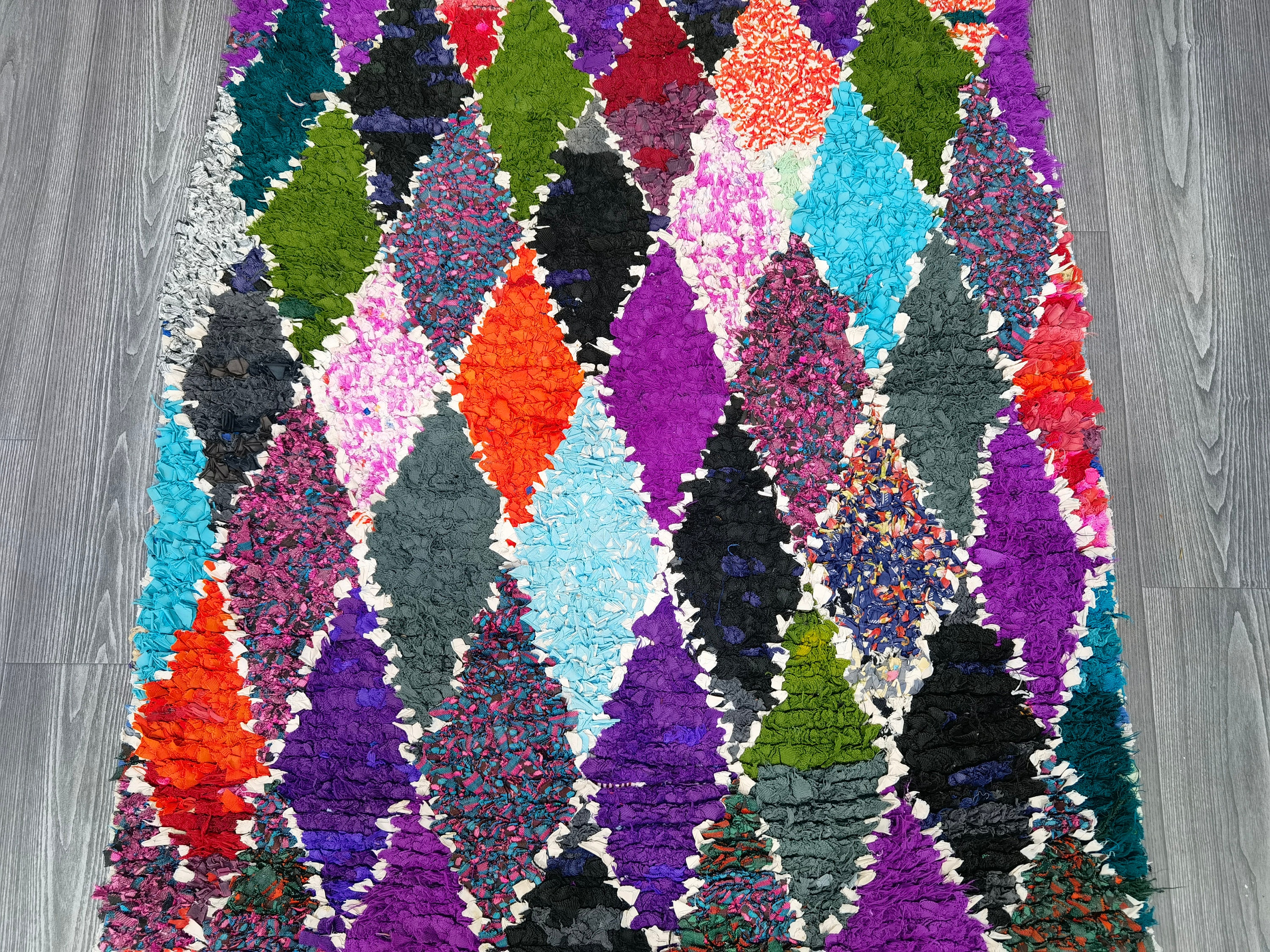 Boucherouite Runner, Berber Boucherouite, Moroccan Berber Rug, Moroccan Boho Rug, Old Boucherouite, Colorful Striped Rug, Moroccan Area Rug