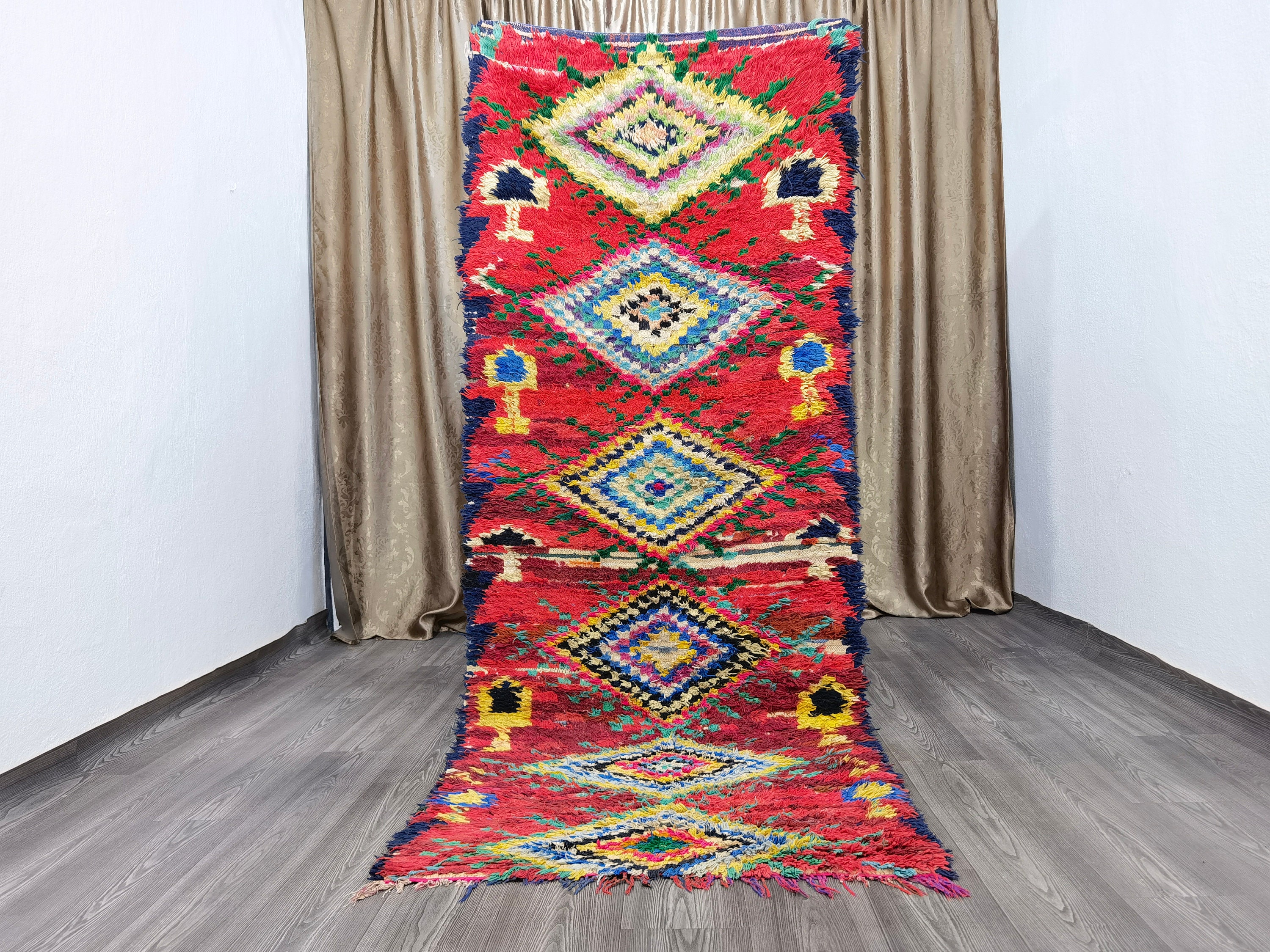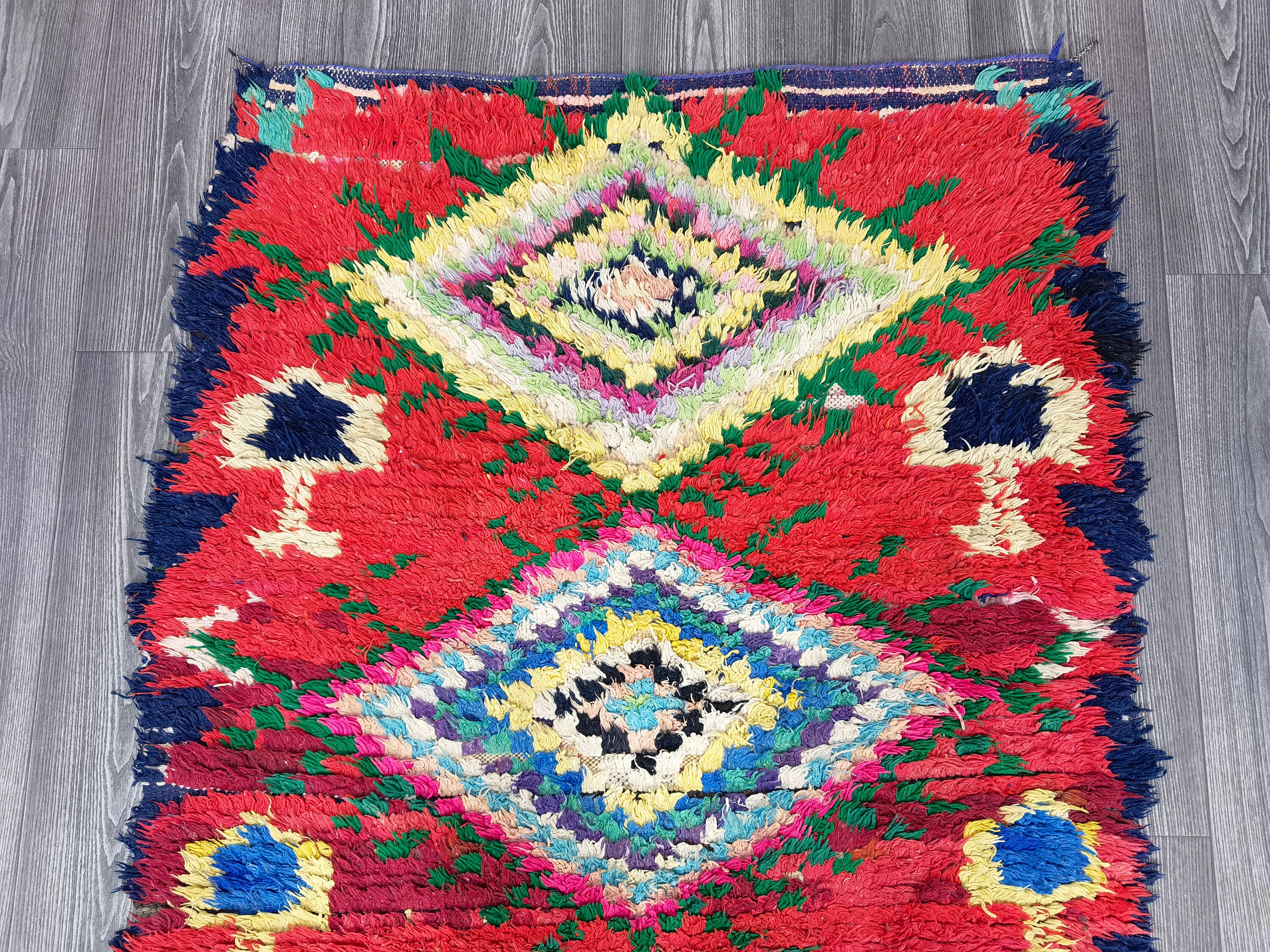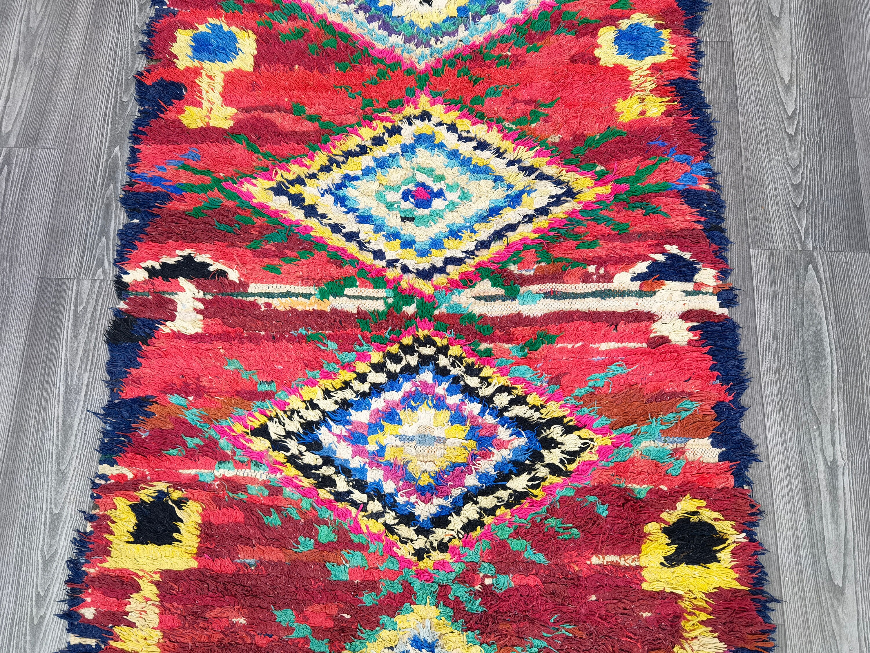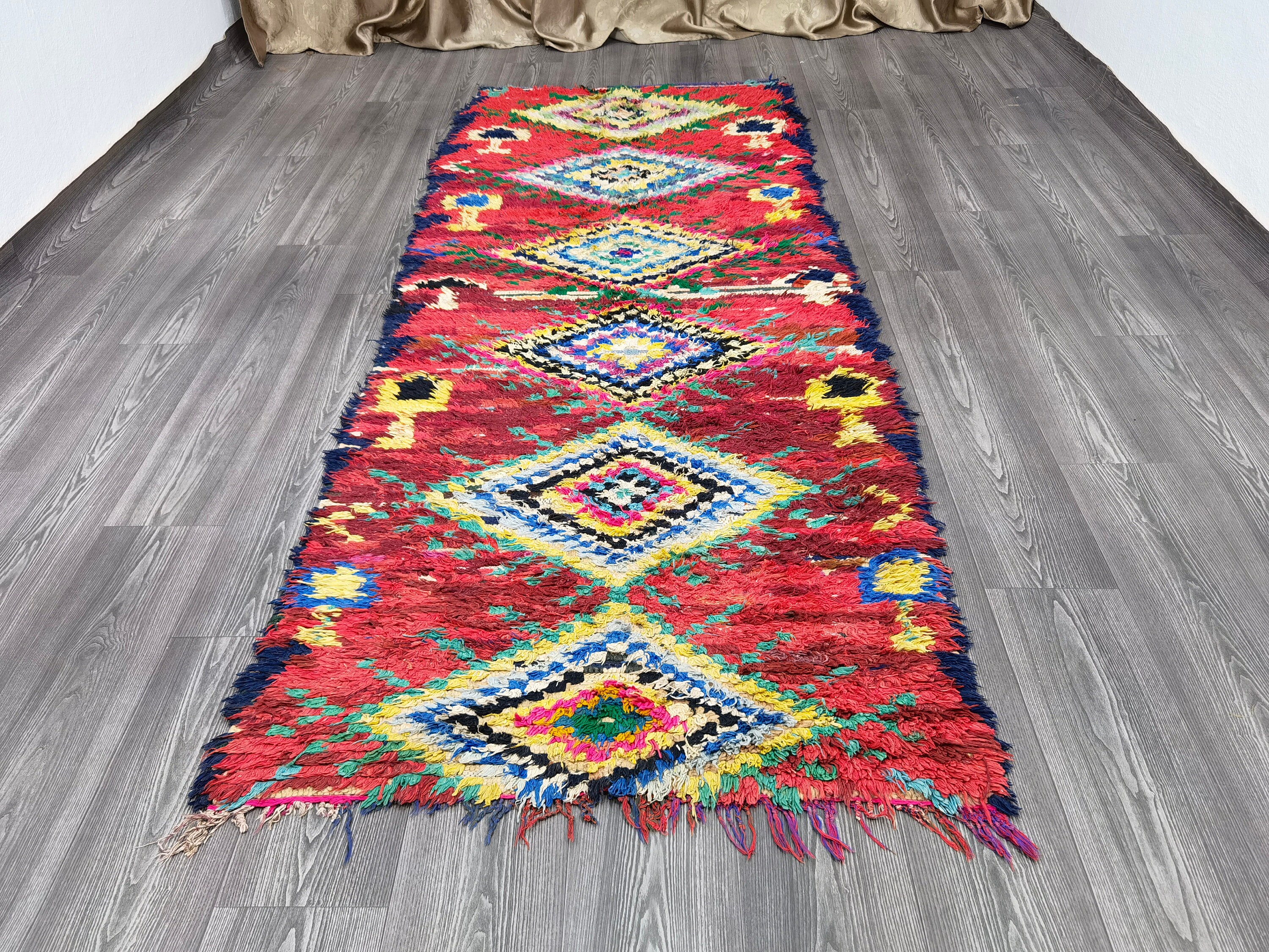 3x8 Ft - Moroccan Vintage Runner Rug - Boujaad Runner Rug - Vintage Area Rug - Bohemian Carpet - Soft Wool Rug - Colorful Berber Carpet