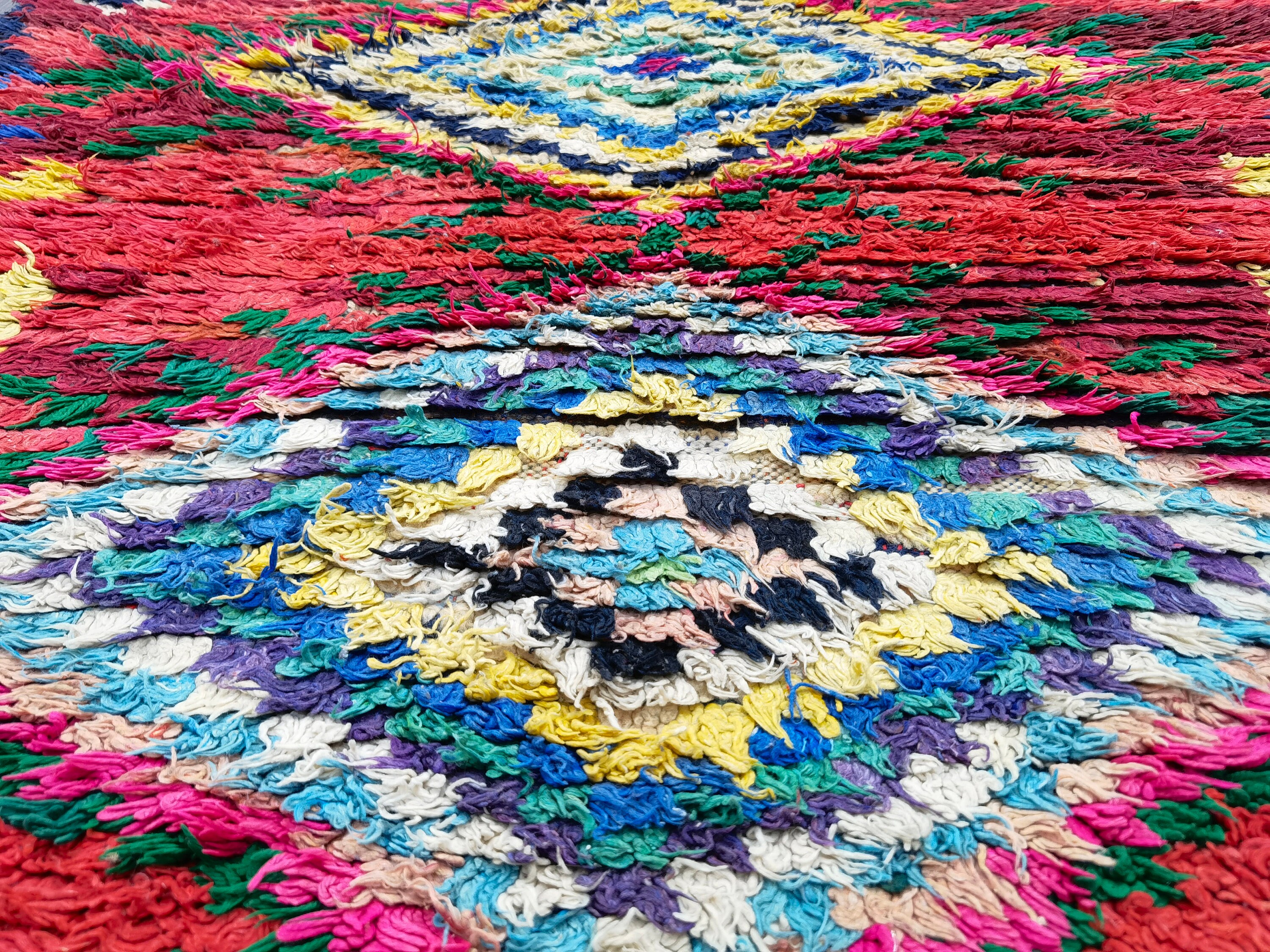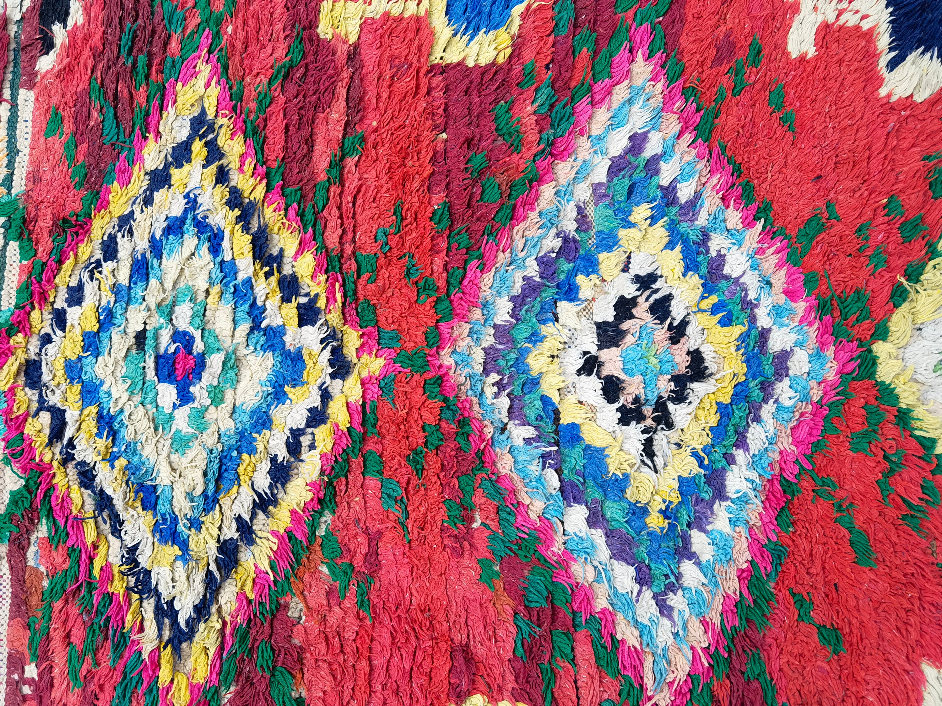 Boujaad is a vibrant and colorful wool rug that will add life to any room in your home. Made from 100% wool, this rug is perfect for use in the living room, bedroom, or anywhere you want to add some beautiful Moroccan flair. The soft and fluffy texture makes it comfortable to walk on, and the vivid colors will brighten up any space. Whether you're looking for a traditional shag rug or something a little more bohemian, Boujaad is sure to be a hit with your guests.