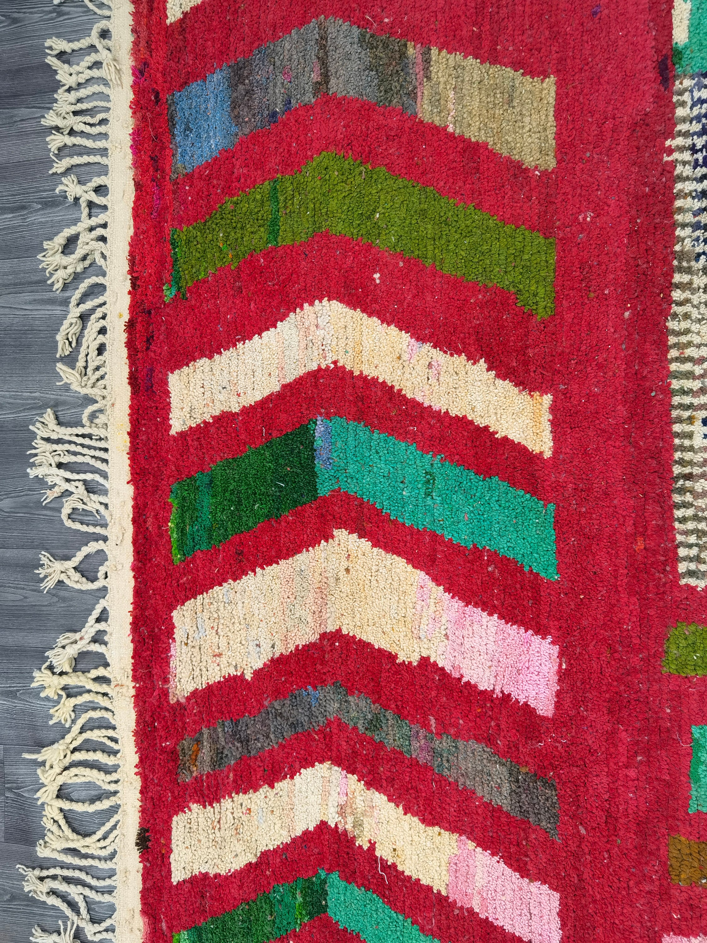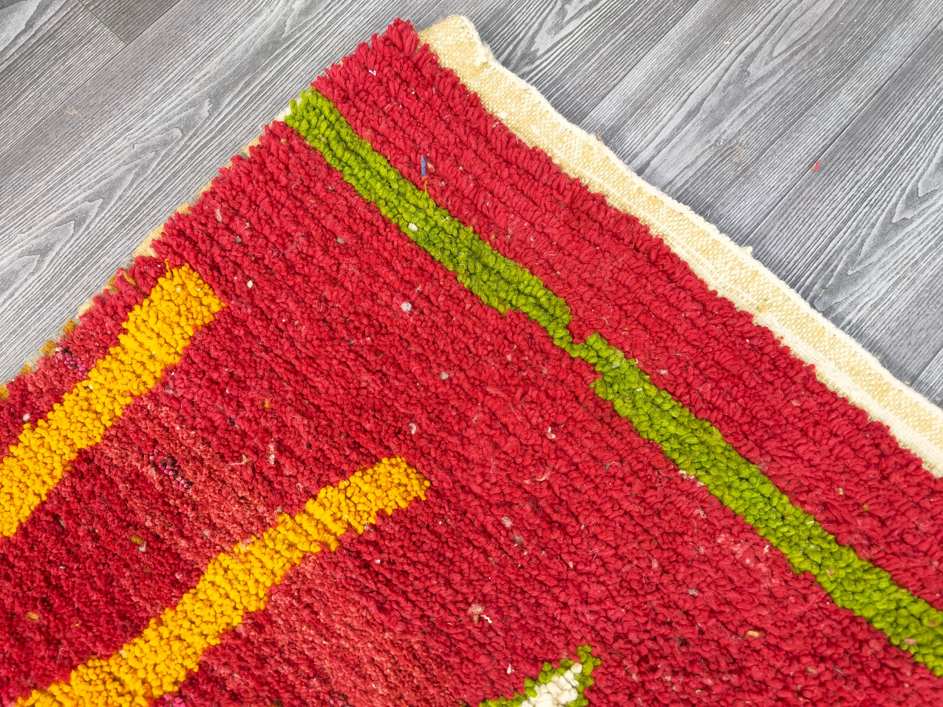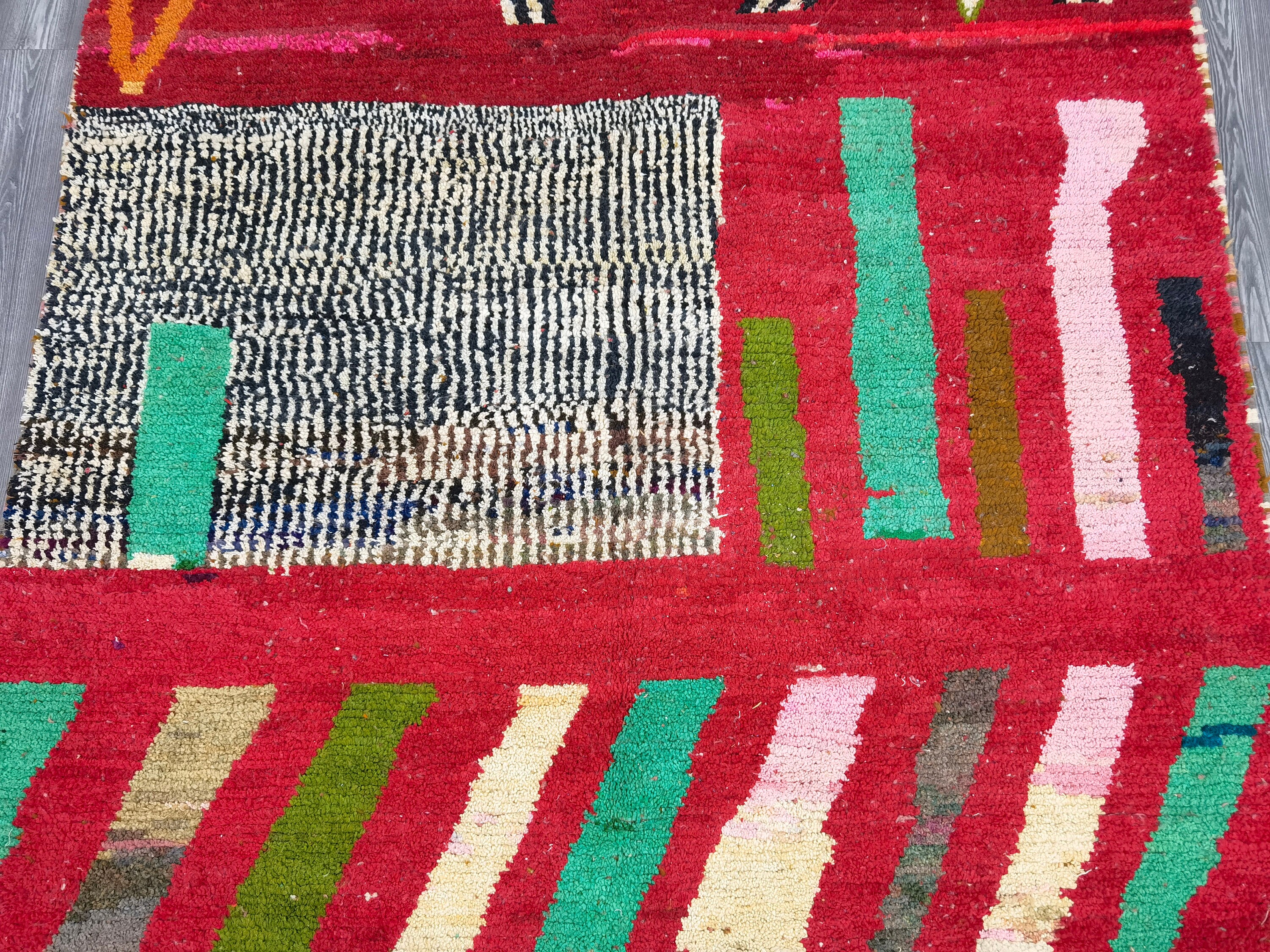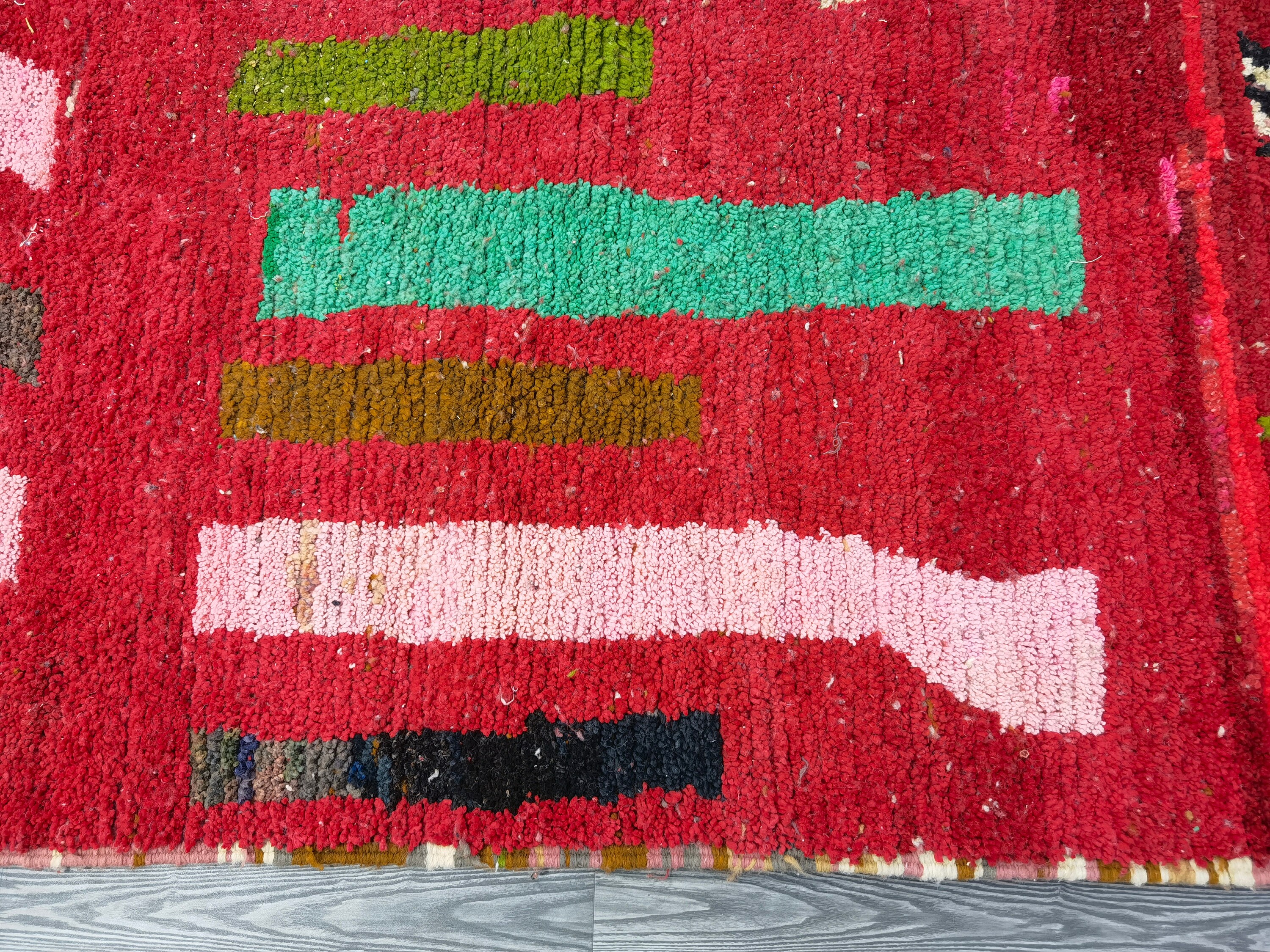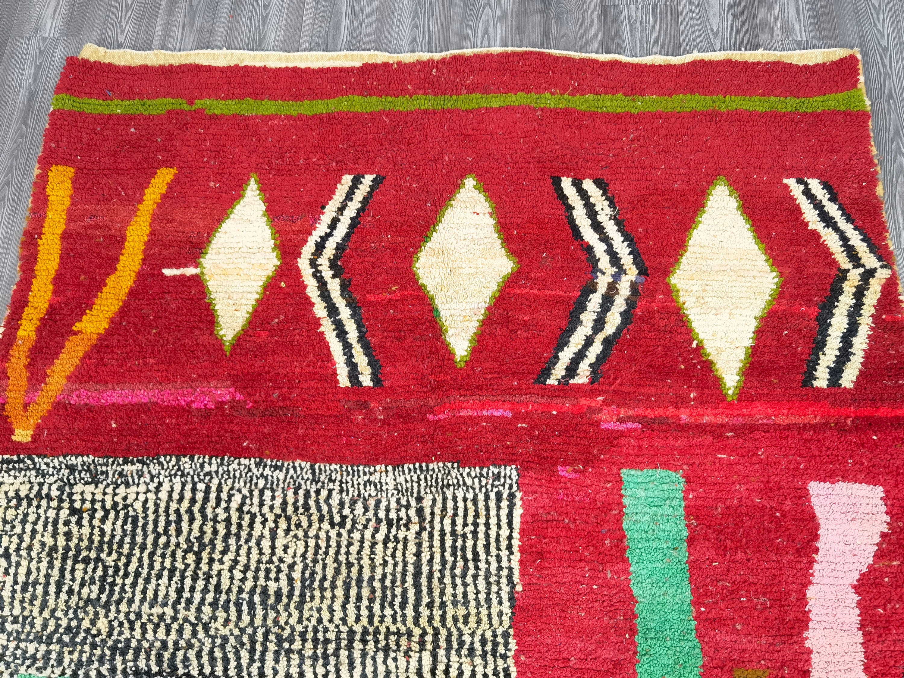 Handmade Moroccan Wool Rug: Custom Fabulous Boujad, Azilal, & Abstract Red Multicolored Bohemian Carpet