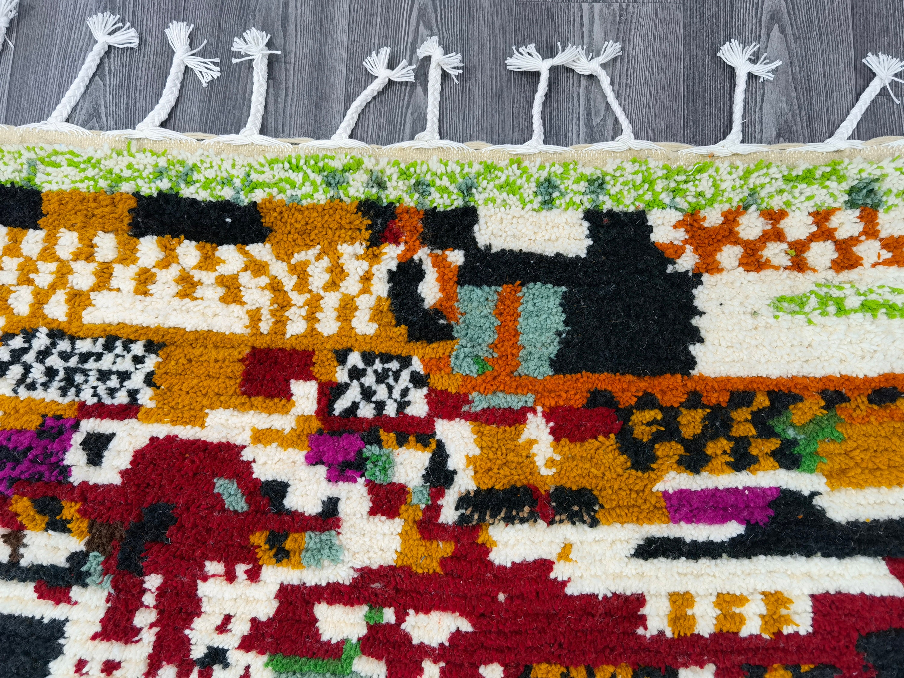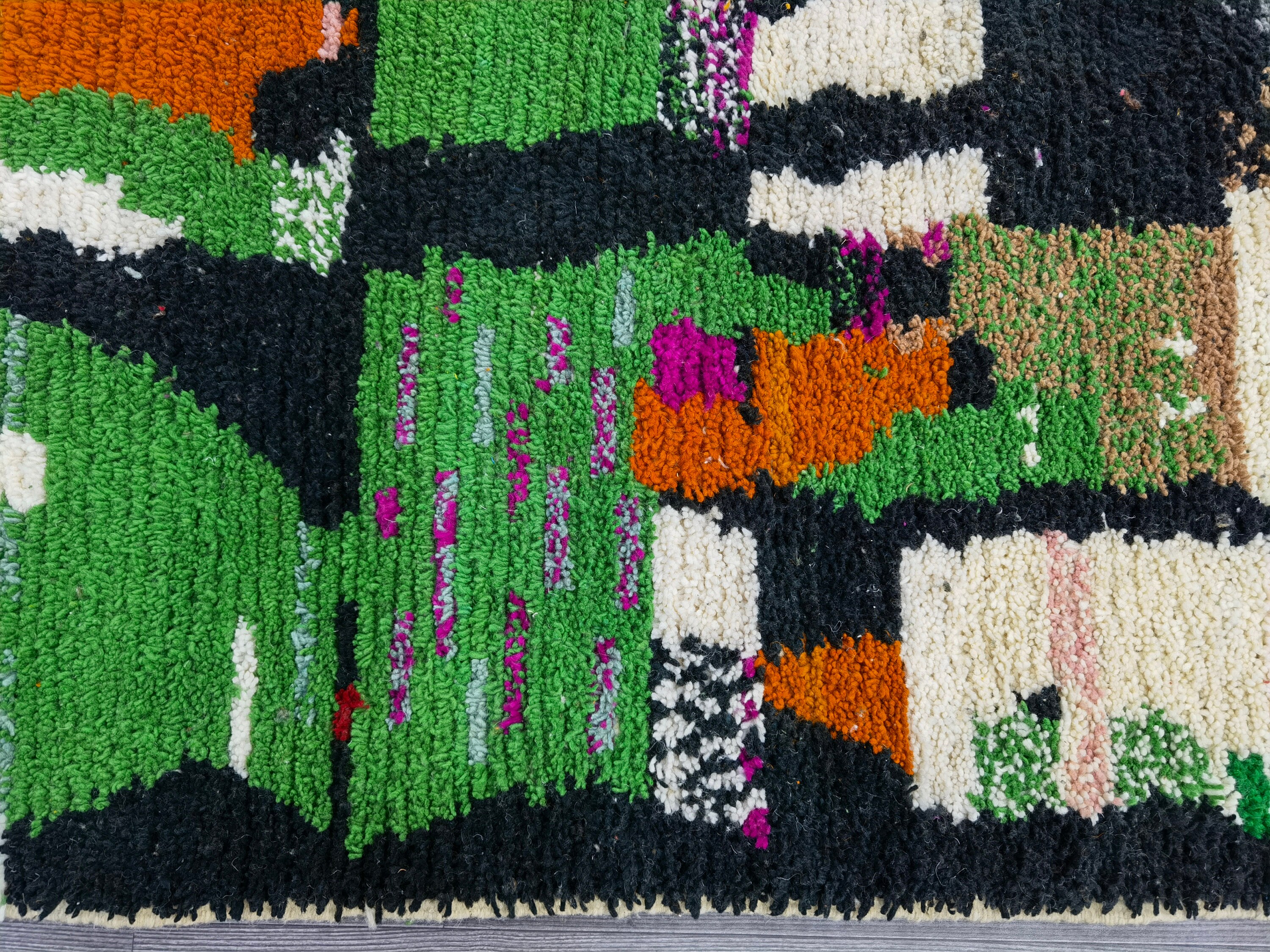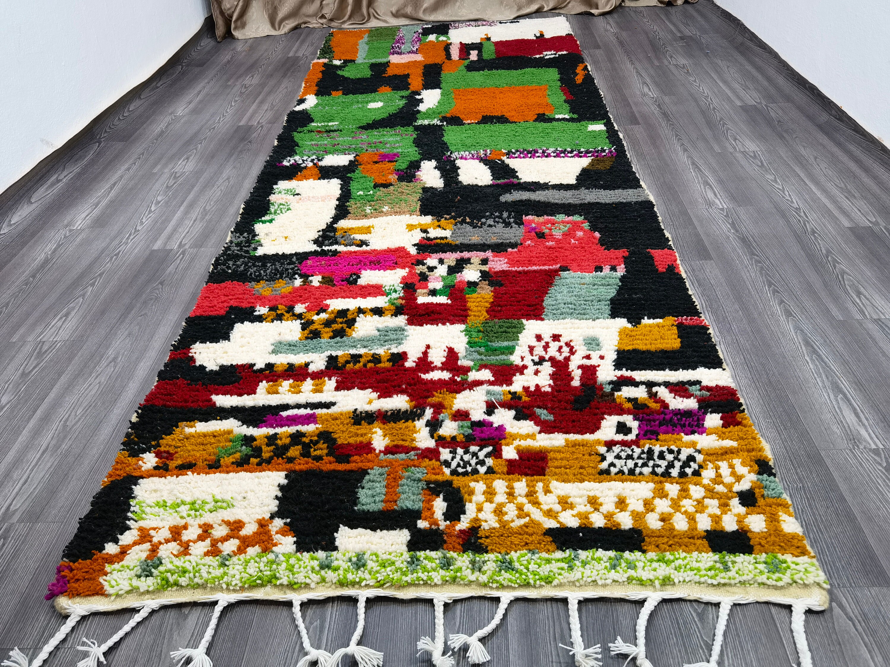 Boujaad Runner Rug, Soft Wool Rug, Morrocan Runner Rug, Handmade Runner Rug, Abstract Runner Rug, Green Wool Shaggy Rug, Azilal Runner Rug