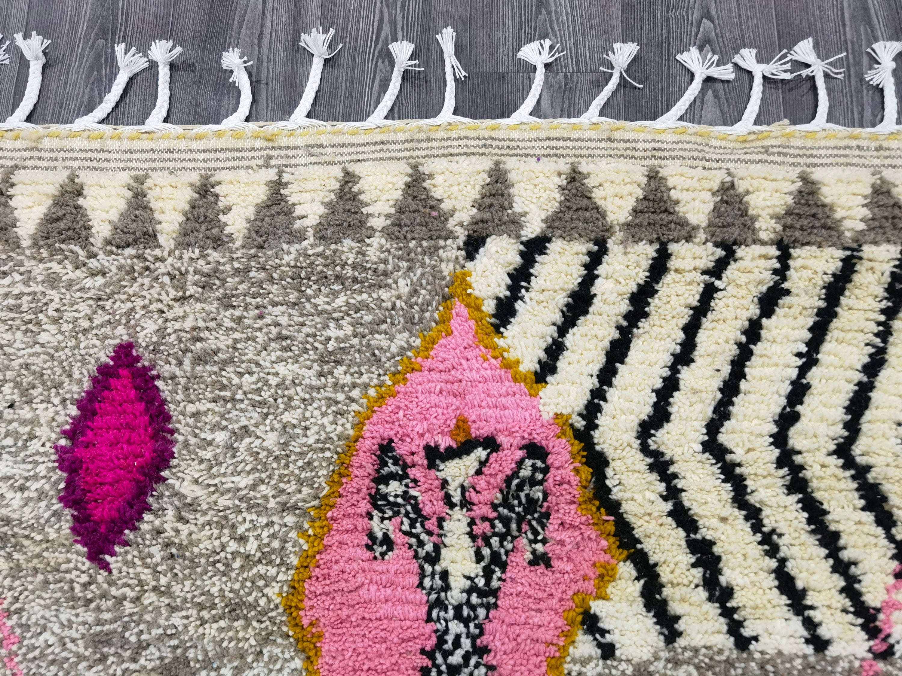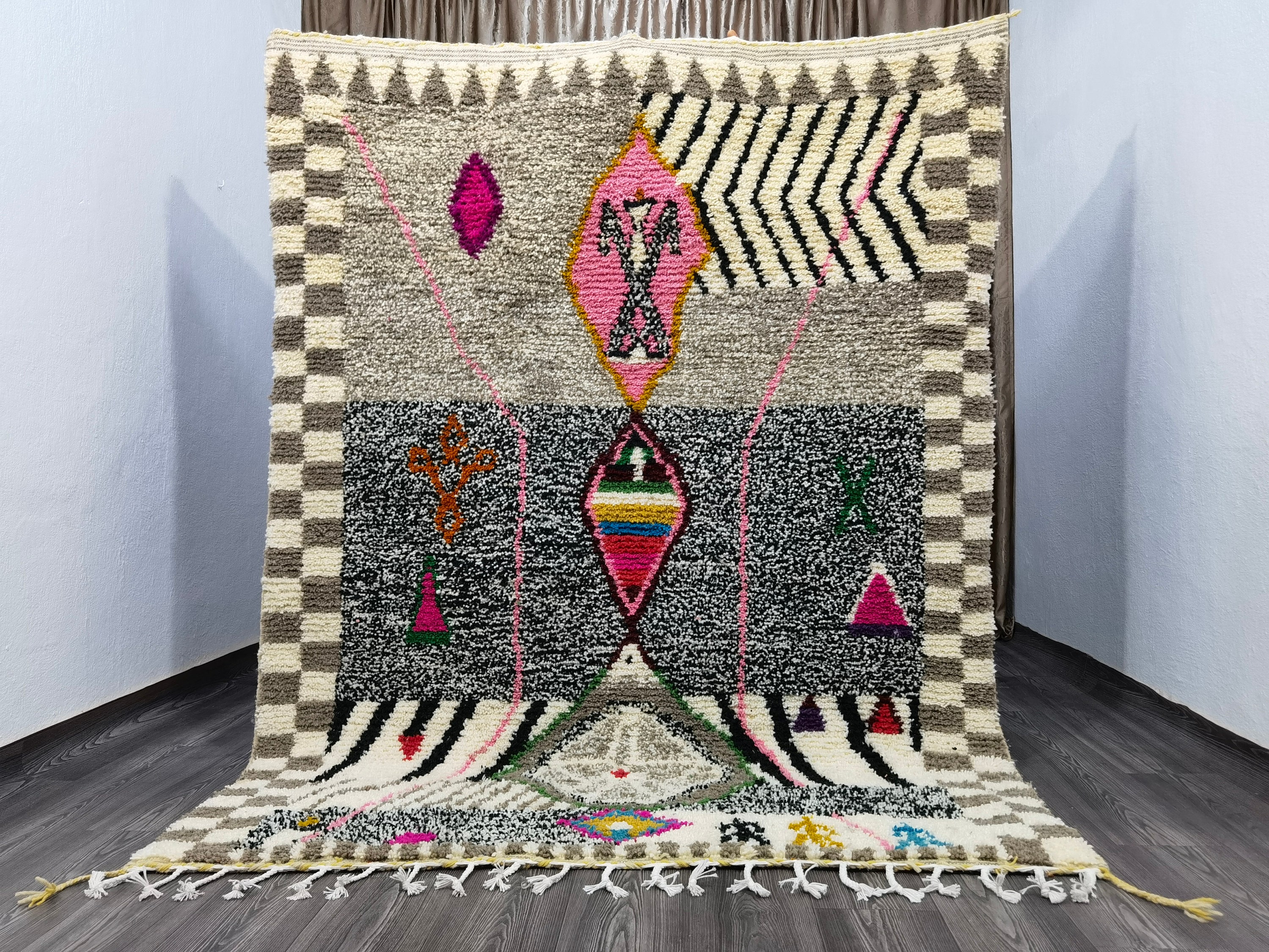 Beni Ourain rugs are perfect for adding a touch of luxury and style to any room in your home. Whether you're looking for an abstract multicolored carpet to spruce up a living room or a Moroccan rug to add some exotic flair to a bedroom, our custom Beni Ourain rugs are sure to please. Plus, with our easy-to-use customization options, you can create a rug that perfectly matches your personal style.
