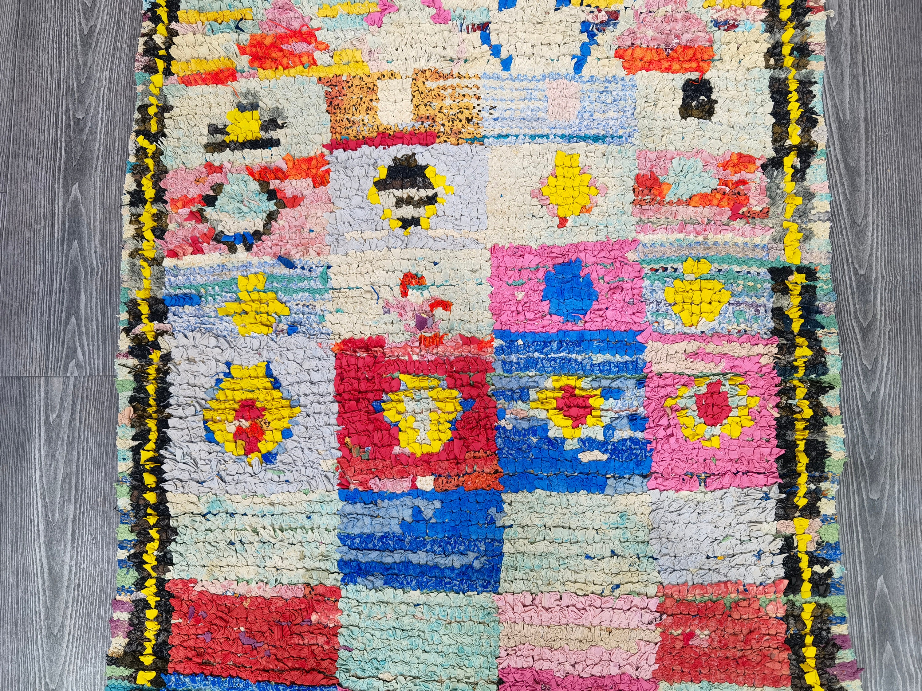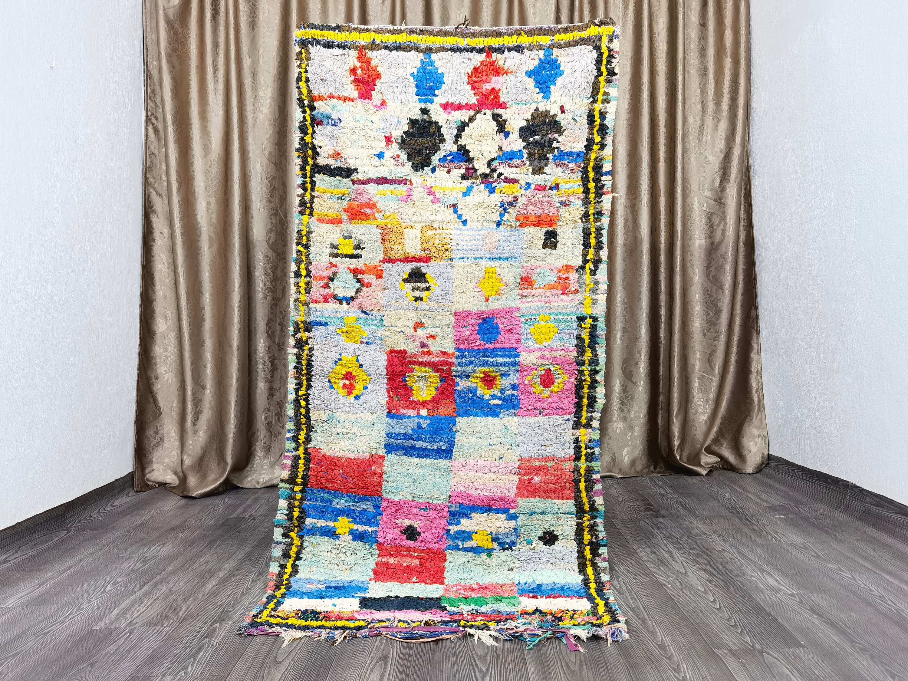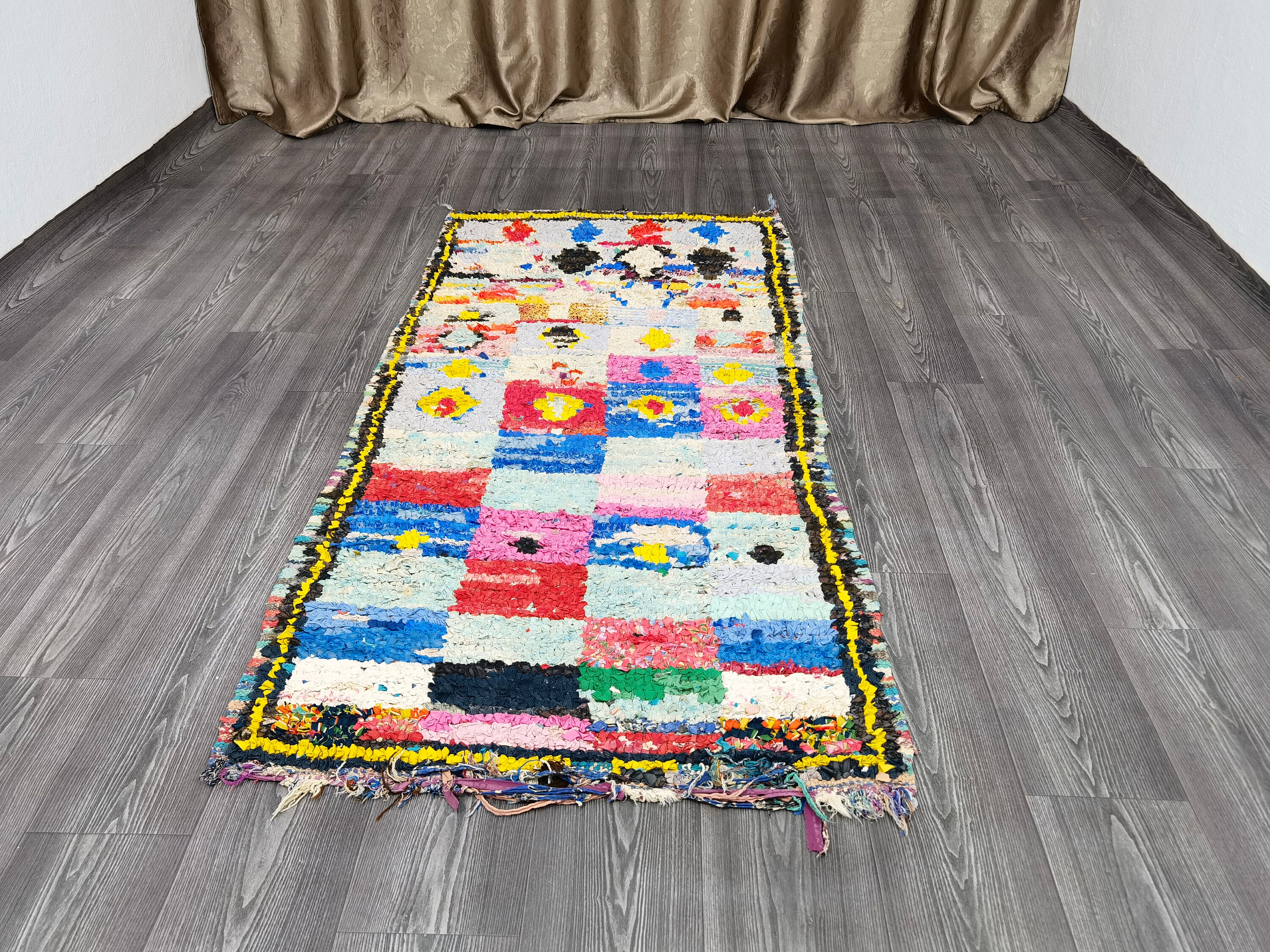 3x6 feet boucherouite rug - vintage Moroccan rug runner - vintage morrocan rug - rugs for living room - vintage tribal rug -vintage area rug