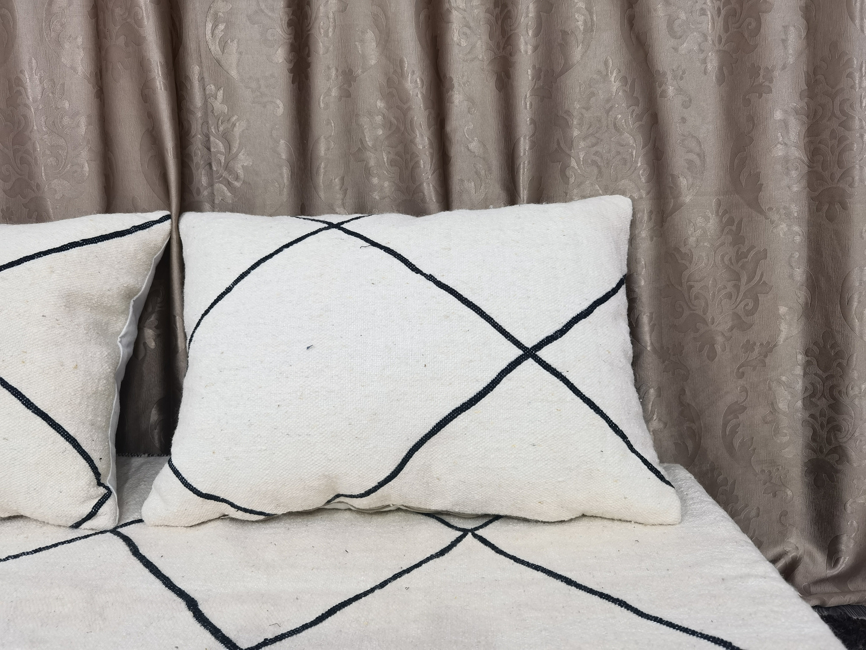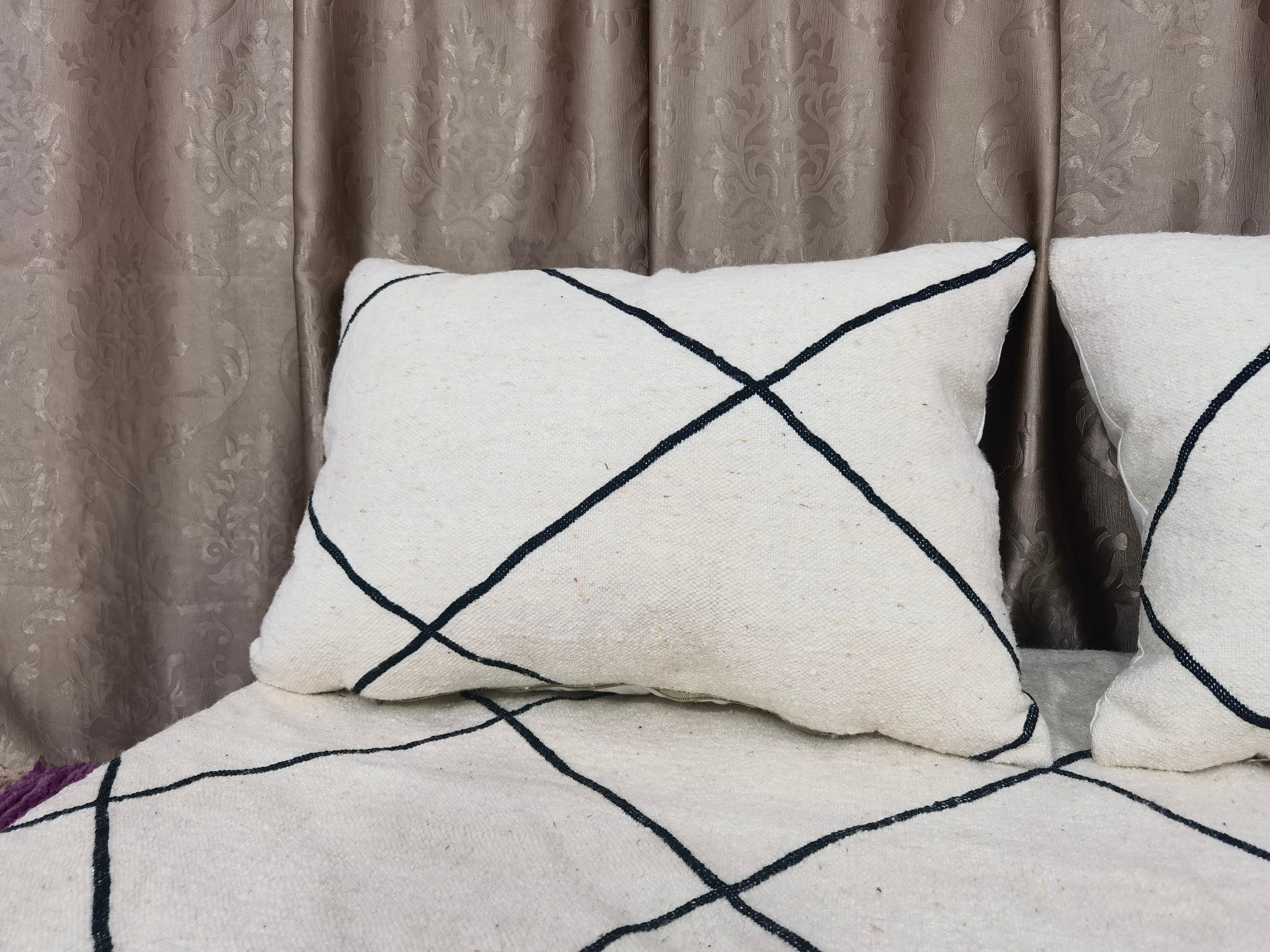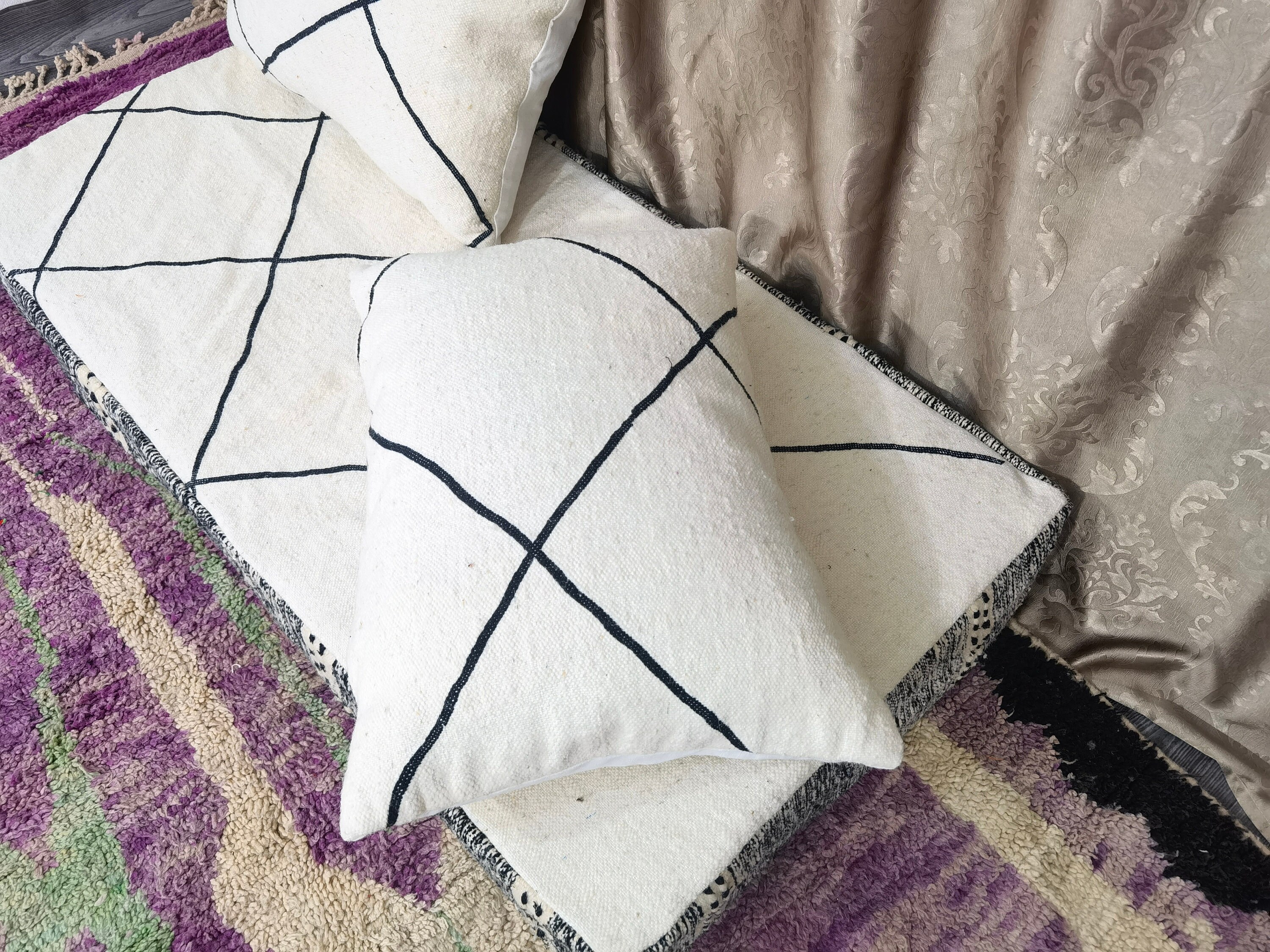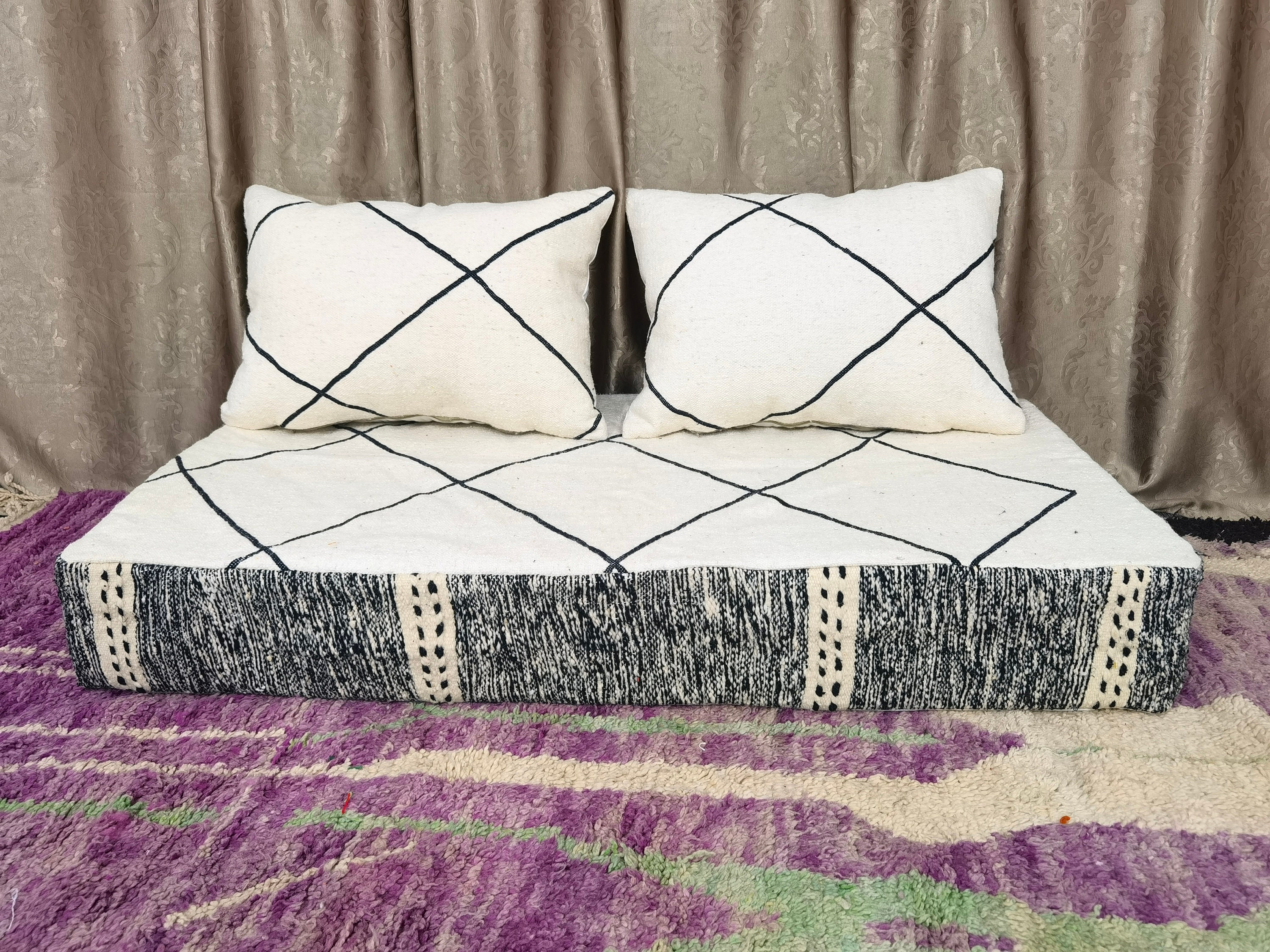 Featured Moroccan Floor couch , Unstuffed Complete set Long Floor Cushion 4/5/6/7 ft (120/150/180/210 x70x20 cm) + 2 Back Pillows .