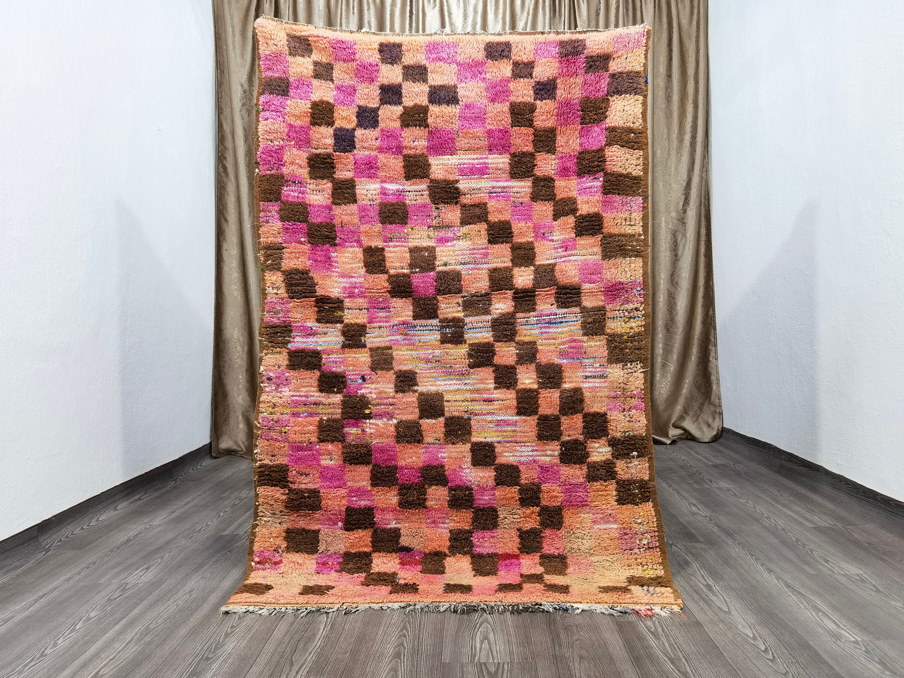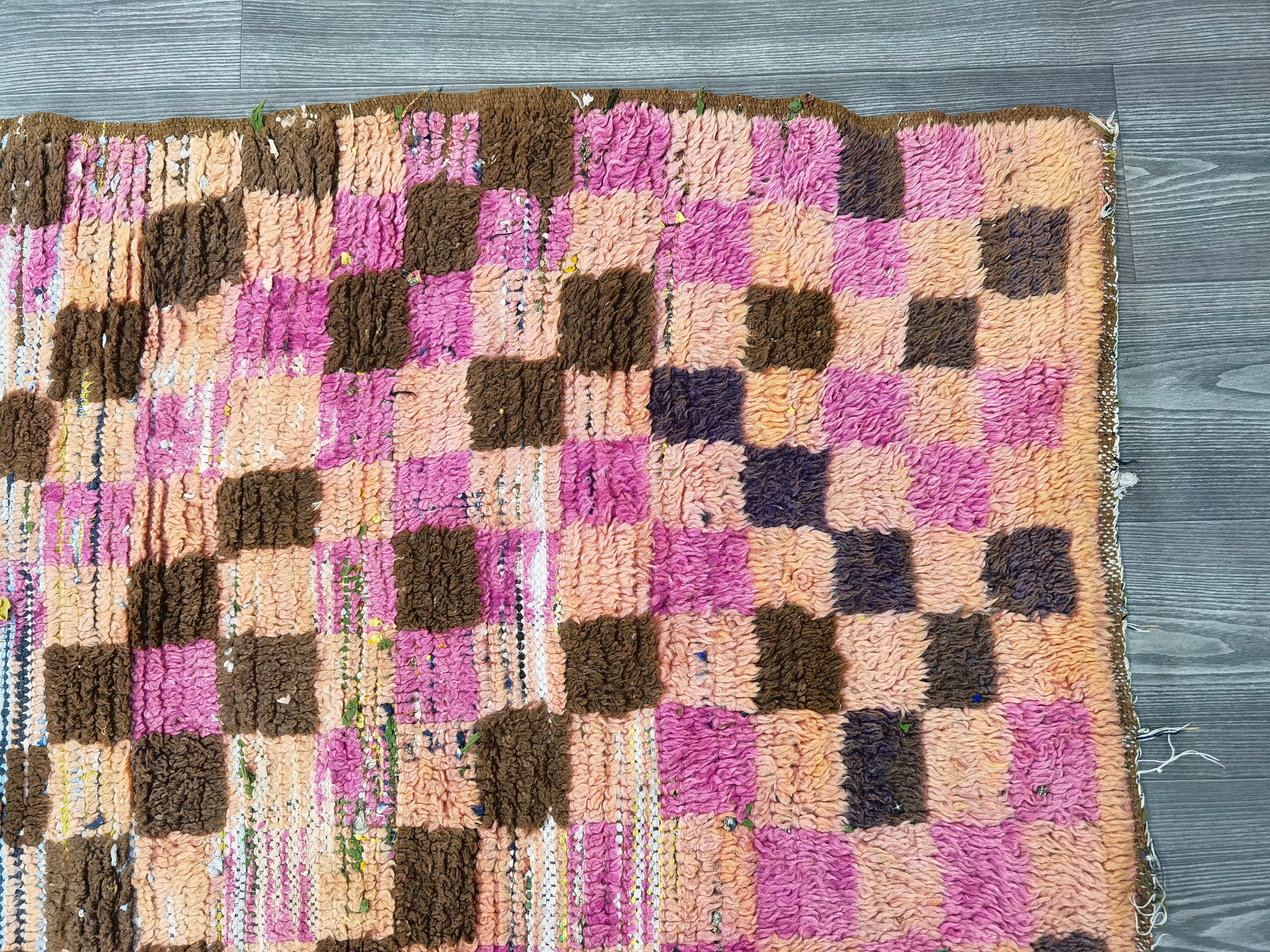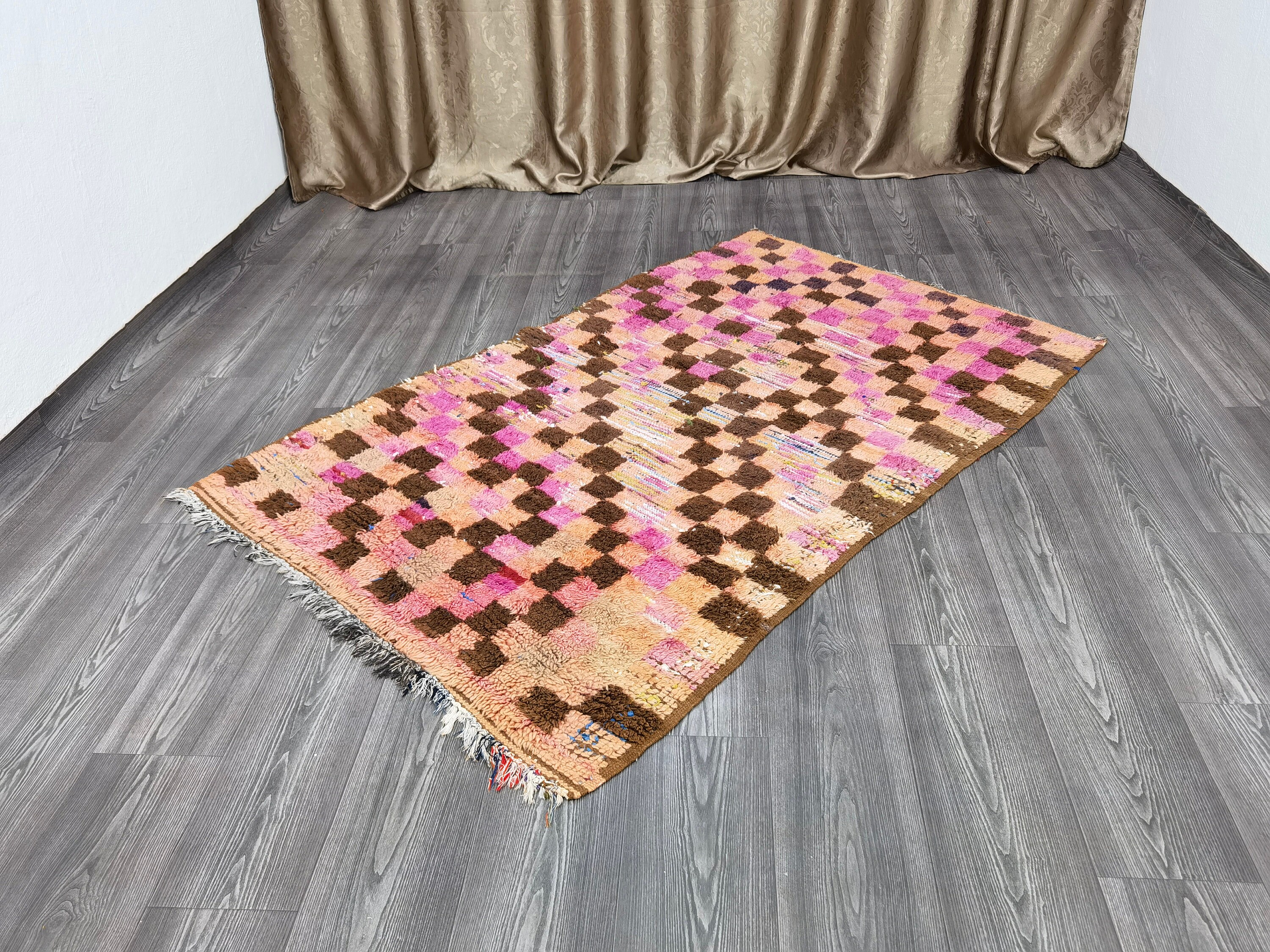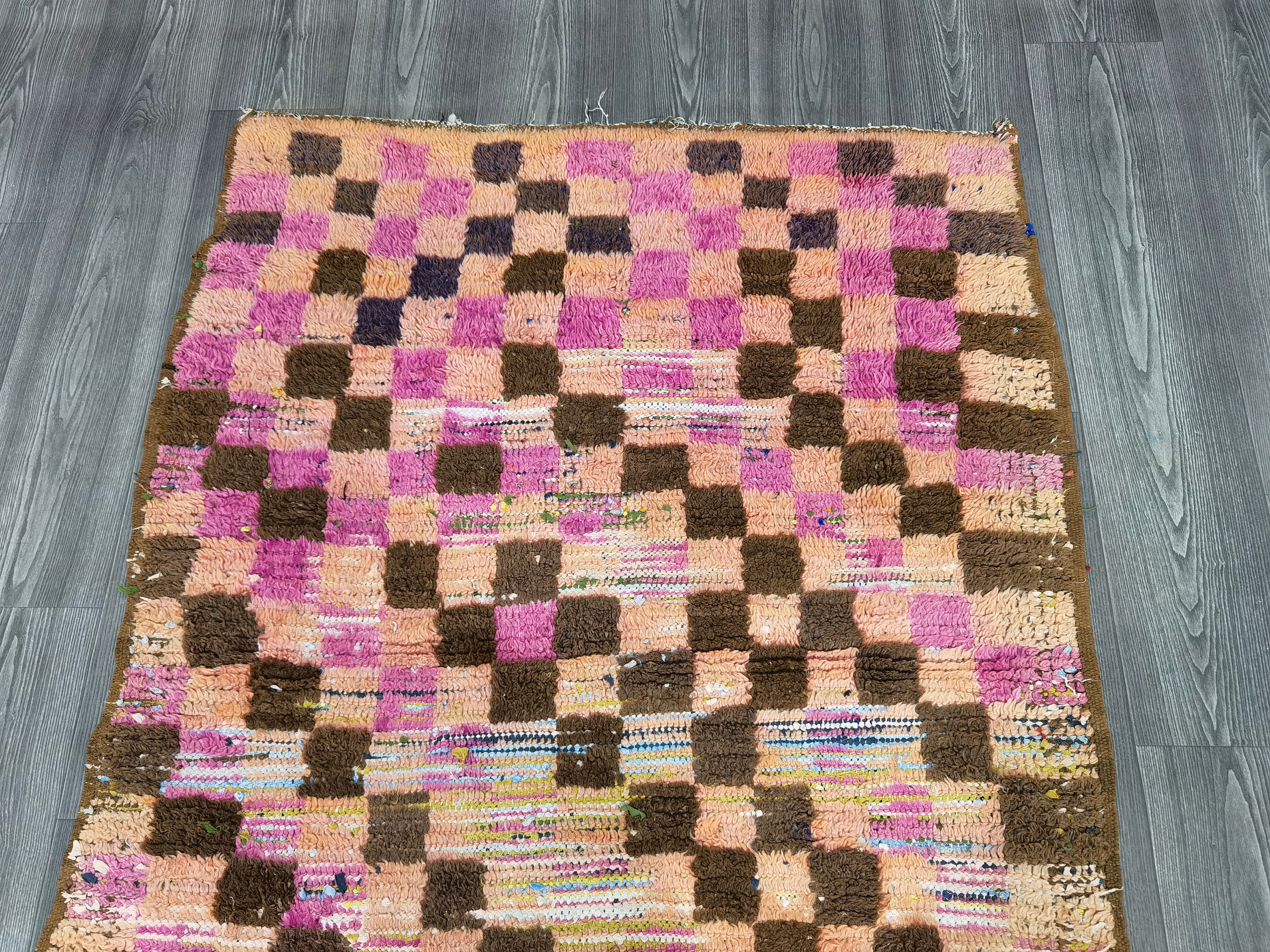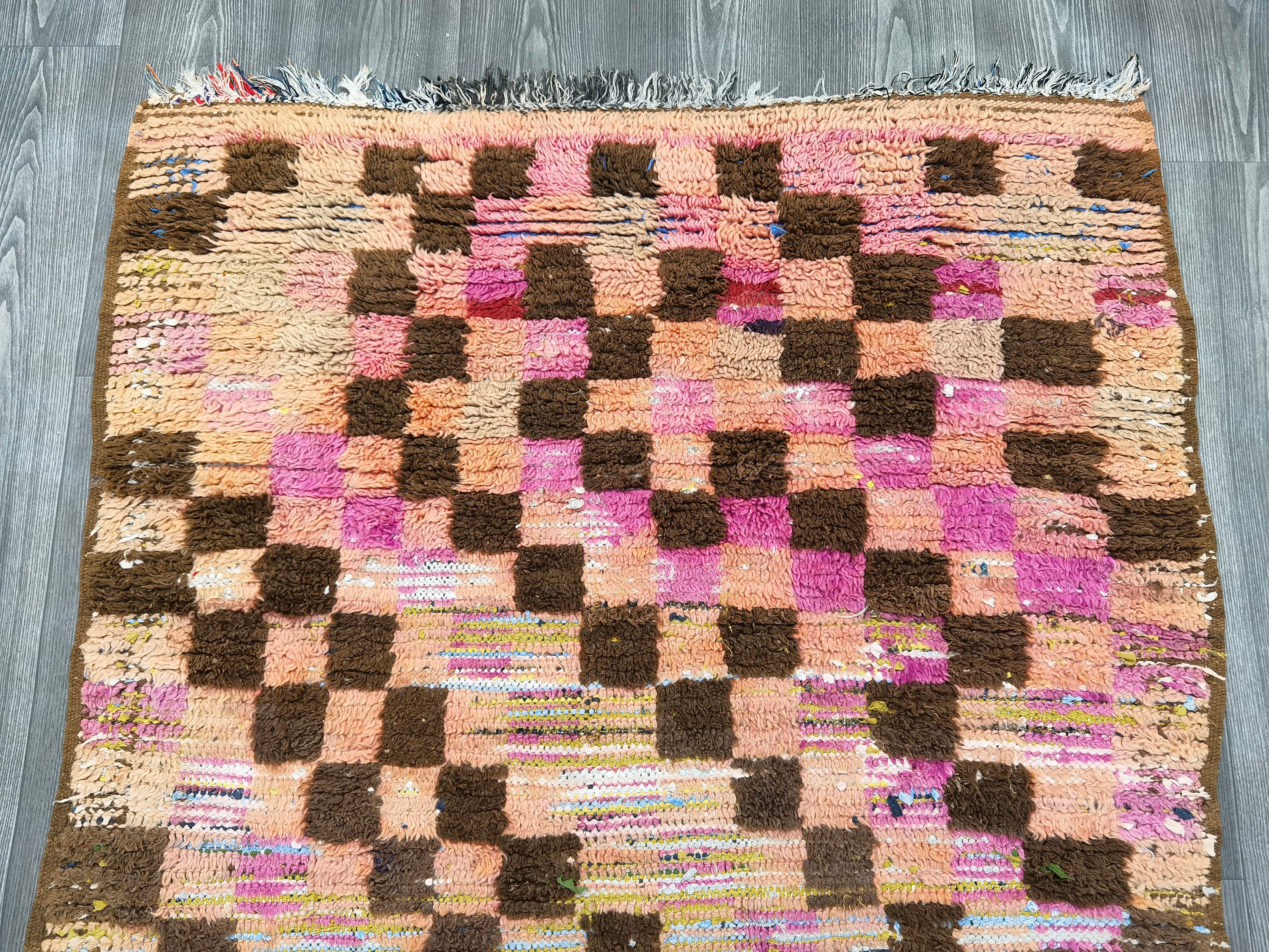 3,7×5,8 ft - Moroccan Checkerboard vintage runner rugs - Berber Vintage Bedroom Tuareg Carpet 3,7x5,8 ft - Moroccan Boujaad Checkerboard