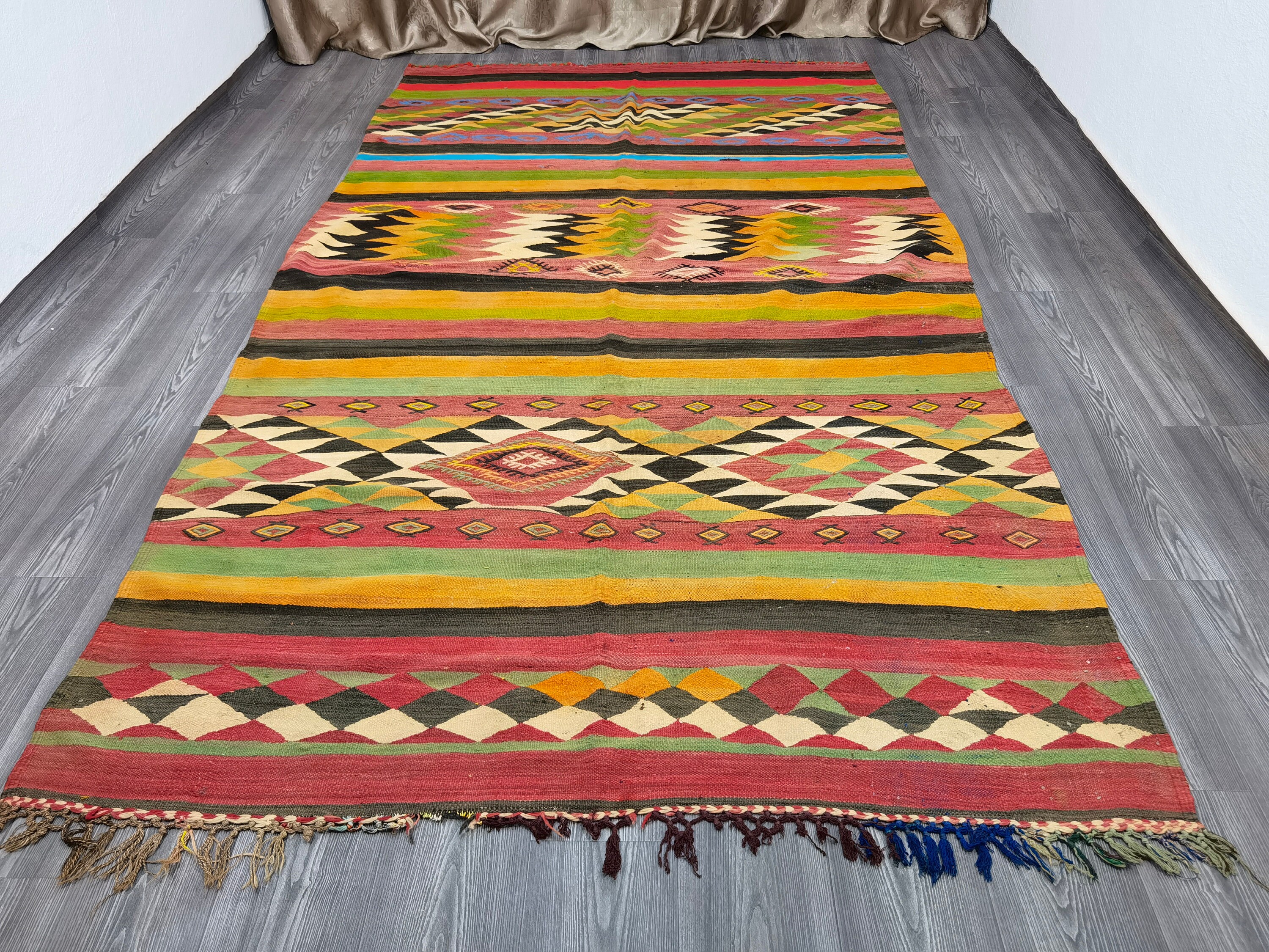 5.7x10.5 ft (320 x 174 cm) - Vintage Moroccan Kilim Rug - Large Kilim Rug - Flatweave Nursery Rug - Hand Woven Moroccan Rug - Colorful Rugs