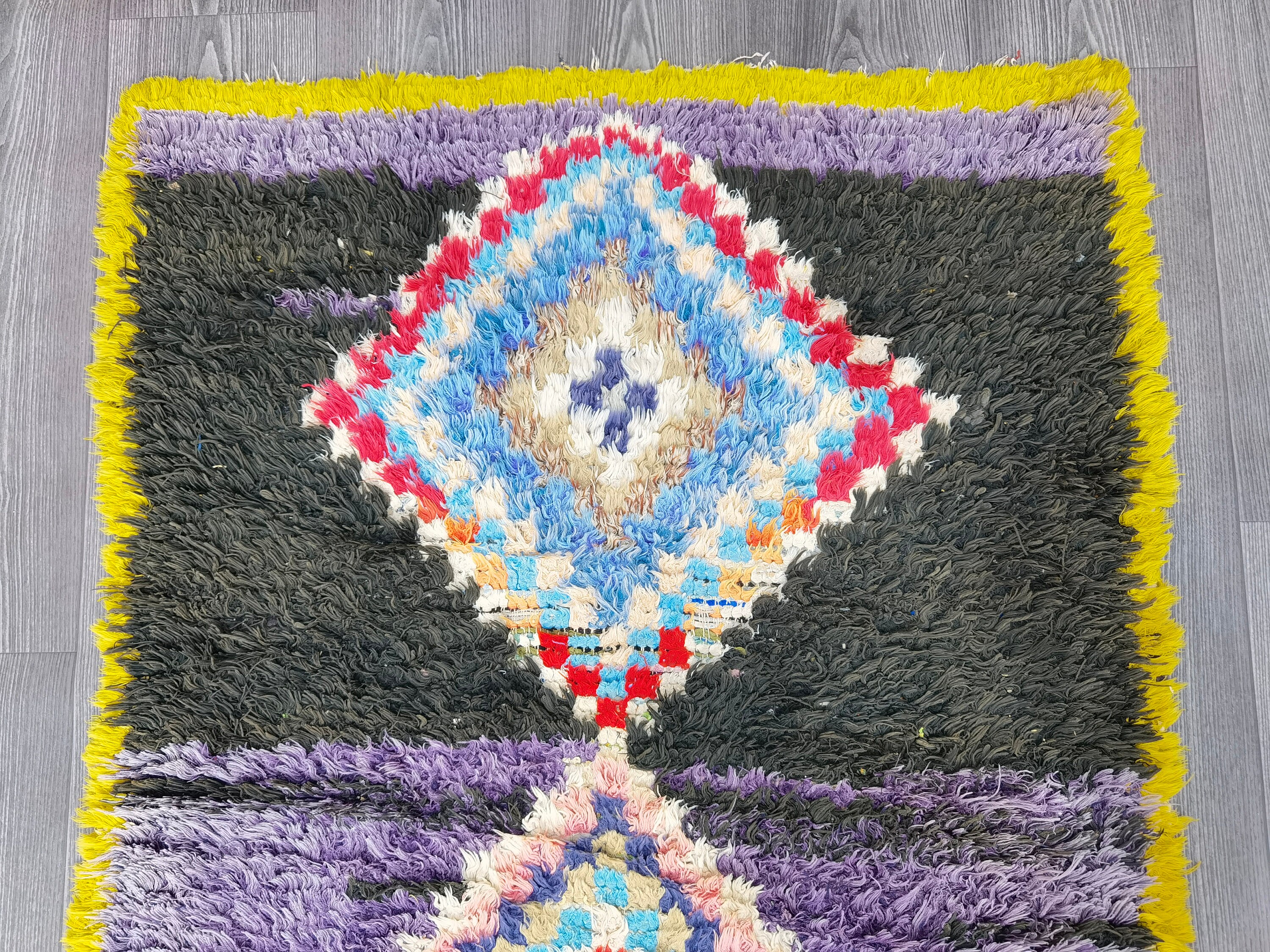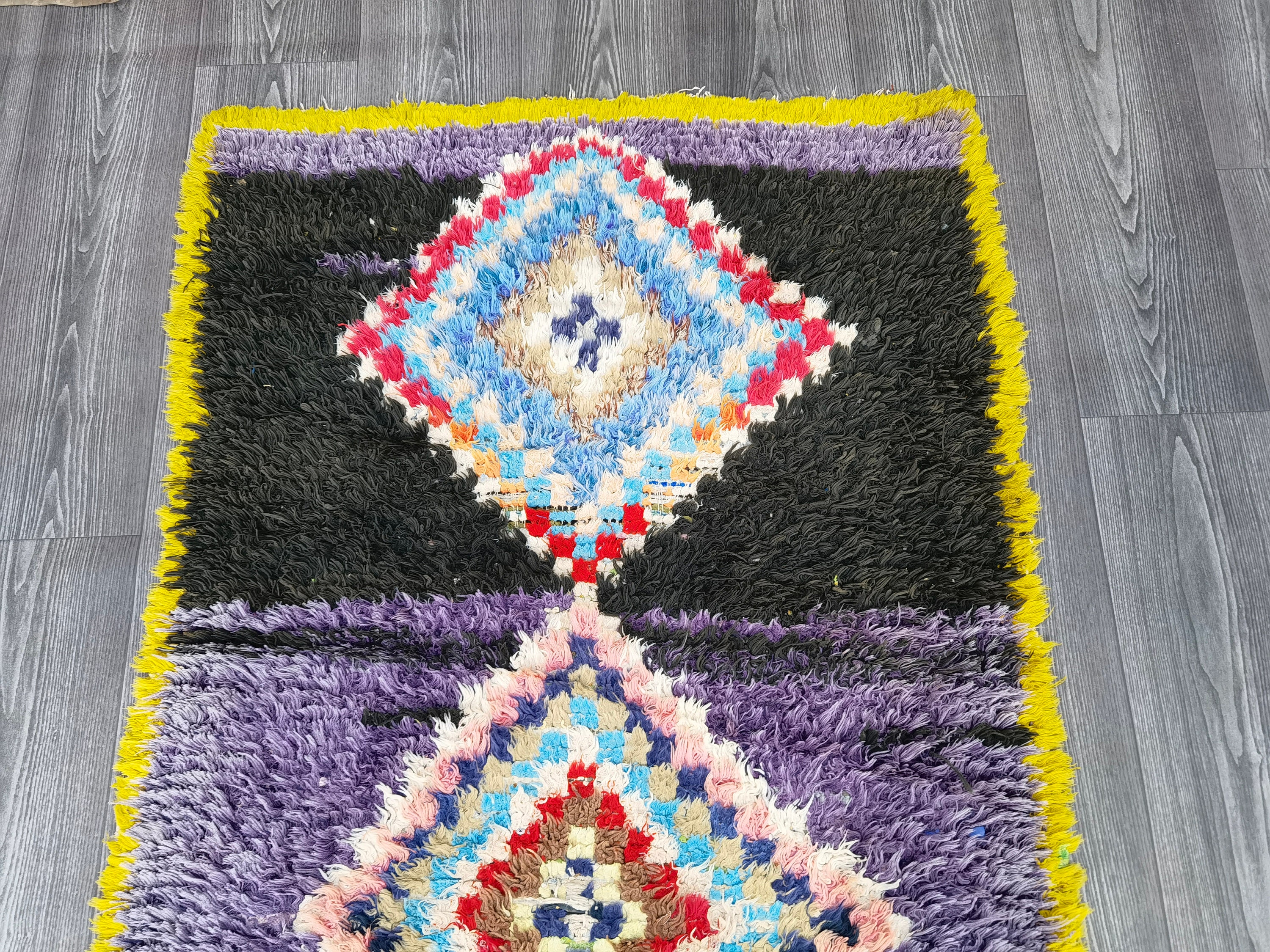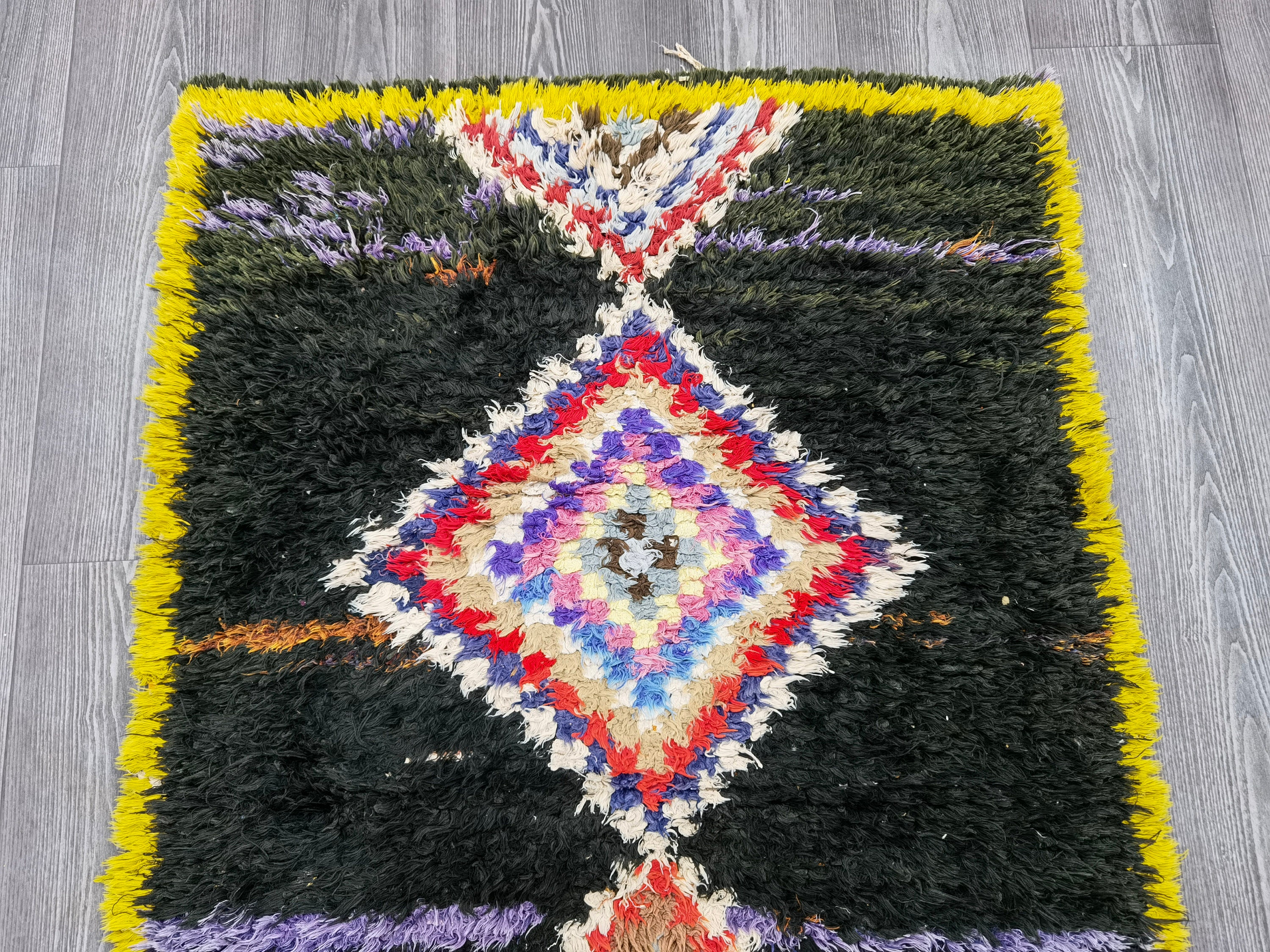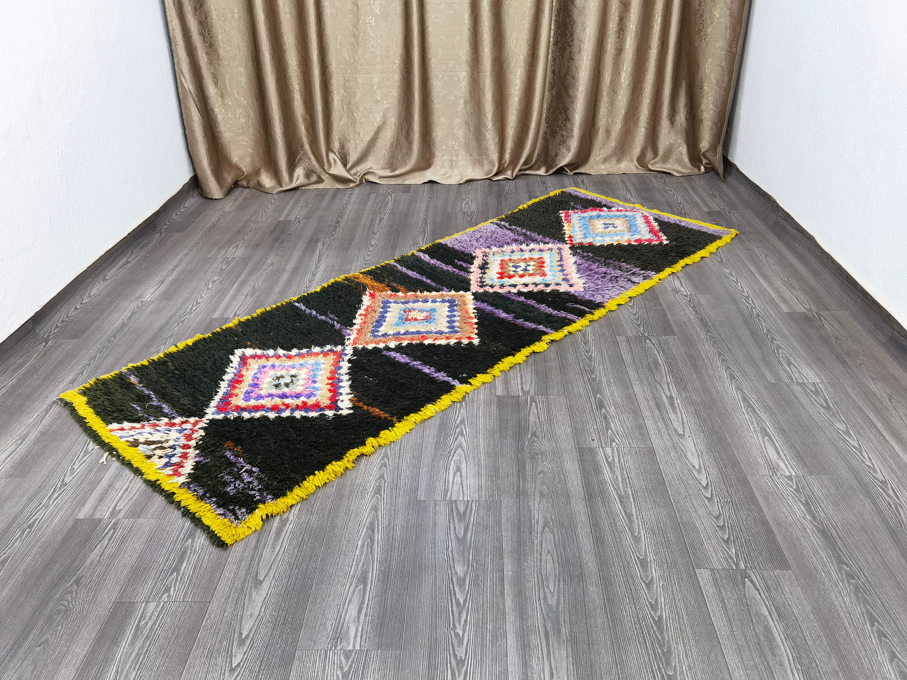 Gorgeous Moroccan Runner Black Rug - Authentic boujaad runner rug - berber Colorful Runner Rug - Moroccan Runner Rug - Area runner rug