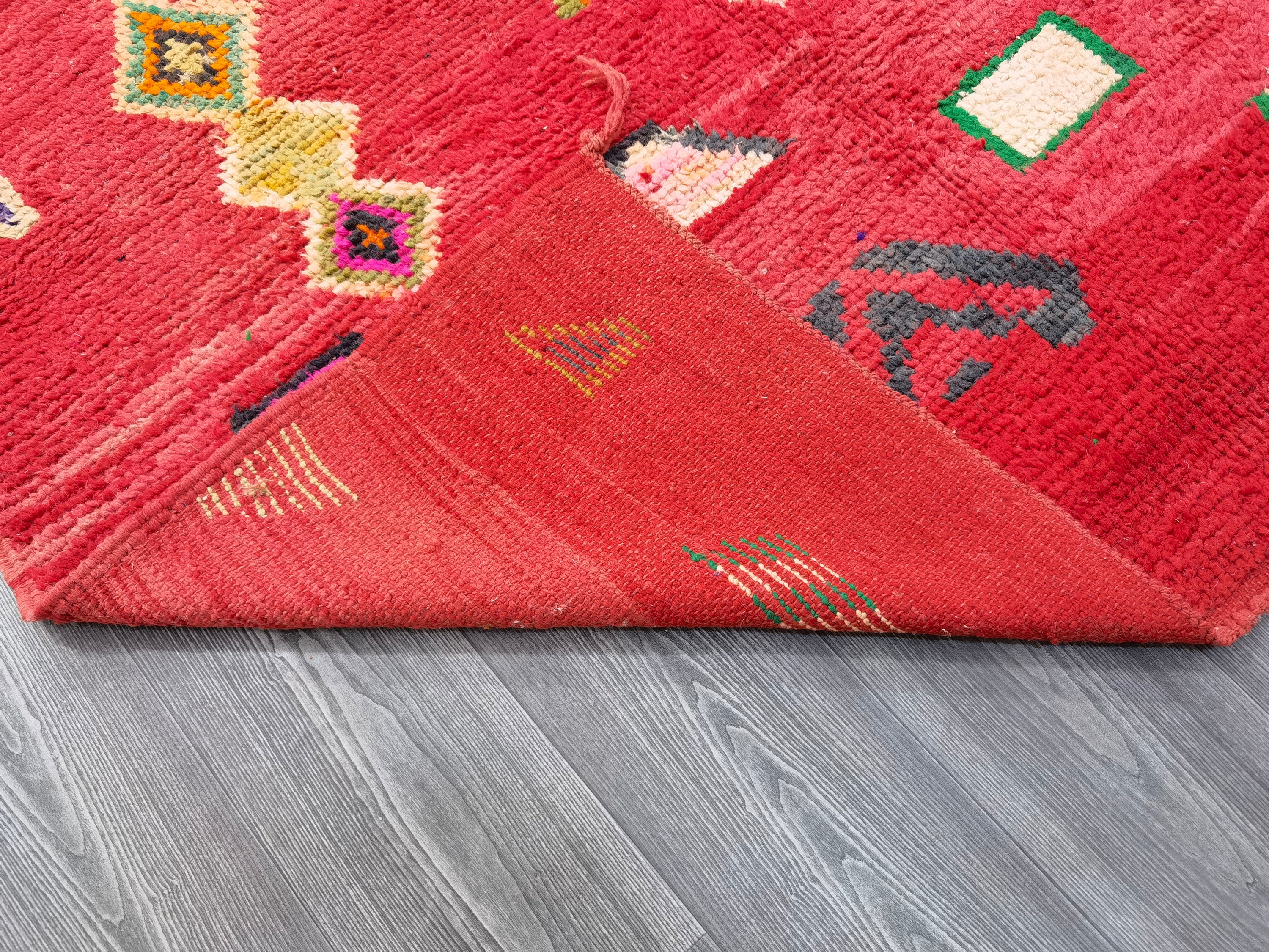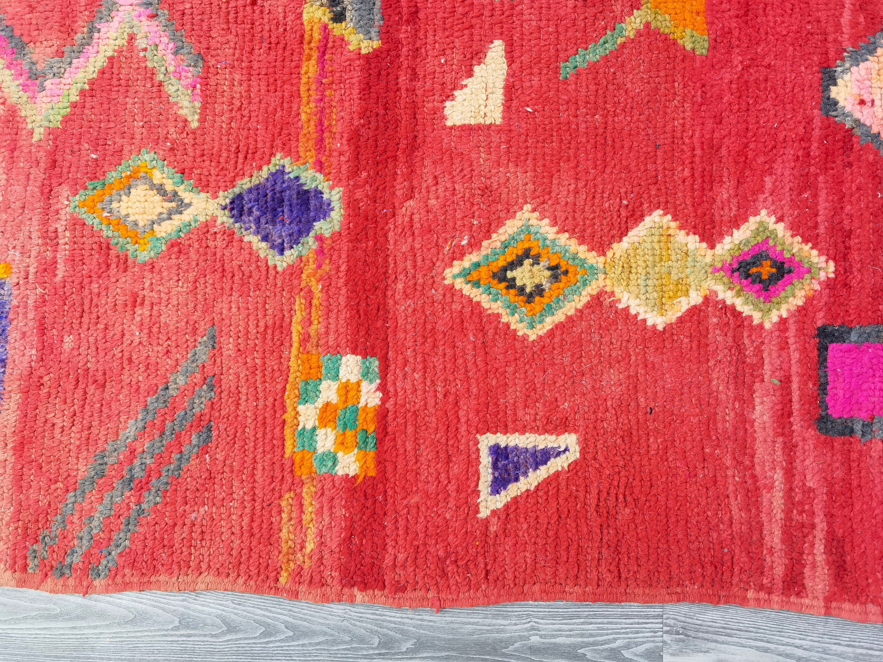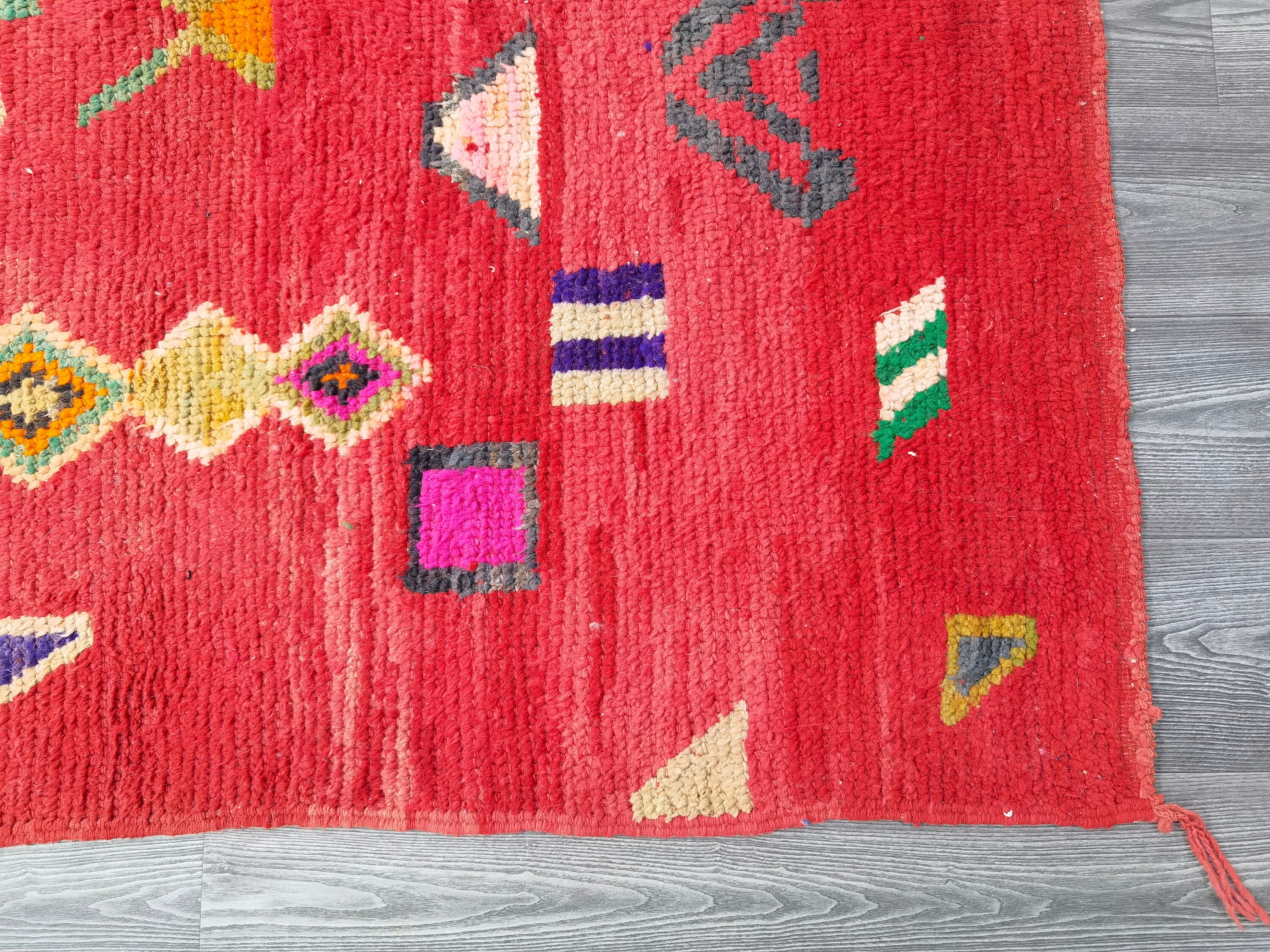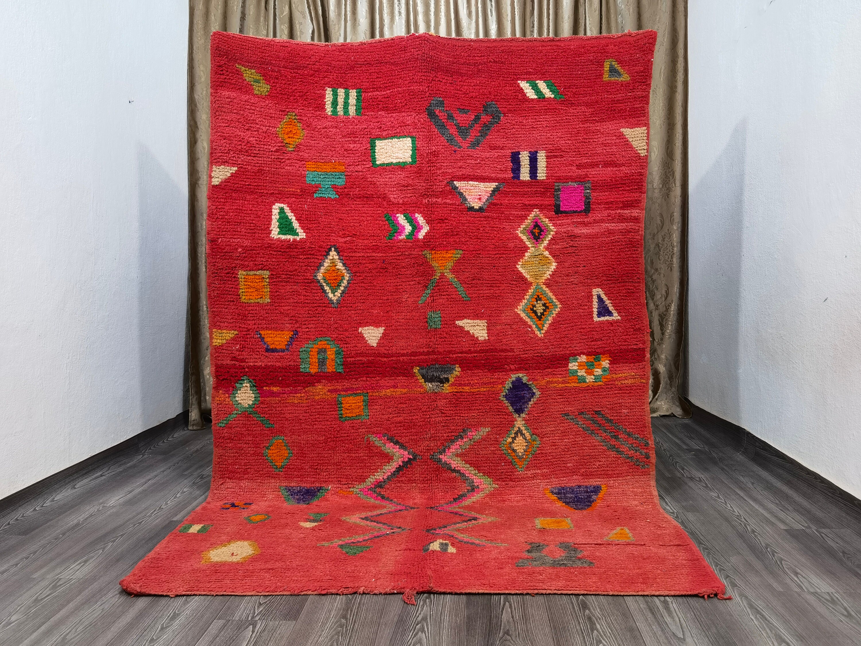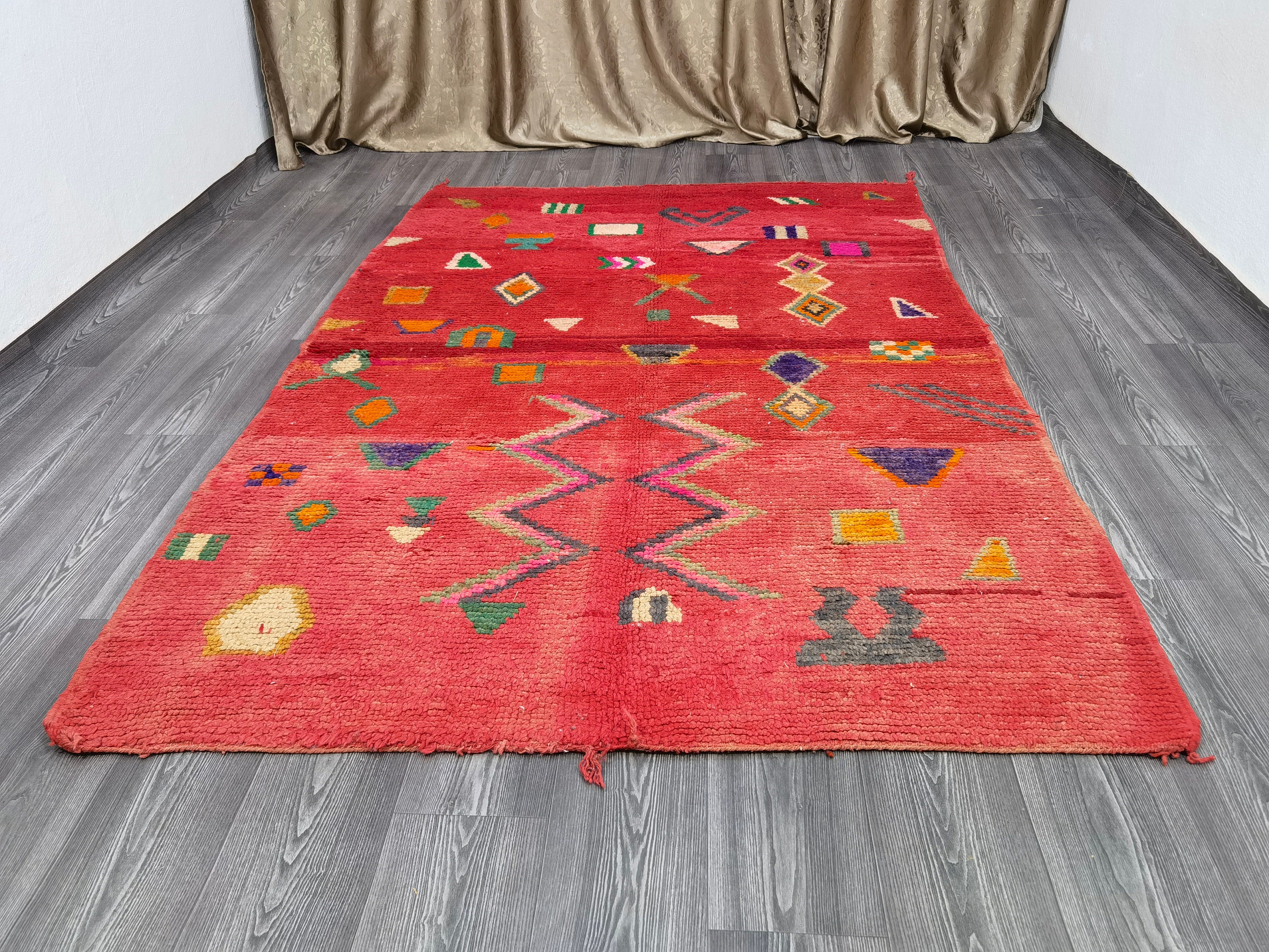 Handmade Red Moroccan Wool Rug, Custom Berber Beauty: Beni Ourain Craftsmanship for a Unique and Authentic Touch to Your Space.
