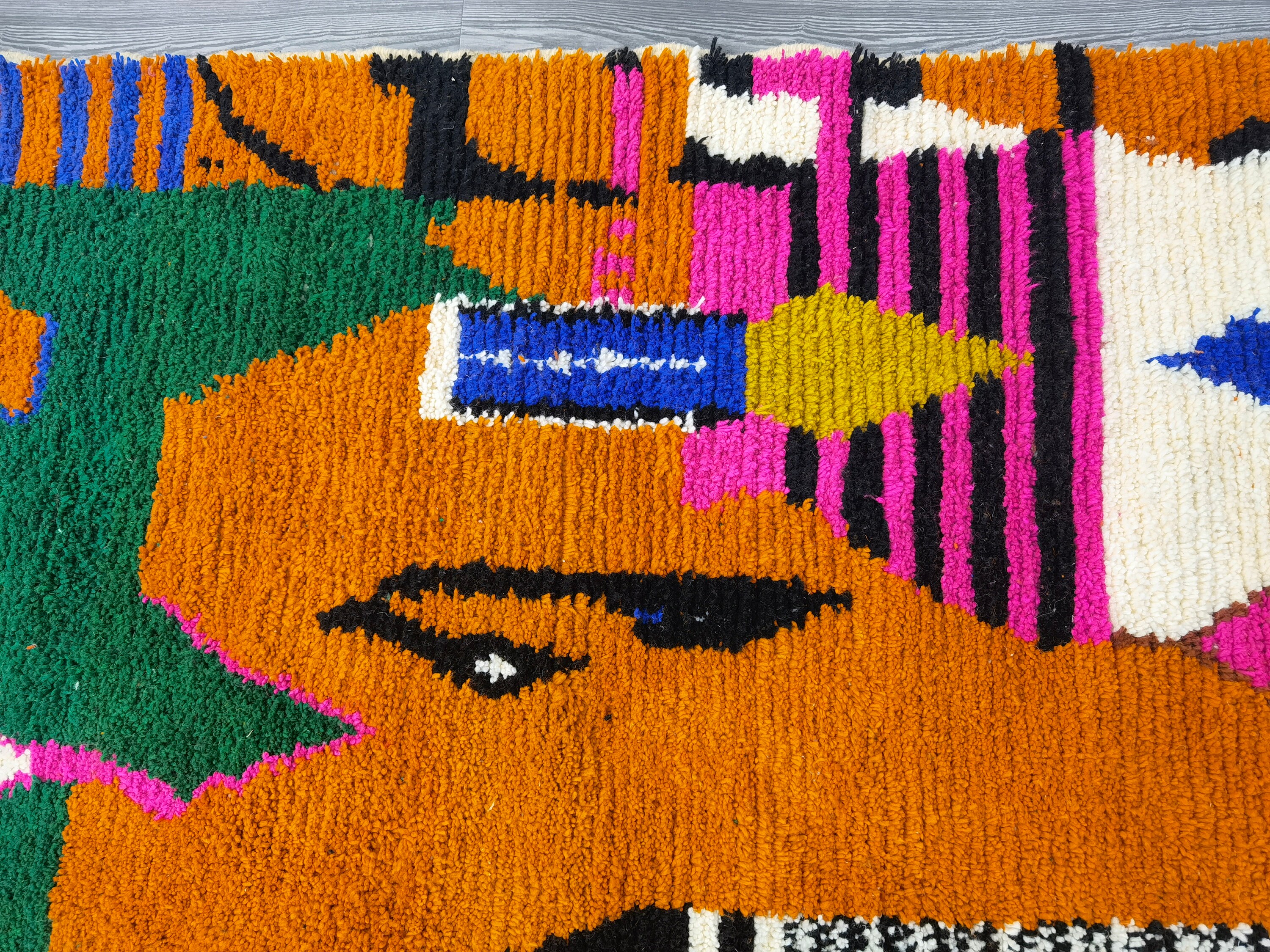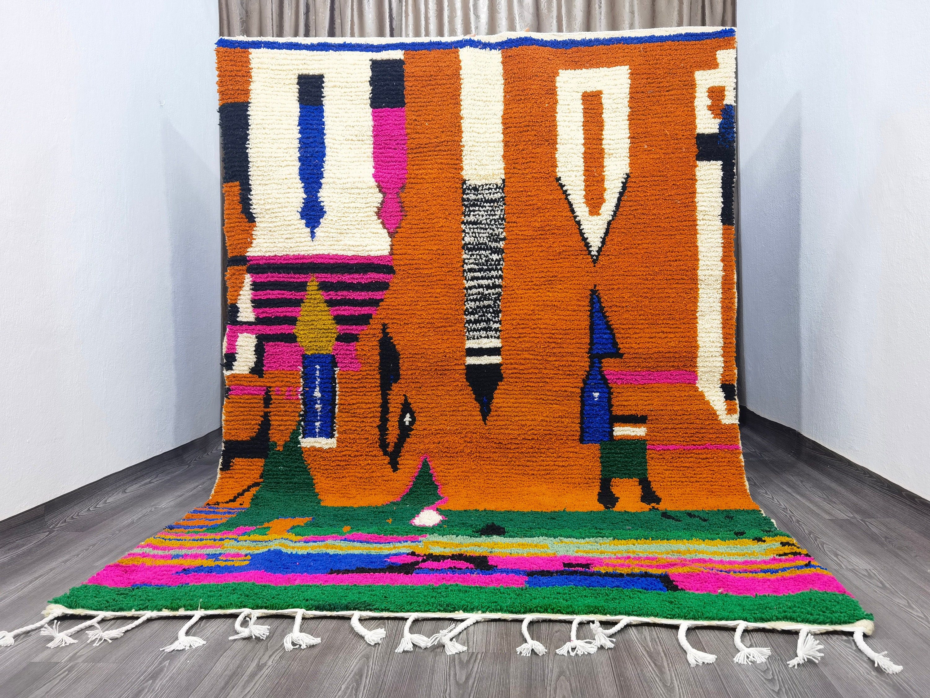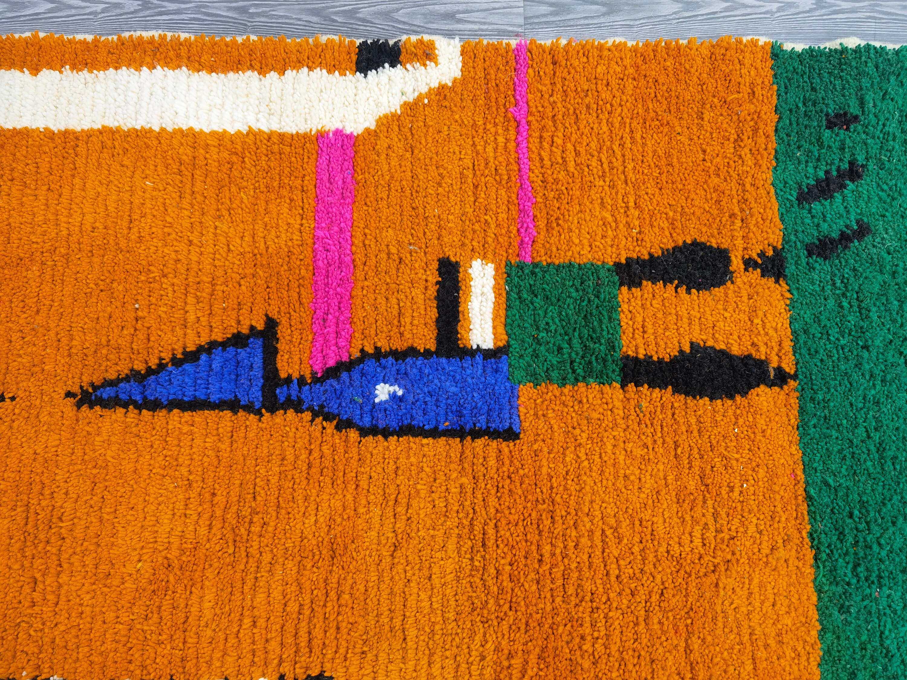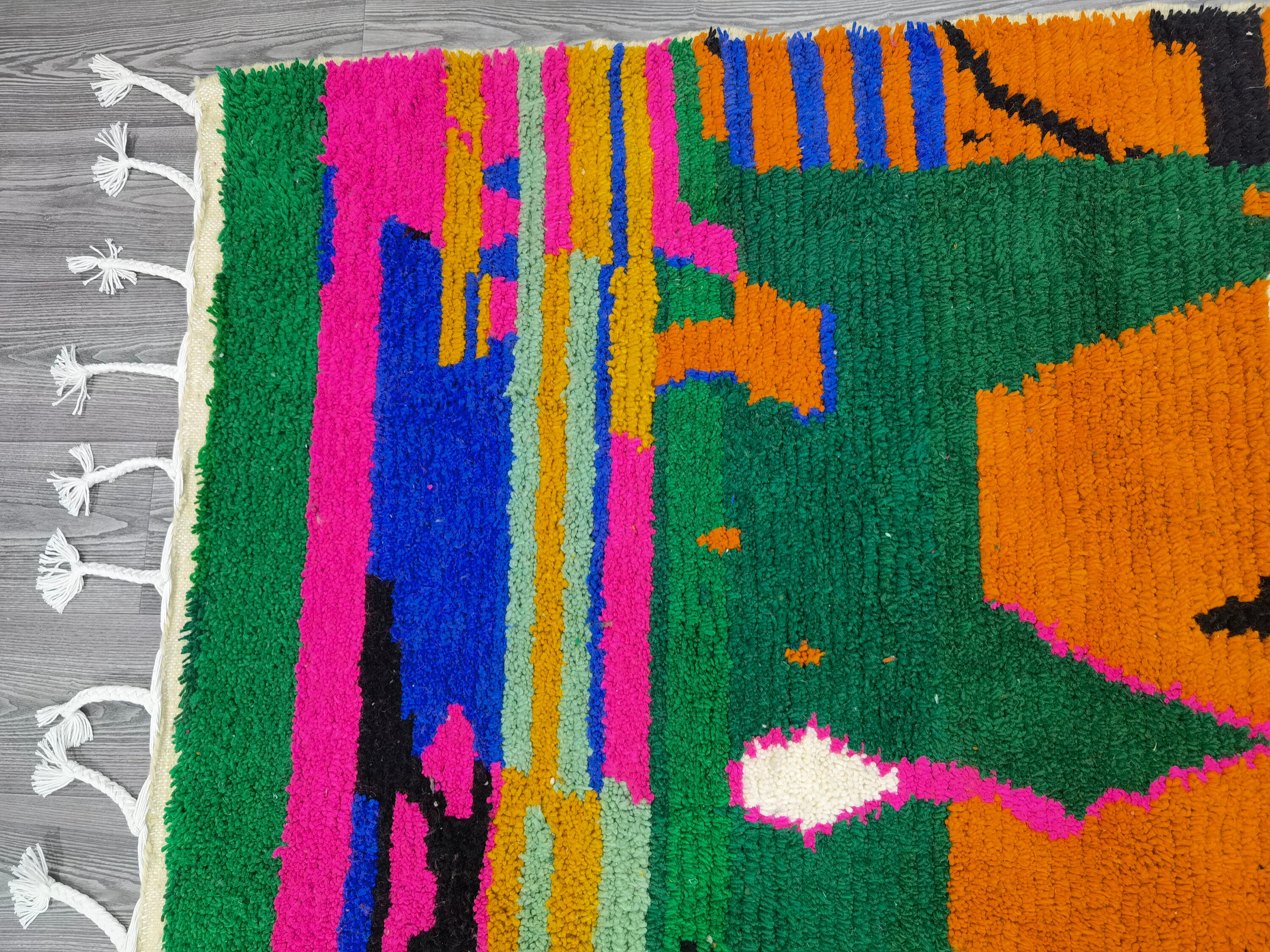This unique Handwoven Moroccan Boujaad wool rug is one of a kind. A unique rare artistic handmade art, a beautiful combination of colors. which makes it the best choice whether for your house or your showroom. The famous Boujaad rug is now on the cover of the world’s leading home decoration magazines. This rug with character goes perfectly with all interior styles, Bohemian, Modern, Minimalist, Scandinavian, Traditional, which makes it the best choice for your needs.