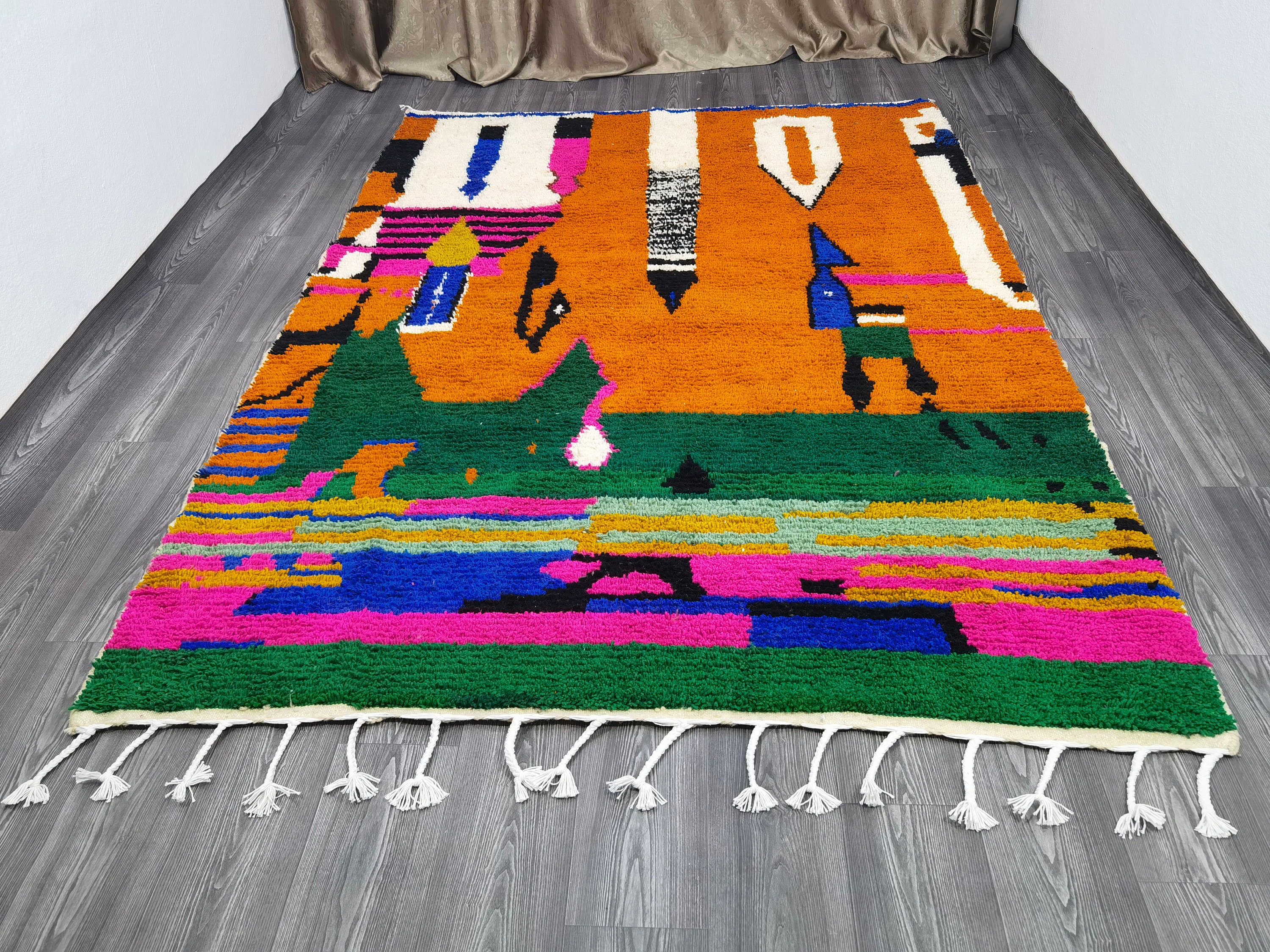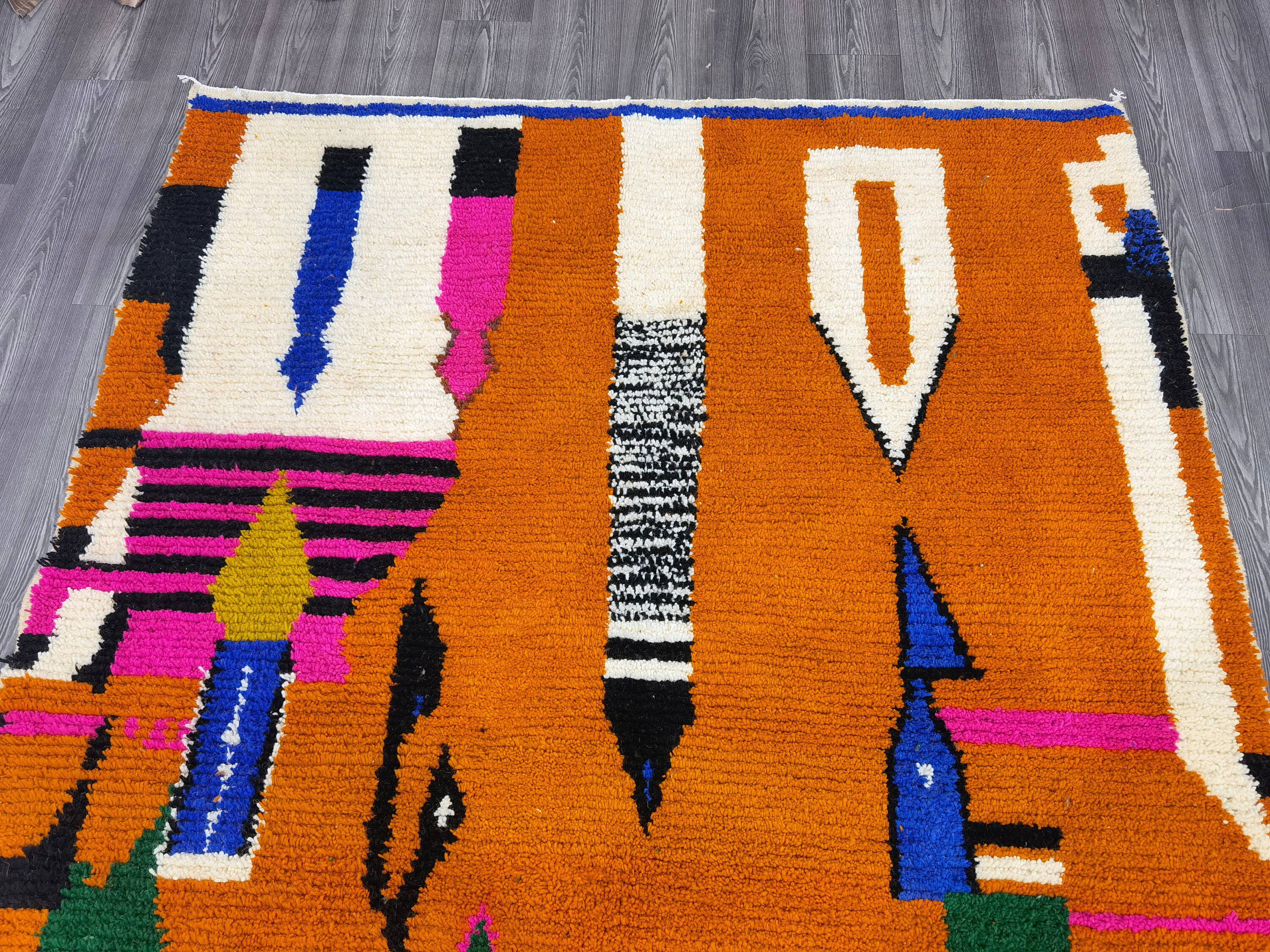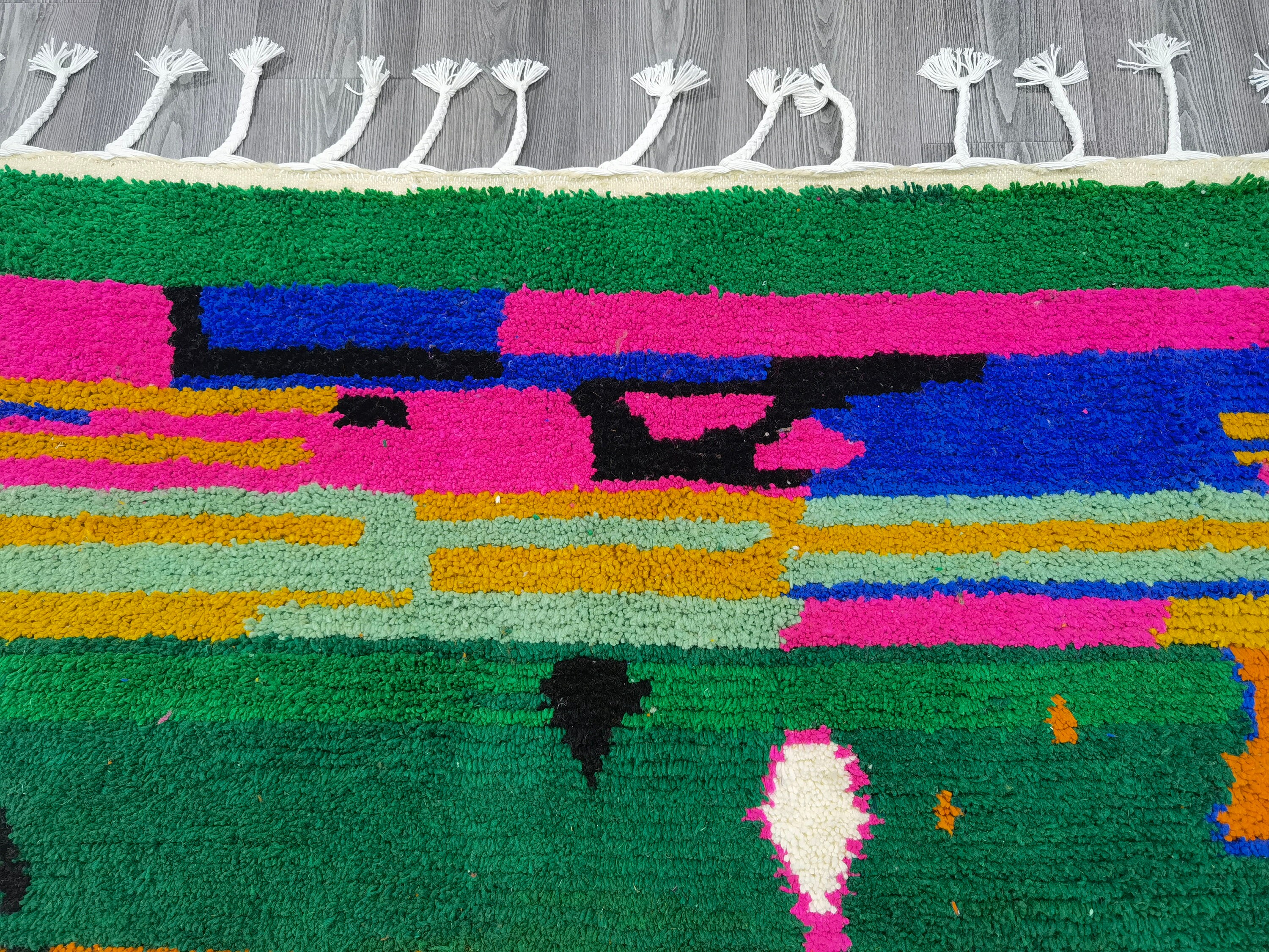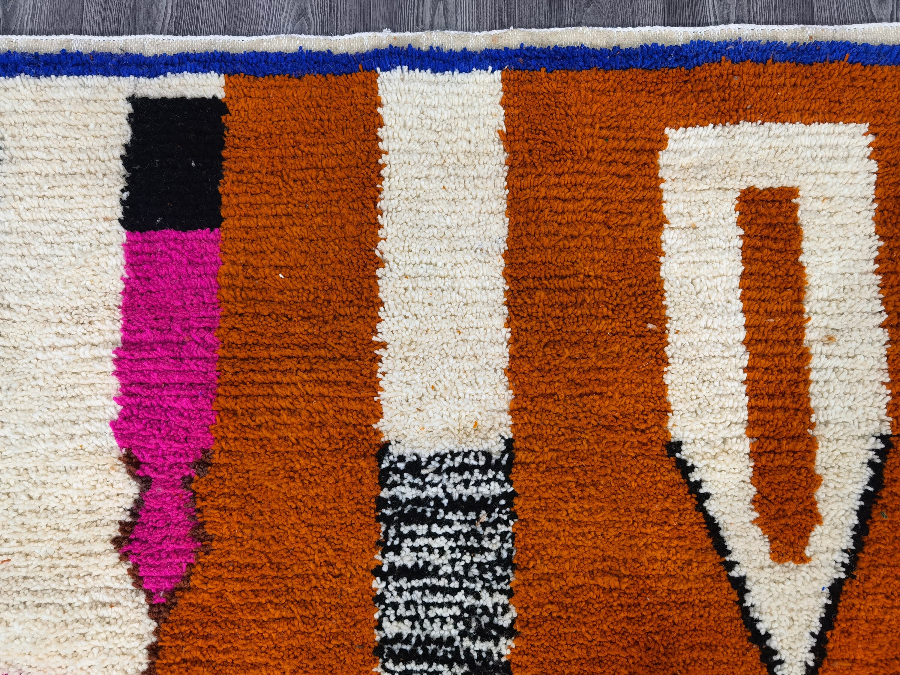 This unique Handwoven Moroccan Boujaad wool rug is one of a kind. A unique rare artistic handmade art, a beautiful combination of colors. which makes it the best choice whether for your house or your showroom. The famous Boujaad rug is now on the cover of the world’s leading home decoration magazines. This rug with character goes perfectly with all interior styles, Bohemian, Modern, Minimalist, Scandinavian, Traditional, which makes it the best choice for your needs.
