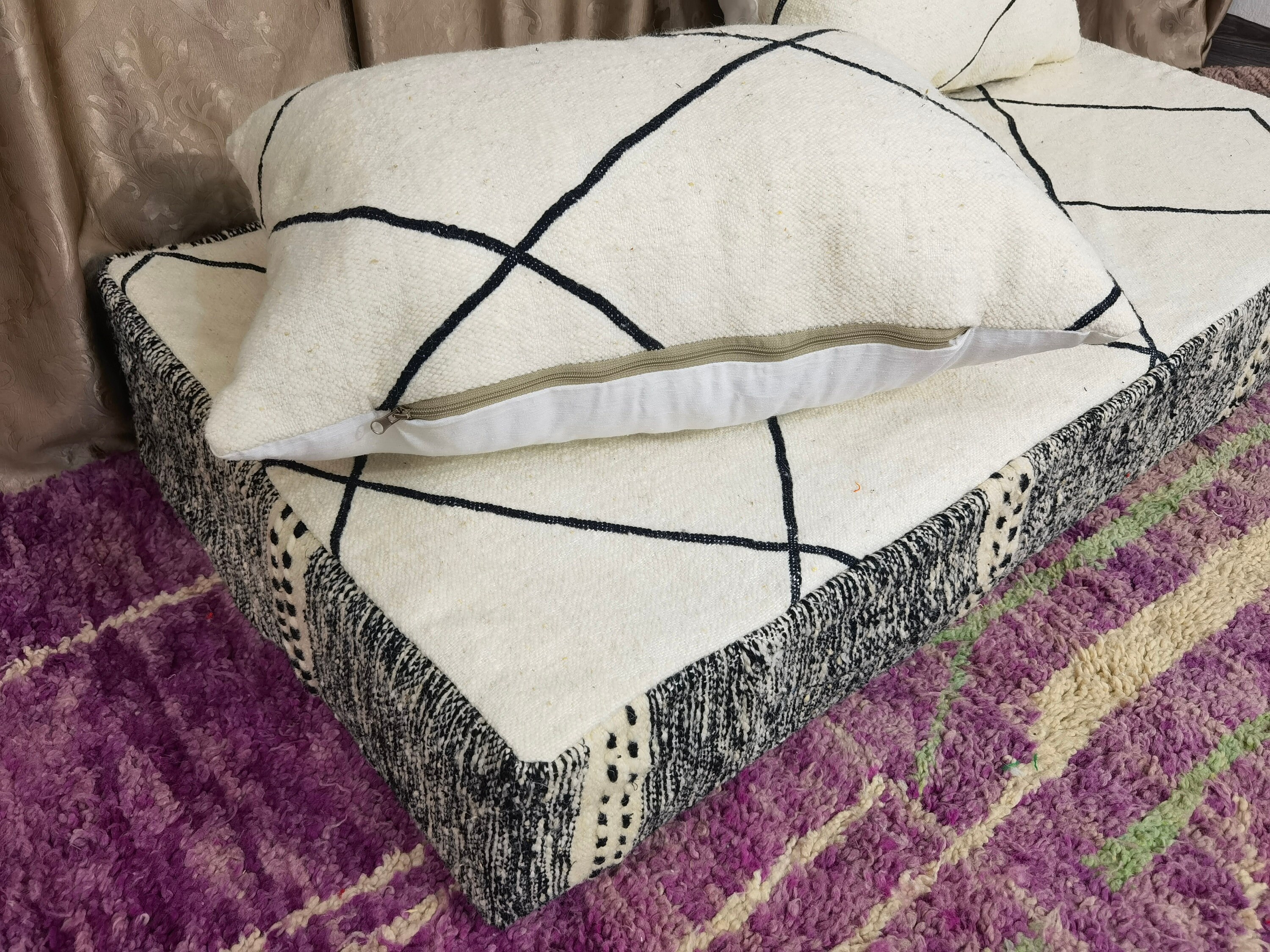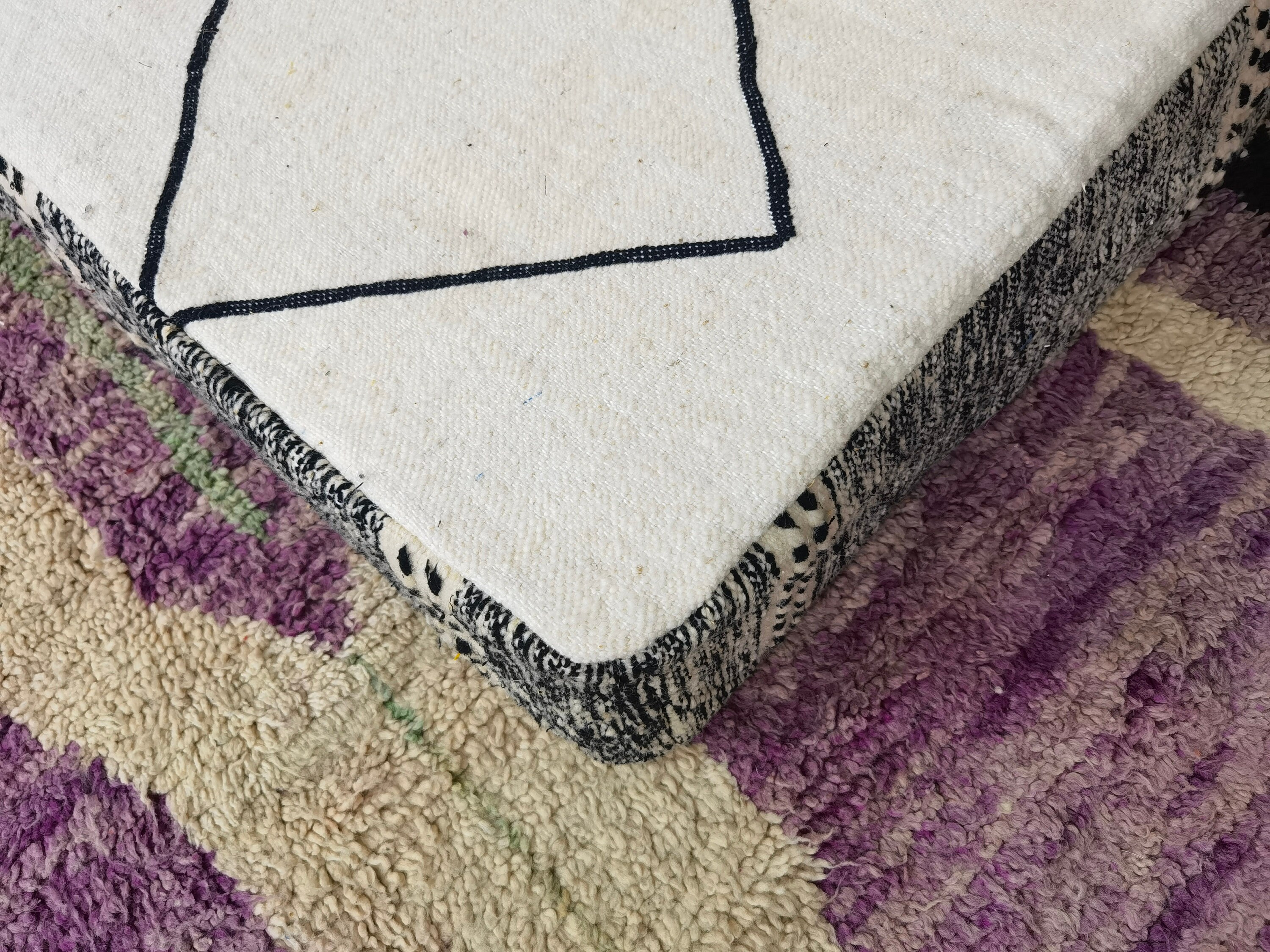 Introducing the newest addition to your Moroccan decor: the kilim pouf! This stylish floor cushion is made of 100% wool and features a Berber design. Perfect for adding a touch of sophistication to any room, the kilim pouf is perfect for lounging around or using as a seat.