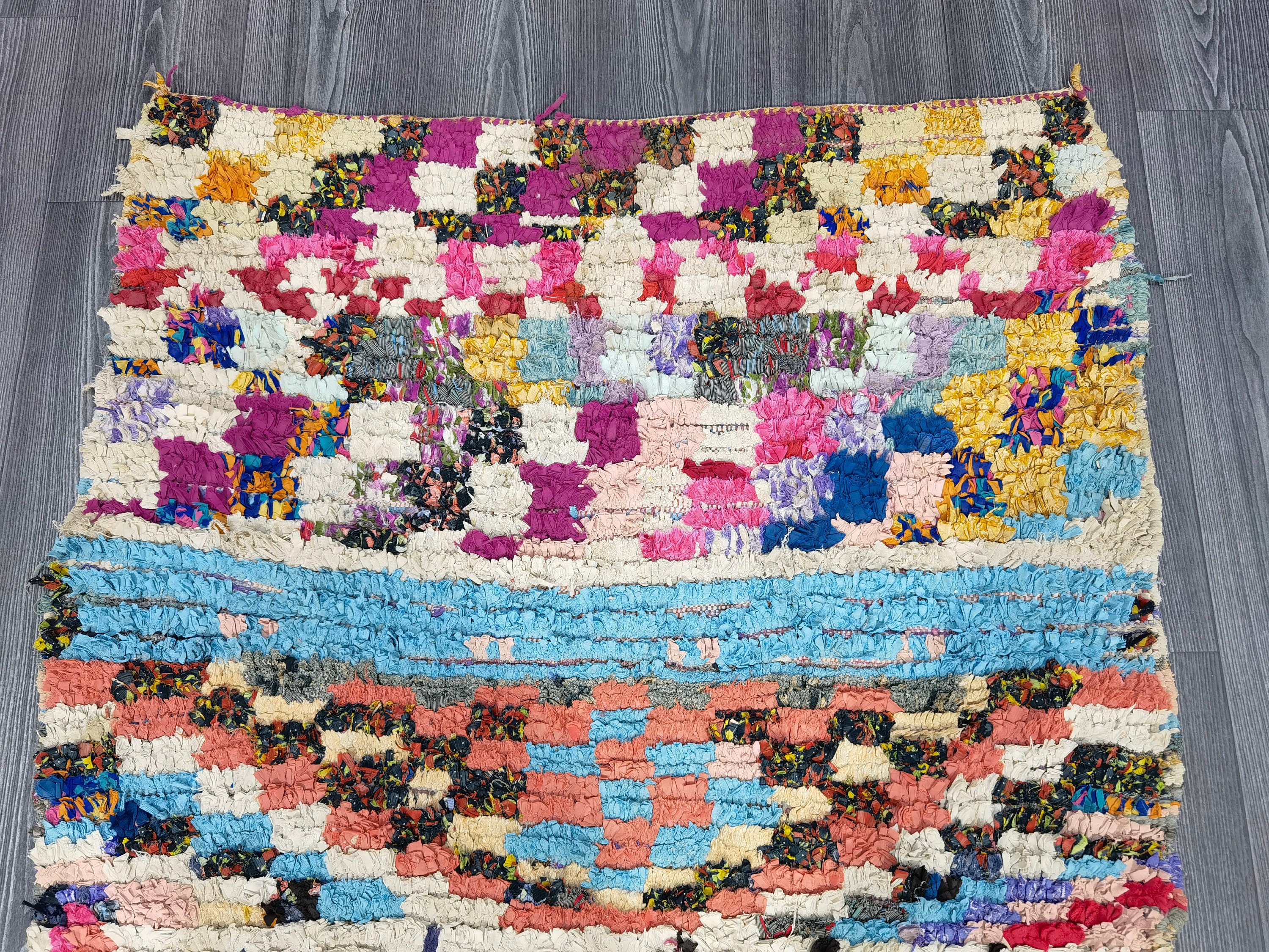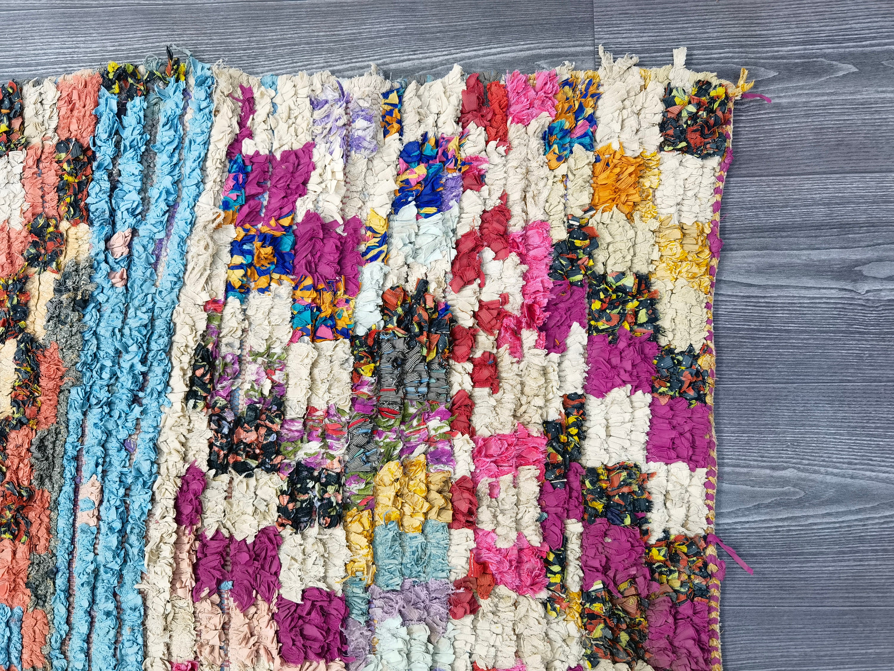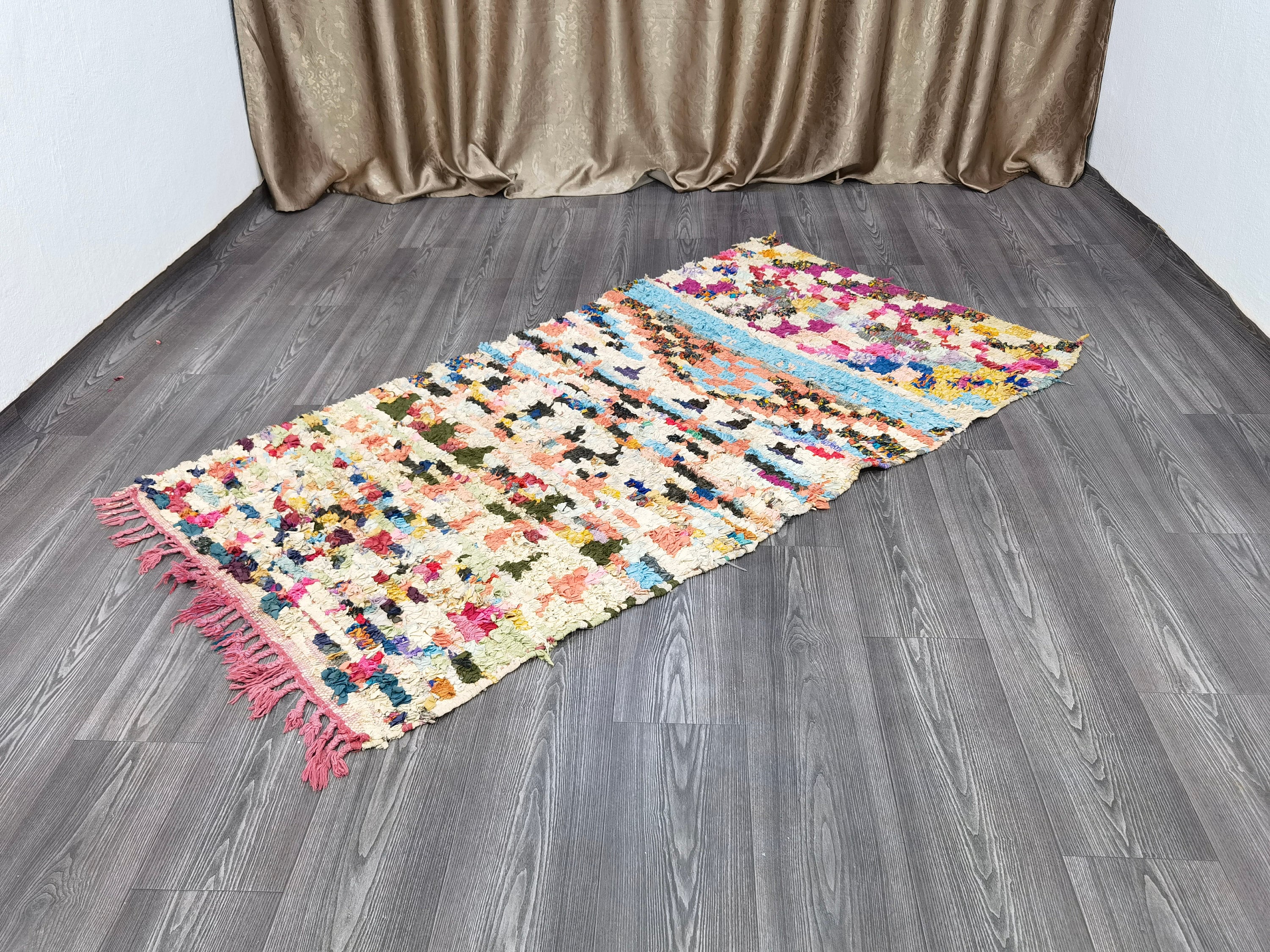 Vintage Boucherouite Rug: 3.3x6.3 Ft, Recycled Fabric Moroccan Rug