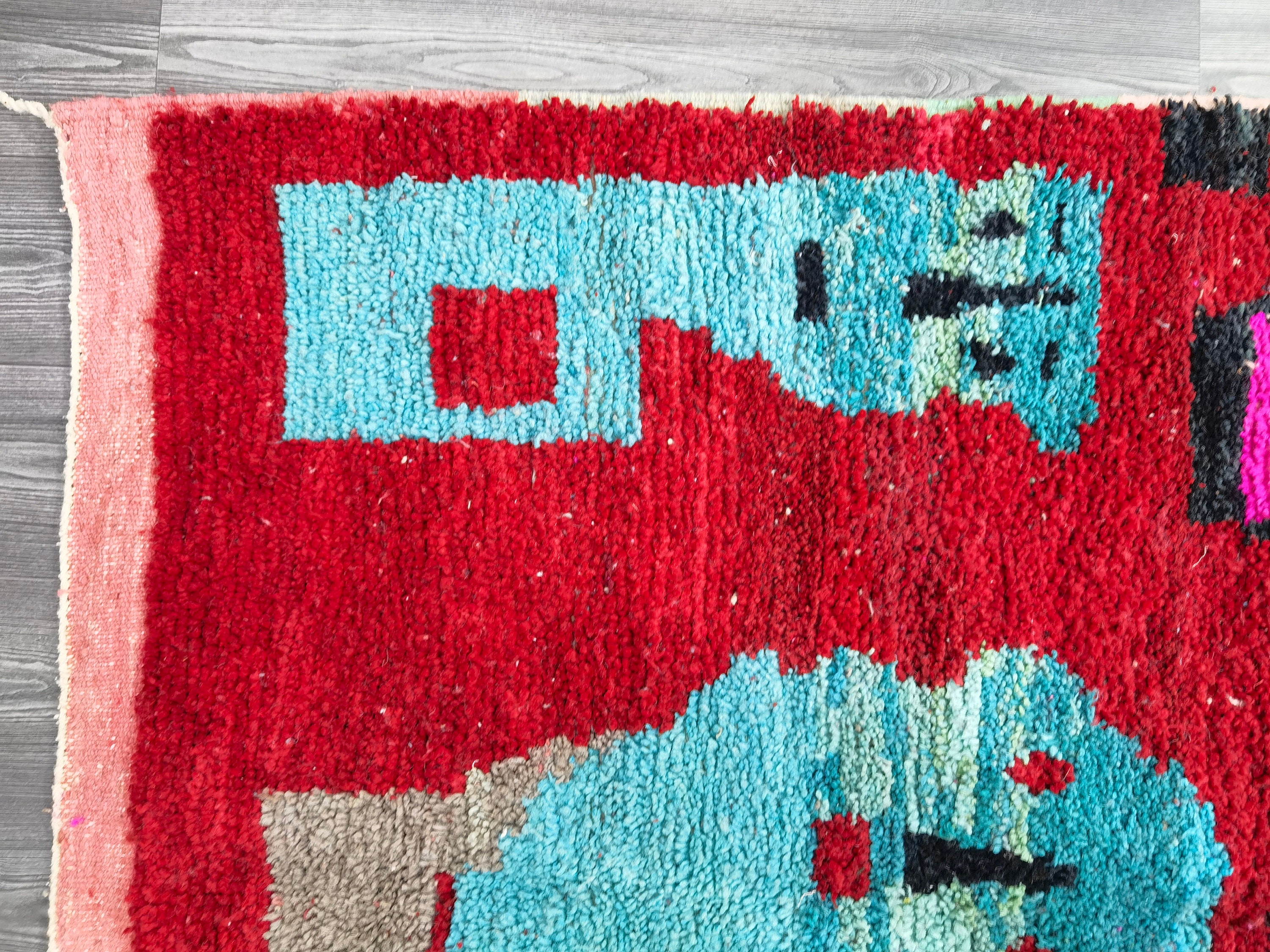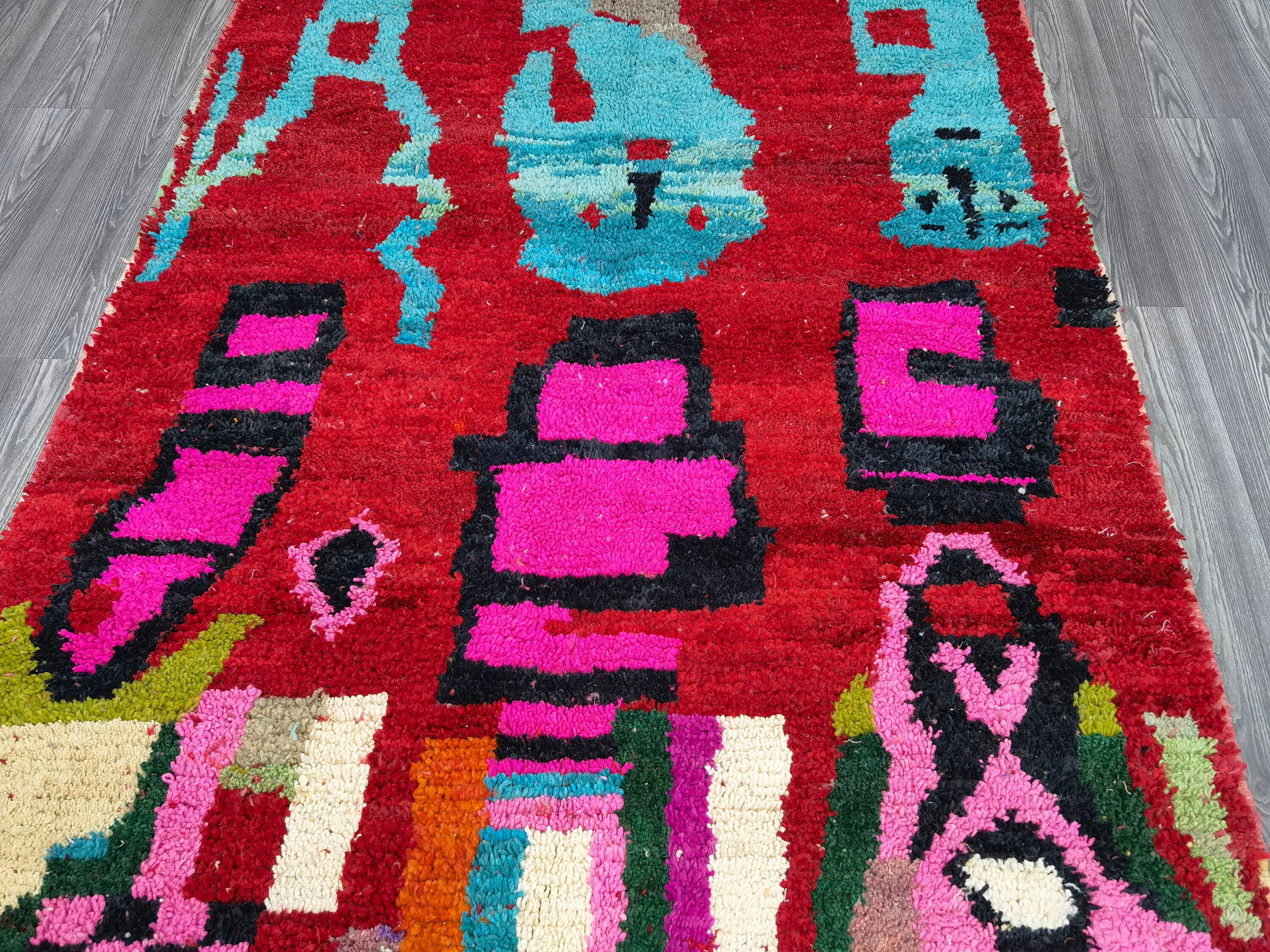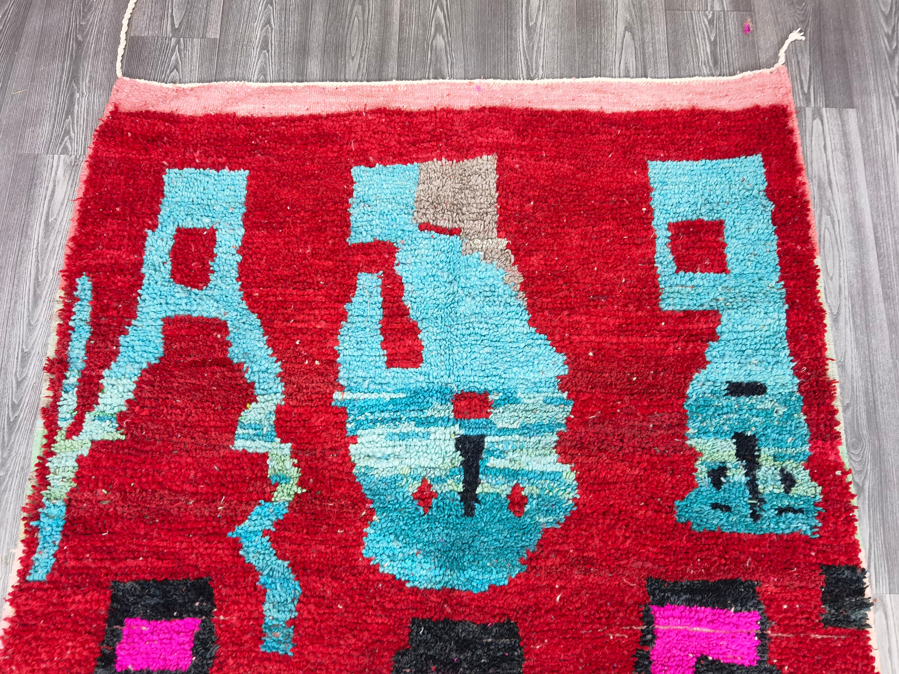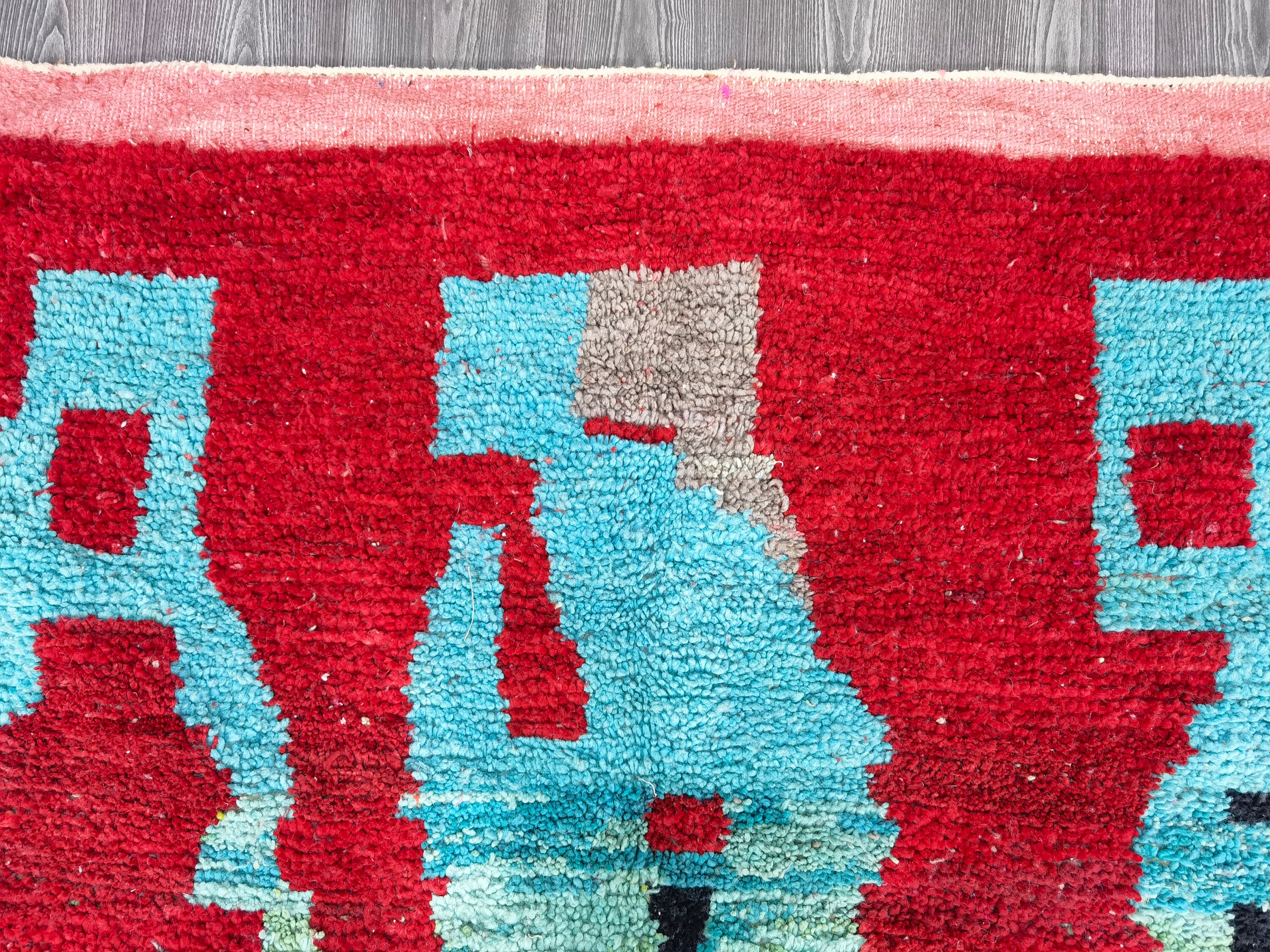 Custom Red Rug - Berber Sheep Wool Rug -Traditional Moroccan rug - Handmade Bohemian Tapestry - Nursery Gift Woven - Personalized Wool Rug