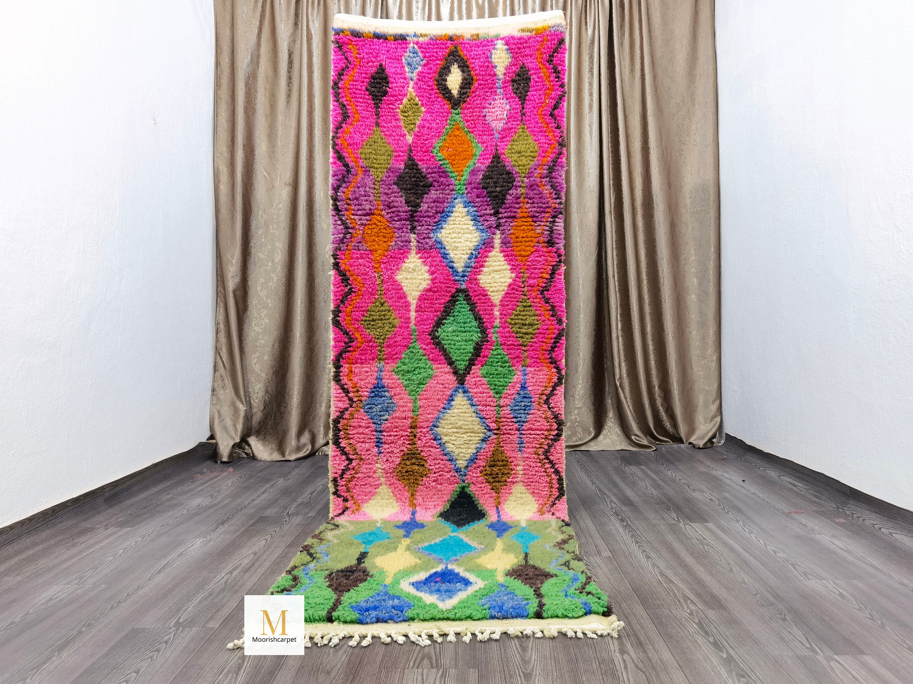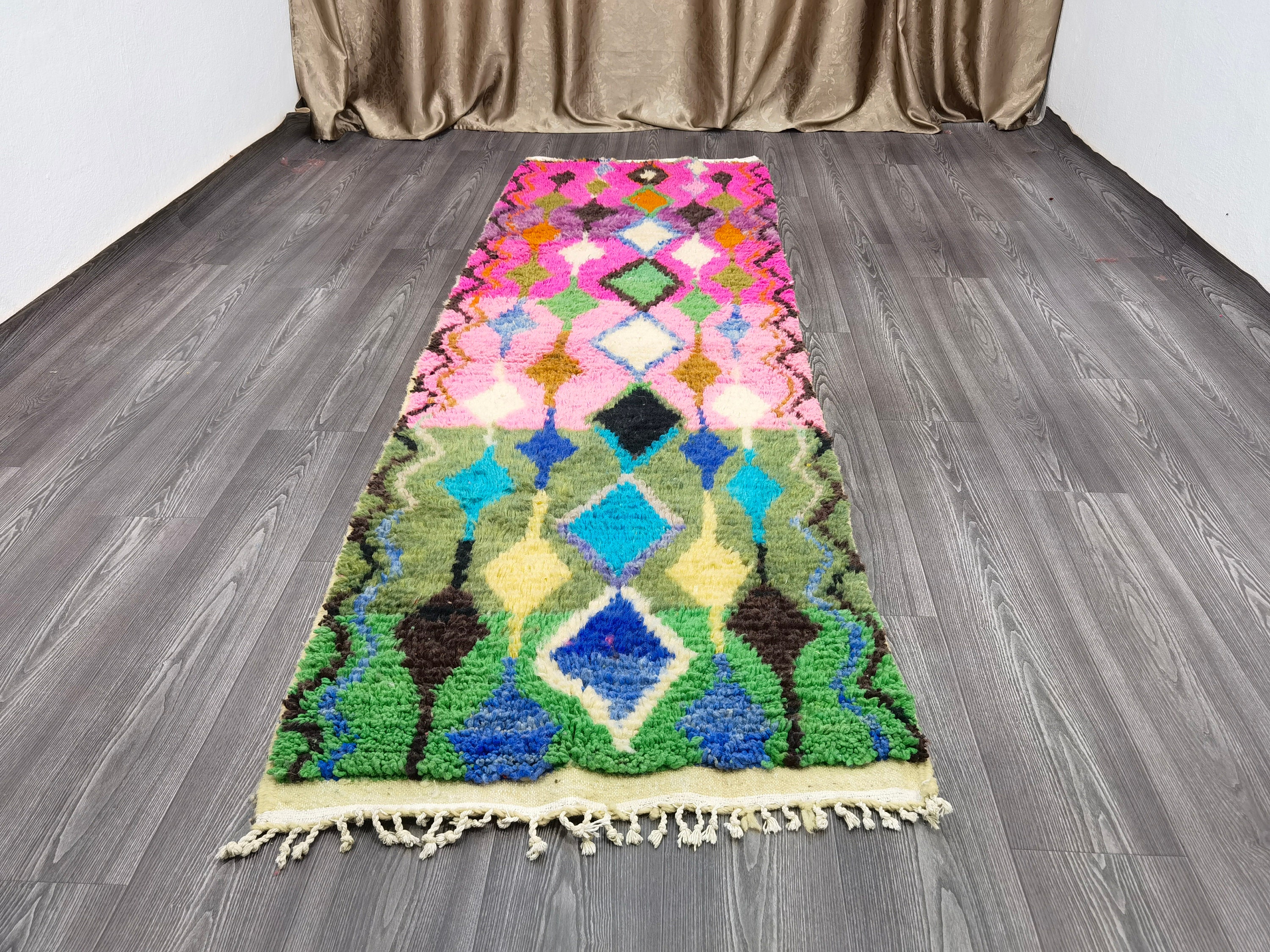 Colorful Rug Runner, Pink Runner Rug , green wool shaggy rug, berber green rug, Wool Nursery Rug, Shaggy Wool Rug, Custom Runner rug