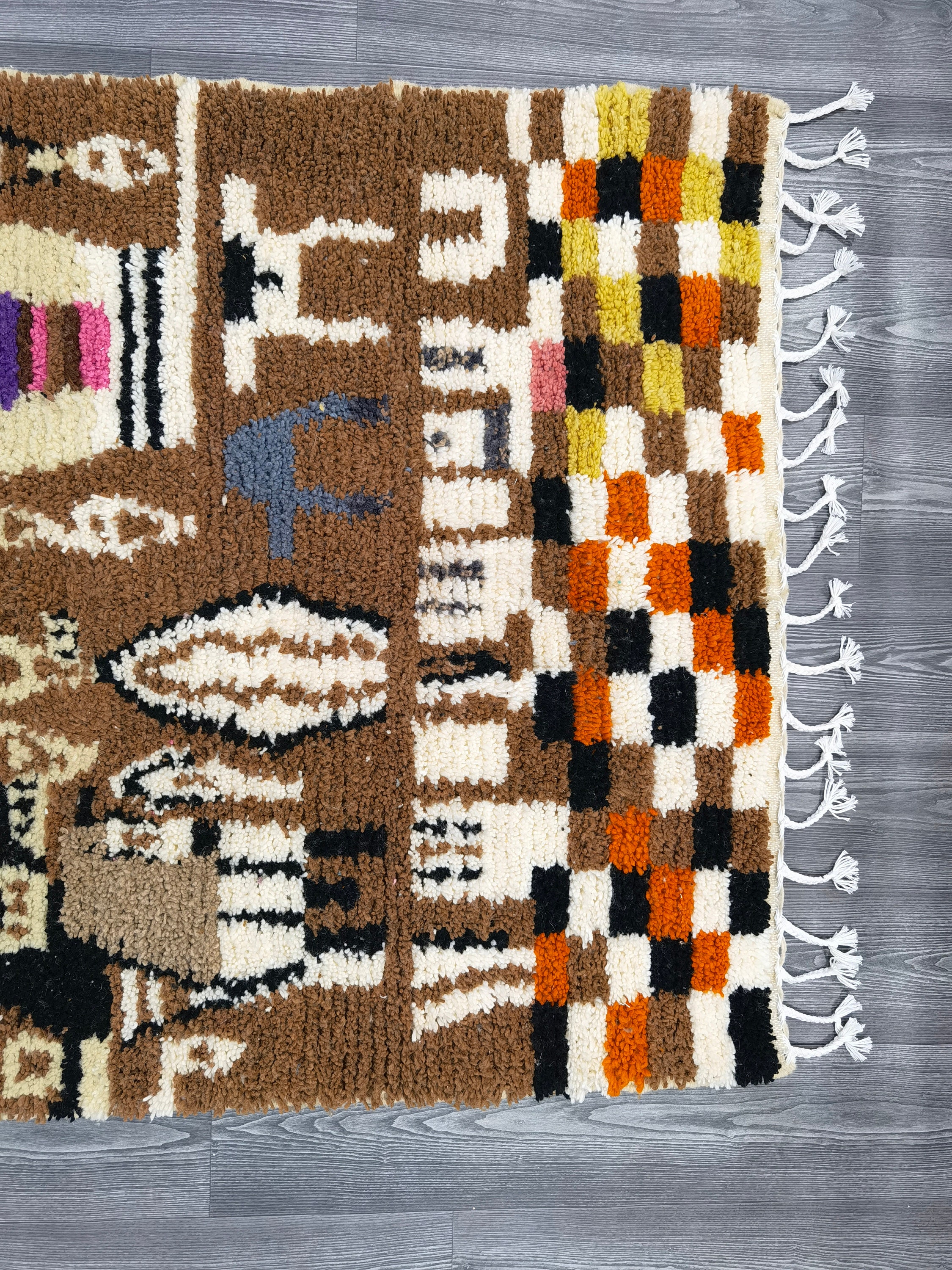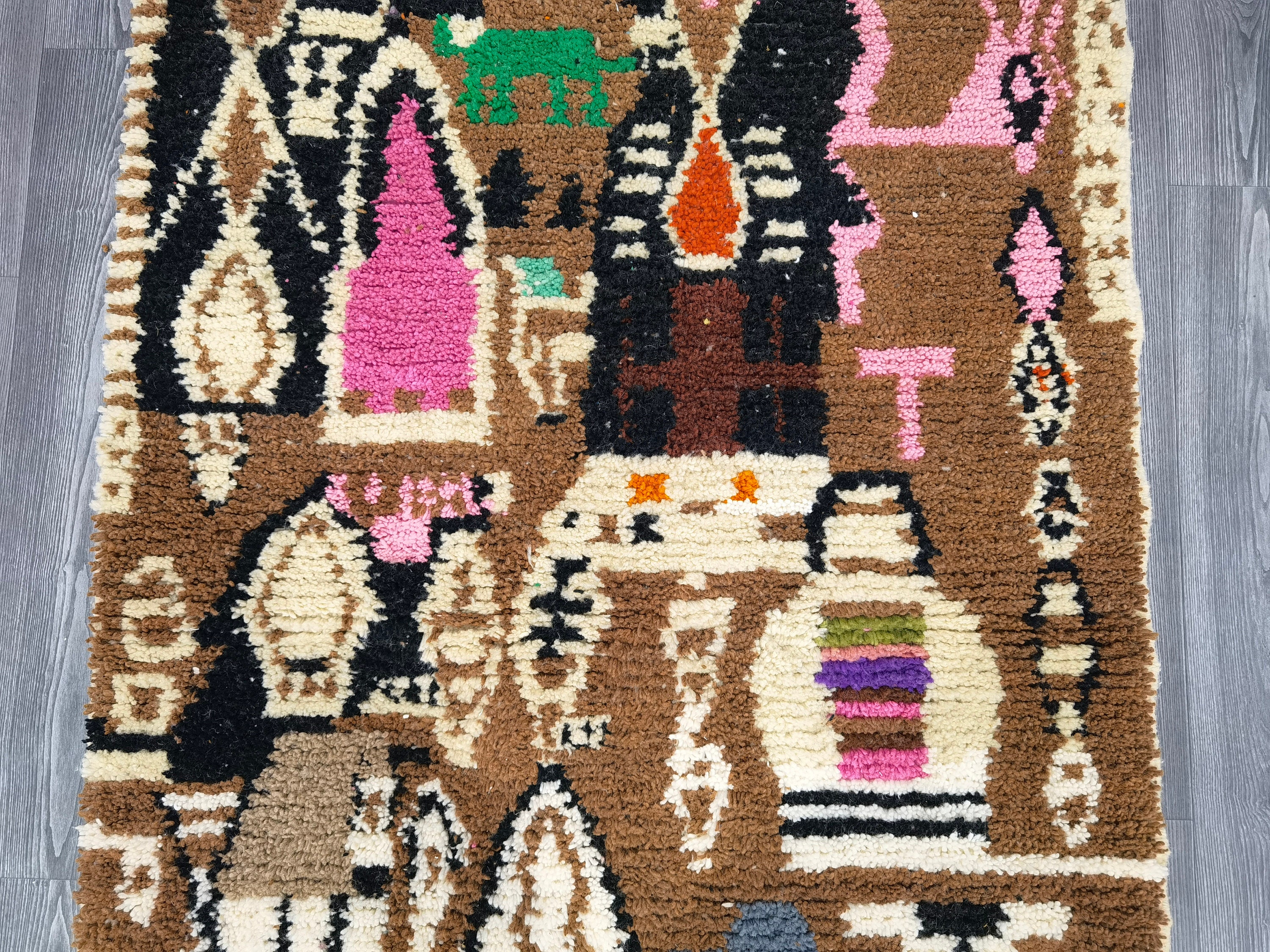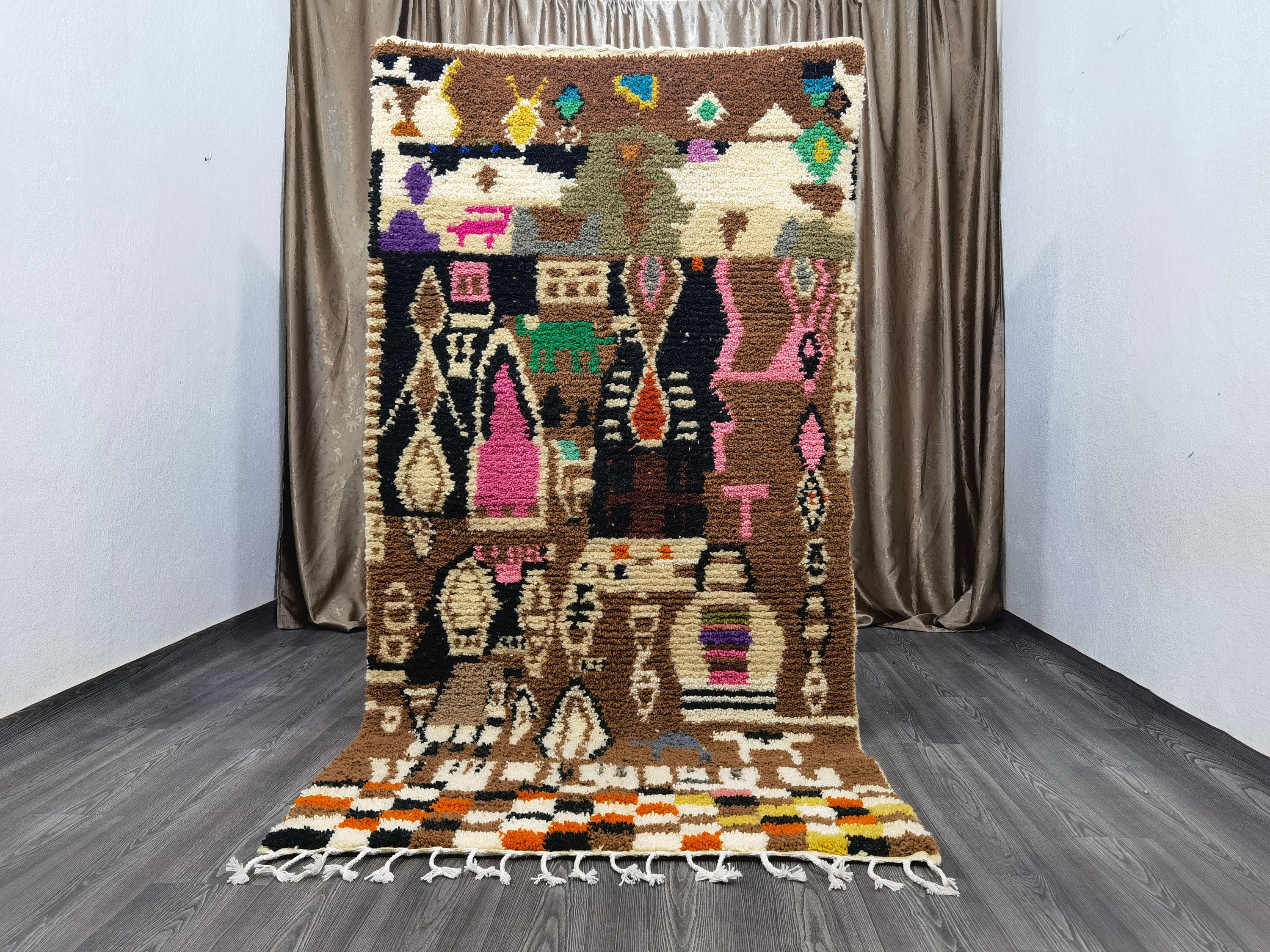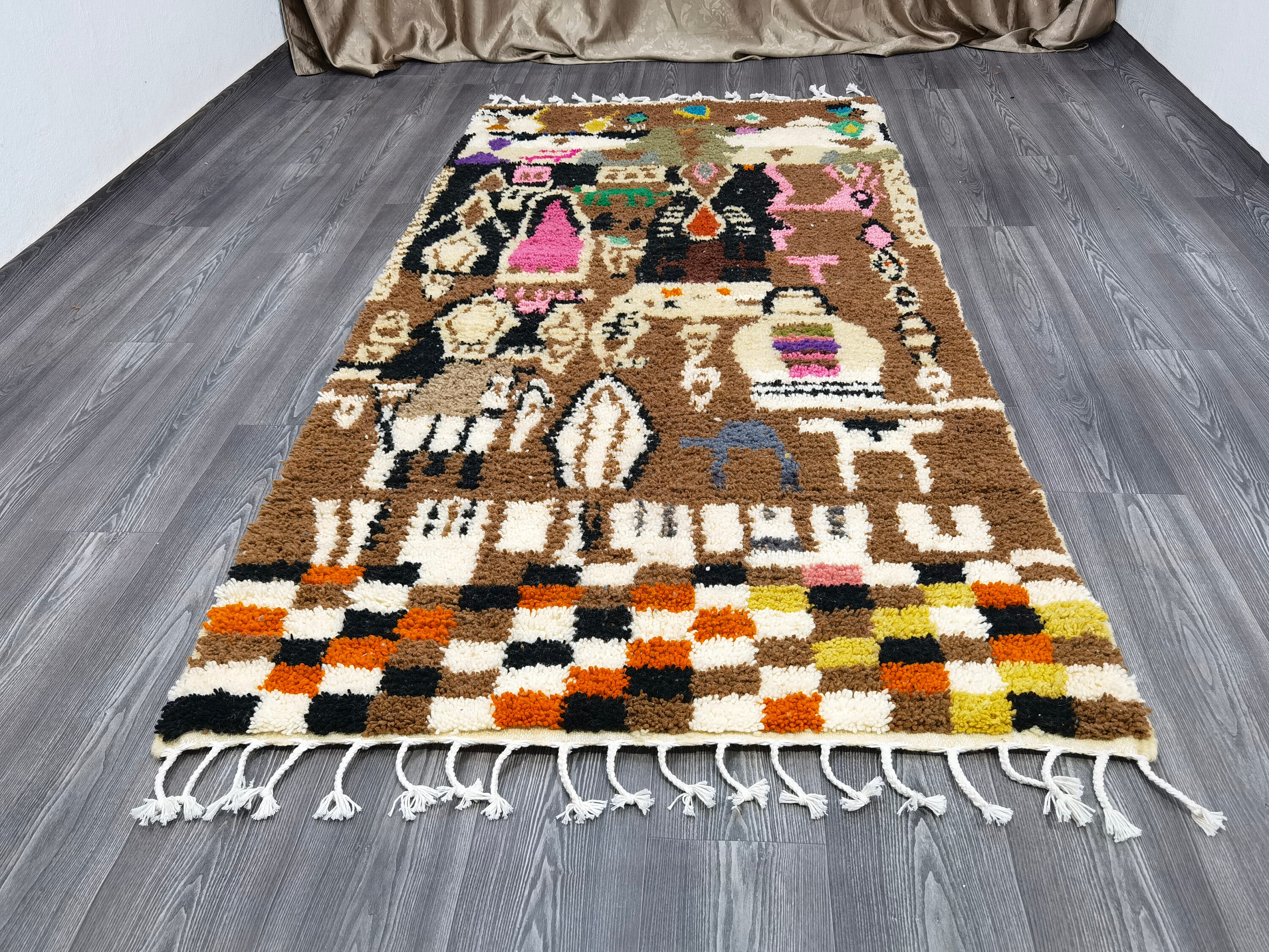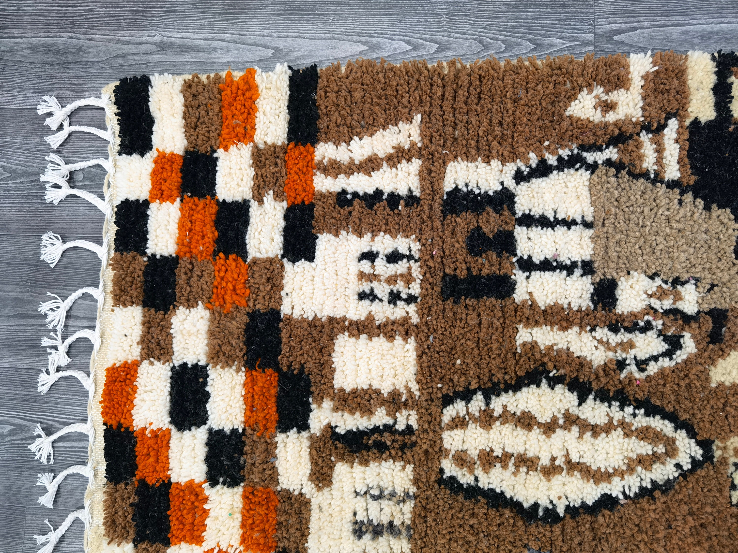 AMAZING Beni Ourain Rug - Brown And Pink Rug - Brown Rug - Living Room Rug - Azilal Berber Rug - Brown wool Beniourain Carpet - Pink Rug