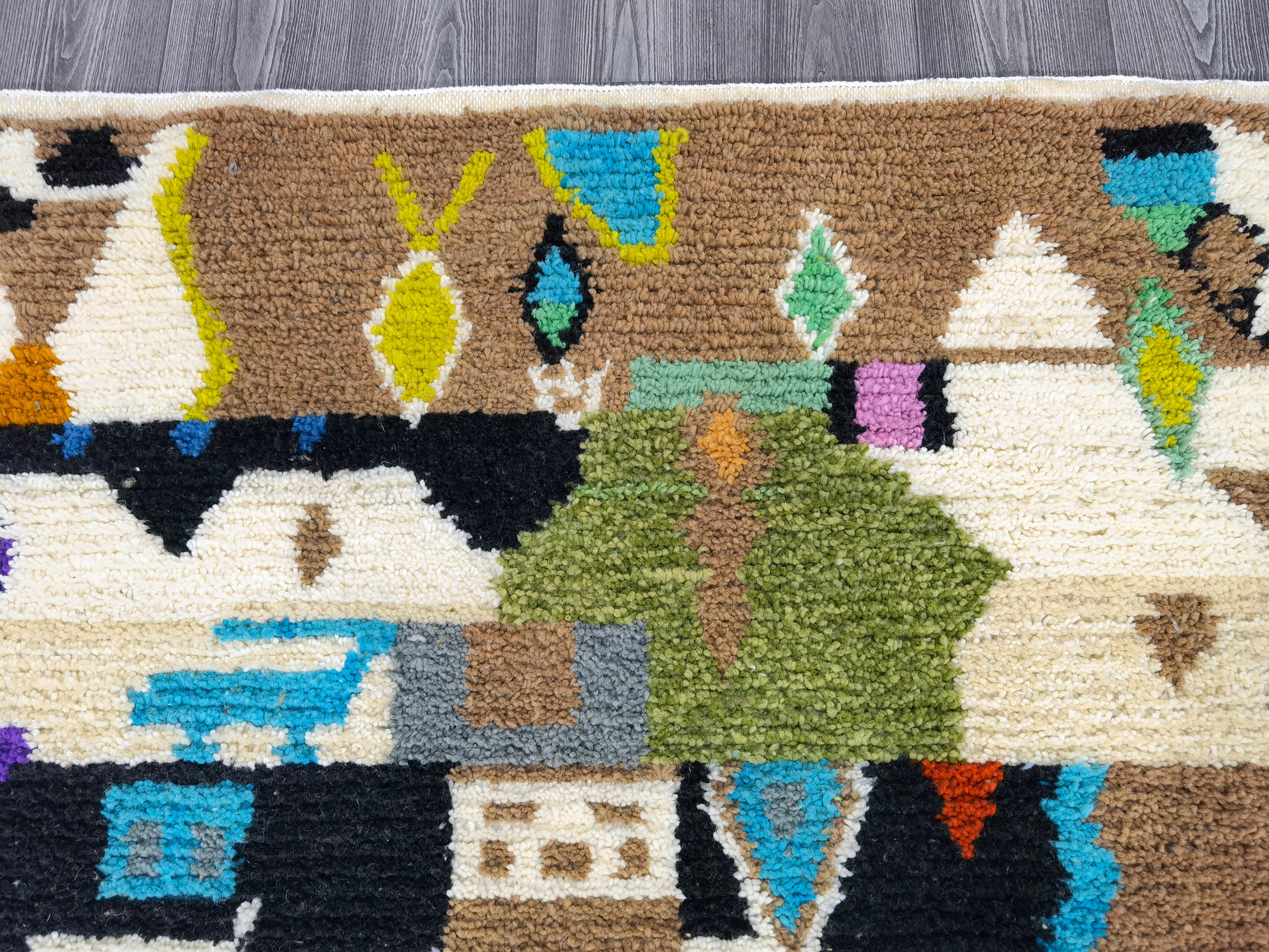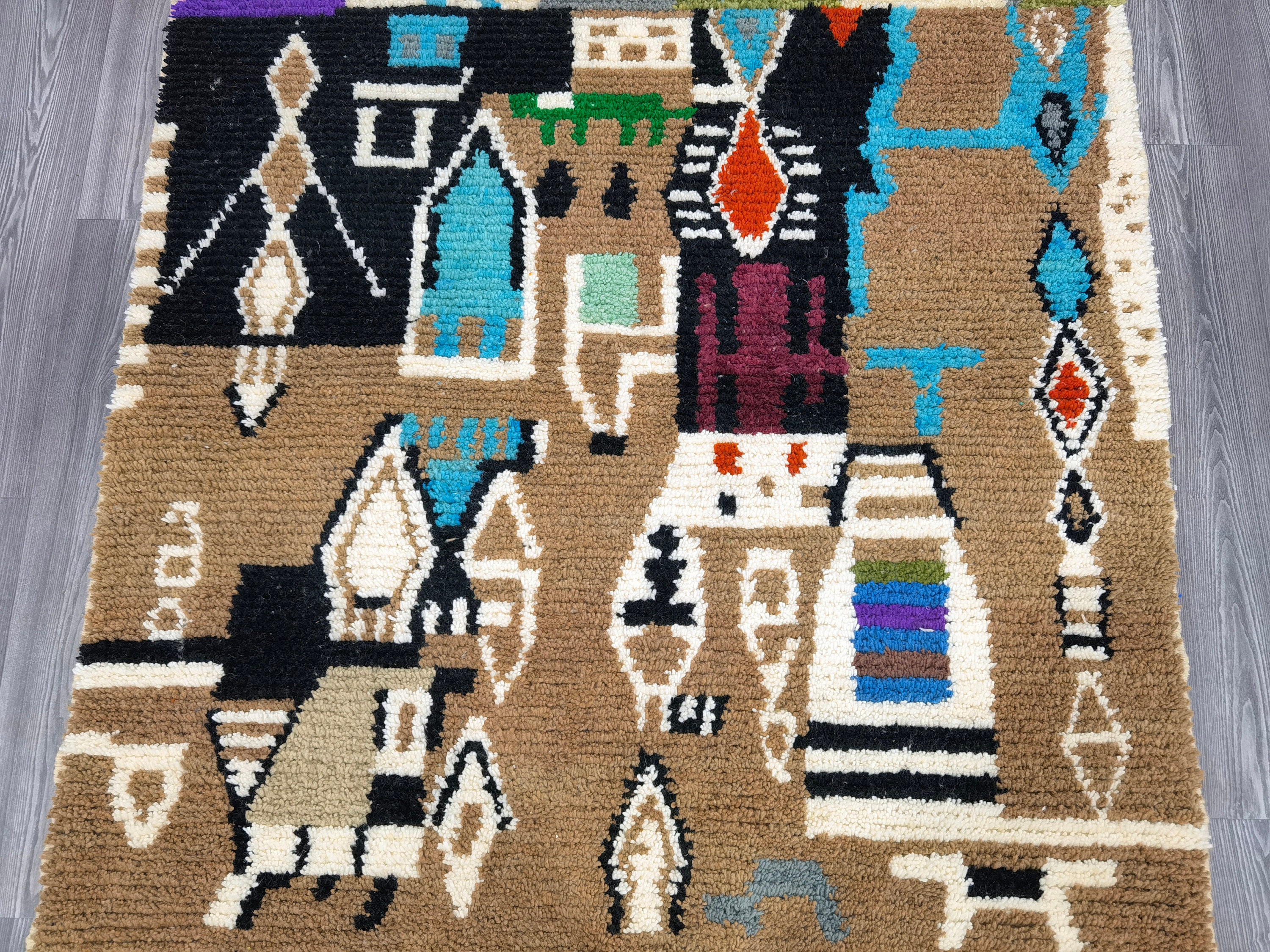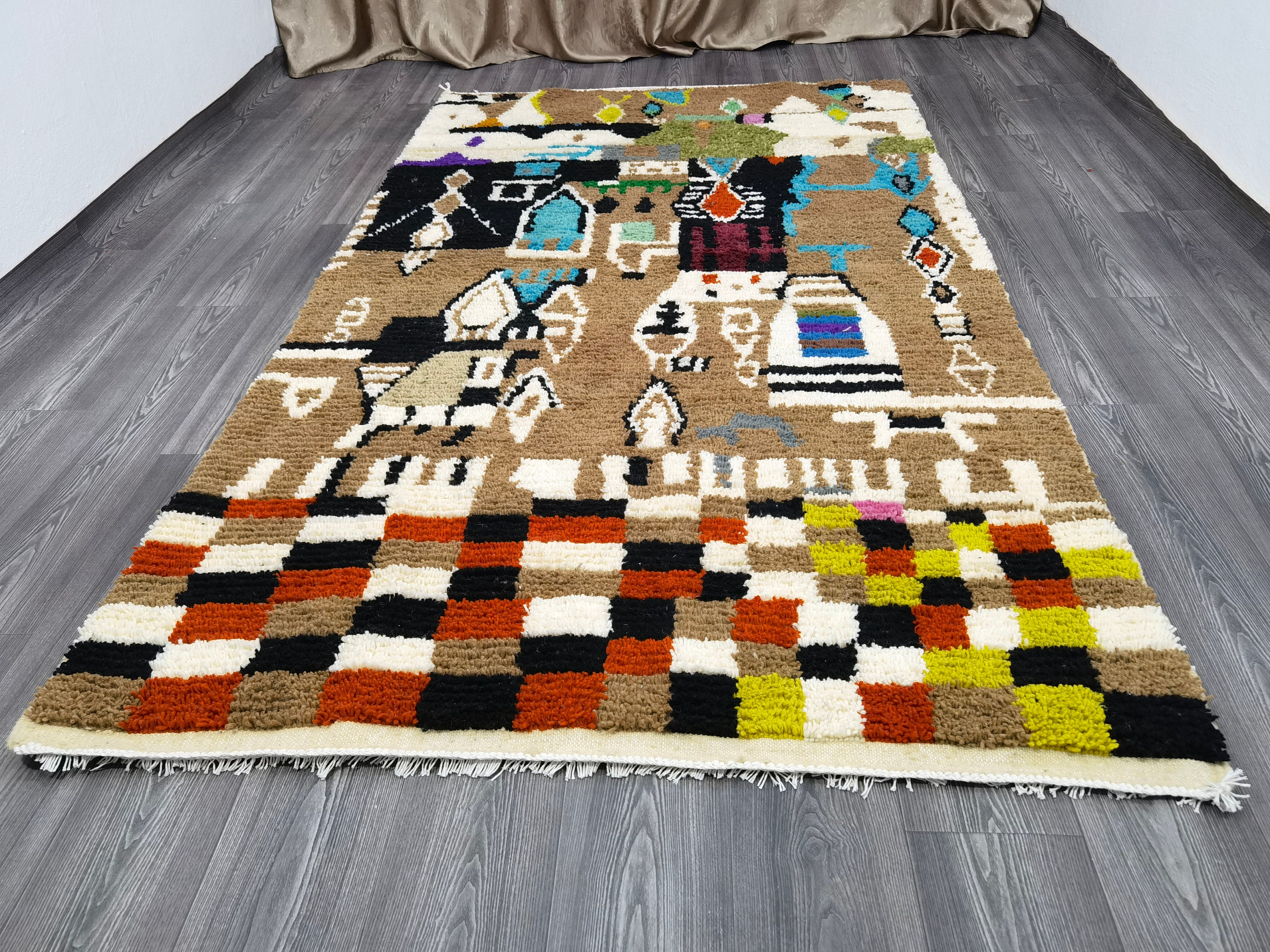 Boujaad Rugs For Living Room - Unique Aesthetic Rug -Authentic Berber Rug - Morrocan Rug Bohemian - Woven Rug - Brown Wool Beniourain Carpet