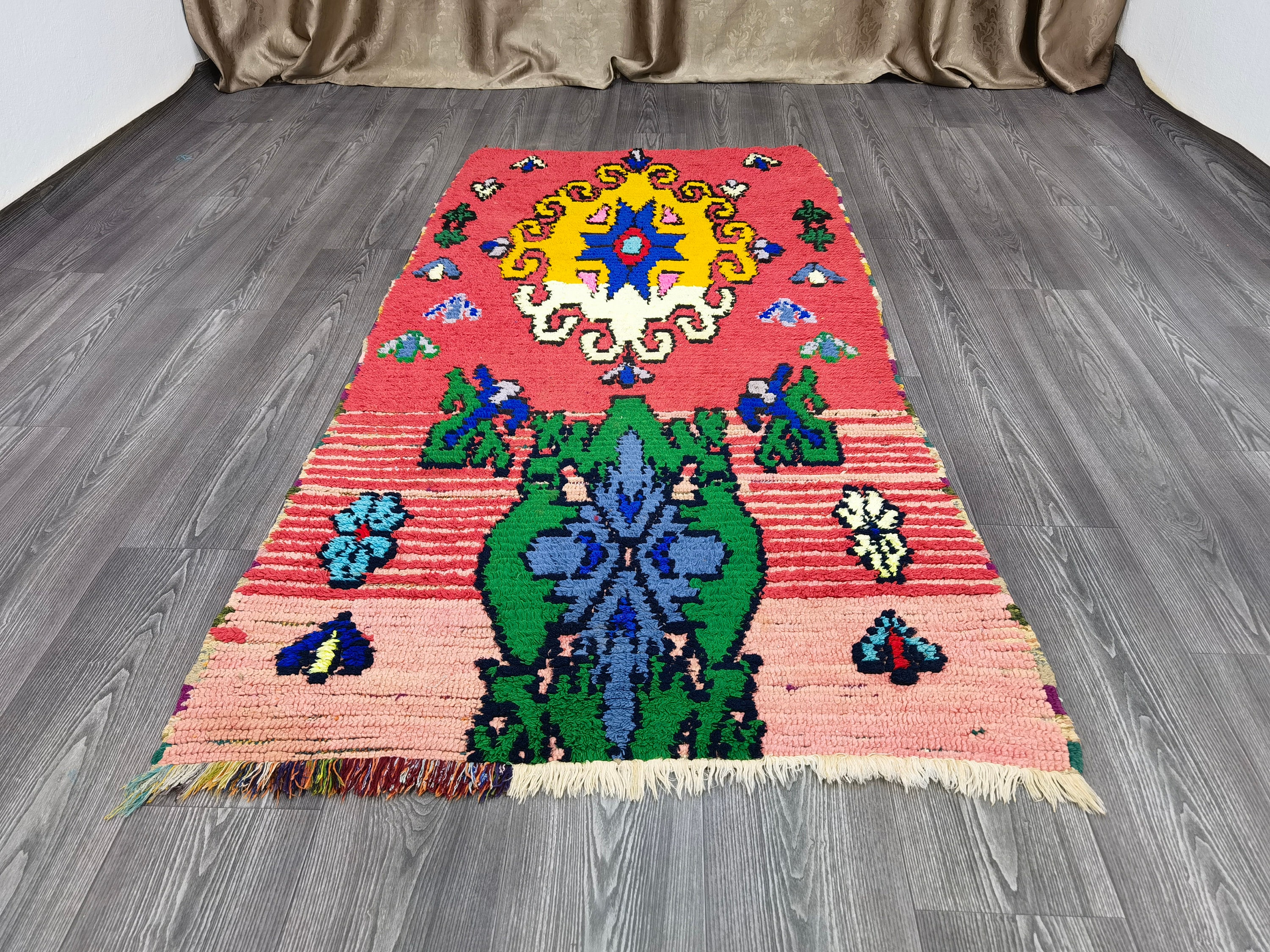 Boujaad is a vibrant and colorful wool runner that will add life to any room in your home. Made from 100% wool, this rug is perfect for use in the living room, bedroom, or anywhere you want to add some beautiful Moroccan flair. The soft and fluffy texture makes it comfortable to walk on, and the vivid colors will brighten up any space. Whether you're looking for a traditional shag rug or something a little more bohemian, Boujaad is sure to be a hit with your guests.