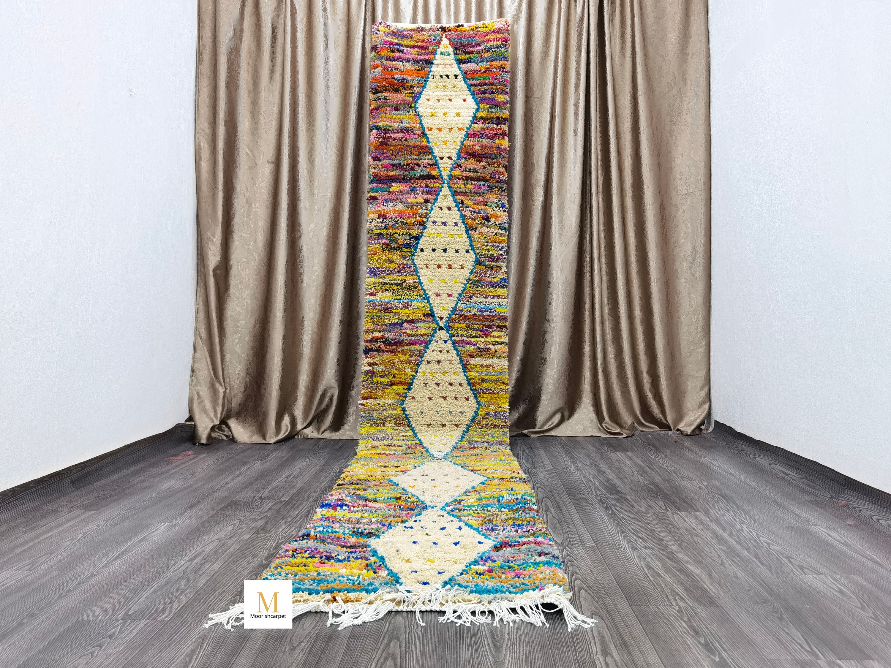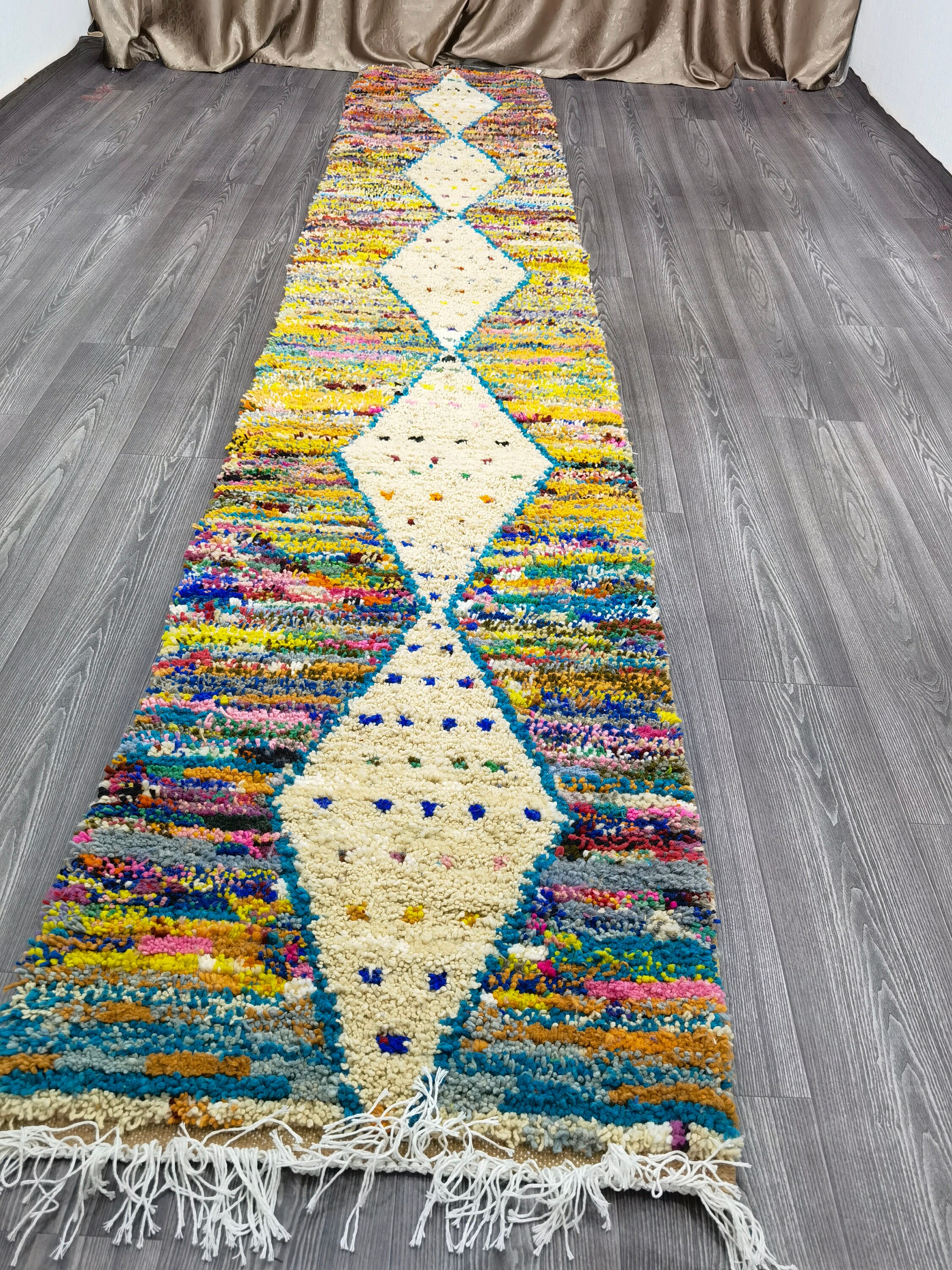 Morocco Bohemian Runner Rug, Custom Berber Carpet - Handmade Rug - Berber Colorful Runner Rug - Azilal berber wool rug - Boujaad runner rug