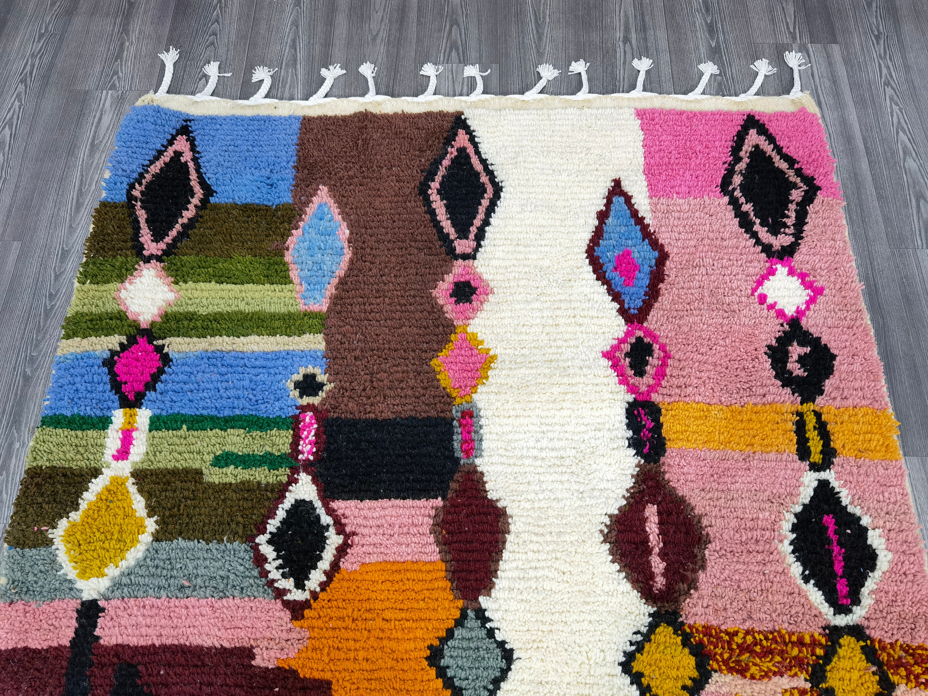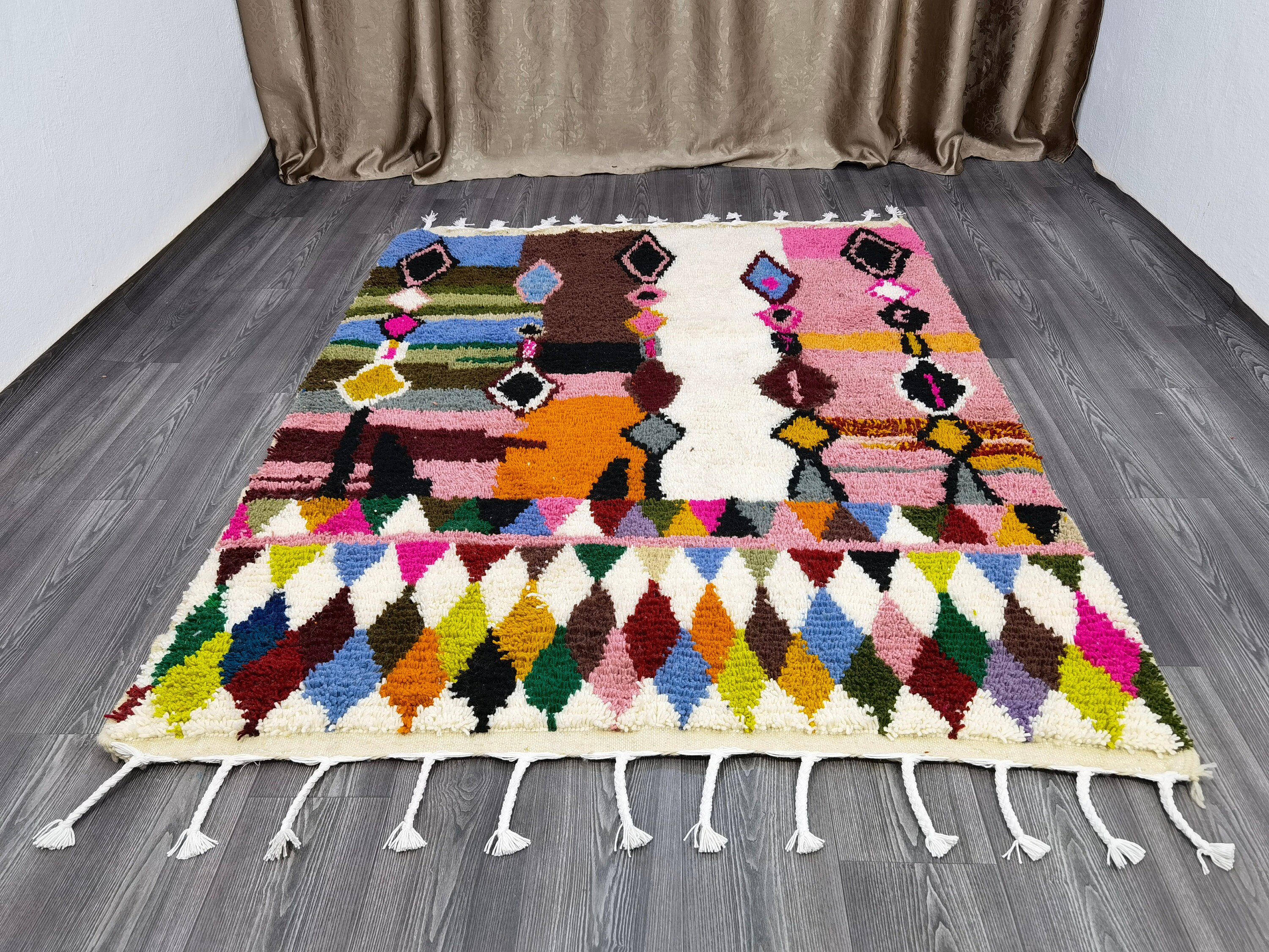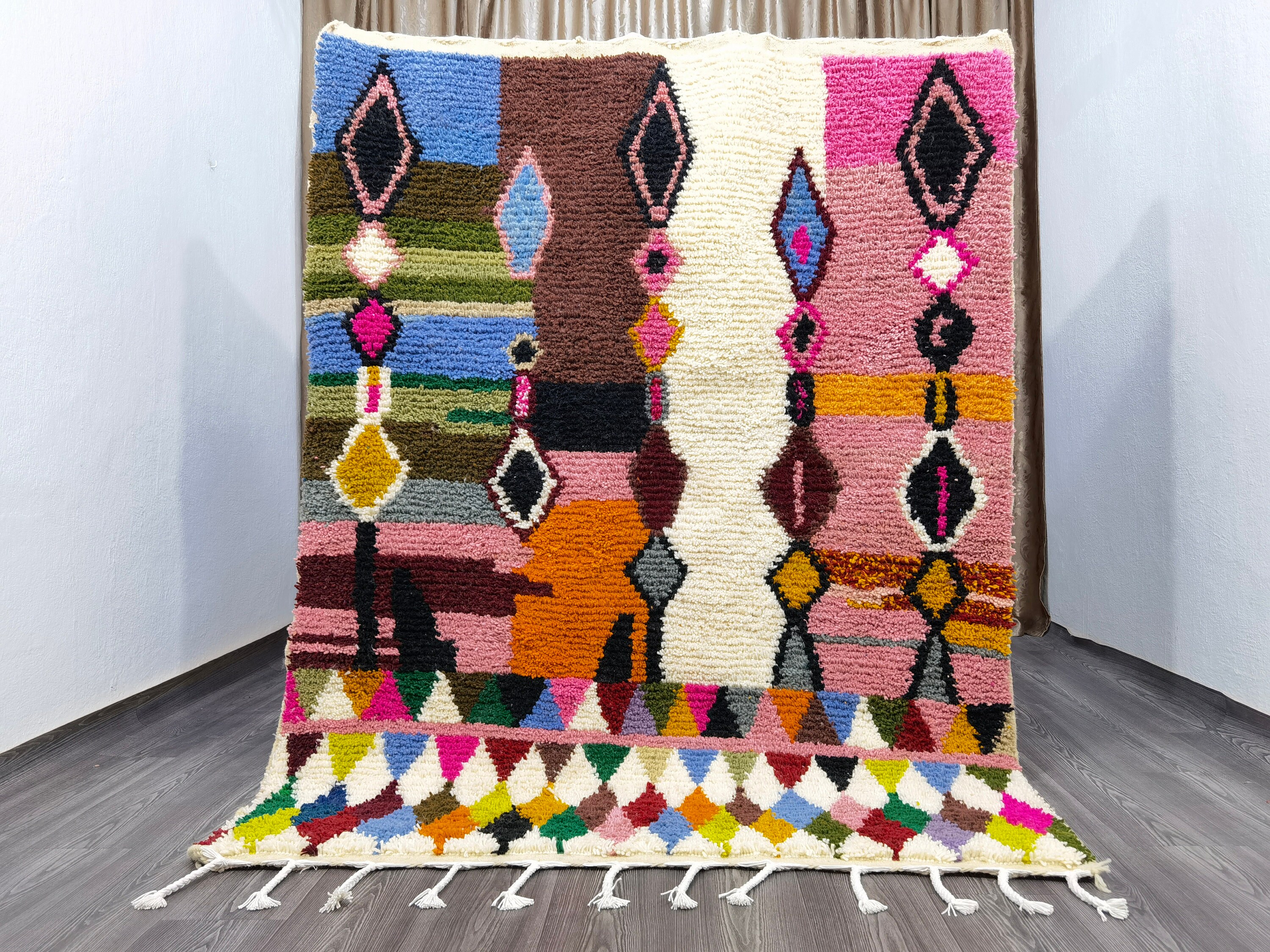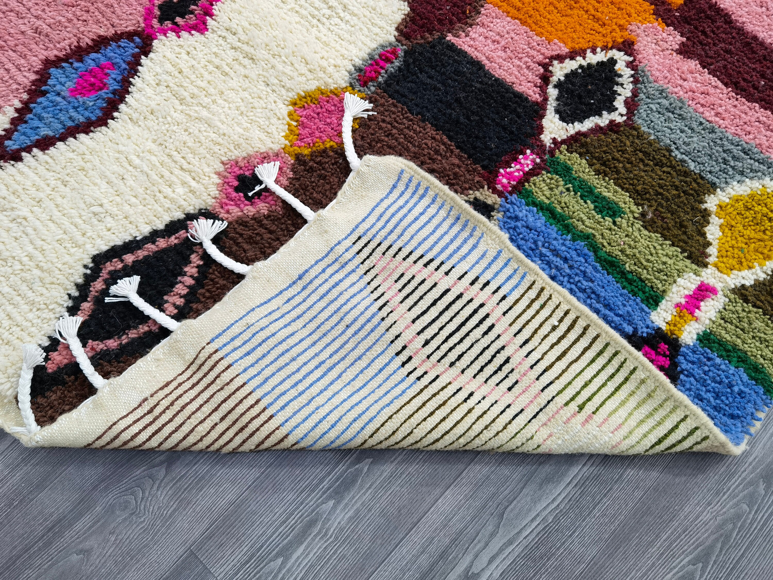 Beni Ourain rugs are perfect for adding a touch of luxury and style to any room in your home. Whether you're looking for an abstract multicolored carpet to spruce up a living room or a Moroccan rug to add some exotic flair to a bedroom, our custom Beni Ourain rugs are sure to please. Plus, with our easy-to-use customization options, you can create a rug that perfectly matches your personal style.