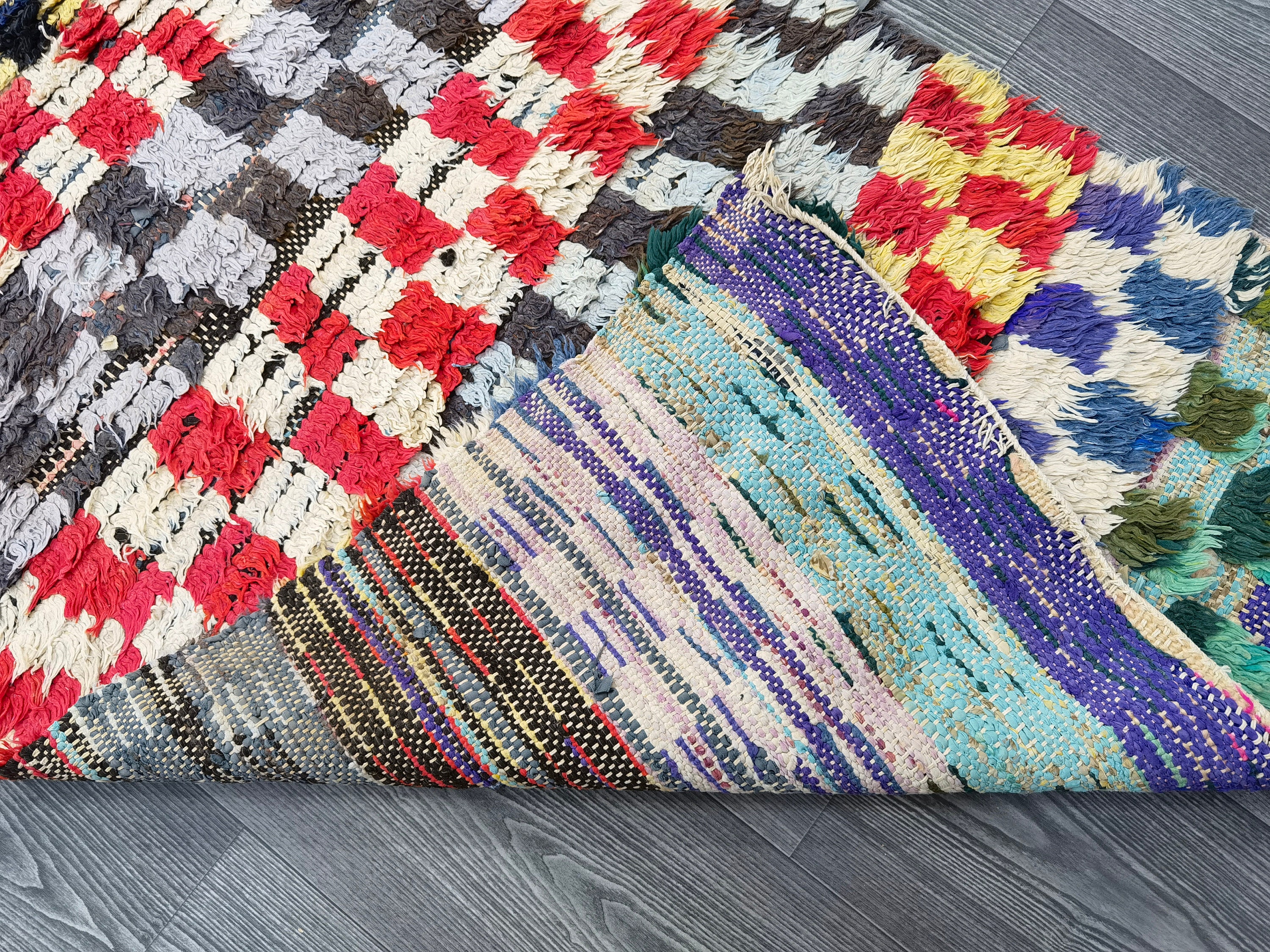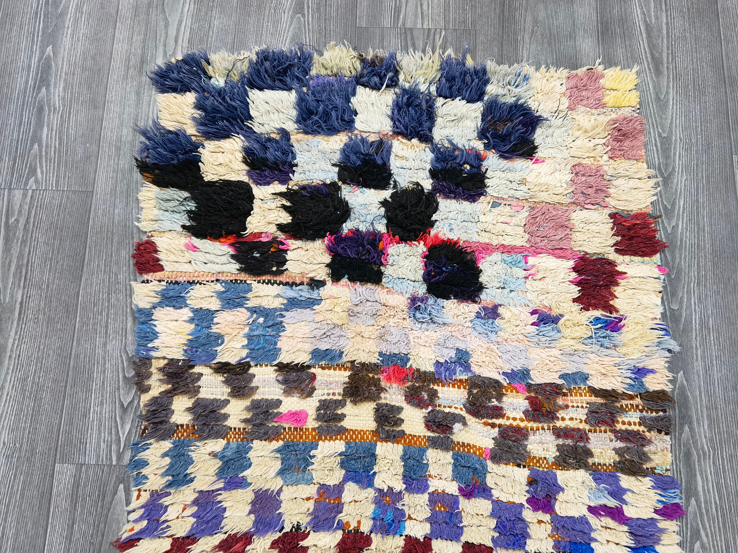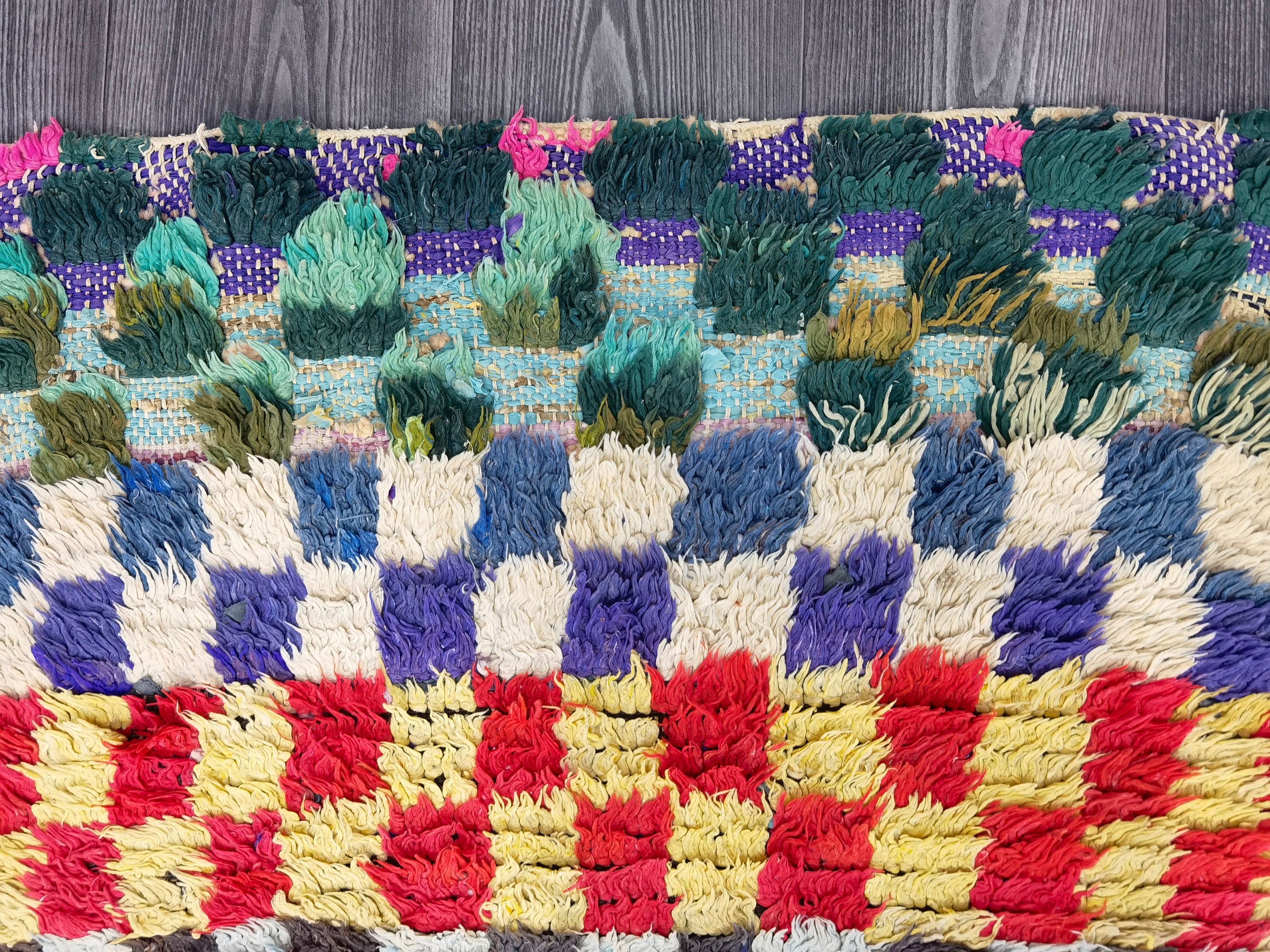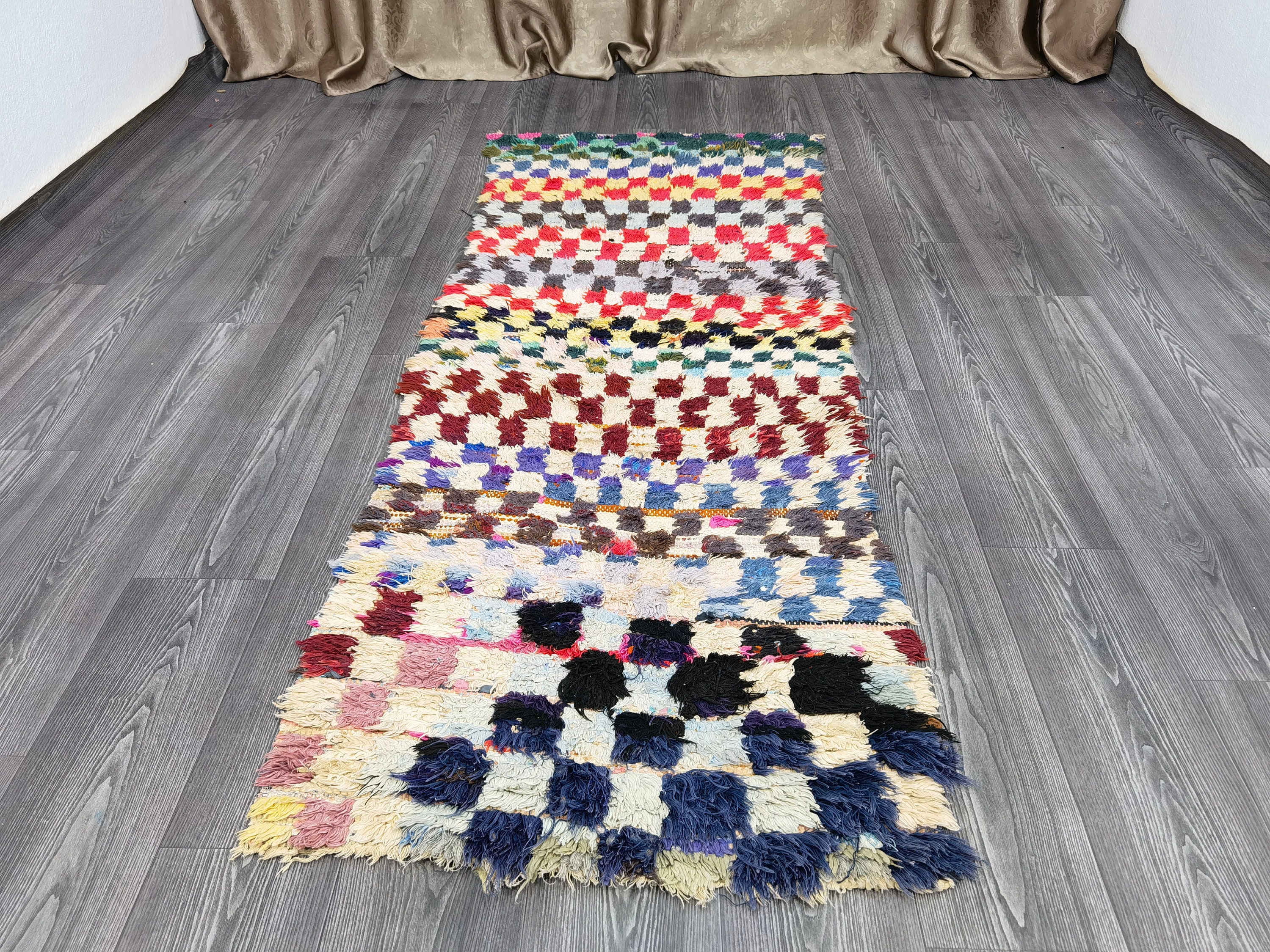 Vintage Moroccan Runner Rug 2.5x7 Ft - Berber Moroccan Colorful 2.5x7 Runner Rug.