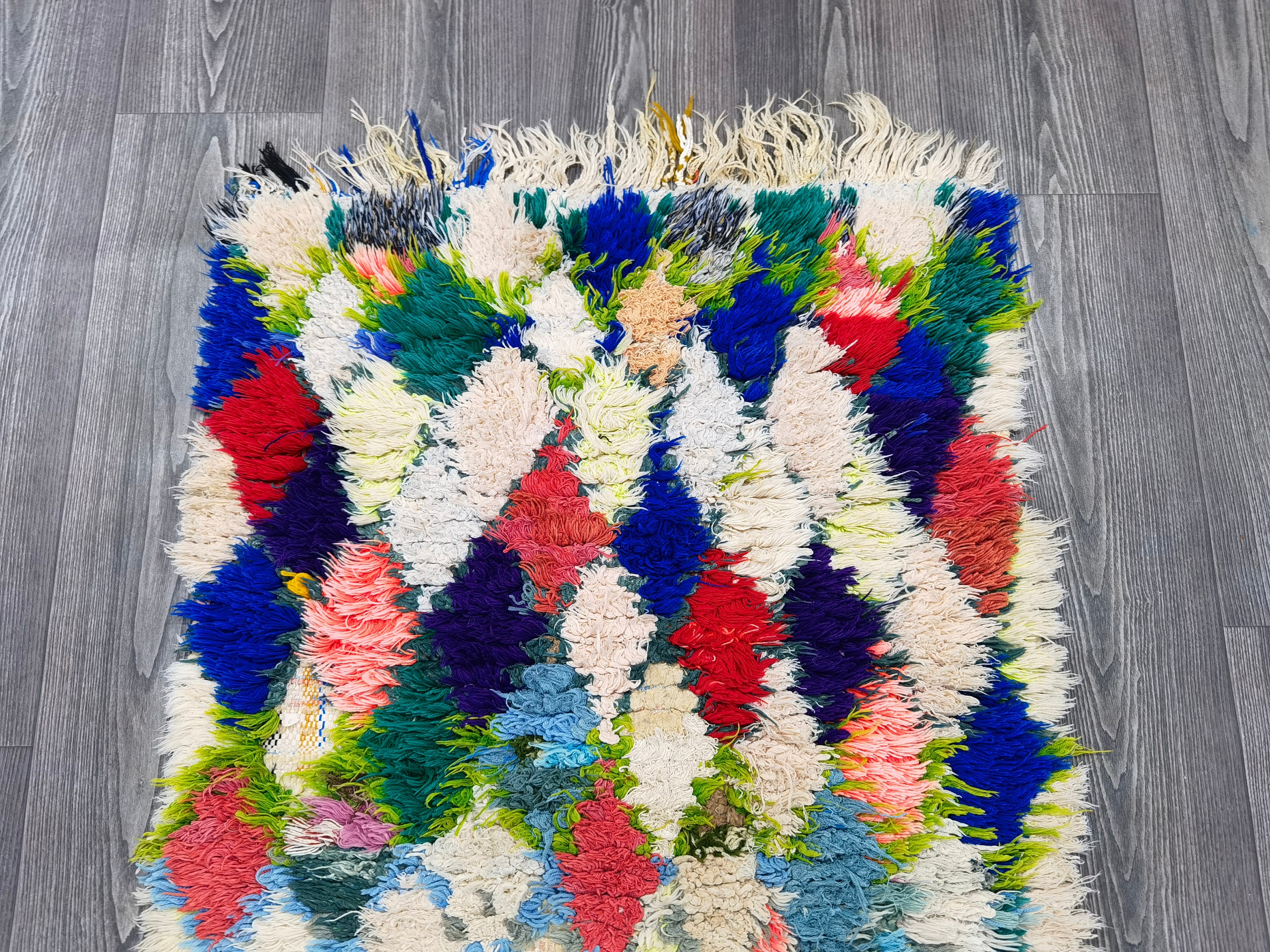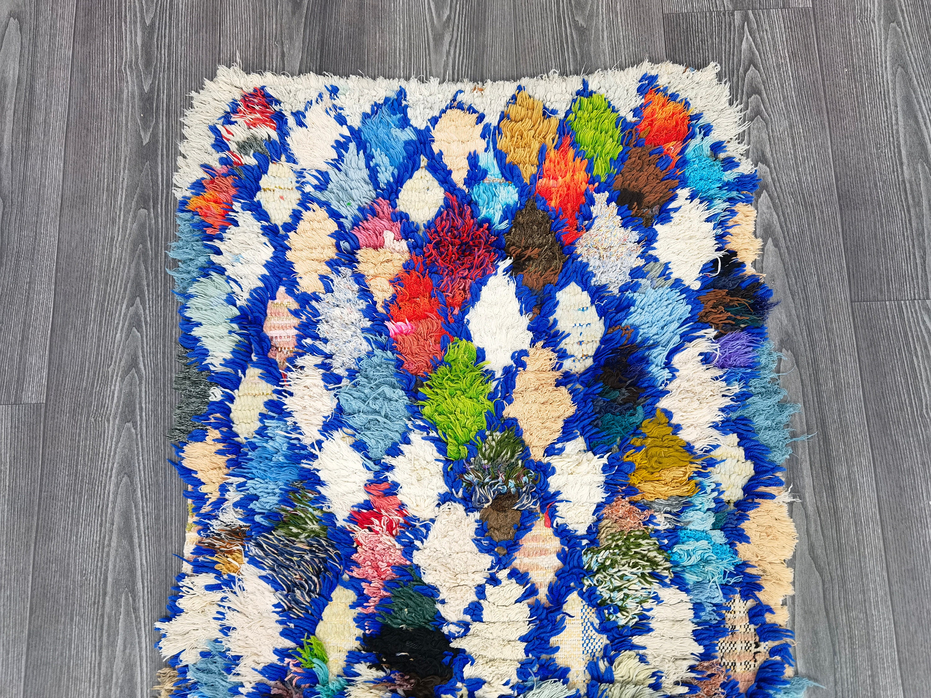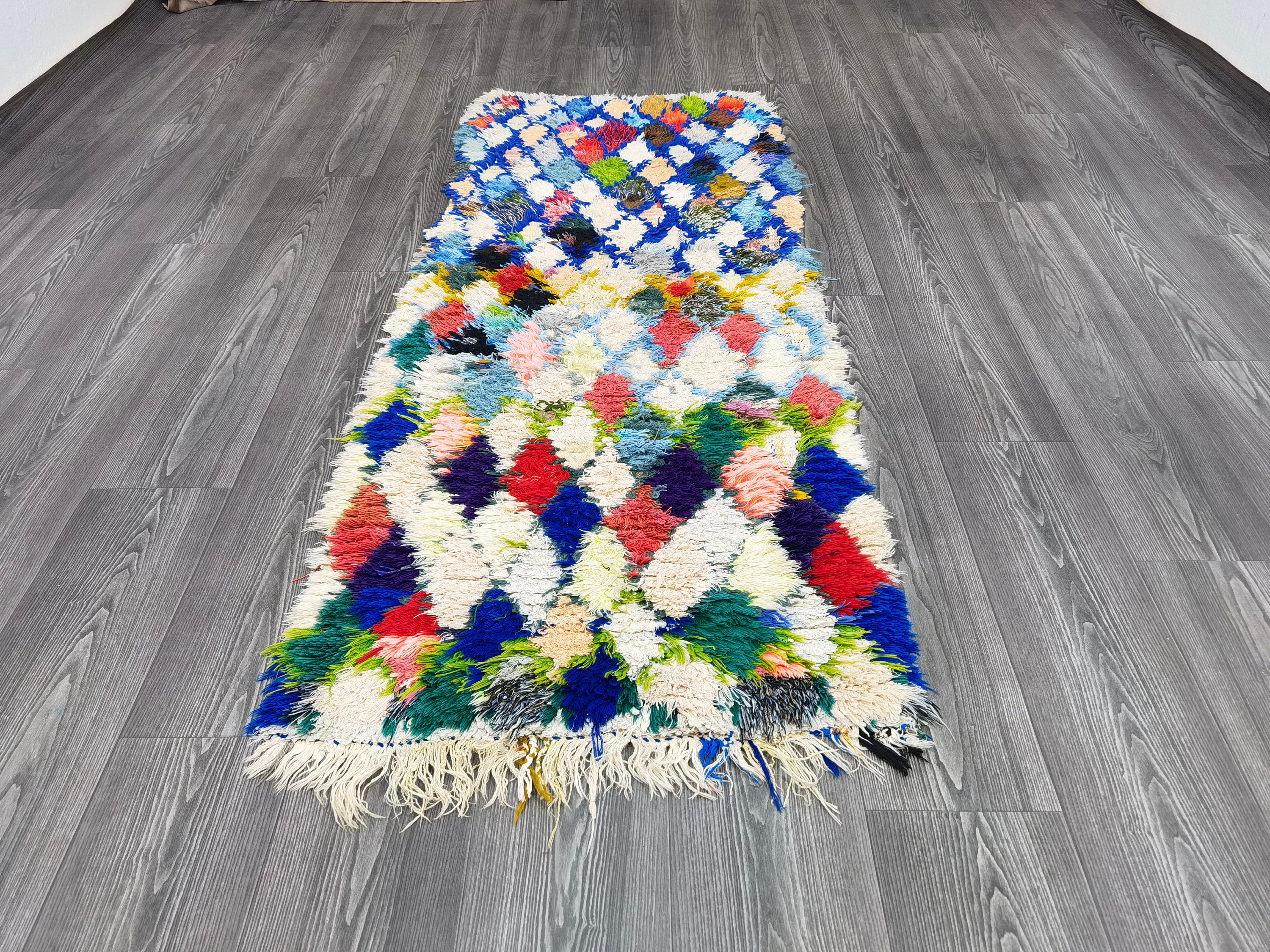 2.3x5.9 Ft , Colorful Boujaad Rug Runner, Unique Rug Runner, Colorful Checkered rug, small entryway runner rug, Moroccan Berber Runner Rug .