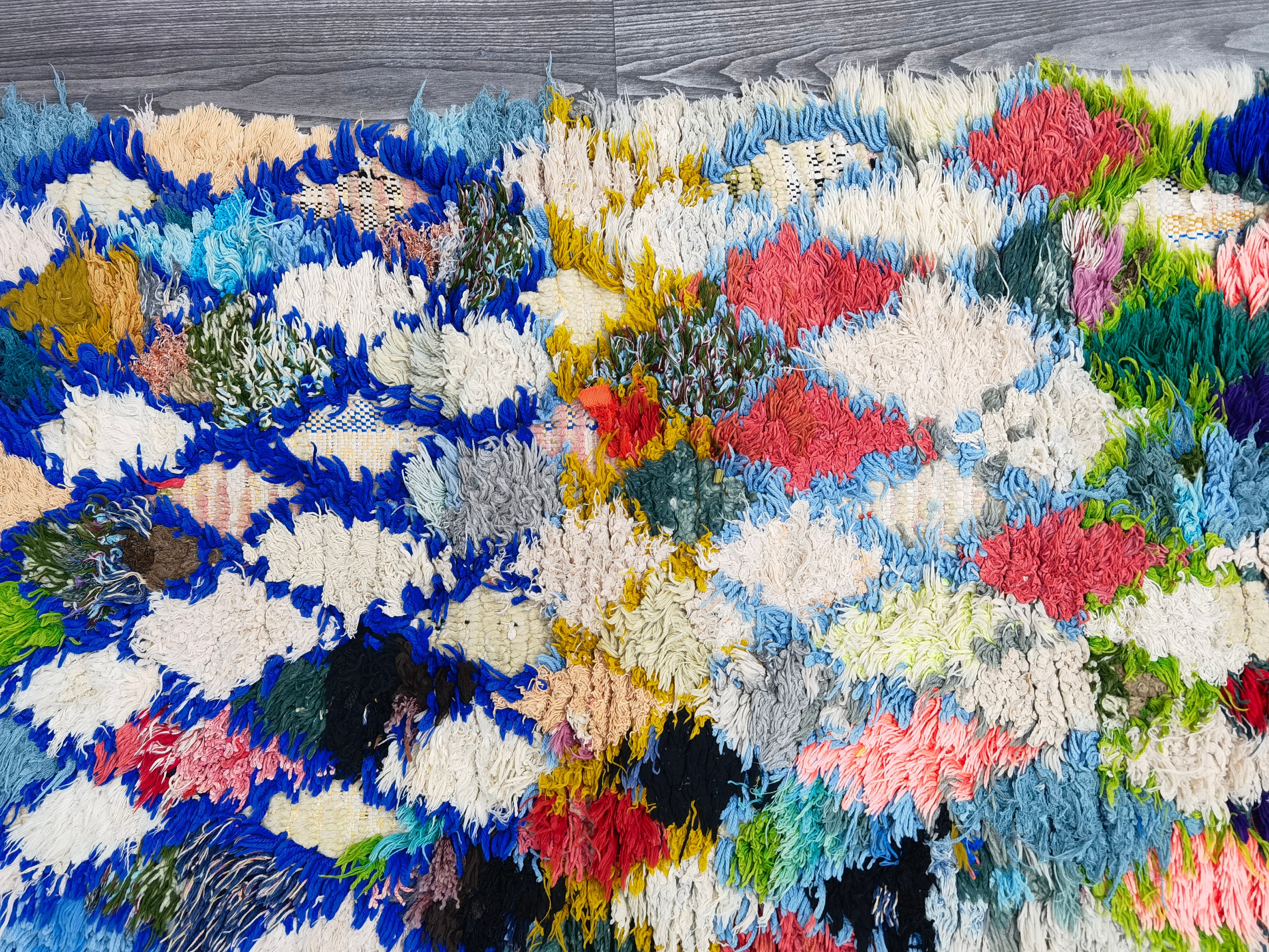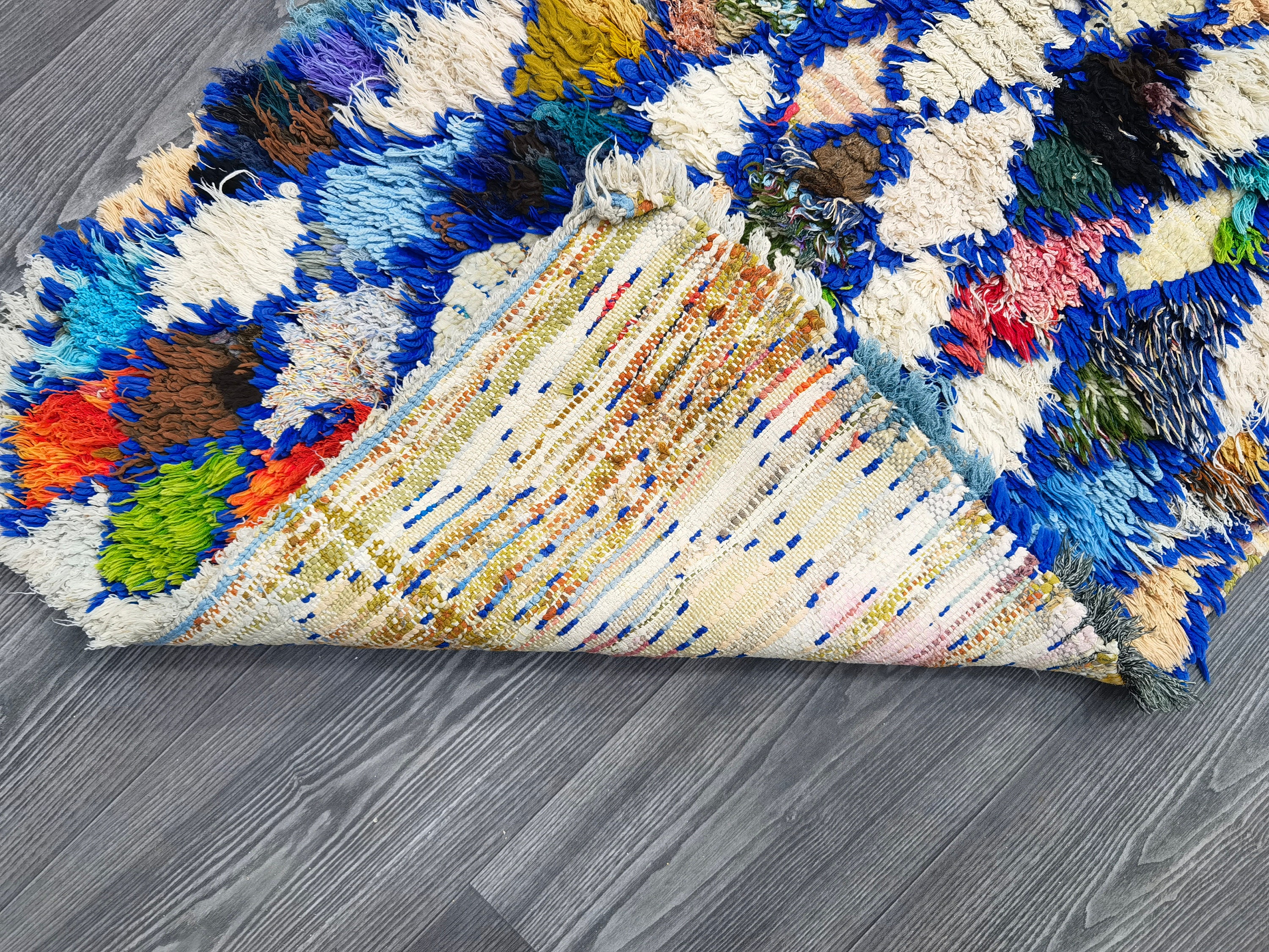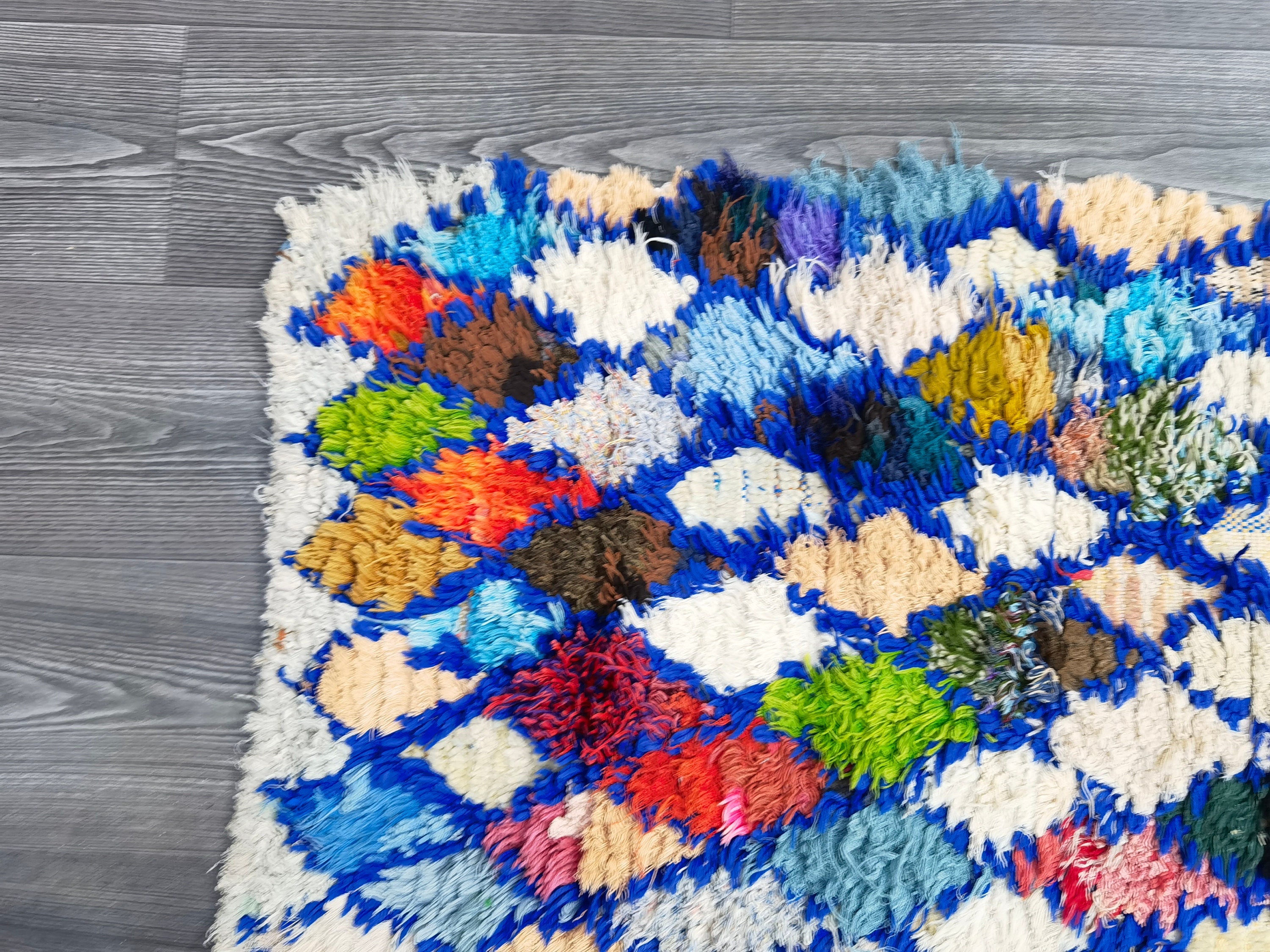 2.3x5.9 Ft , Colorful Boujaad Rug Runner, Unique Rug Runner, Colorful Checkered rug, small entryway runner rug, Moroccan Berber Runner Rug .