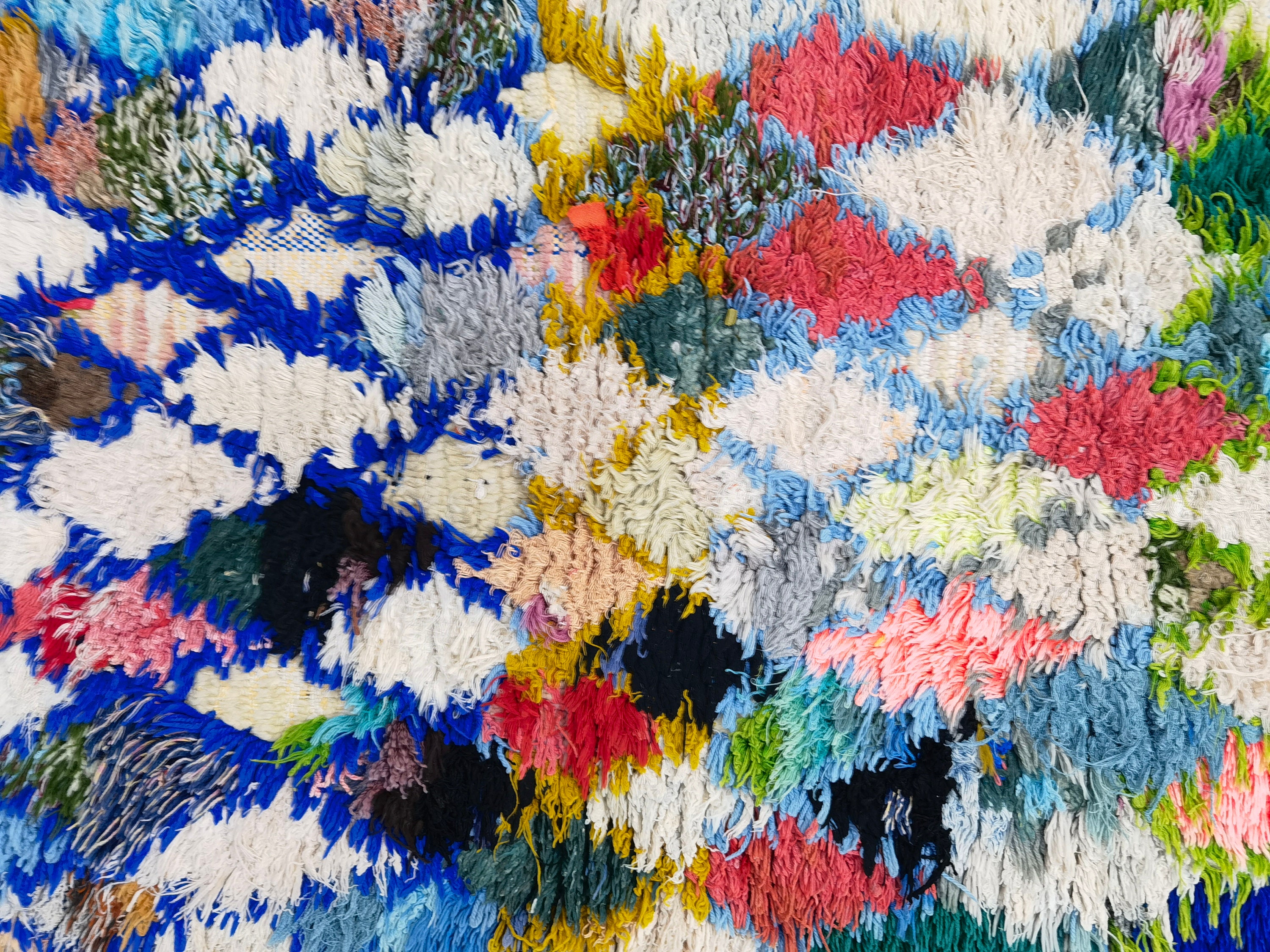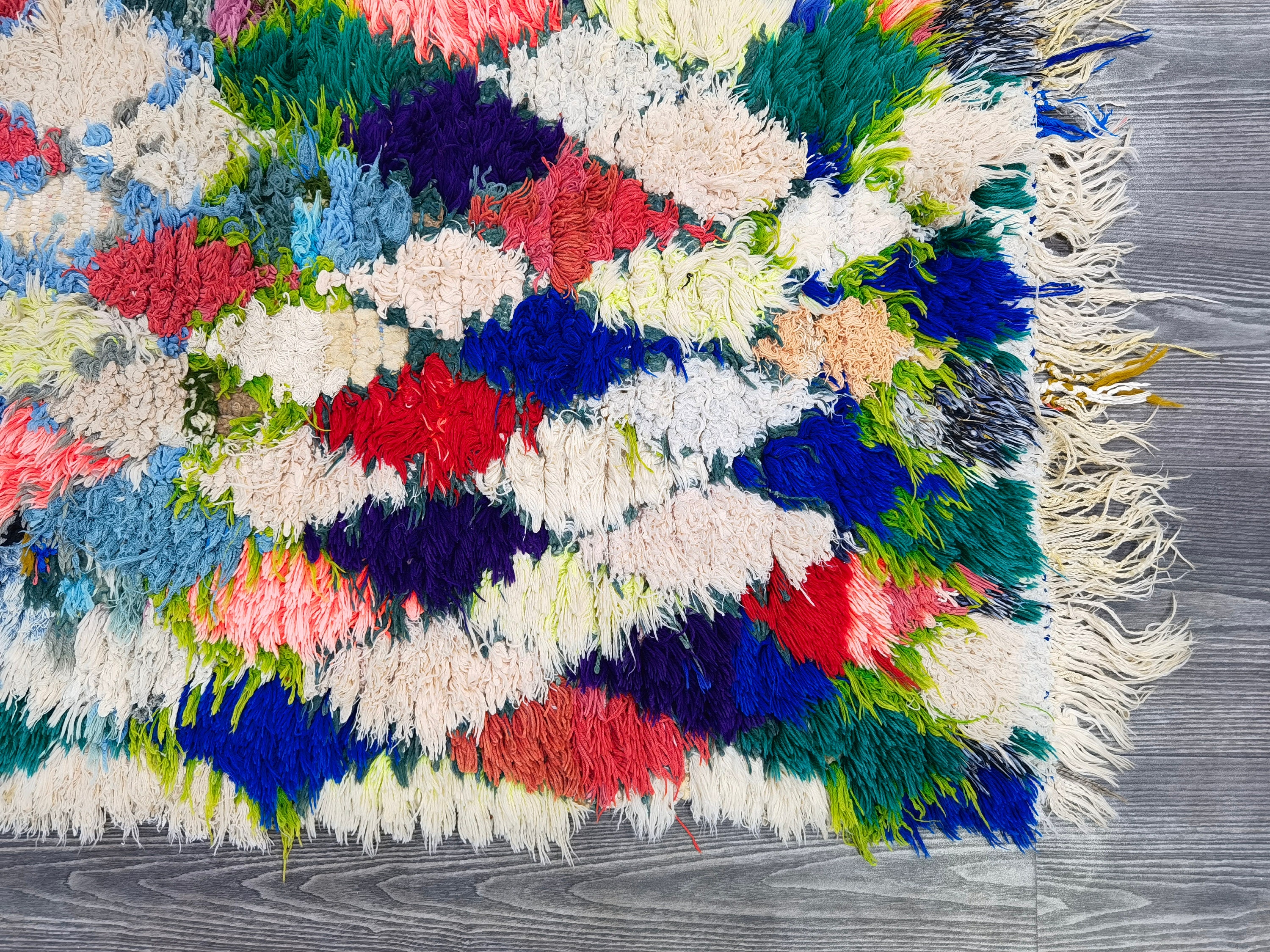 Boujaad is a vibrant and colorful wool rug that will add life to any room in your home. Made from 100% wool, this rug is perfect for use in the living room, bedroom, or anywhere you want to add some beautiful Moroccan flair. The soft and fluffy texture makes it comfortable to walk on, and the vivid colors will brighten up any space. Whether you're looking for a traditional shag rug or something a little more bohemian, Boujaad is sure to be a hit with your guests.