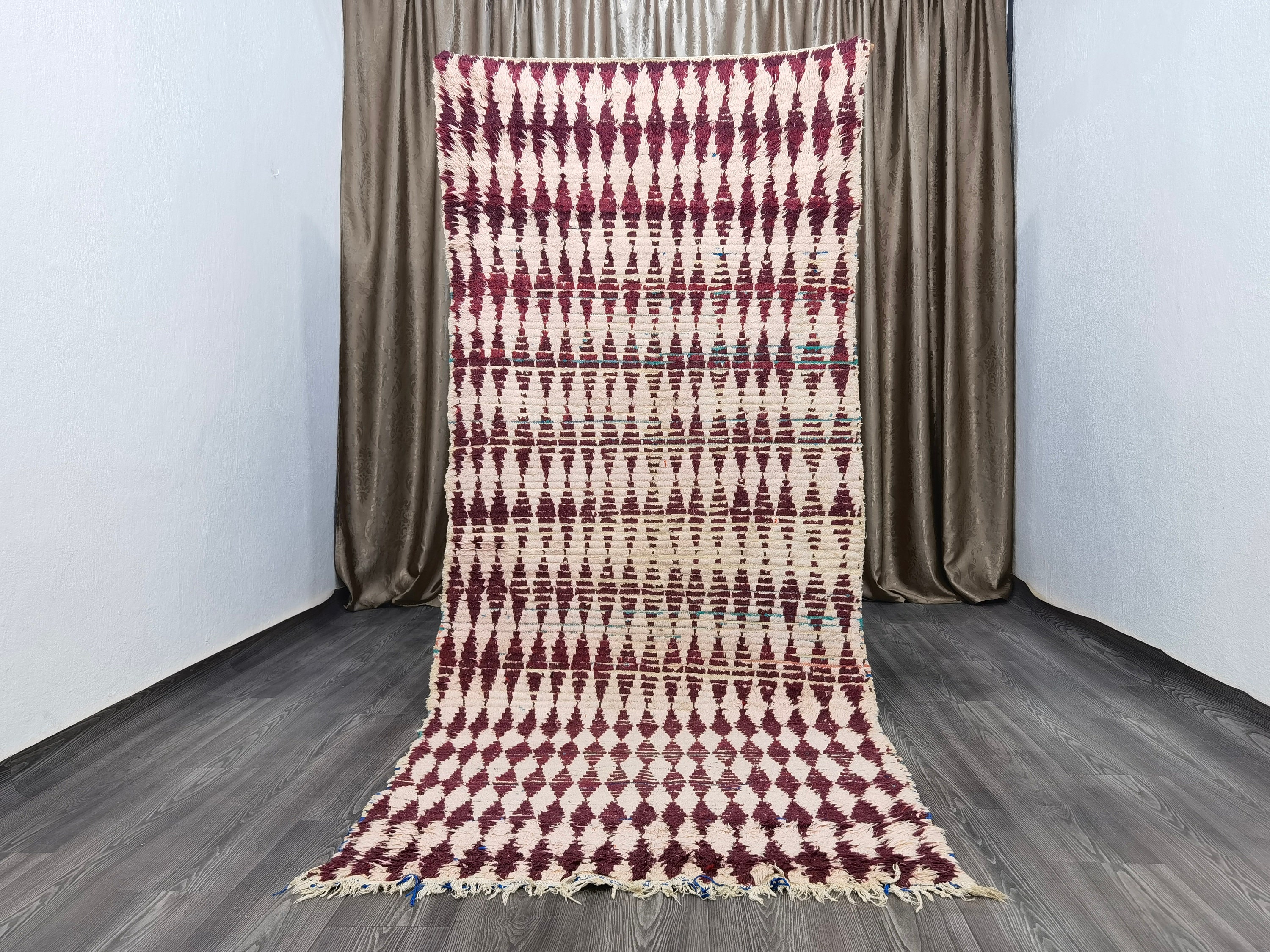 Runner Beni Ourain rug 3.7 FT x 9 FT- Corridor Moroccan carpet 100% Cotton 3.7x9 (273 x 114 cm) .