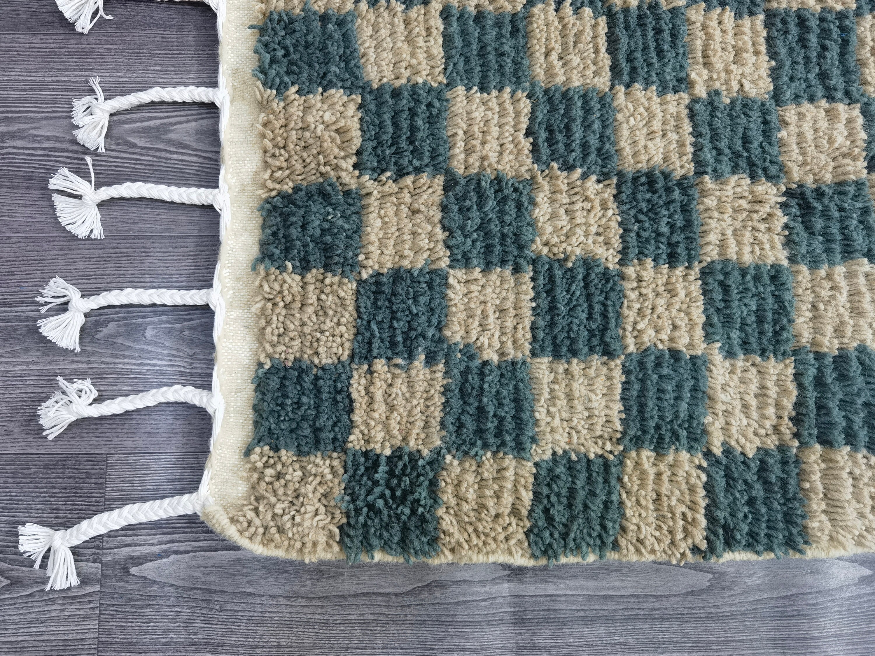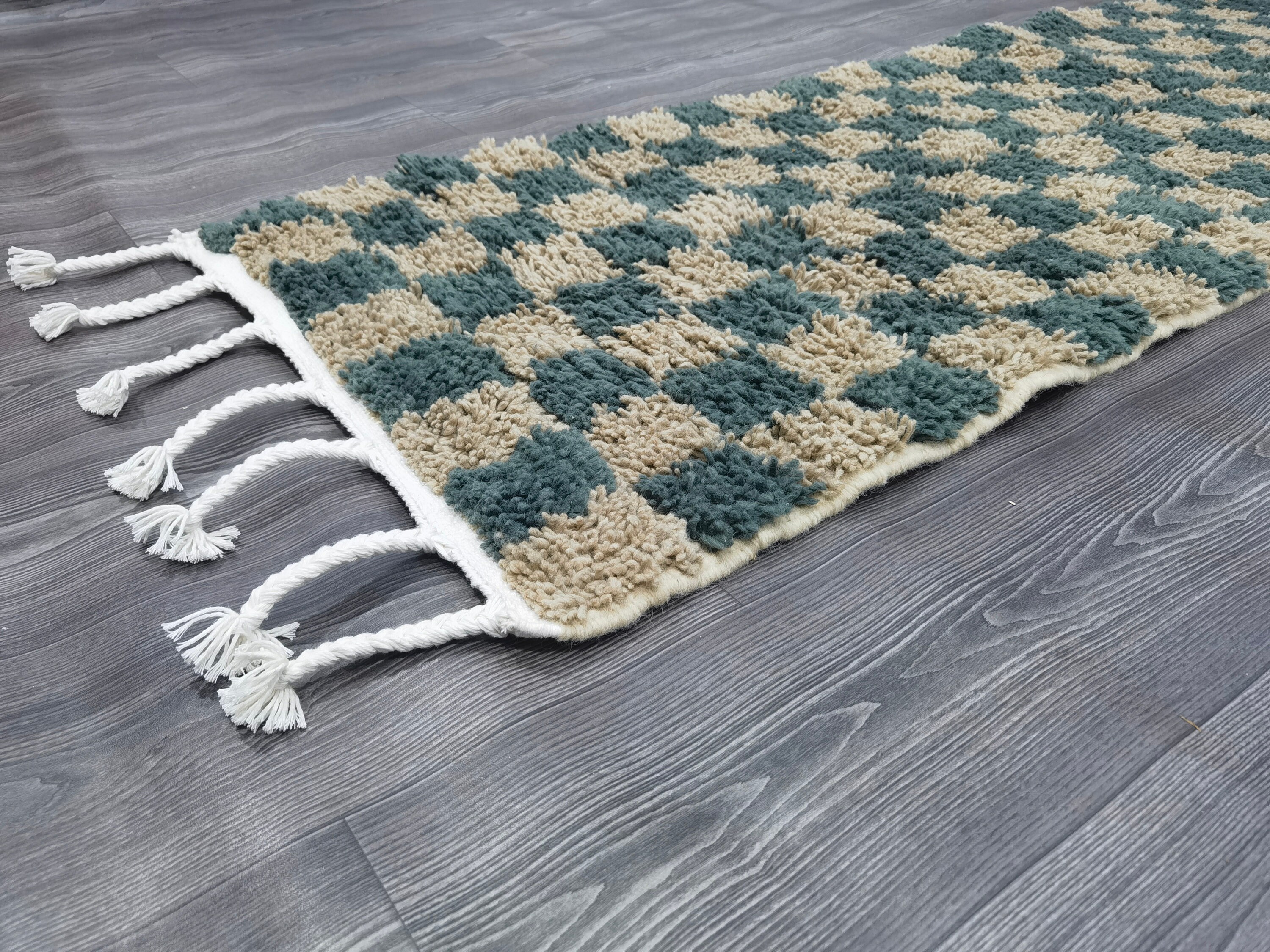 Beige Checkered rug - Gray and Beige rug - Morocco checkerboard area rug - Soft Colored Rug - Moroccan Gray rug - modern kitchen rug .