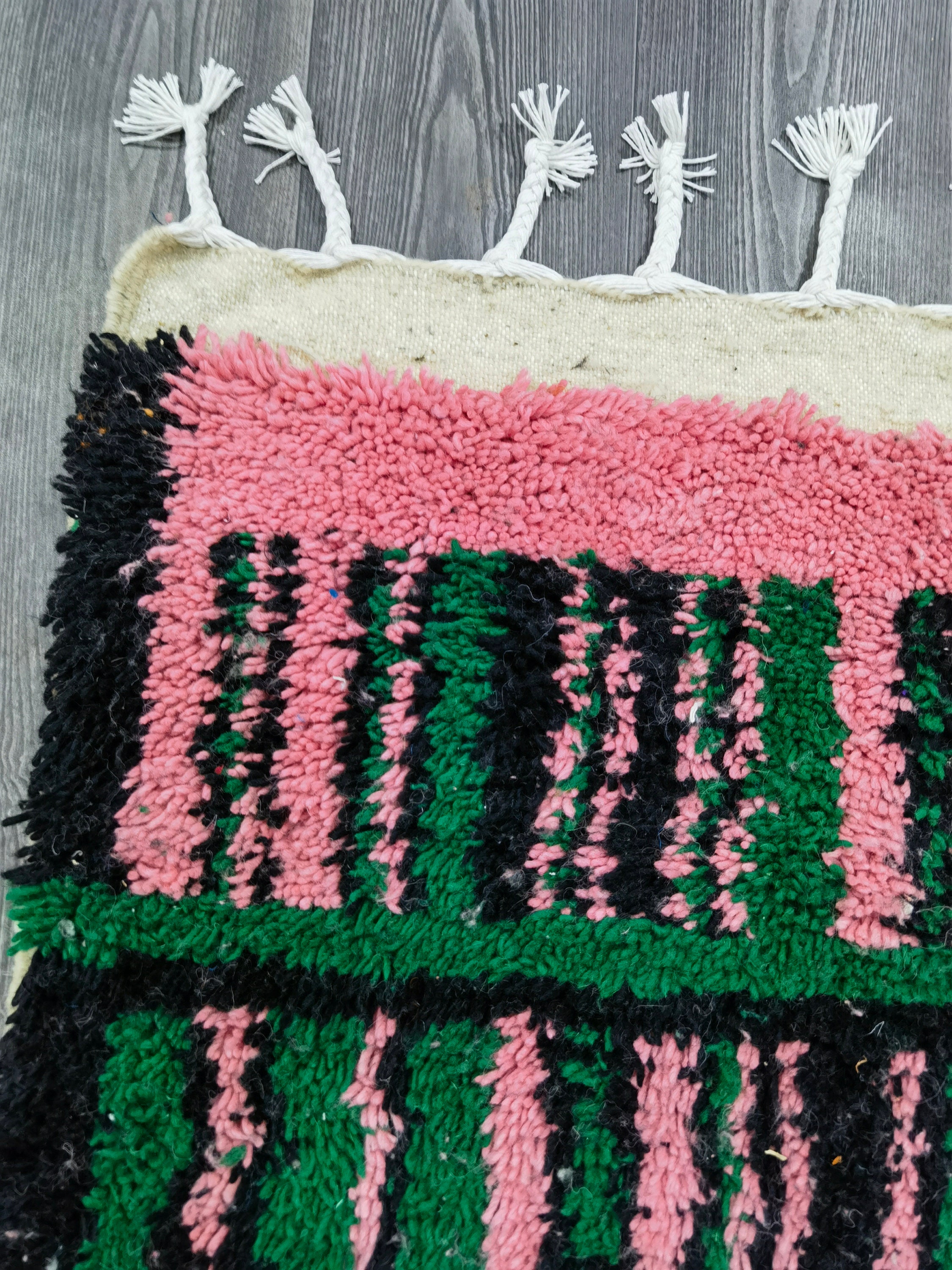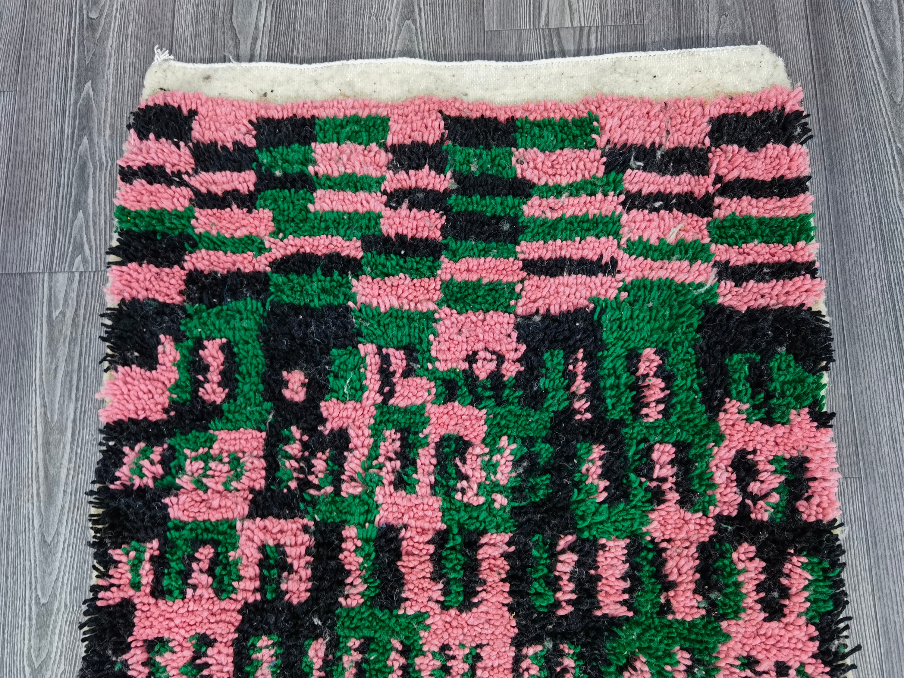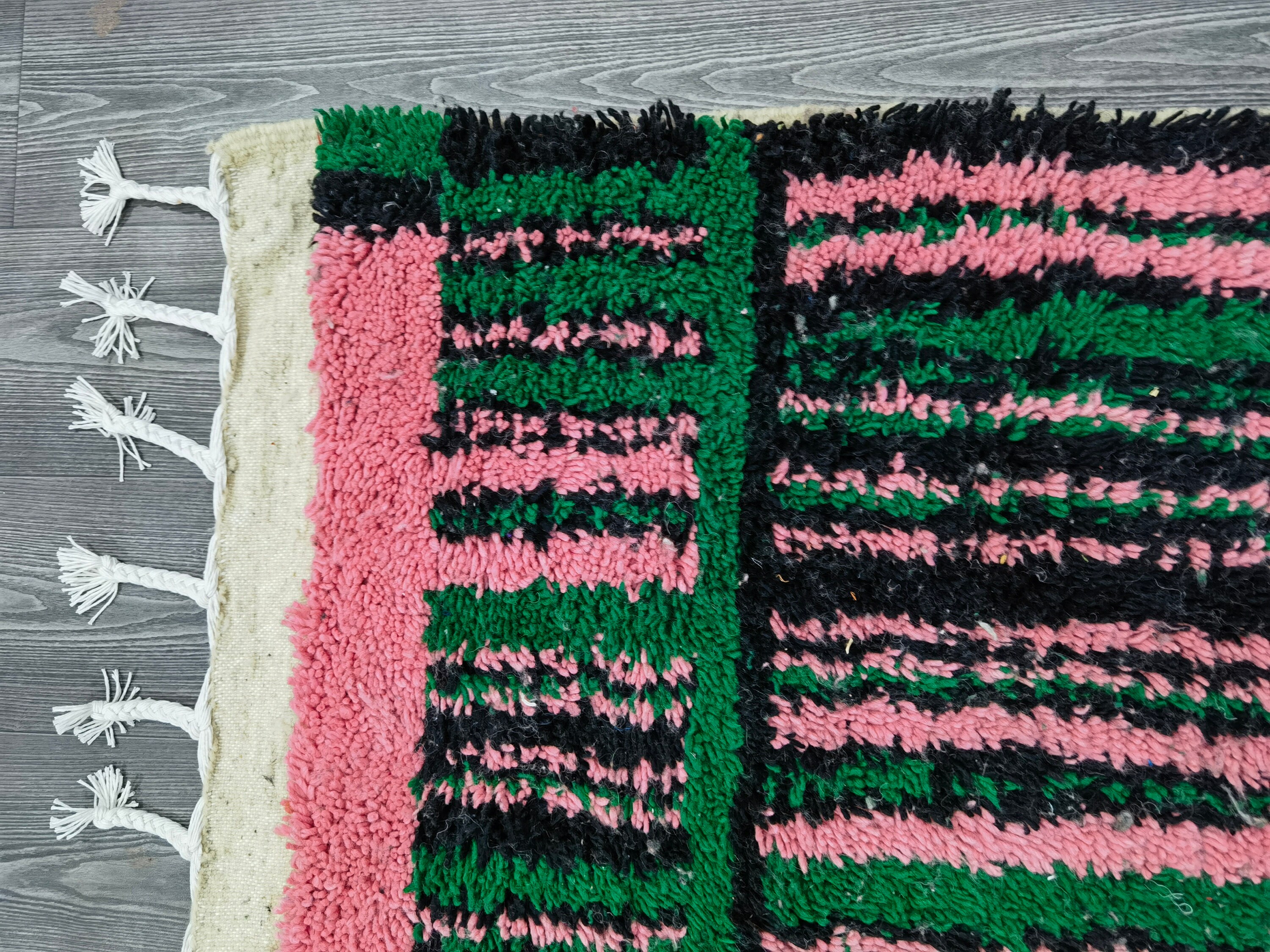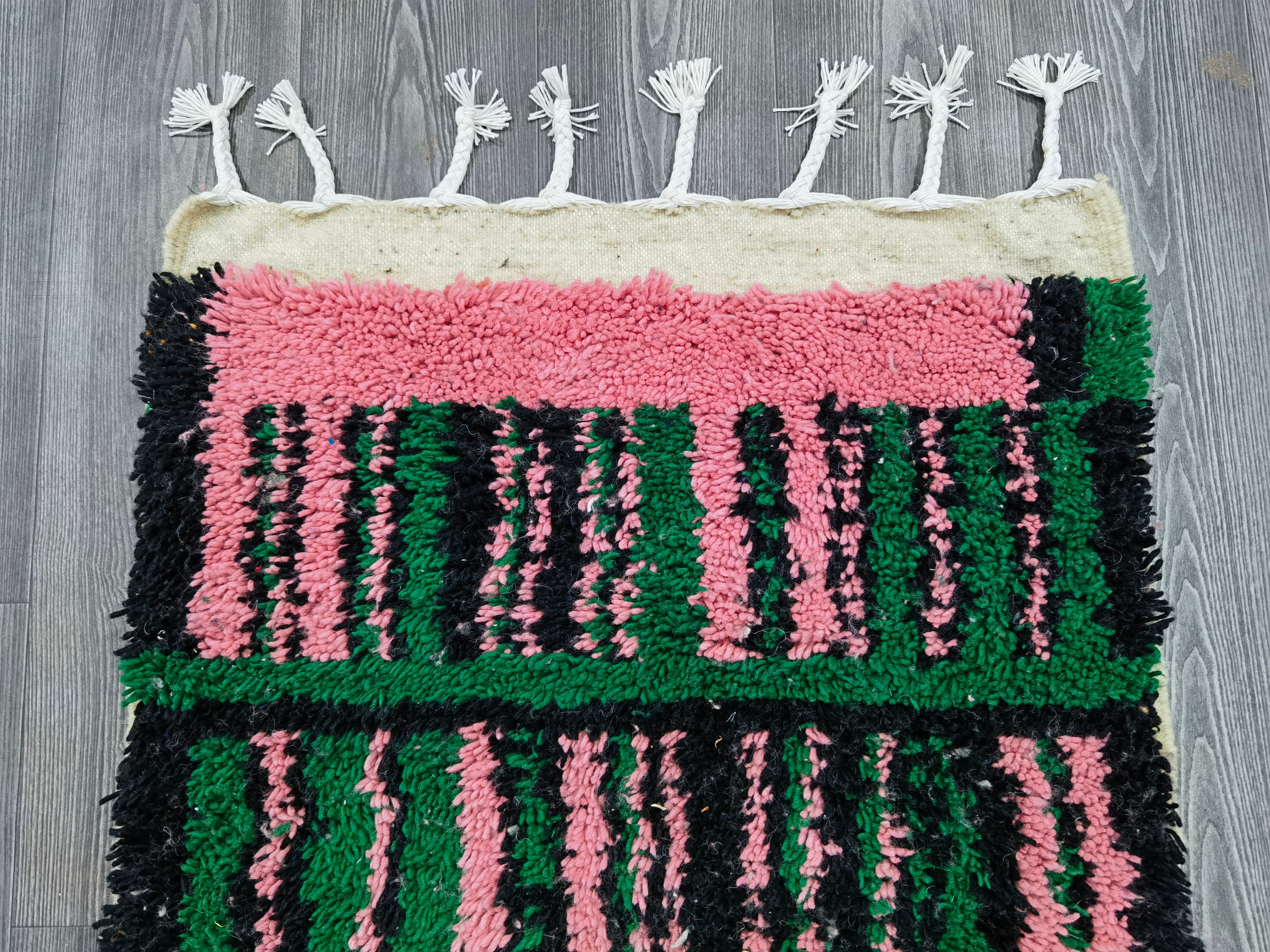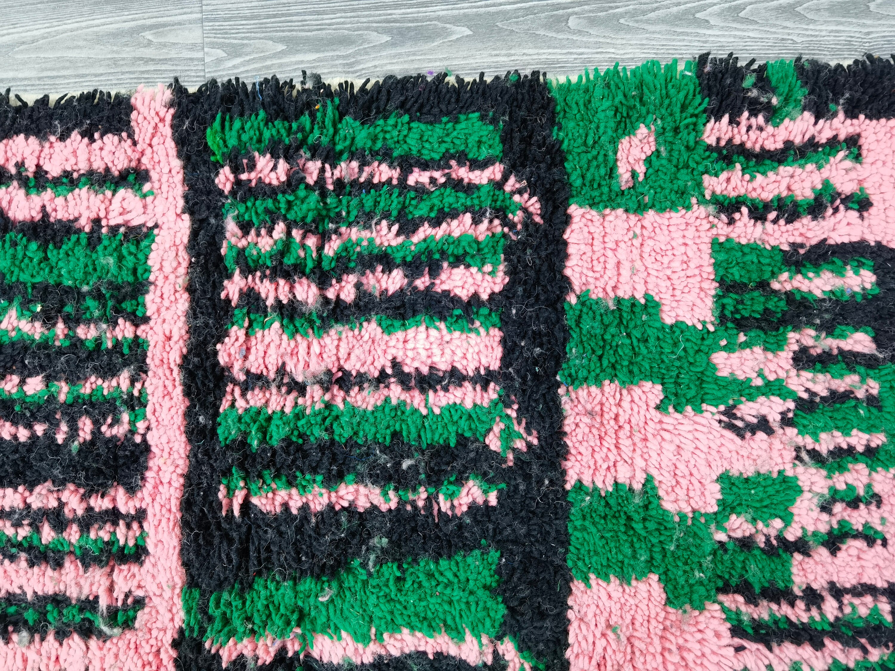 Green Moroccan Wool Runner Rug , Shaggy Wool Rug, Berber Runner Rug, Pink Shaggy Rug, berber Colorful Pink Rug, Home Decor Gifts For Her