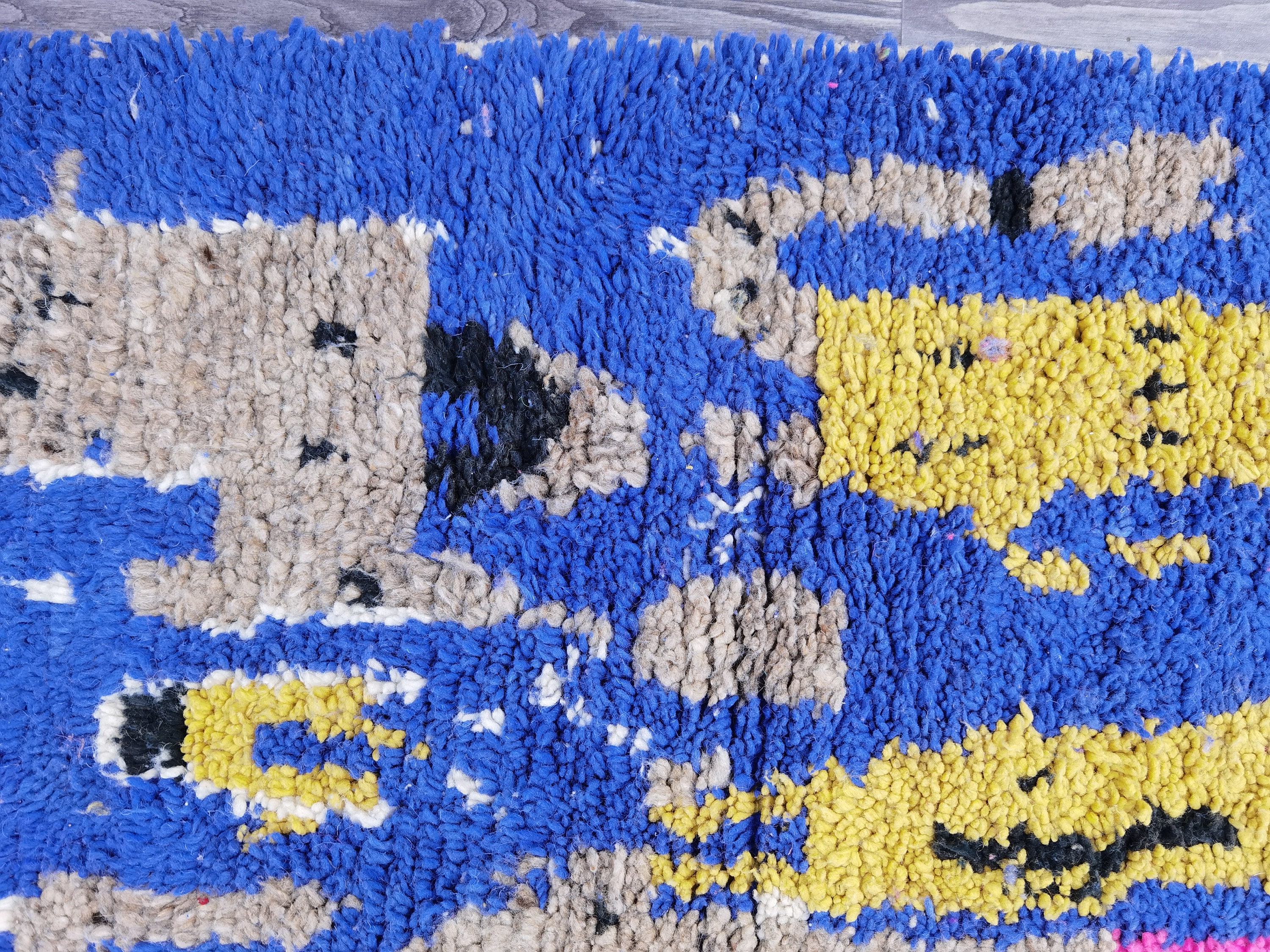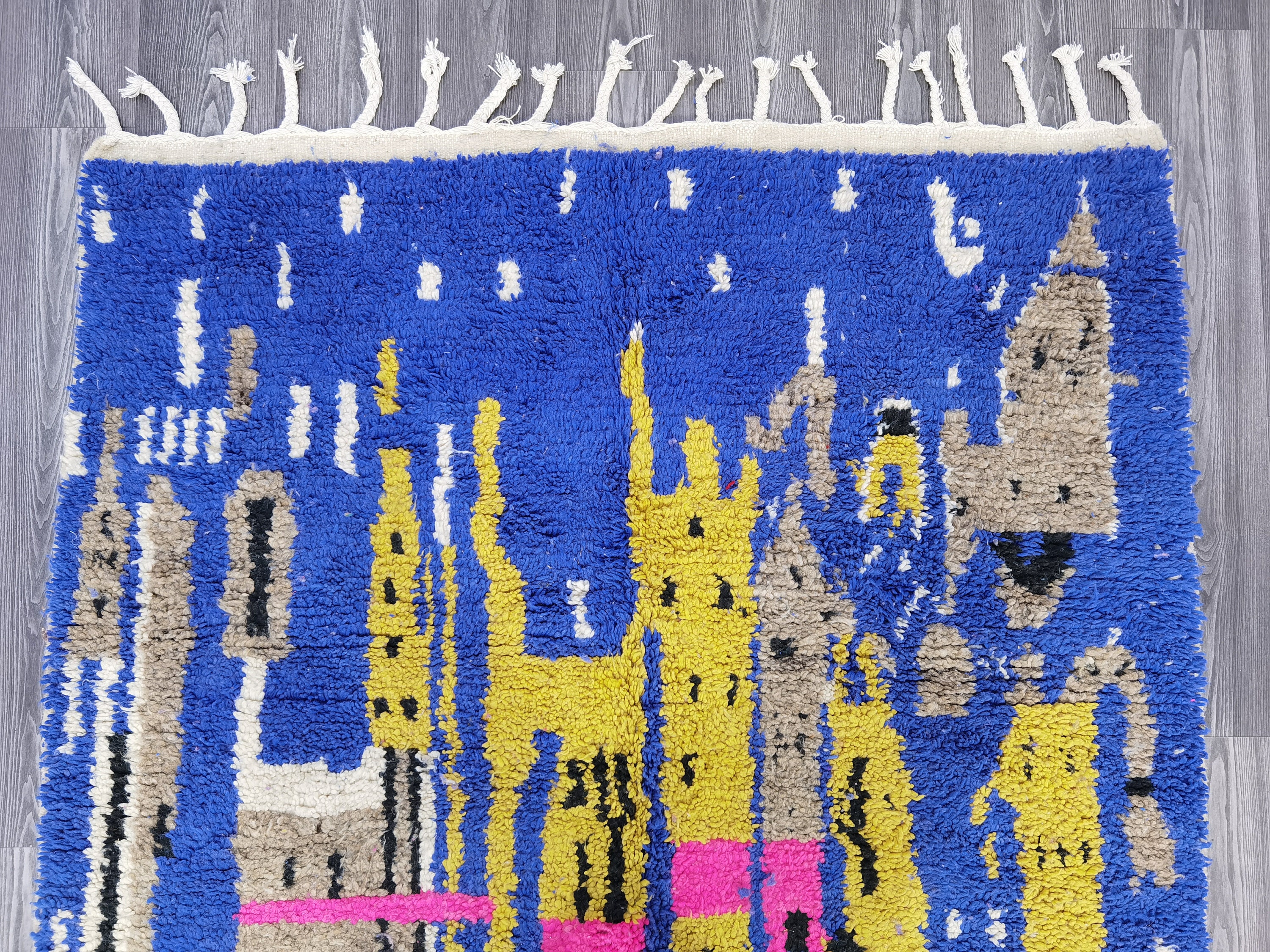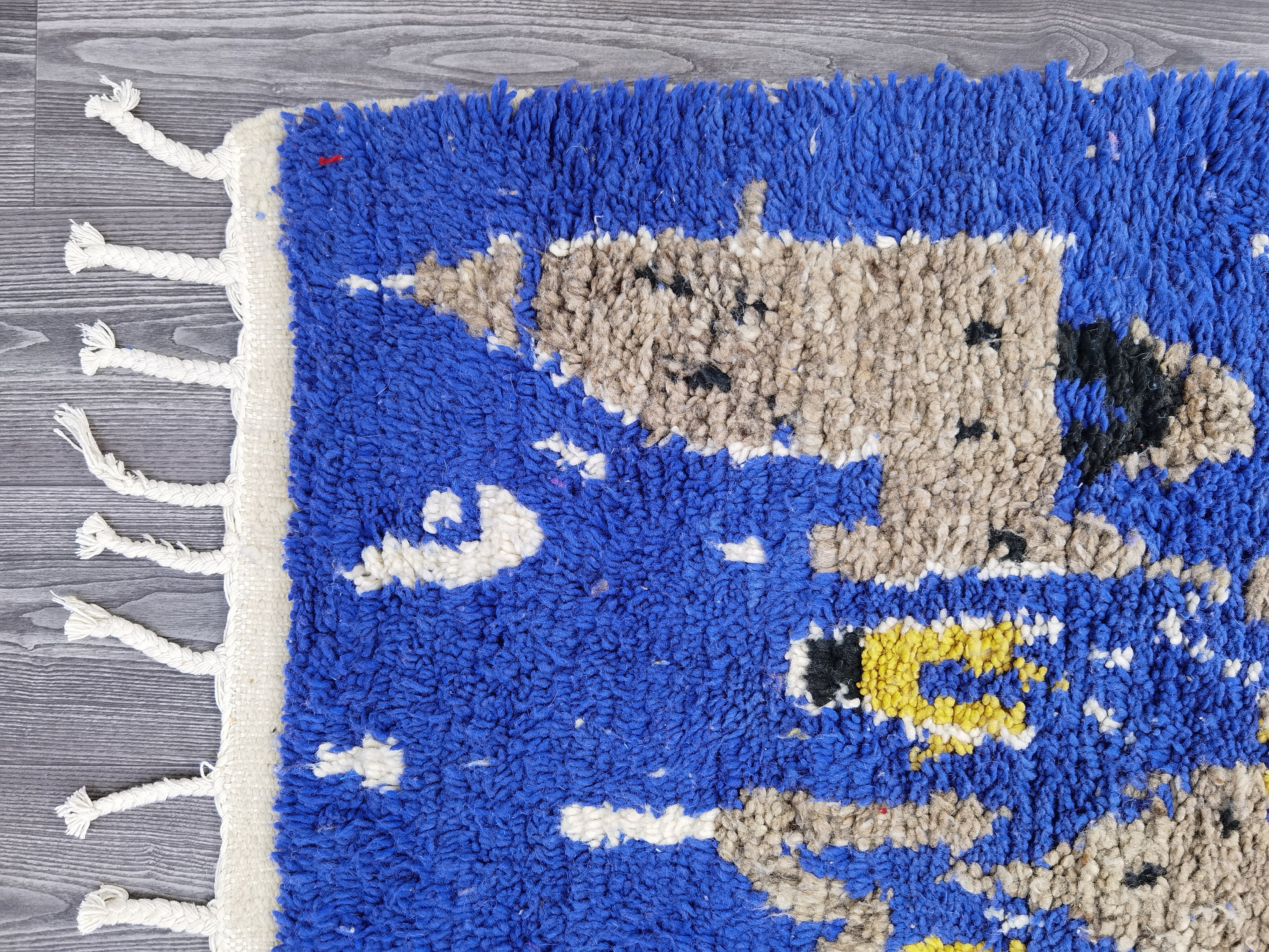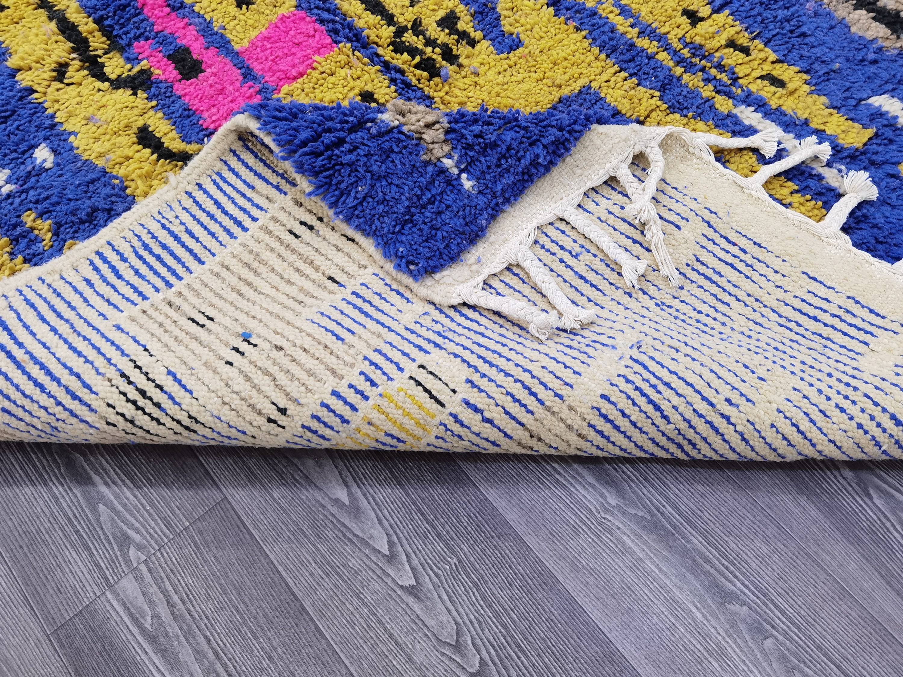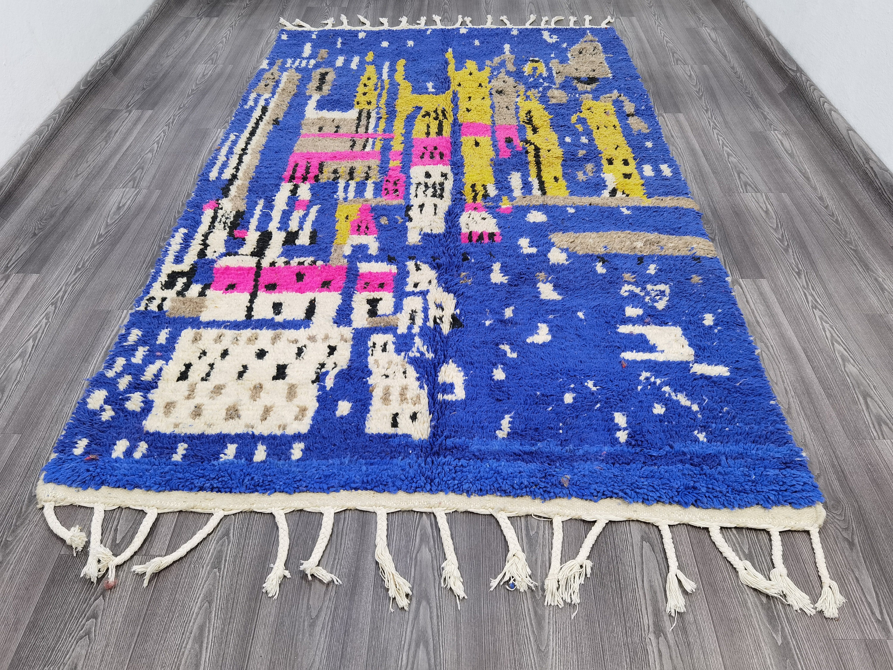 GORGEOUS BENIOURAIN RUGS - Azilal Berber Rug - Handmade Wool Rug - Living Room Rug - Blue Rug - Custom Size Rug - Funky Rug - Best gift