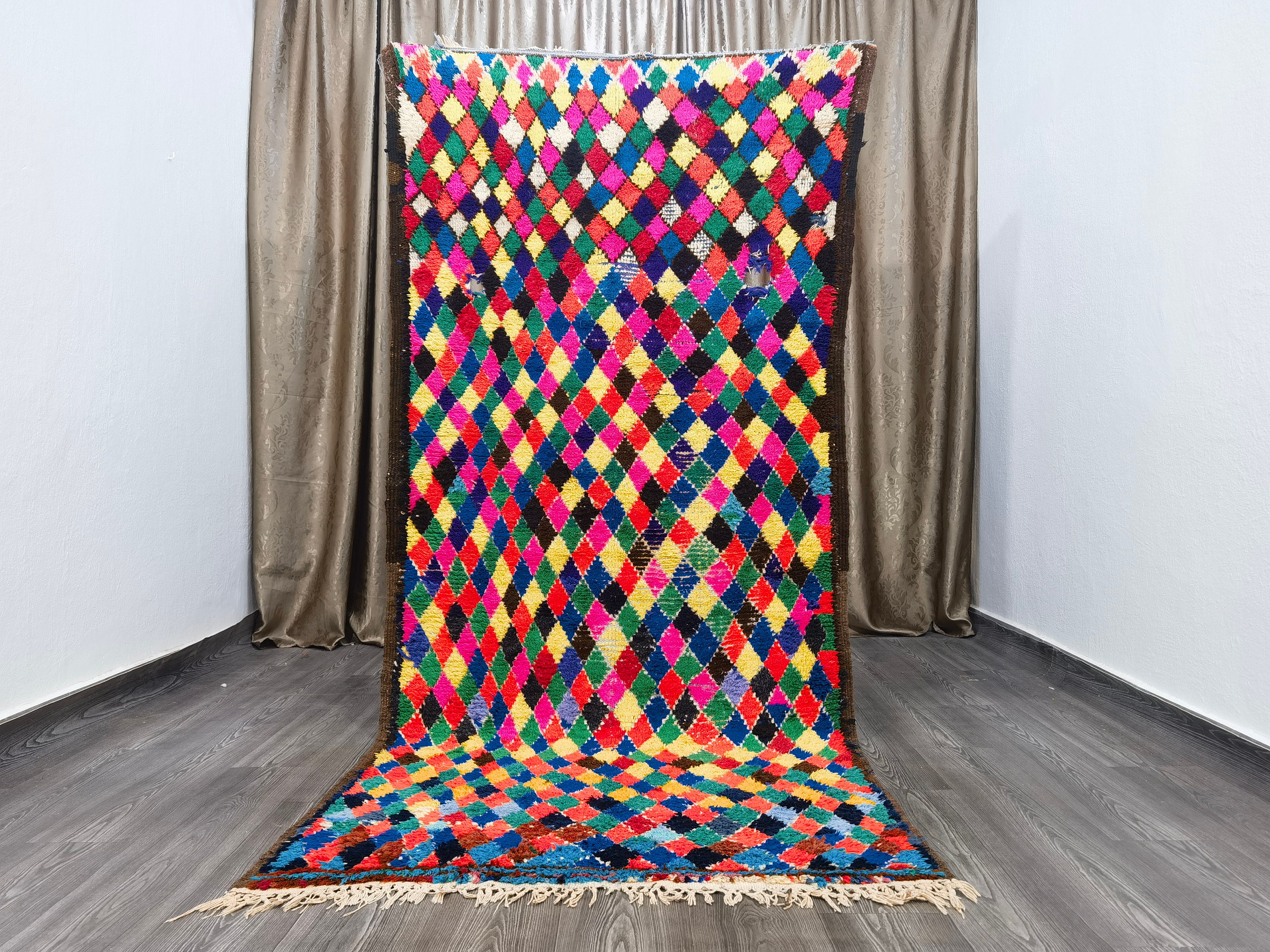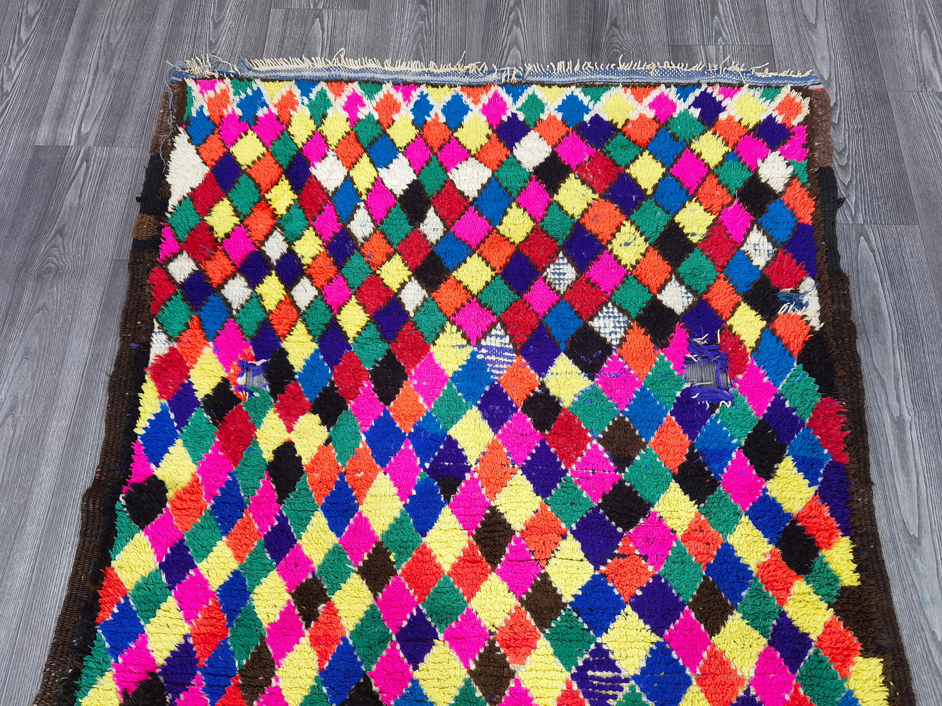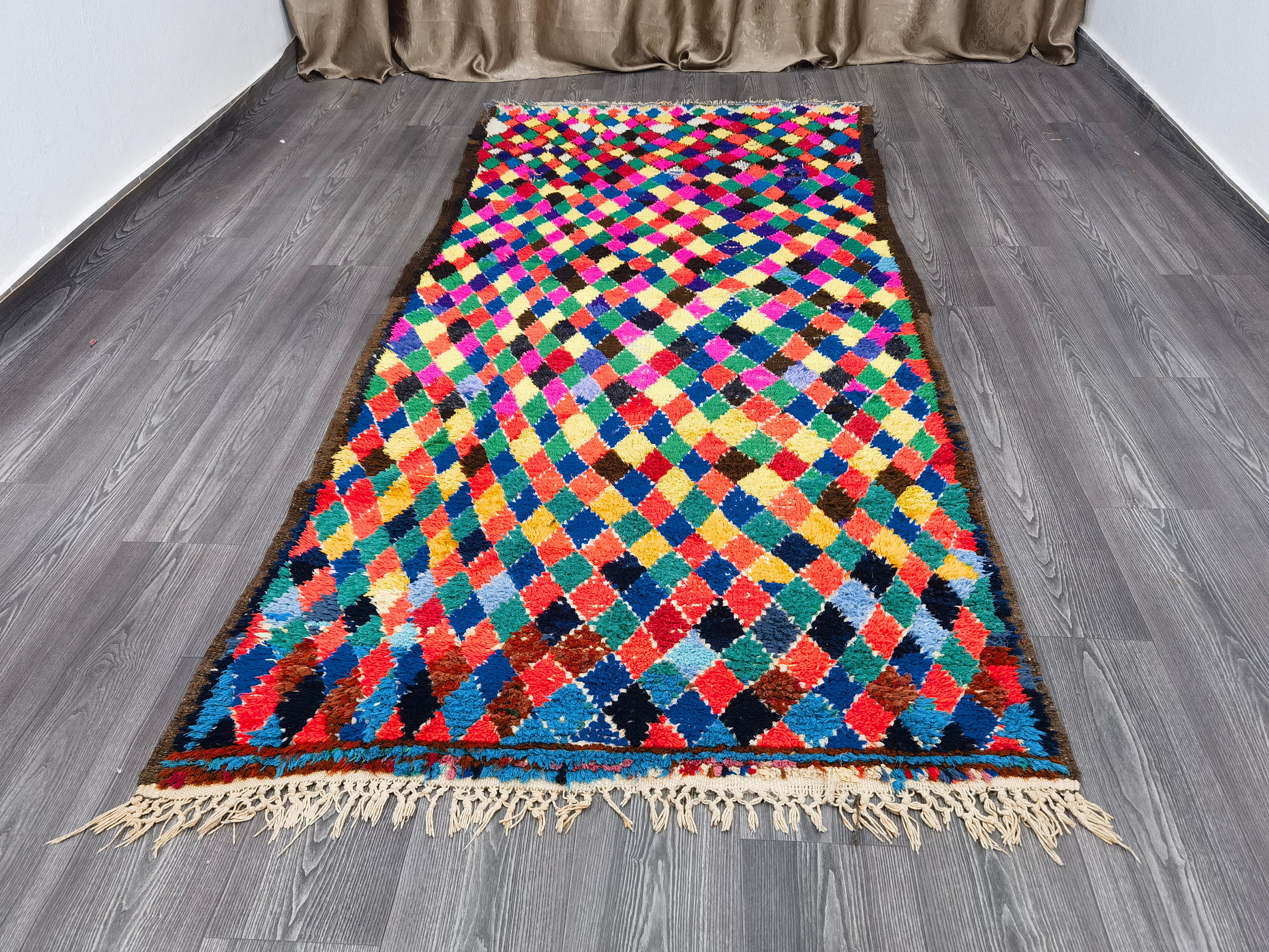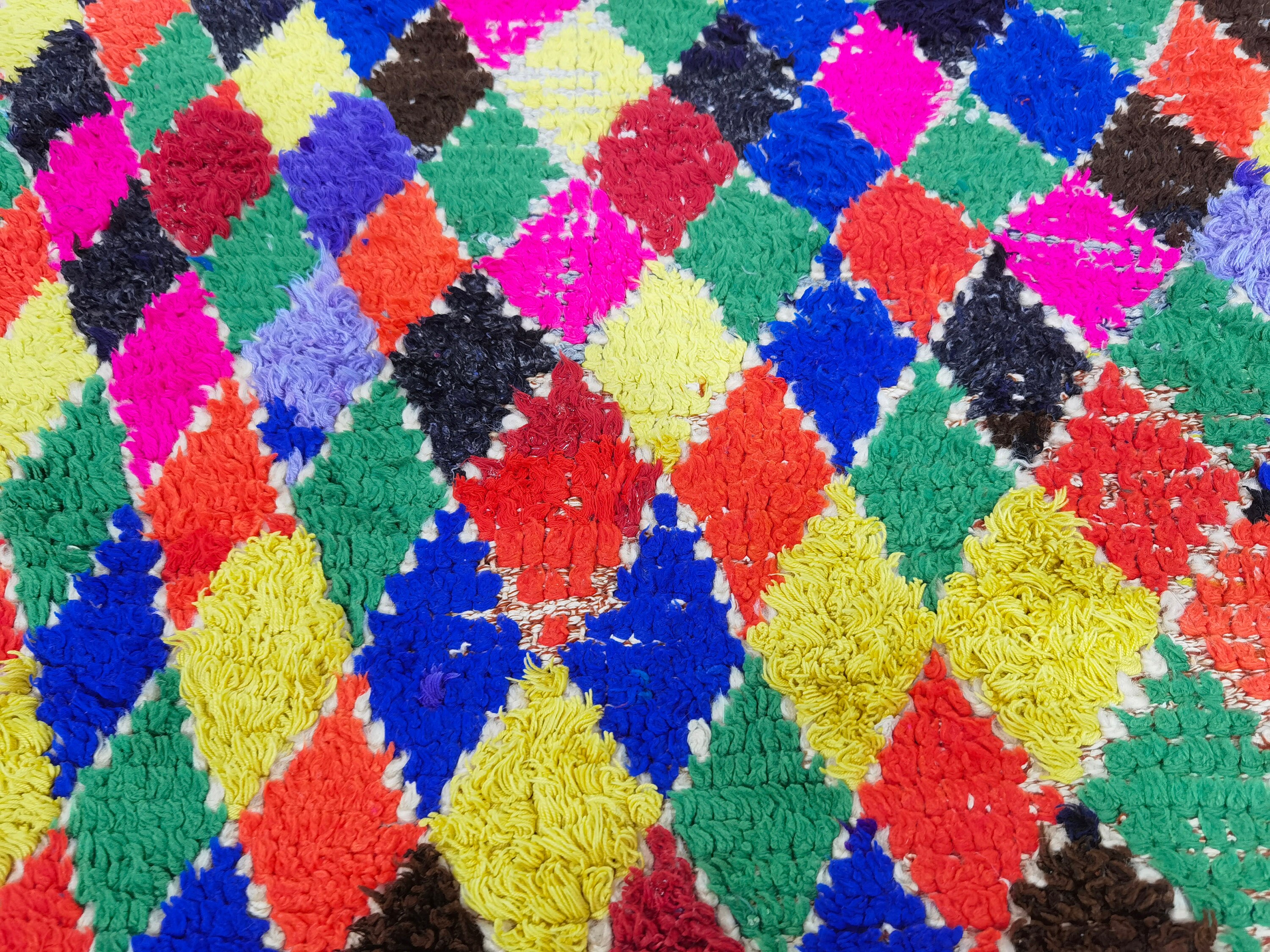 Boucherouite Rug, Colorful Area Rug, Berber Floor Rug, Room Rug Vintage