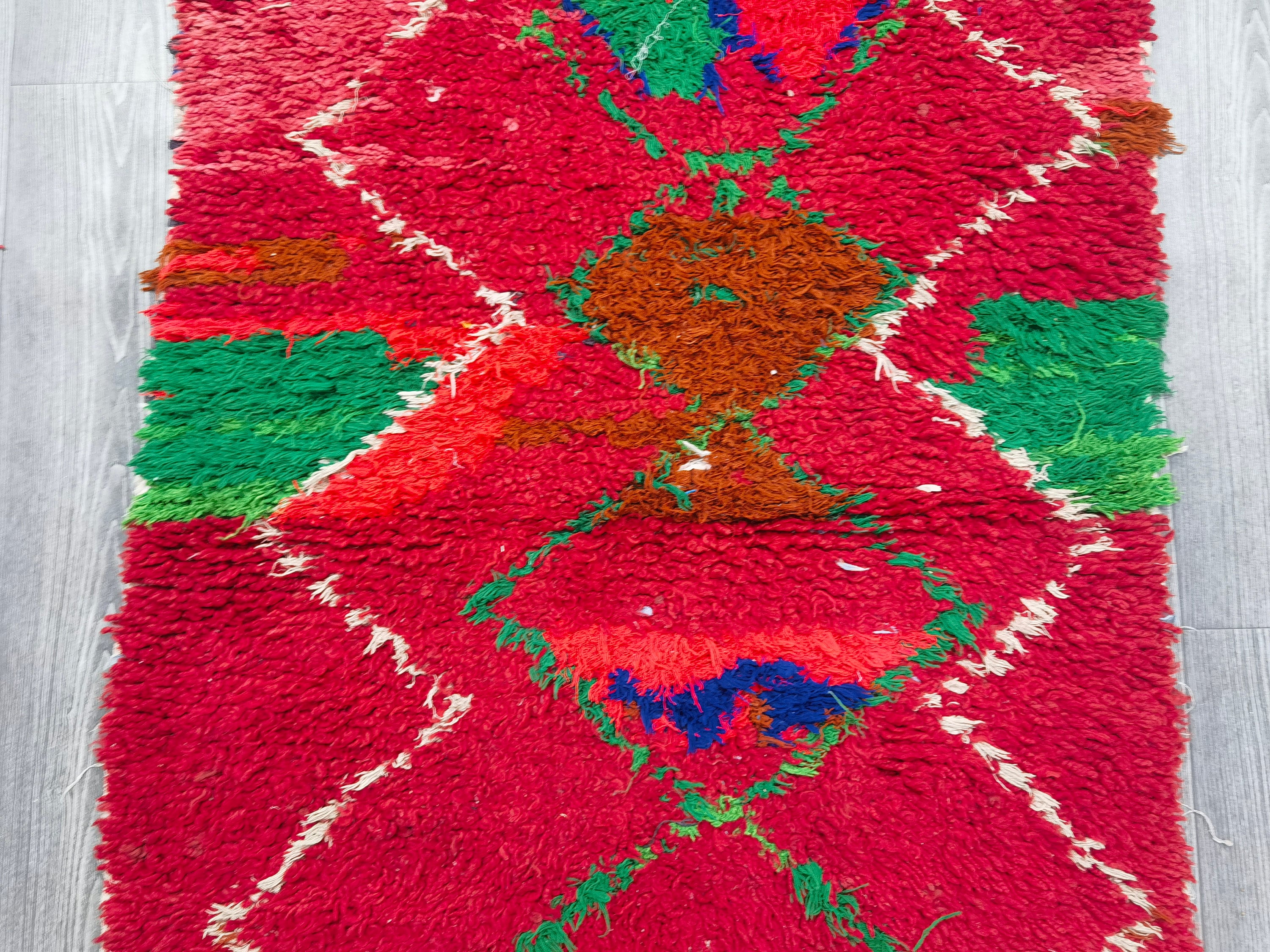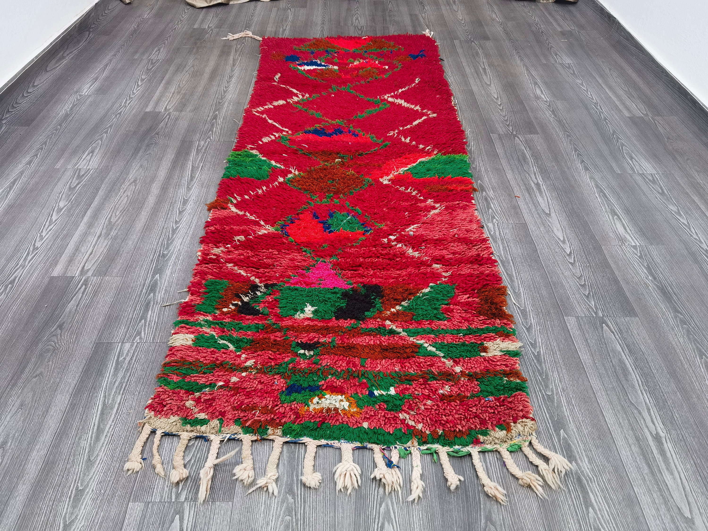 Colorful Rugs For Living Room - Moroccan Rug Runner - Shag Rug Vintage, Berber Runner Rug - Handmade Runners - Abstract Rug Red - 2.8x7.8 ft