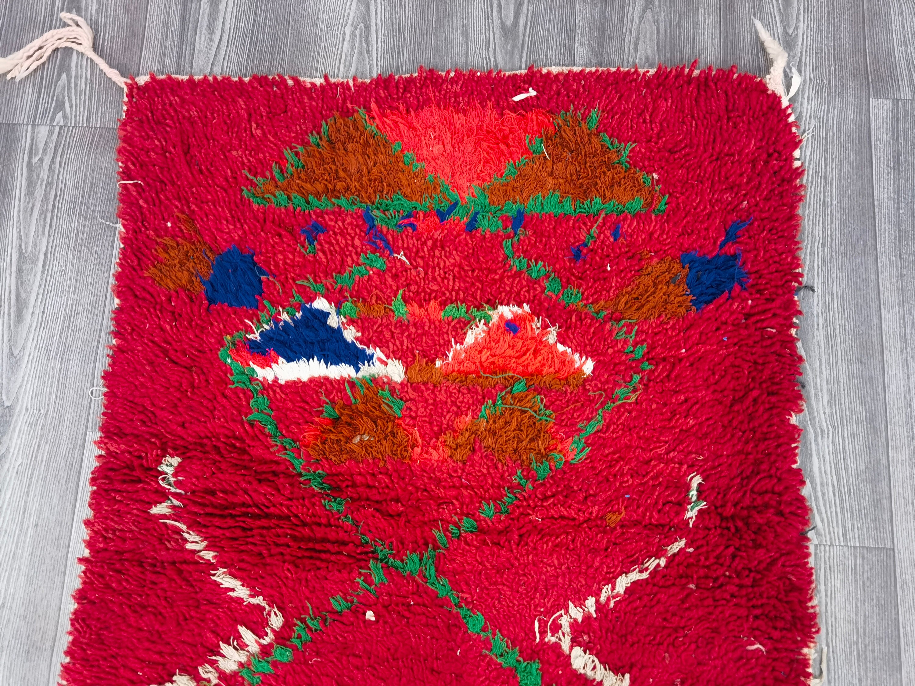 Boujaad is a vibrant and colorful wool rug that will add life to any room in your home. Made from 100% wool, this rug is perfect for use in the living room, bedroom, or anywhere you want to add some beautiful Moroccan flair. The soft and fluffy texture makes it comfortable to walk on, and the vivid colors will brighten up any space. Whether you're looking for a traditional shag rug or something a little more bohemian, Boujaad is sure to be a hit with your guests.