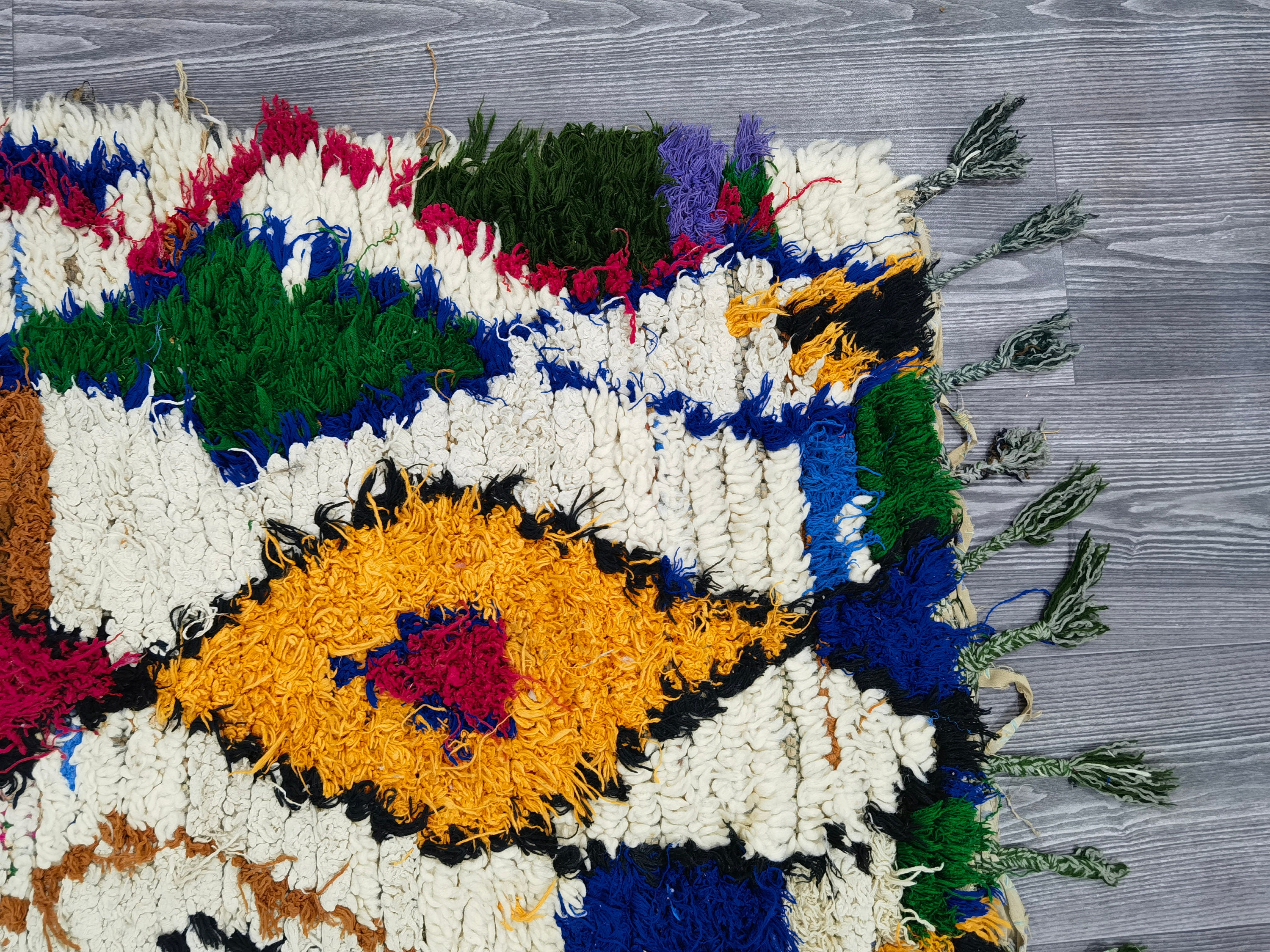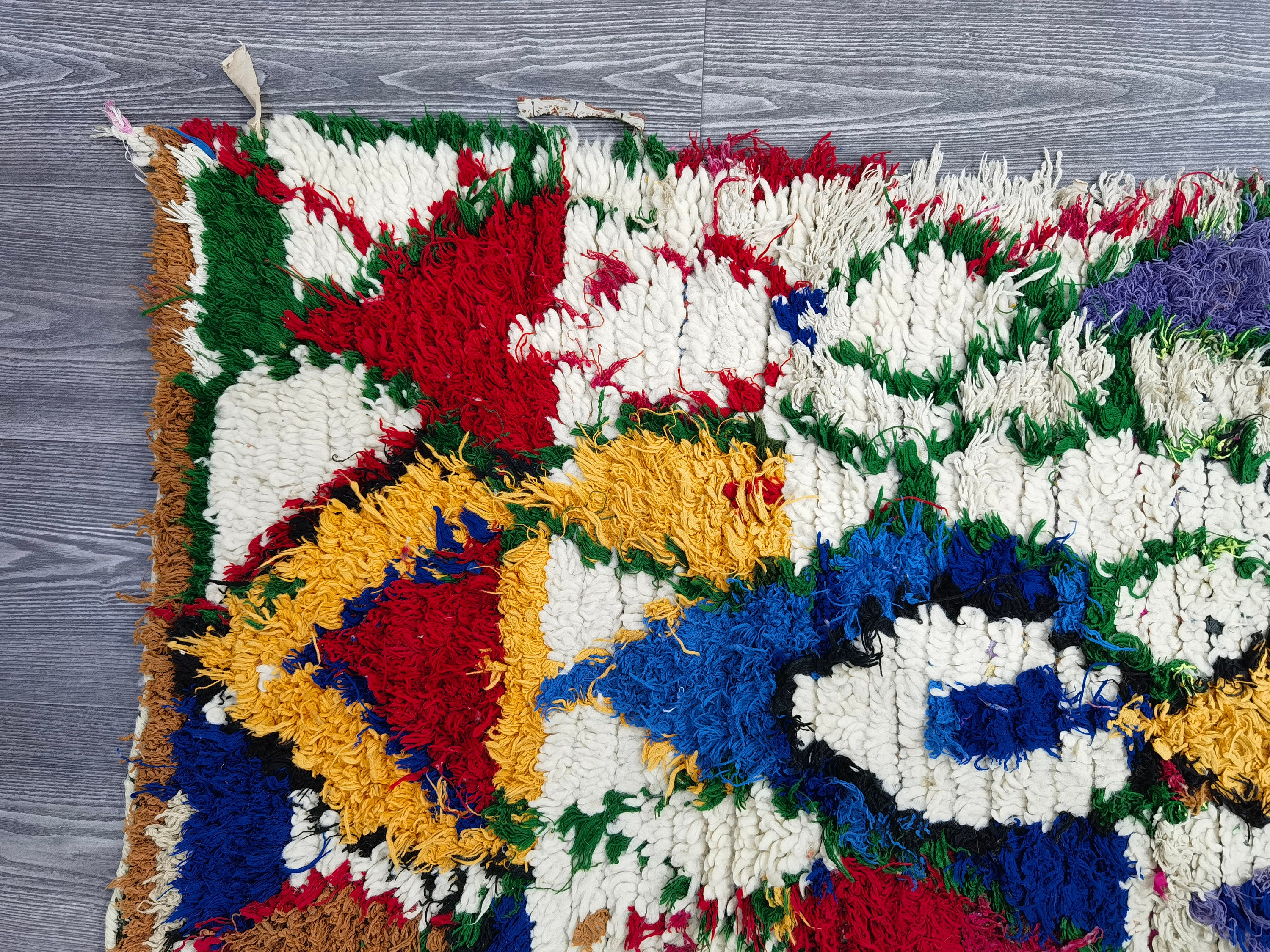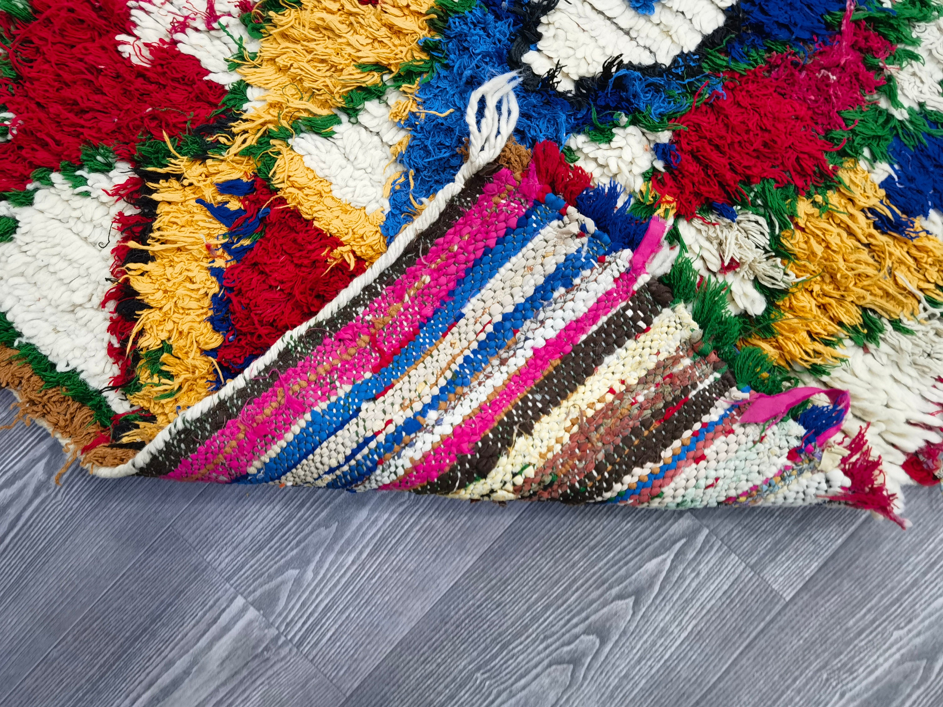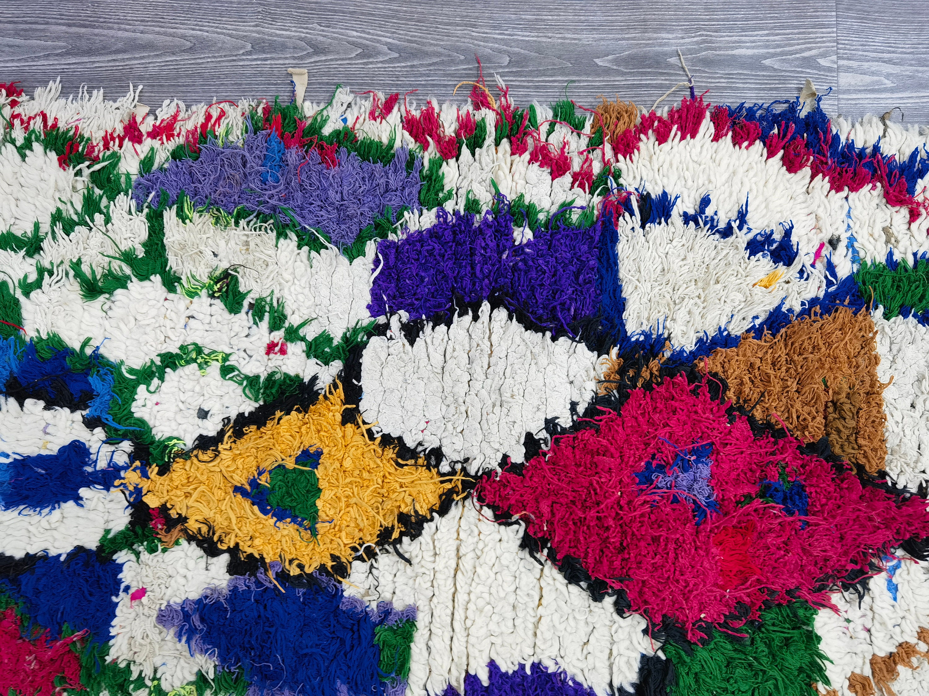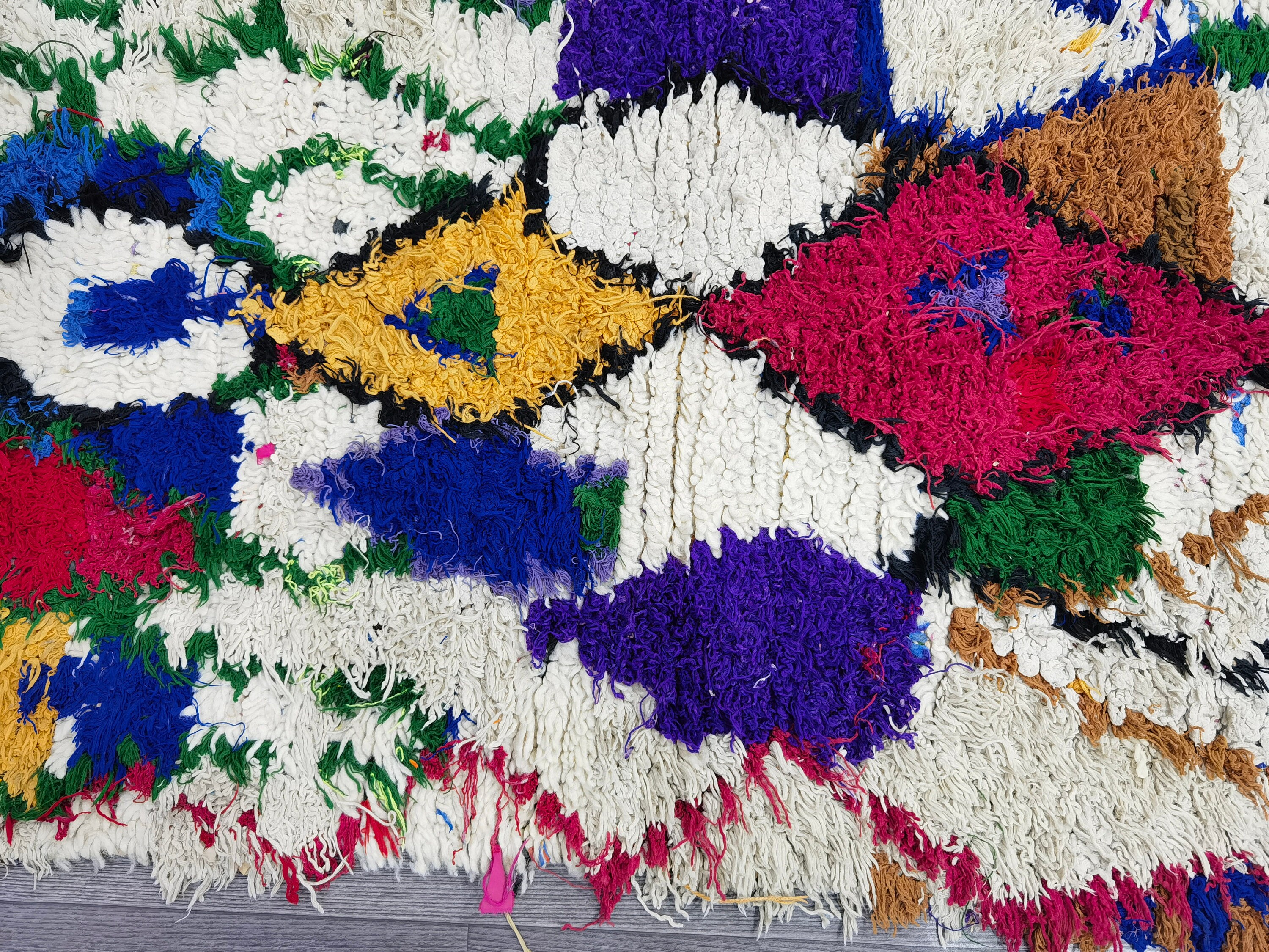 Boujaad is a vibrant and colorful wool rug that will add life to any room in your home. Made from 100% wool, this rug is perfect for use in the living room, bedroom, or anywhere you want to add some beautiful Moroccan flair. The soft and fluffy texture makes it comfortable to walk on, and the vivid colors will brighten up any space. Whether you're looking for a traditional shag rug or something a little more bohemian, Boujaad is sure to be a hit with your guests.