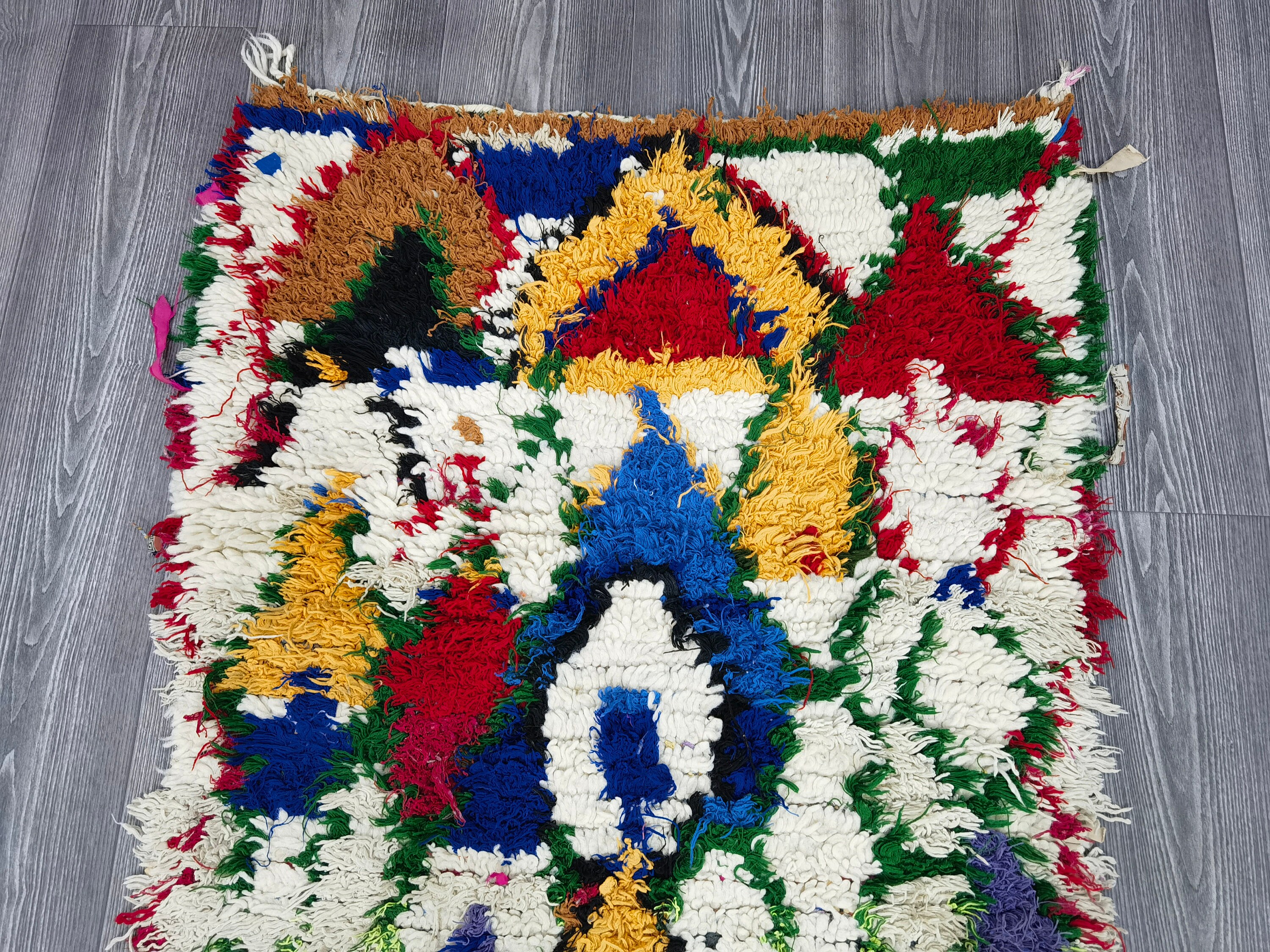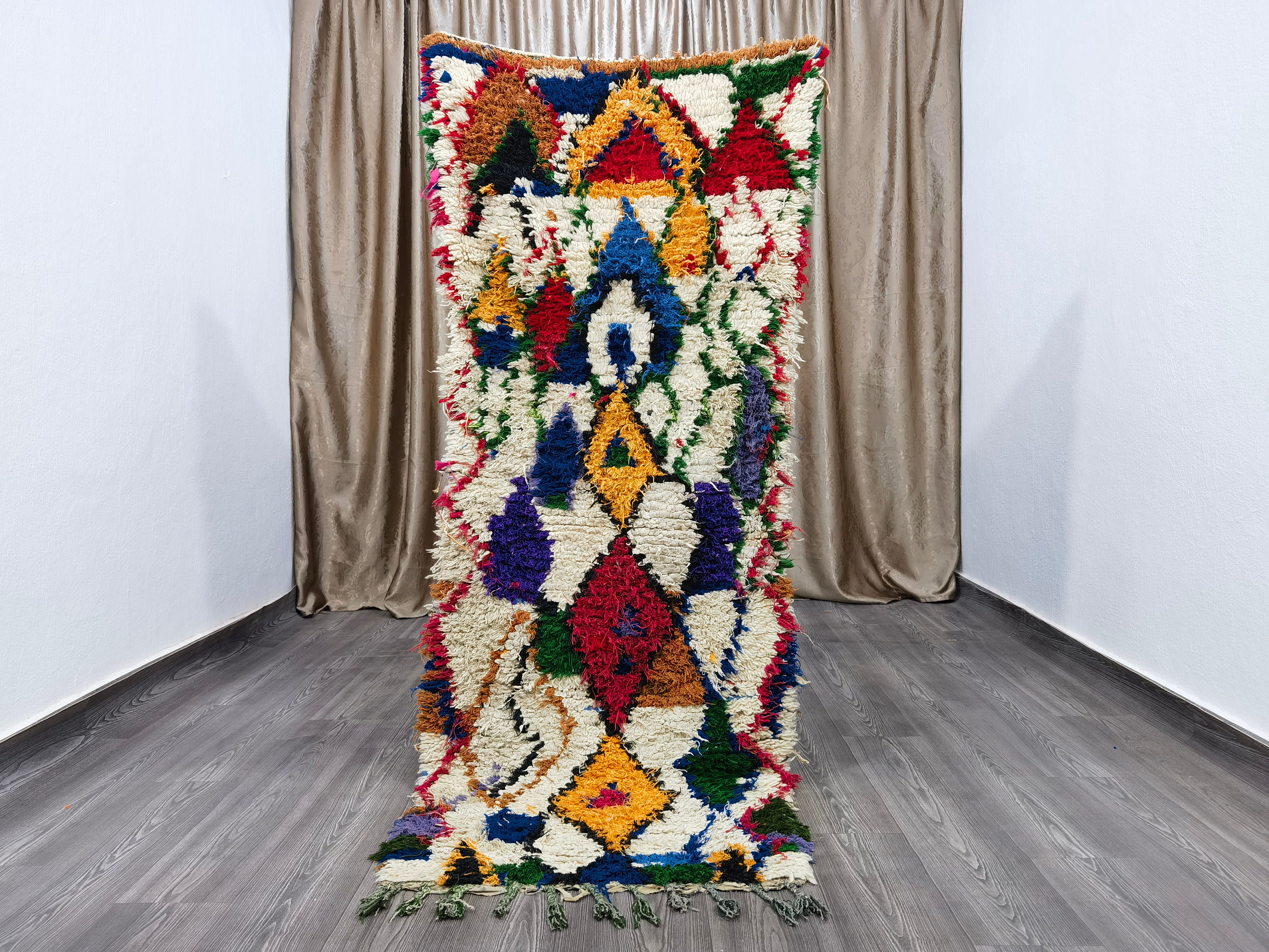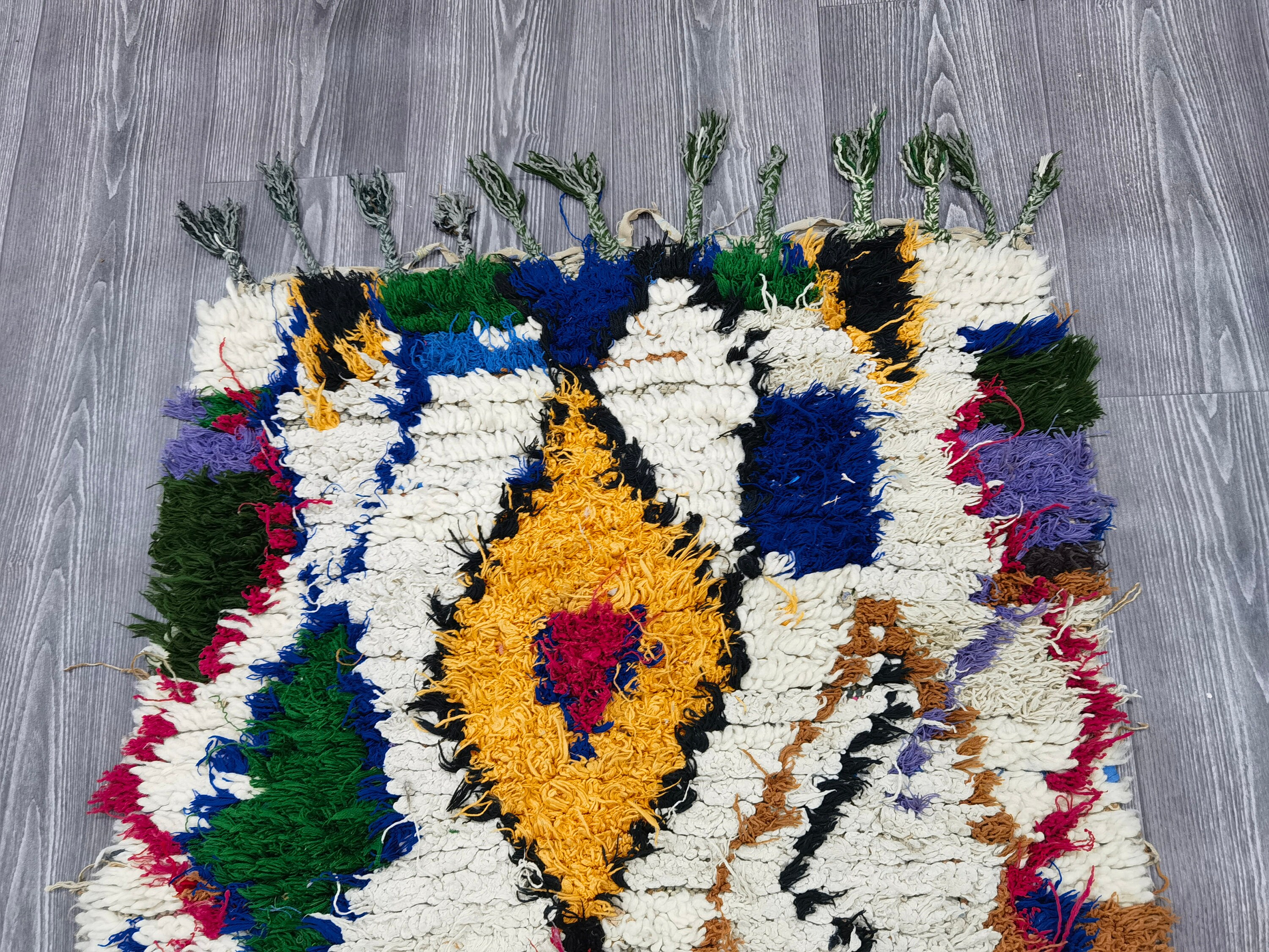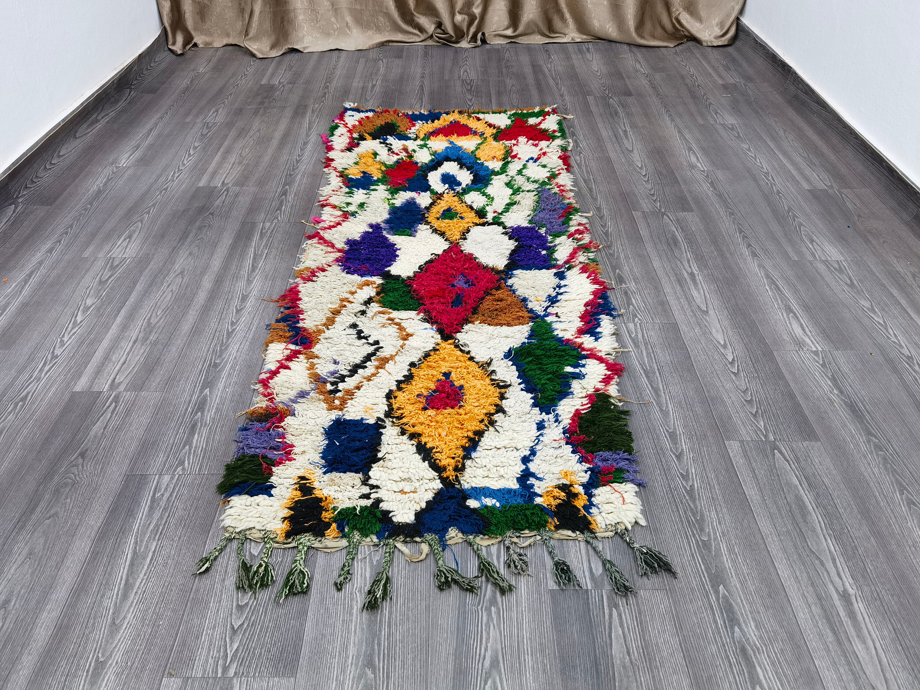 Vintage Boujaad Rug Runner 2.5x6.7 ft, Bohemian Moroccan Colorful Area Rug, Boho Style Runner Rug .