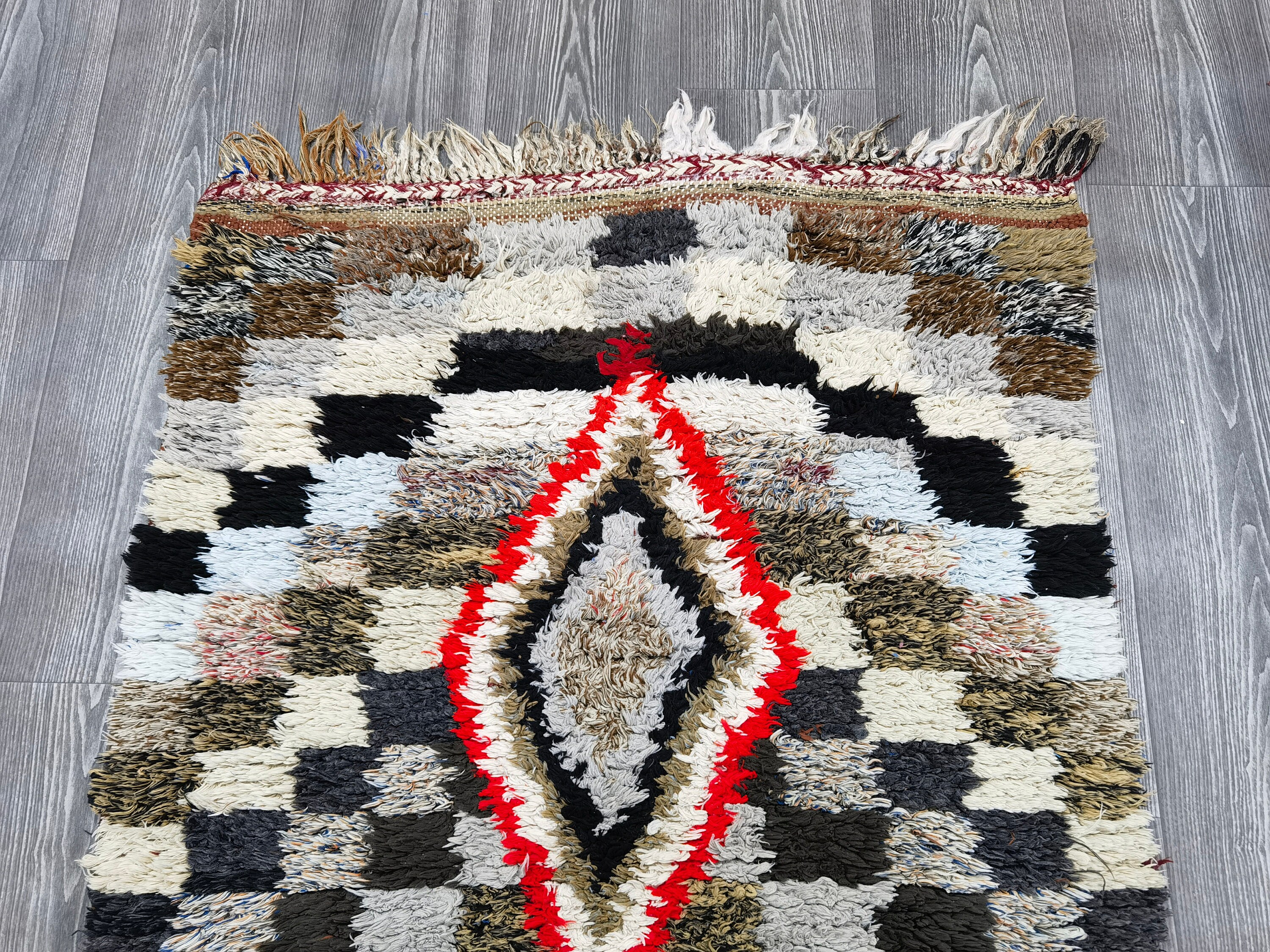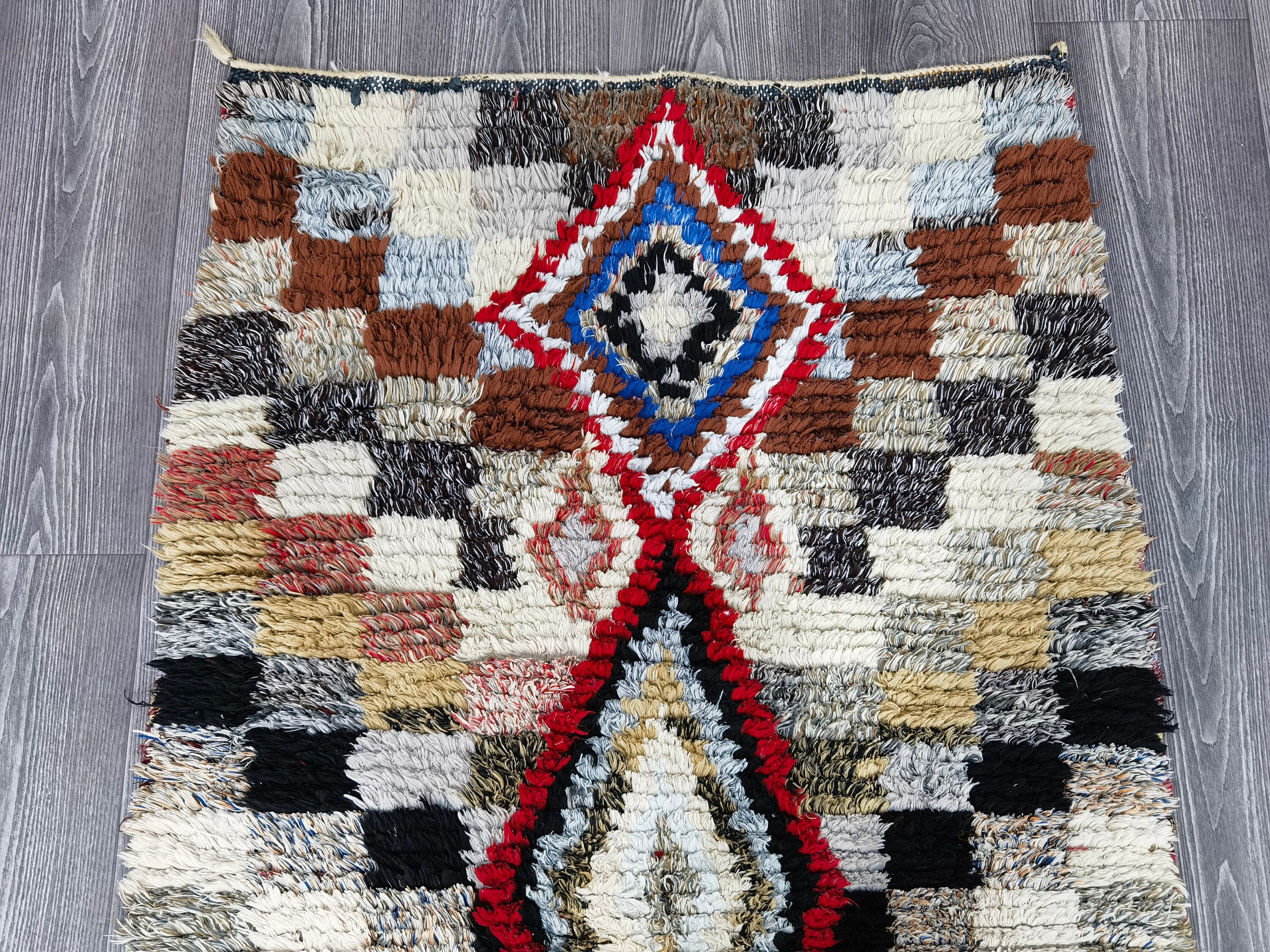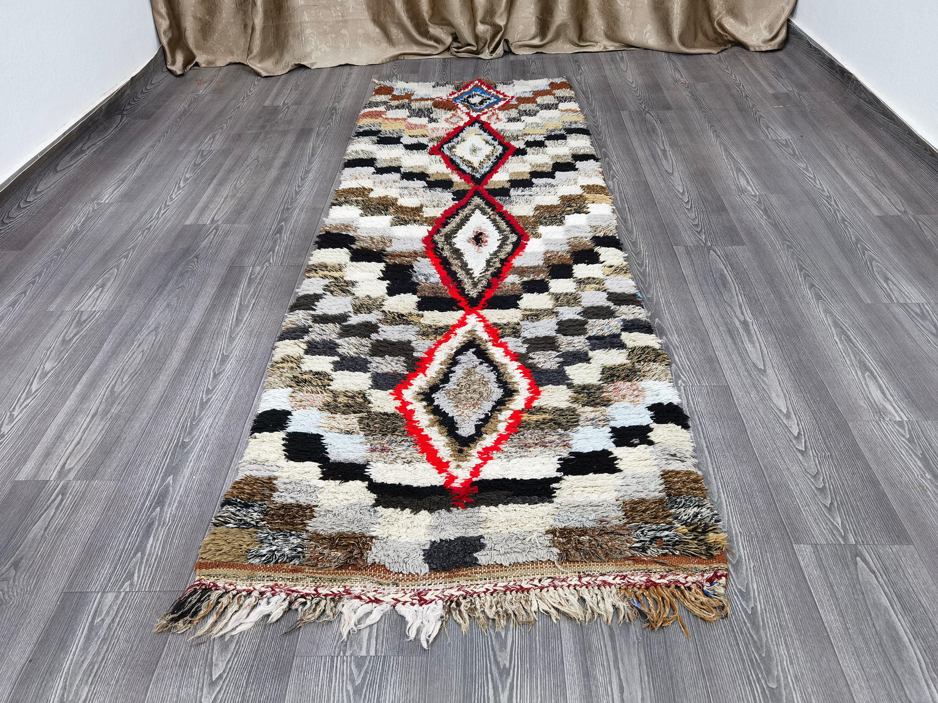 Checkered Runner Rug - Kitchen Rug Runner - Berber Runner Carpet - Colorful Rug - Authentic Boujaad Runner Rug - Moroccan Rug Runner