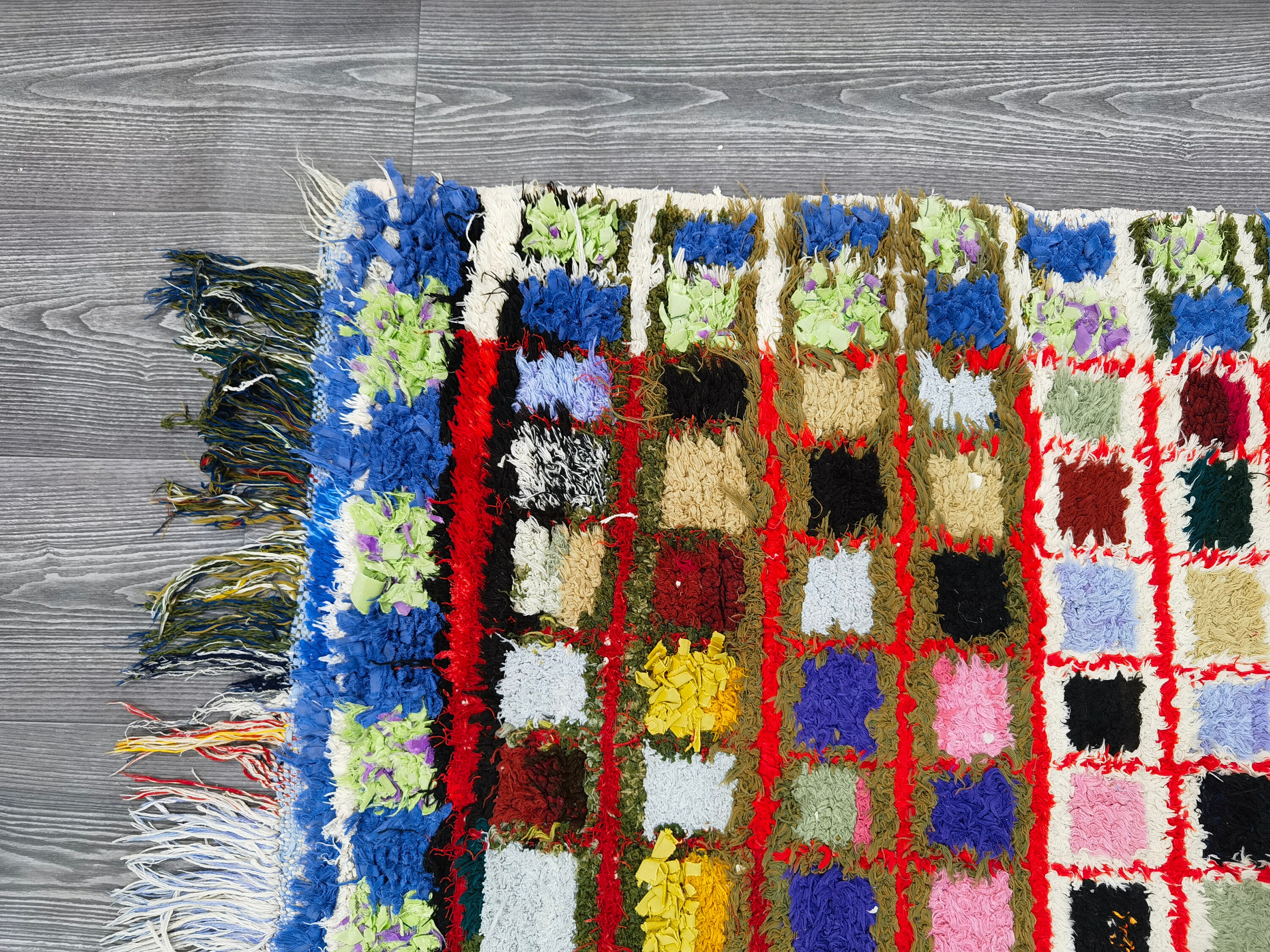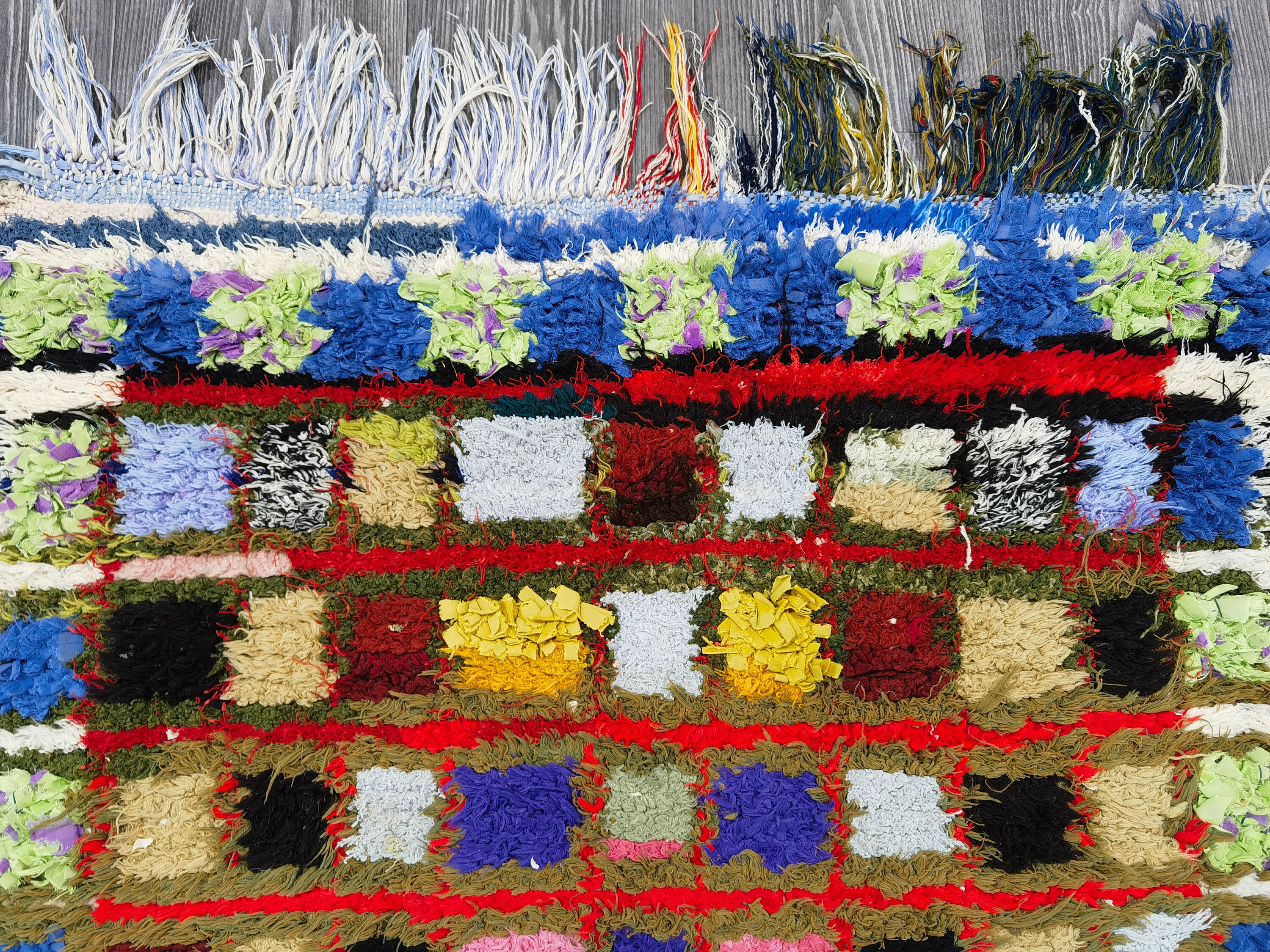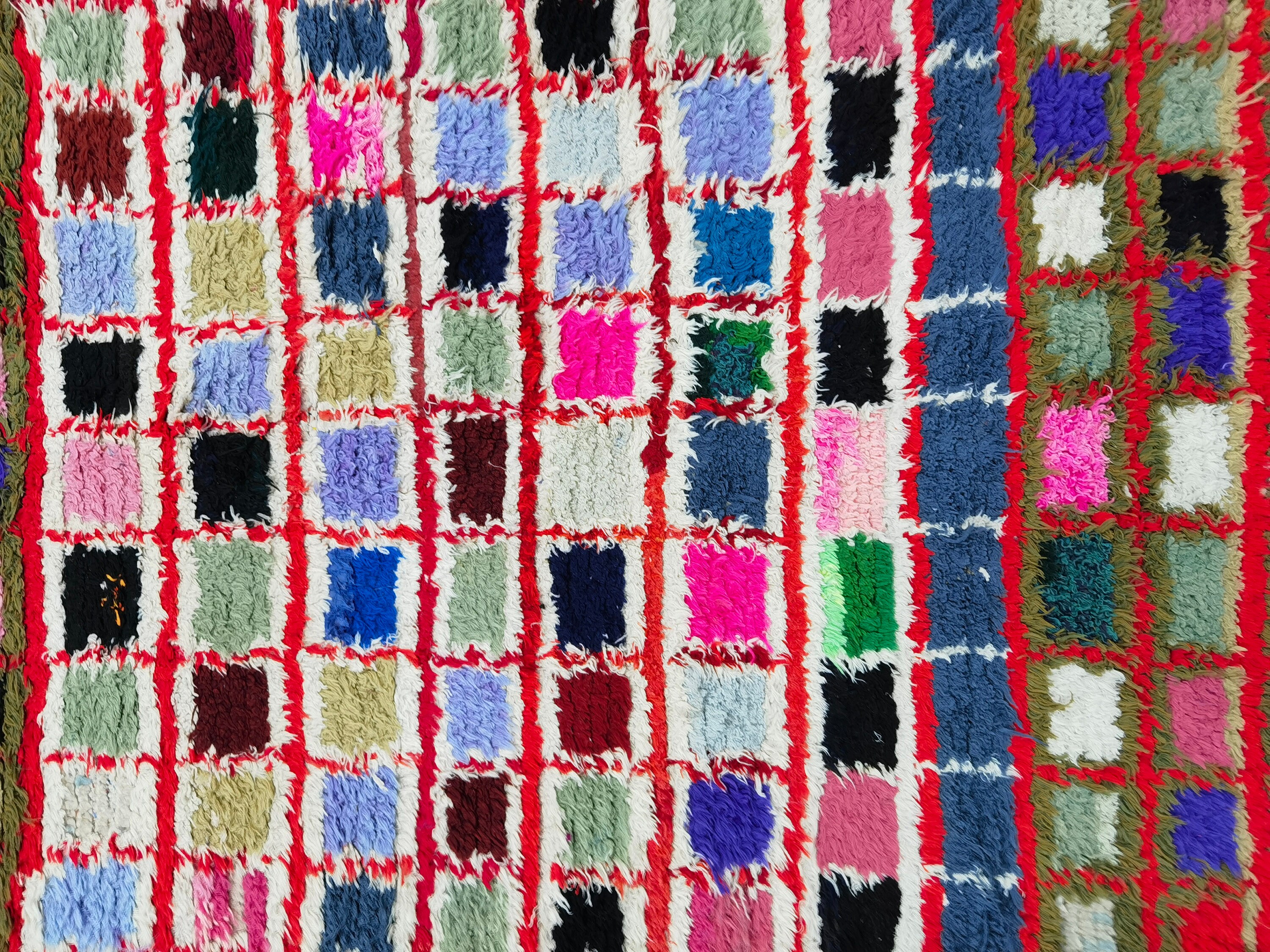 Boujaad is a vibrant and colorful wool rug that will add life to any room in your home. Made from 100% wool, this rug is perfect for use in the living room, bedroom, or anywhere you want to add some beautiful Moroccan flair. The soft and fluffy texture makes it comfortable to walk on, and the vivid colors will brighten up any space. Whether you're looking for a traditional shag rug or something a little more bohemian, Boujaad is sure to be a hit with your guests.