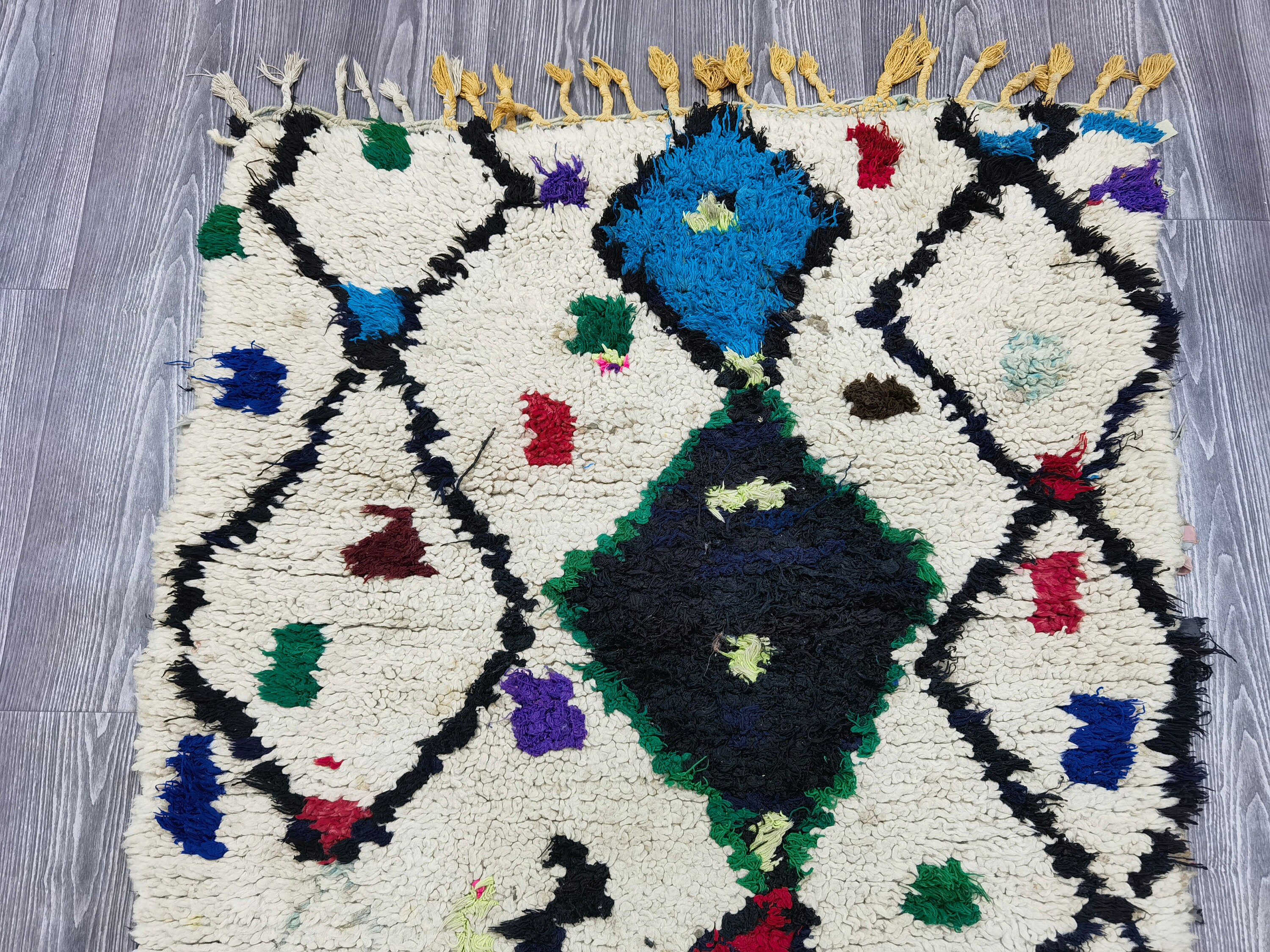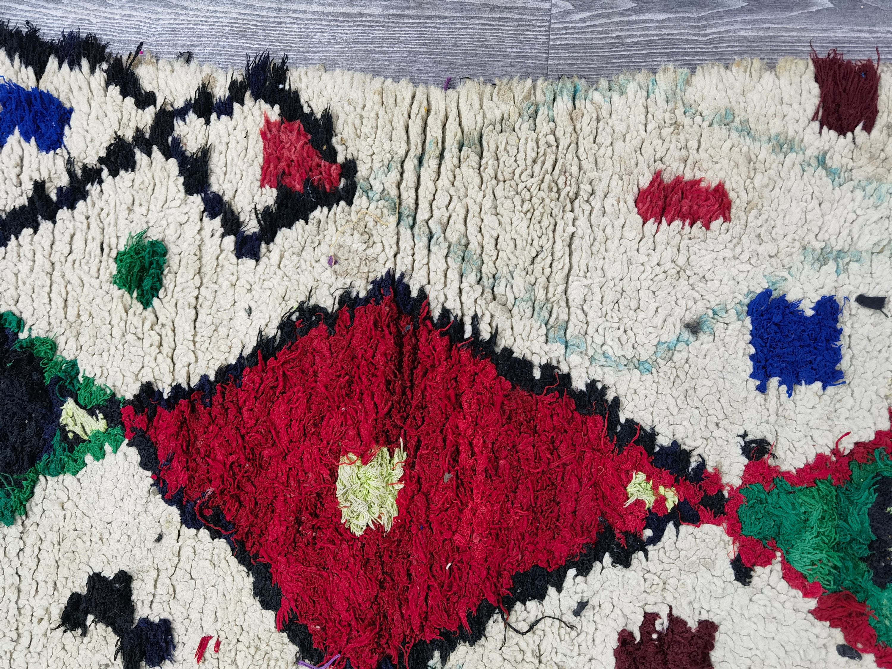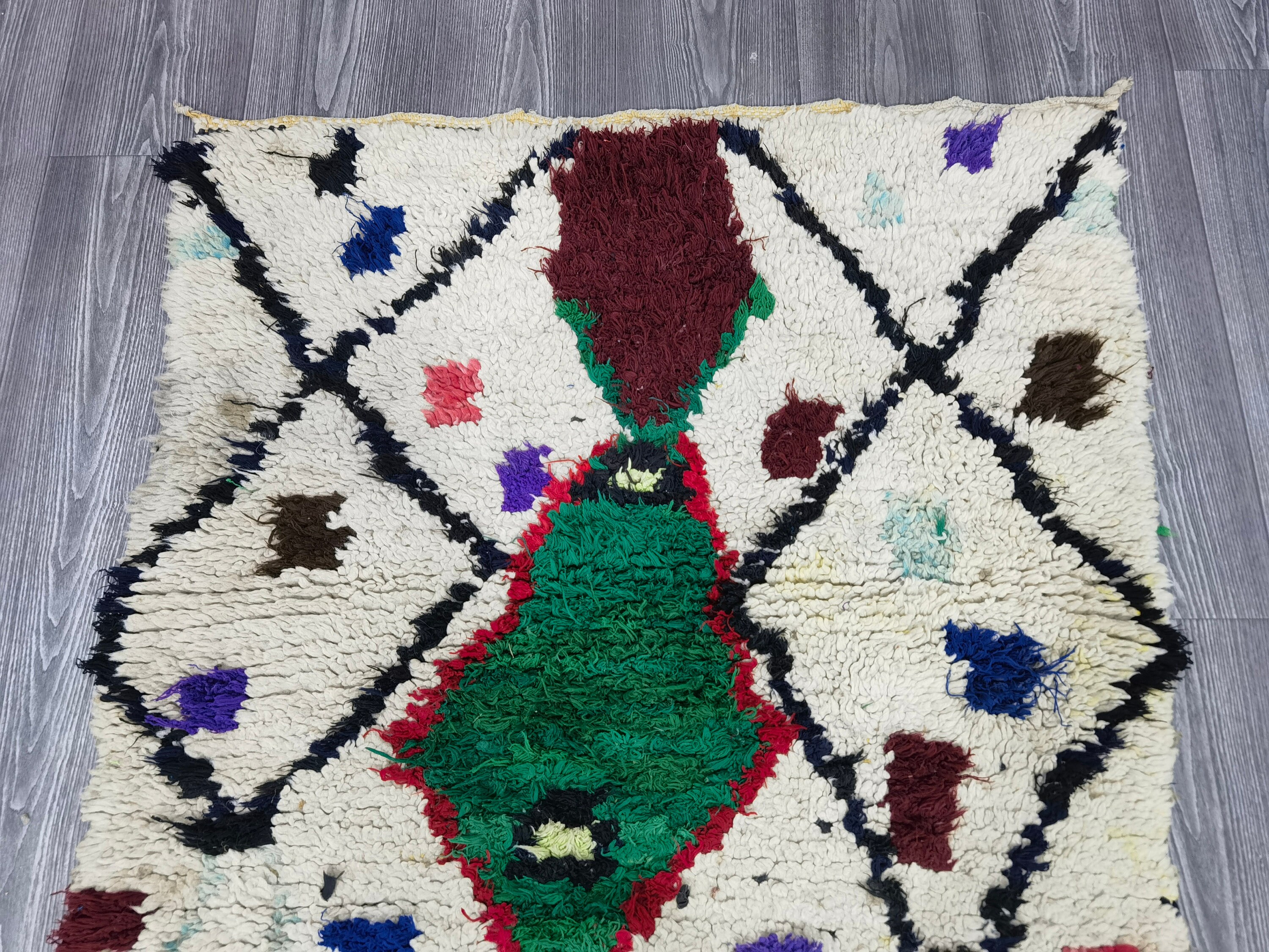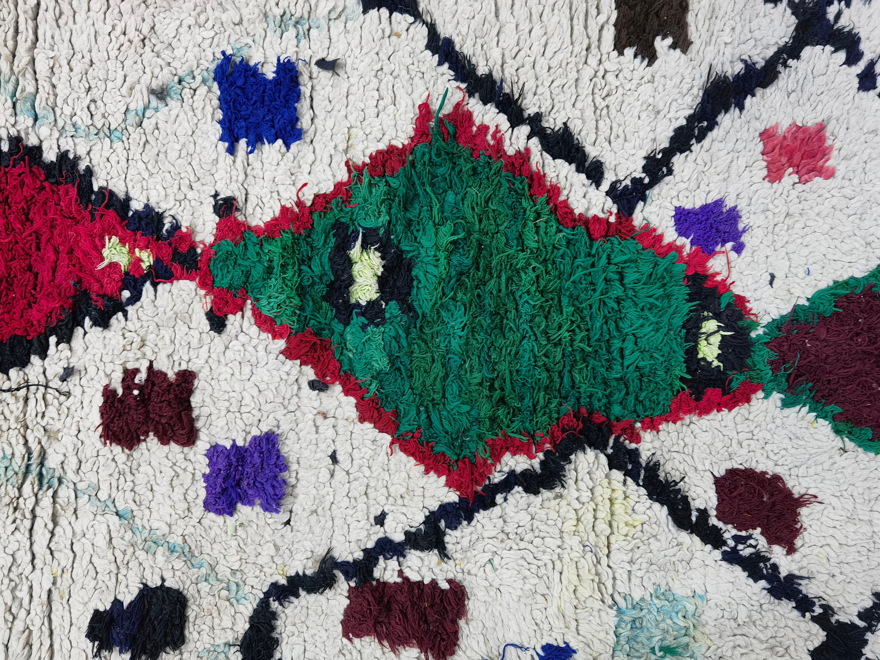 Boujaad is a vibrant and colorful wool rug that will add life to any room in your home. Made from 100% wool, this rug is perfect for use in the living room, bedroom, or anywhere you want to add some beautiful Moroccan flair. The soft and fluffy texture makes it comfortable to walk on, and the vivid colors will brighten up any space. Whether you're looking for a traditional shag rug or something a little more bohemian, Boujaad is sure to be a hit with your guests.