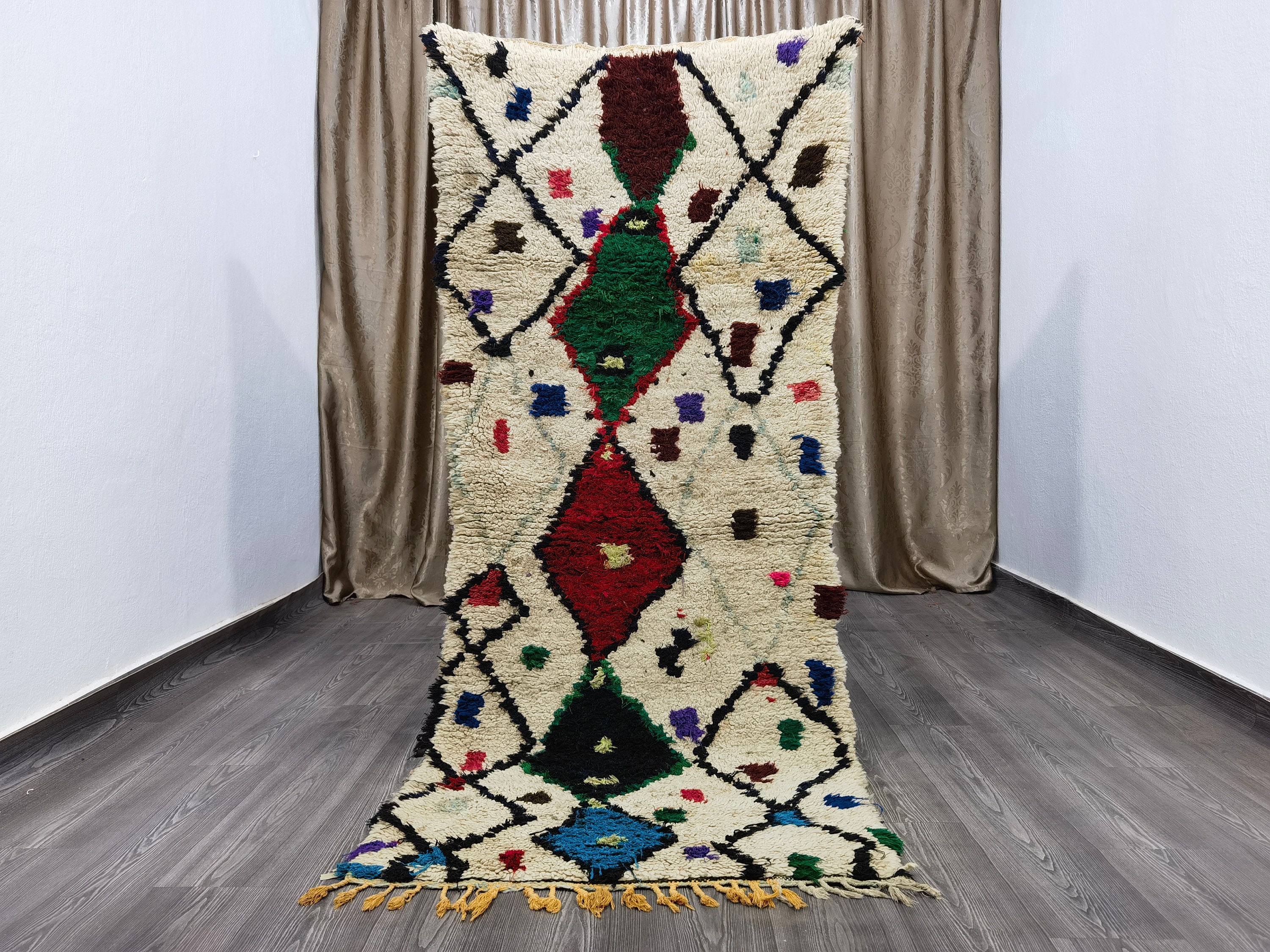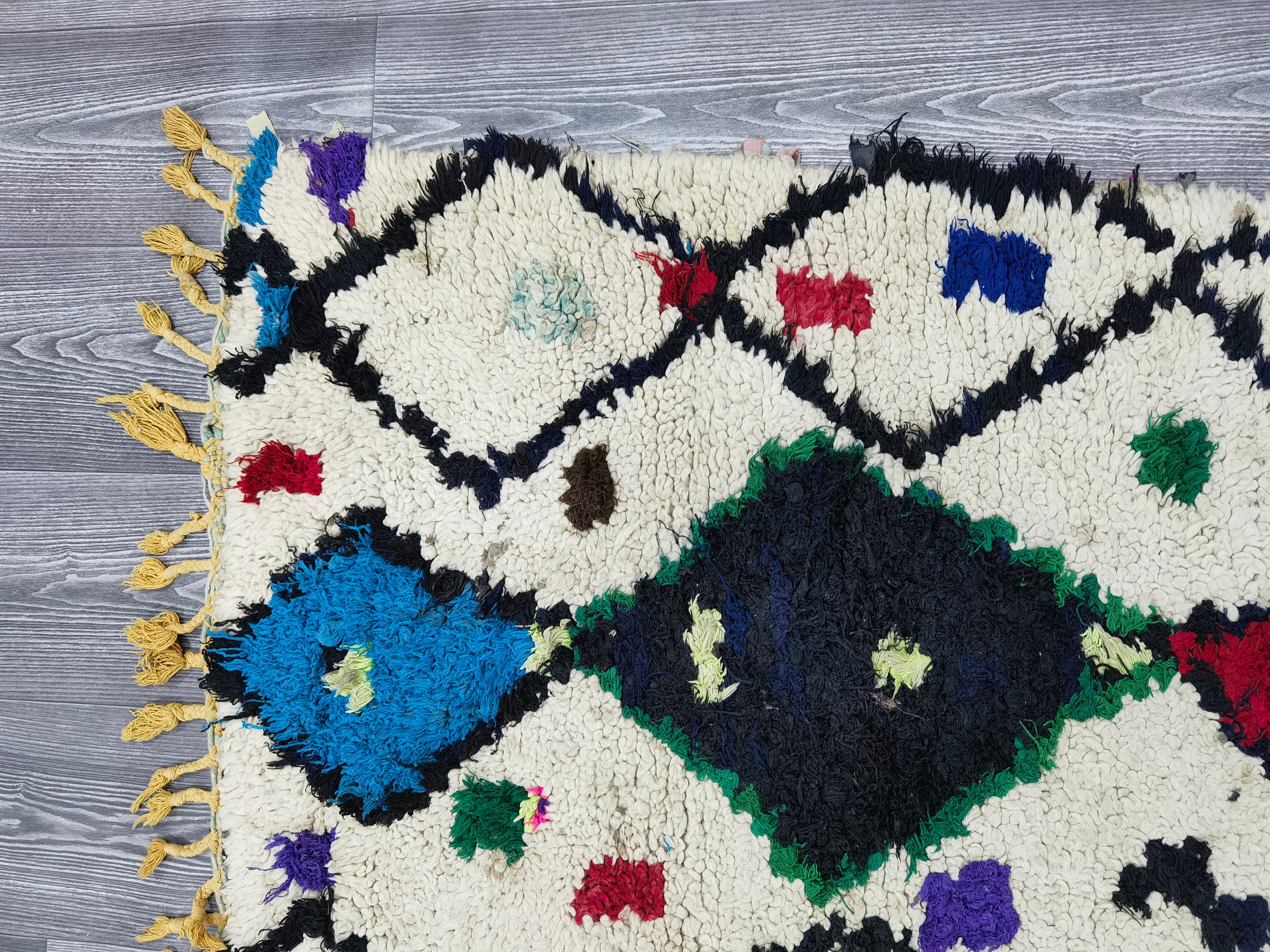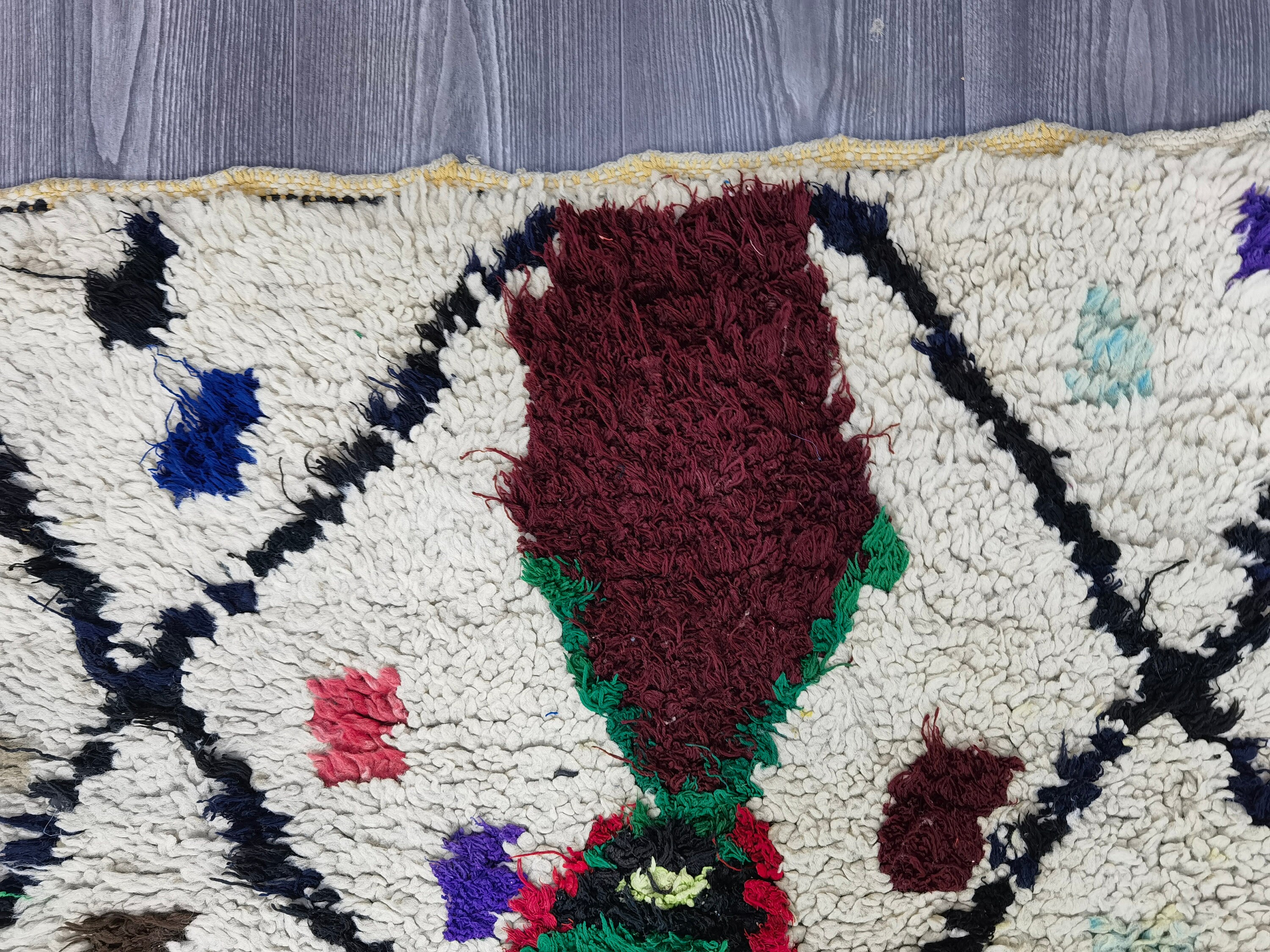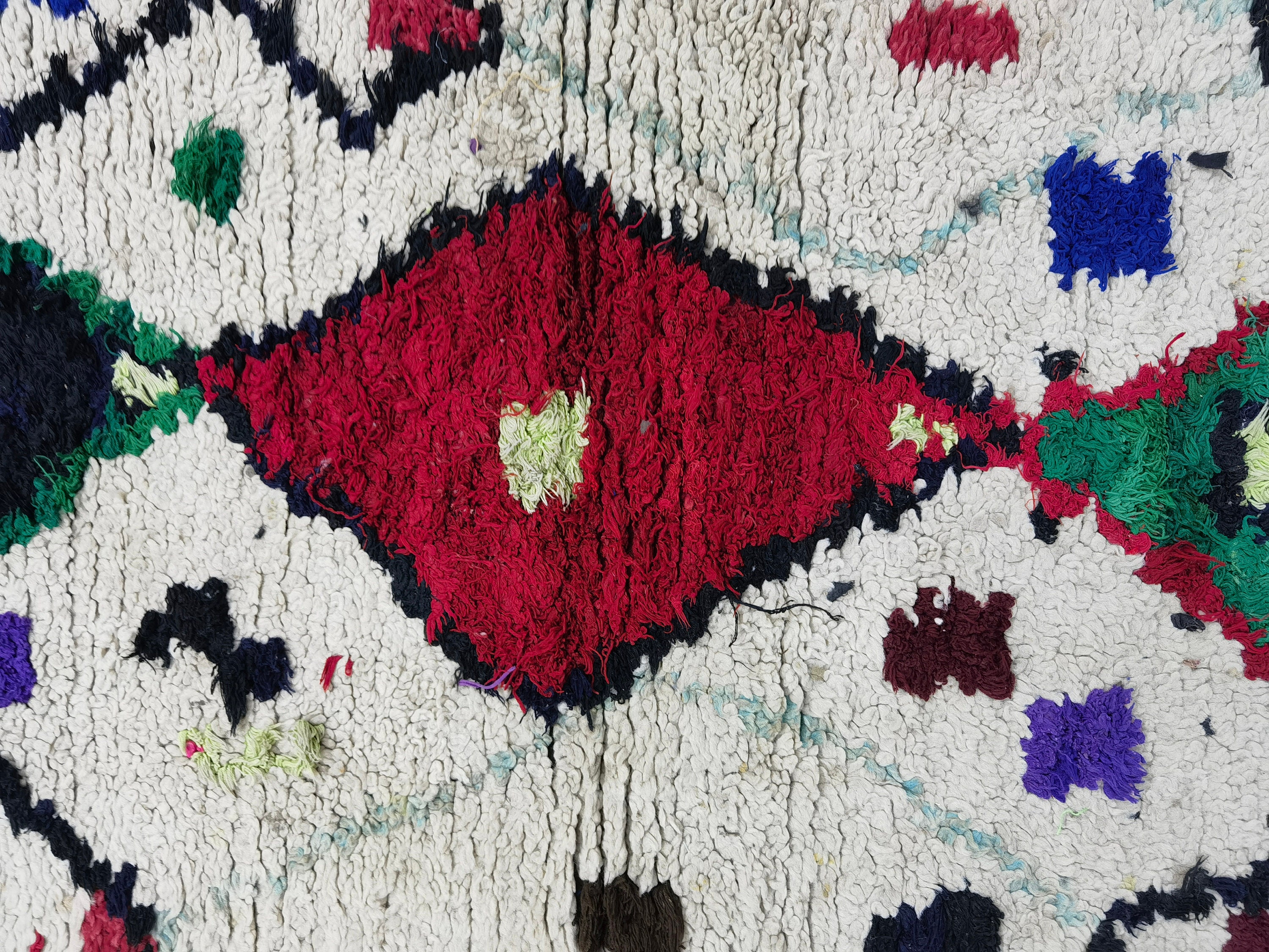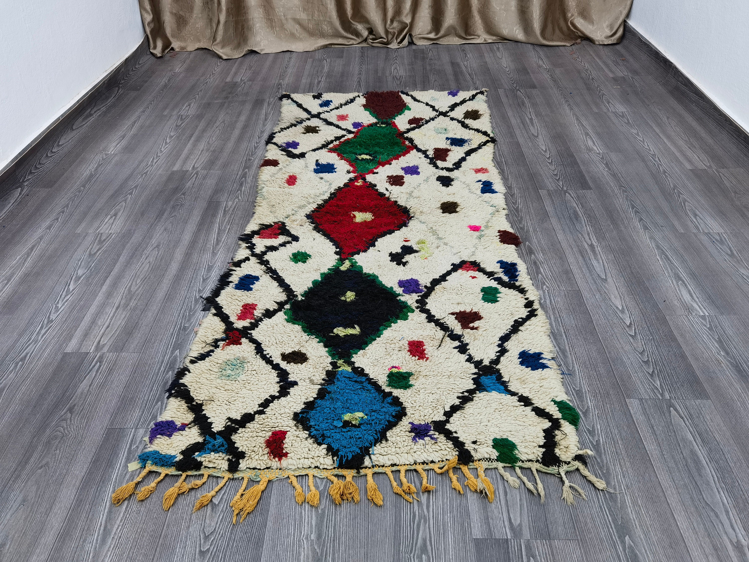 Boujaad is a vibrant and colorful wool rug that will add life to any room in your home. Made from 100% wool, this rug is perfect for use in the living room, bedroom, or anywhere you want to add some beautiful Moroccan flair. The soft and fluffy texture makes it comfortable to walk on, and the vivid colors will brighten up any space. Whether you're looking for a traditional shag rug or something a little more bohemian, Boujaad is sure to be a hit with your guests.