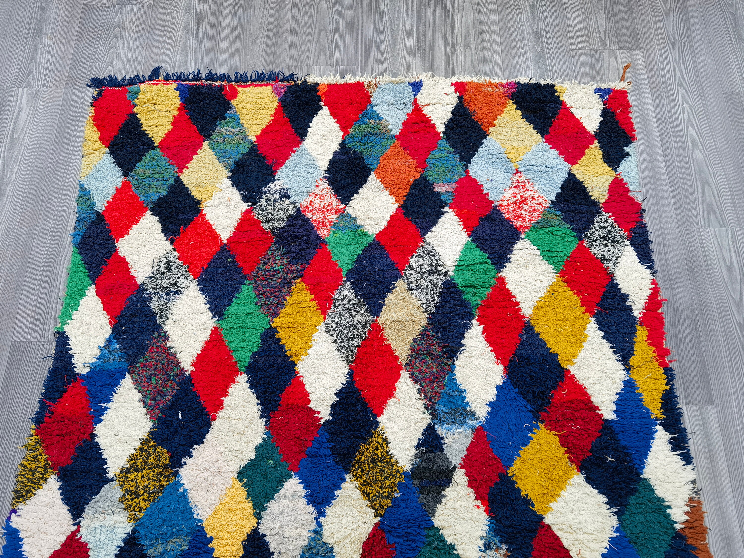 Boucherouite Rug, Colorful Area Rug, Berber Floor Rug, Room Rug Vintage