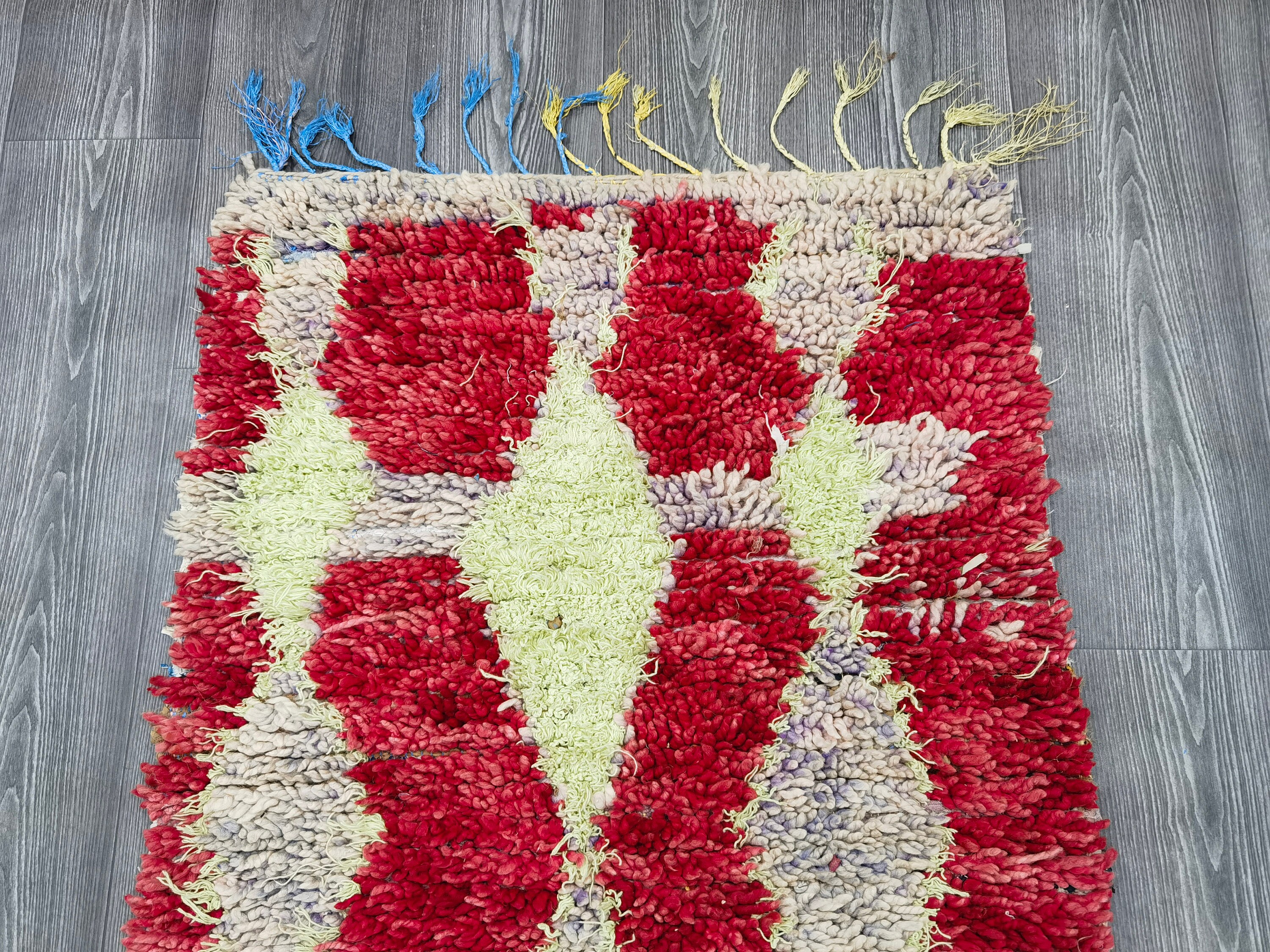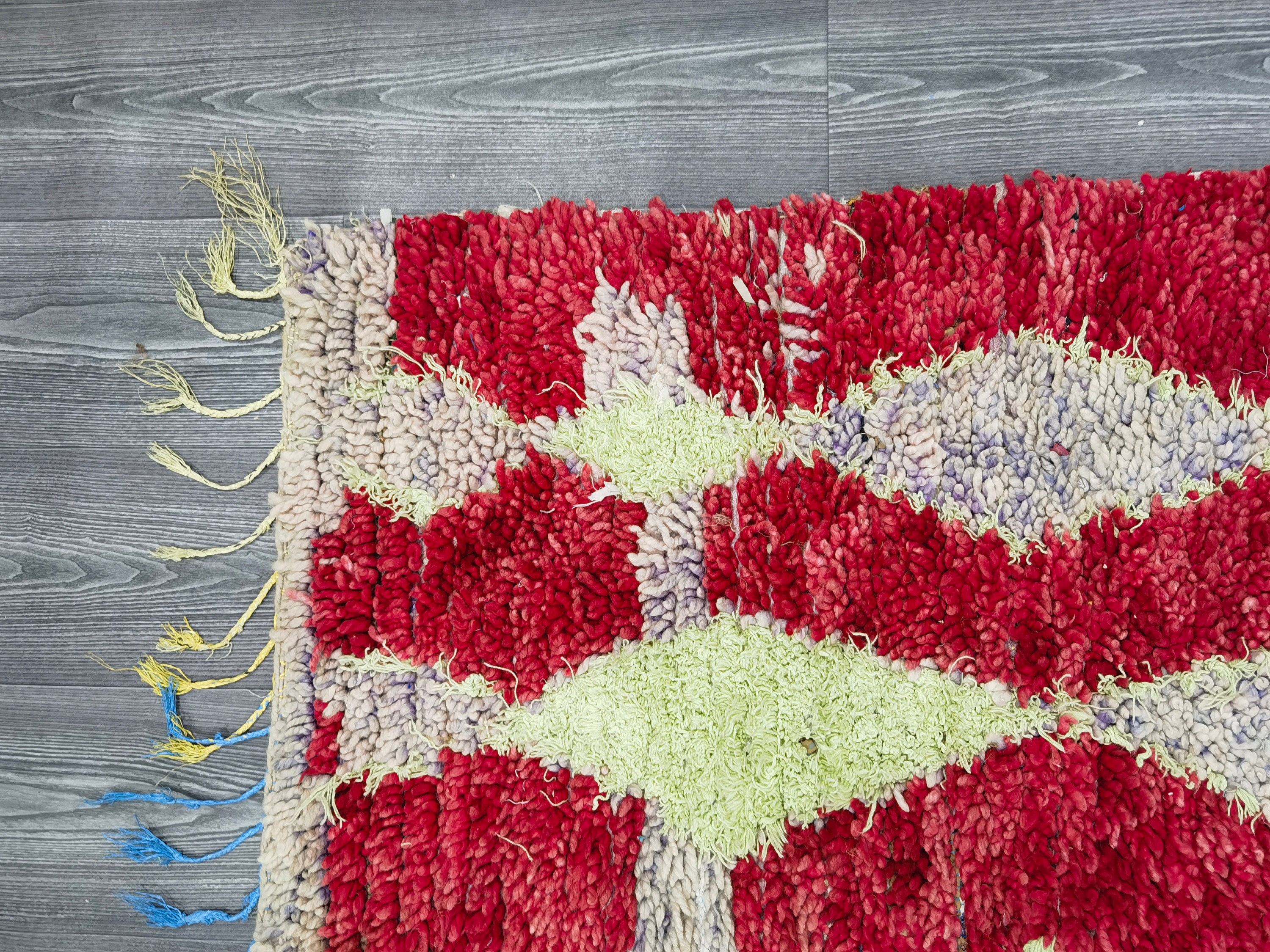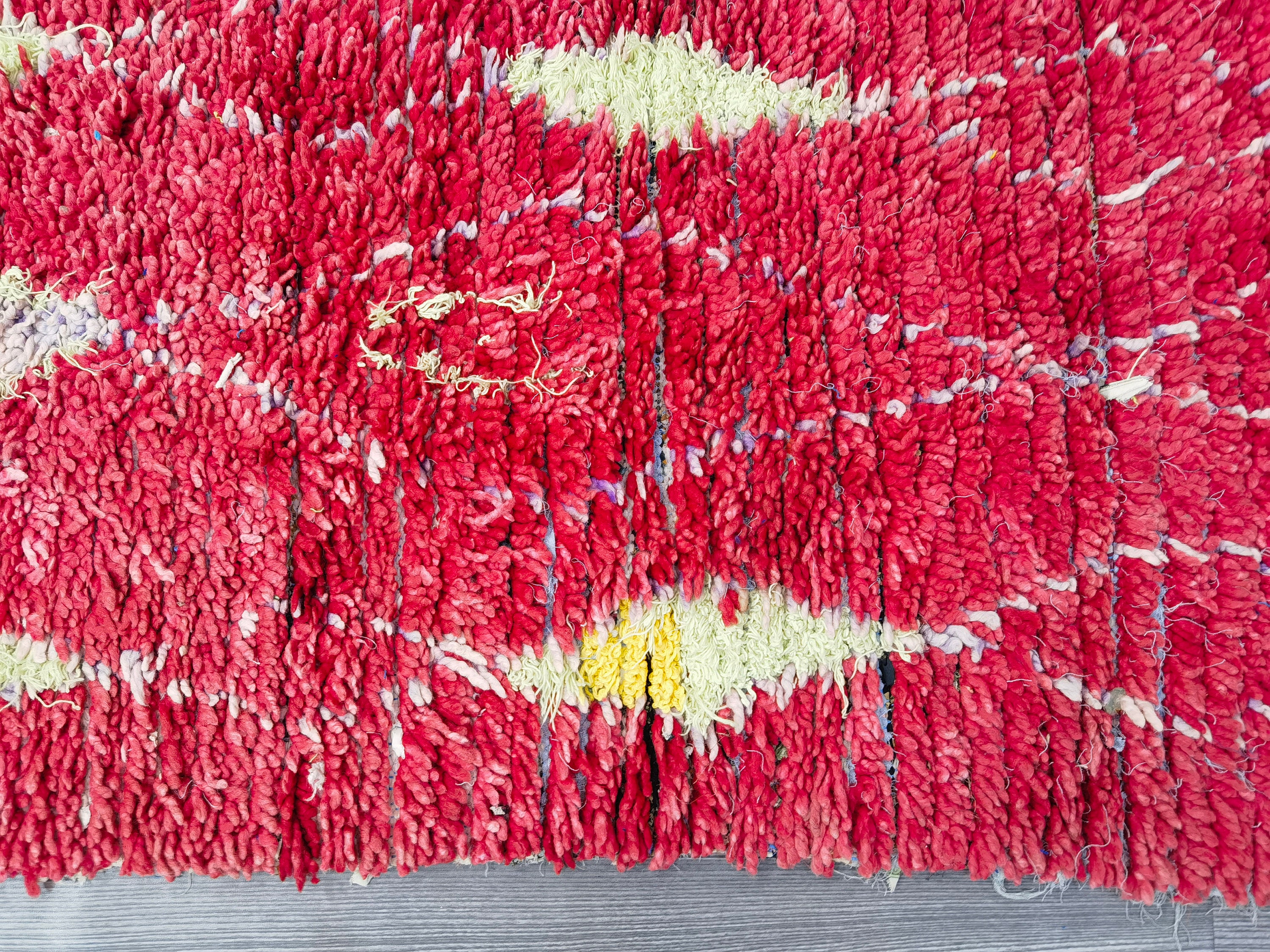 Boujaad is a vibrant and colorful wool rug that will add life to any room in your home. Made from 100% wool, this rug is perfect for use in the living room, bedroom, or anywhere you want to add some beautiful Moroccan flair. The soft and fluffy texture makes it comfortable to walk on, and the vivid colors will brighten up any space. Whether you're looking for a traditional shag rug or something a little more bohemian, Boujaad is sure to be a hit with your guests.