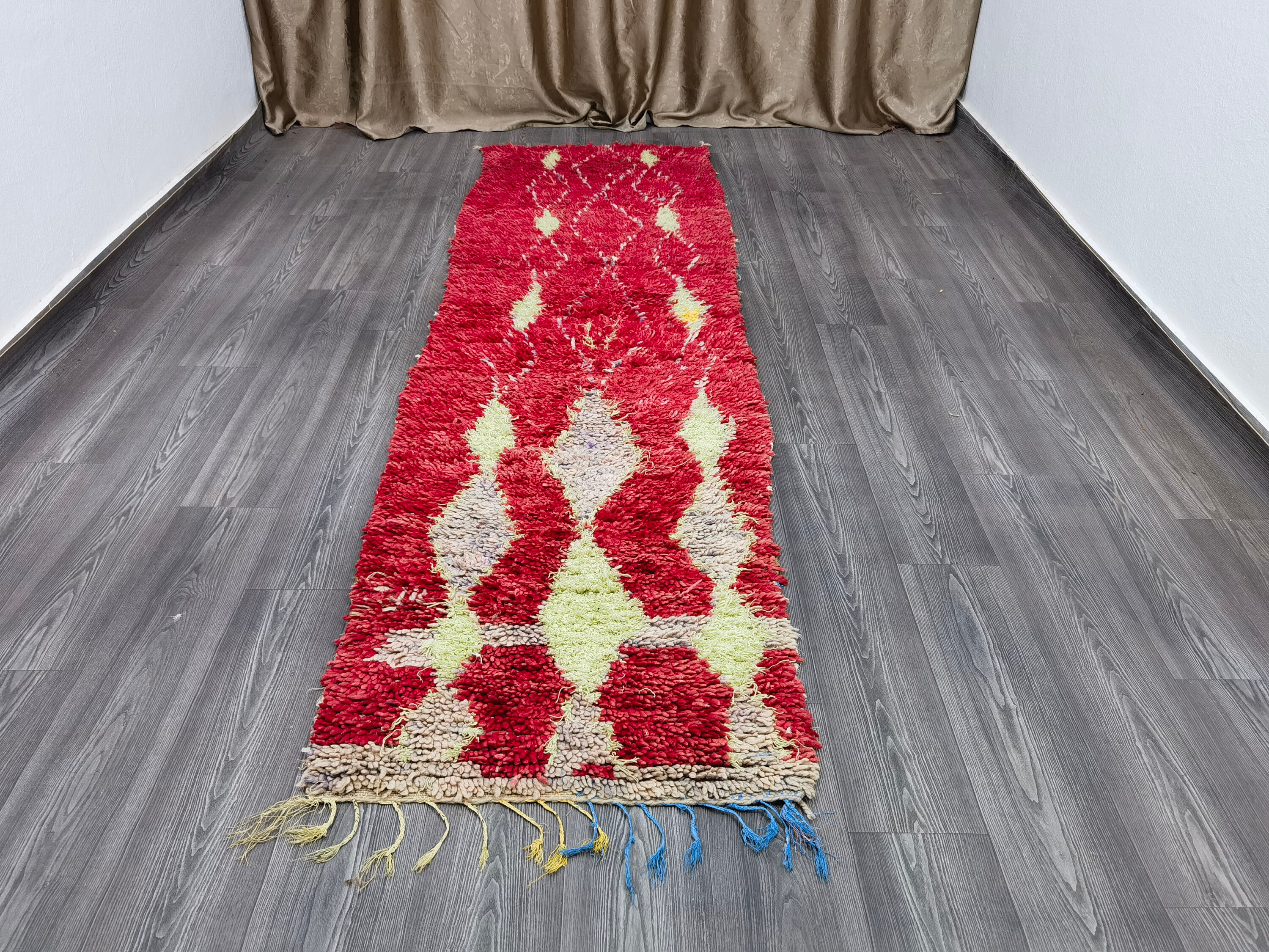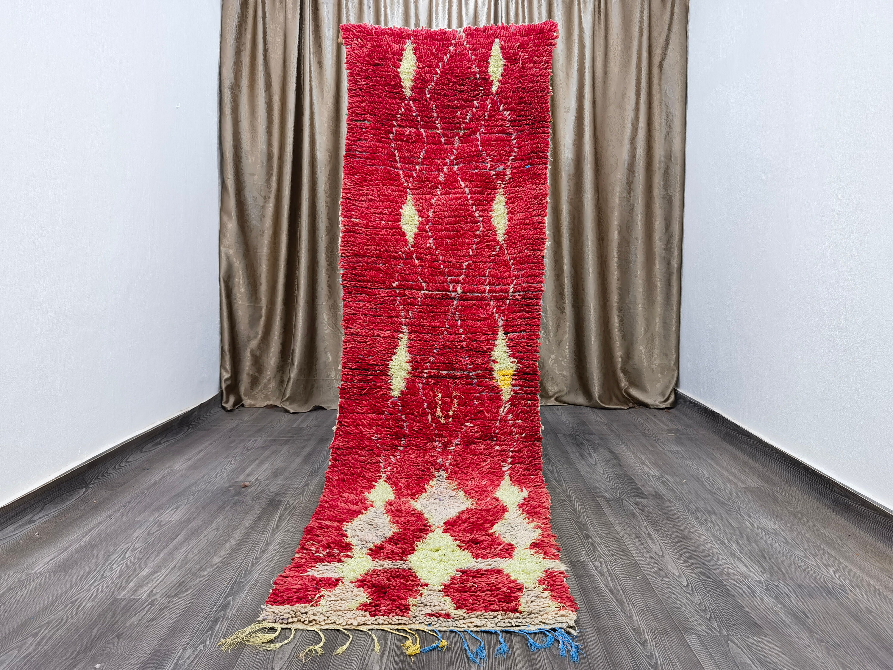 2.6x9.7 ft Red Runner Rug, Berber Moroccan Runner Rug, Handmad Bohemian Rug, Authentic Handwoven Rug, Red Runner Boujaad